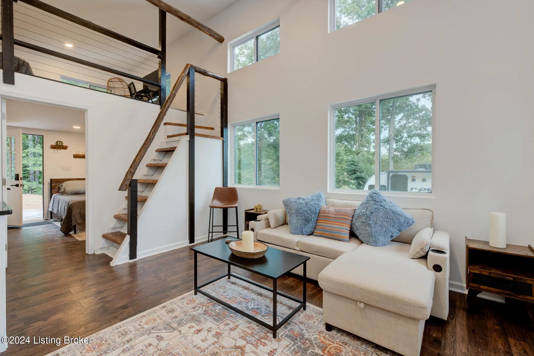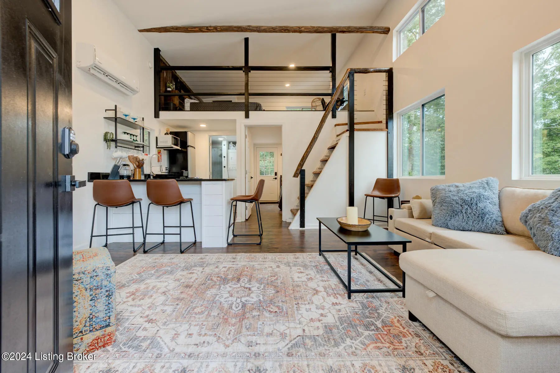 **New Construction, Fully Furnished and Everything is Included** This may be the retreat you've been searching for, where rustic charm meets modern comfort. This enchanting, brand new home in Beattyville has almost 2 acres, 2 bedrooms, 1 bathroom, a metal roof, and is full of appliances and furniture that remain with the property. Greeted by nice landscaping with a sandstone walkway and a front deck, enter into an open concept main floor that provides loads of natural light. A spacious living room has a sleeper couch and is open to the kitchen, perfect for entertaining guests. Gorgeous granite countertops and a convenient breakfast bar with stools provide a nice spot to dine, and the kitchen offers new white cabinetry, floating shelves, 2-burner electric stove, a microwave, and a fridge. On the main floor, you'll also find one of the bedrooms, a full bathroom, and a stackable washer & dryer. There is a large loft area where you have the second bedroom along with a 2nd fridge and extra living space that can be used as an office or lounging area. Your living space is heated and cooled with a Pioneer Mini-split HVAC and large ceiling fan. Outdoors, you have an inviting back deck that will be a peaceful spot for enjoying fresh air outdoors and watching the deer and other wildlife pass by. With solar lighting, sandstone walkway with solar lighting accents, new railroad tie landscaping, your back deck comes with chairs and an outdoor gas fire pit. You have plenty of parking space with the new gravel driveway which allows parking for up to 6-10 vehicles and RV hookups. Additional features include a tankless water heater and pine log rafters. Utilities include City water, septic system, and underground electricity. Everything stays with the home, including washer and dryer, new sleeper couch, bar stools, 2 refrigerators, 2 queen beds, 3 TVs, work desk and so much more. This home combines the tranquility of country living with the convenience of nearby city amenities. Just minutes to Red River Gorge in the town of Beattyville KY. Near Daniel Boone National Forest, rock climbing, hiking, boating and fishing. Plenty of deer and other wildlife on the property. Grocery store, Dollar General and gas station 1.6 miles away. Local hardware and building supply warehouse is just 1.7 miles away. Don't miss out on your opportunity to turn this house into your home, where every day feels like a getaway!