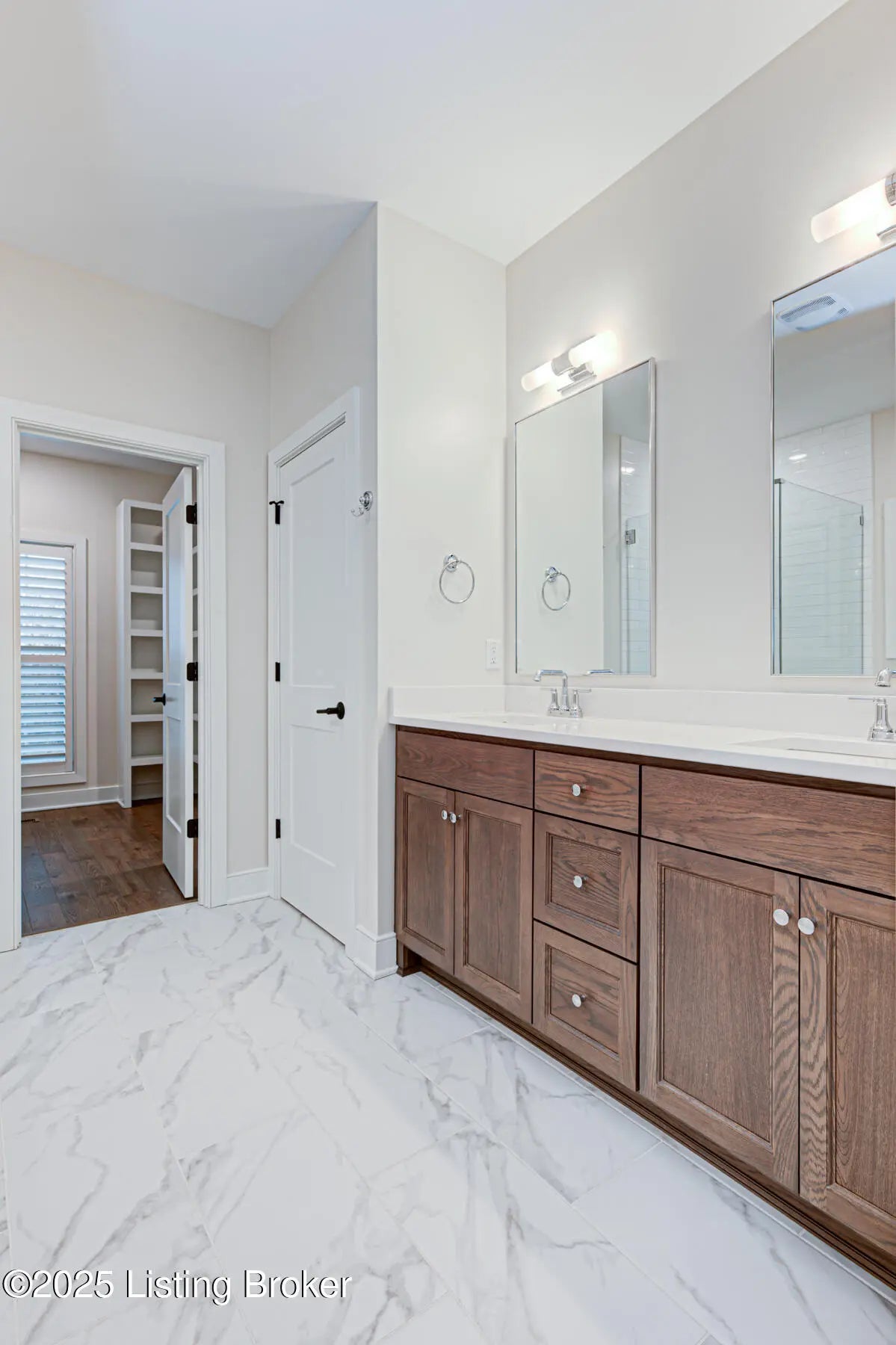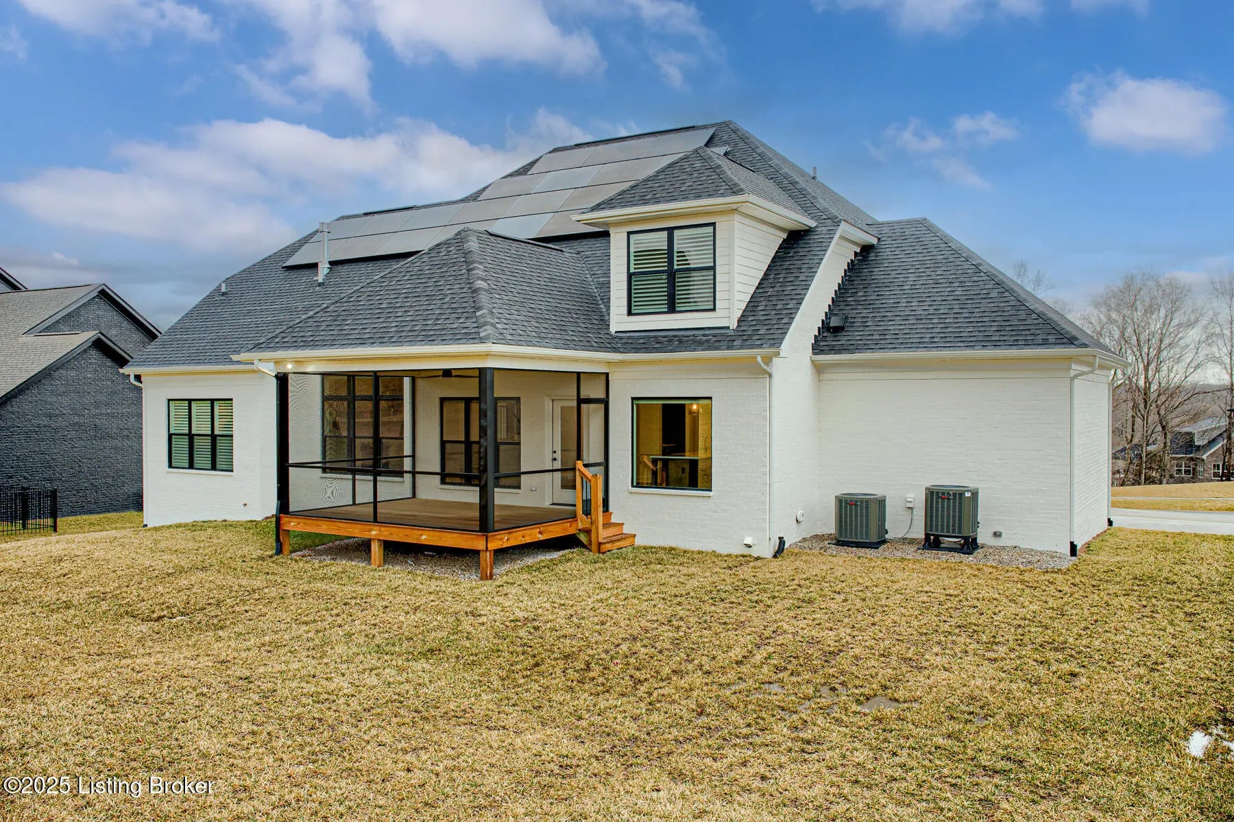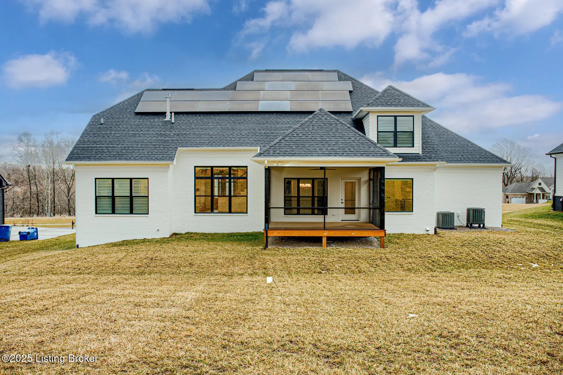Welcome to this prestigious home in the much sought after Brentwood Subdivision and Oldham County Schools. This custom-built residence offers a perfect blend of modern sleek luxury and thoughtful design for easy living. This home has many extras to offer to the new owners. Solar panel added to cut cost of HVAC systems, irrigation system for easy summertime beautiful lawn, added plantation shutters and custom blinds as well as an ADT alarm system for peace of mind. The main floor hosts an open concept living. A spacious great room with floor to ceiling stone fireplace and a wall of windows overlooking the private backyard. The primary suite consist of extra-large bedroom with panel wall for the bed area and plantation shutters. Large primary bath with free standing tub, a huge glass shower area and beautiful double sink vanity. A separate private toilet room and custom built-in large walk-in primary closet. Also on this level is a beautifully appointed paneled formal dining room with a unique butler pantry between this room and the kitchen. The kitchen has top of the line appliances, a beautiful island with sitting bar and farm sink. Loads of custom cabinetry; a large double door pantry with a quartz shelf with an electric outlet for an out of the way place for small appliances. There is a custom-built nook for a large refrigerator. The laundry room with cabinetry and laundry chute is located next to the kitchen as is a back entrance foyer with custom built-in for storage. This area leads to the 3-car garage. A beautifully designed powder room is also located in this main floor as well as a casual dining area that opens onto the screened porch. A side staircase leads to a spacious multitask area that could be a study area or home office. It has its own walk-in storage closet for keeping equipment and supplies out of sight. There is also a linen closet for the 3 bedrooms and two full baths (one a Jack & Jill) located on this floor. A 3-car garage, zoned HVAC, beautiful landscaping, an added sprinkle system, solar energy panels for cutting utilities, and a lower level studded for finishing out a whole new world in the lower level to the new owner's delight.