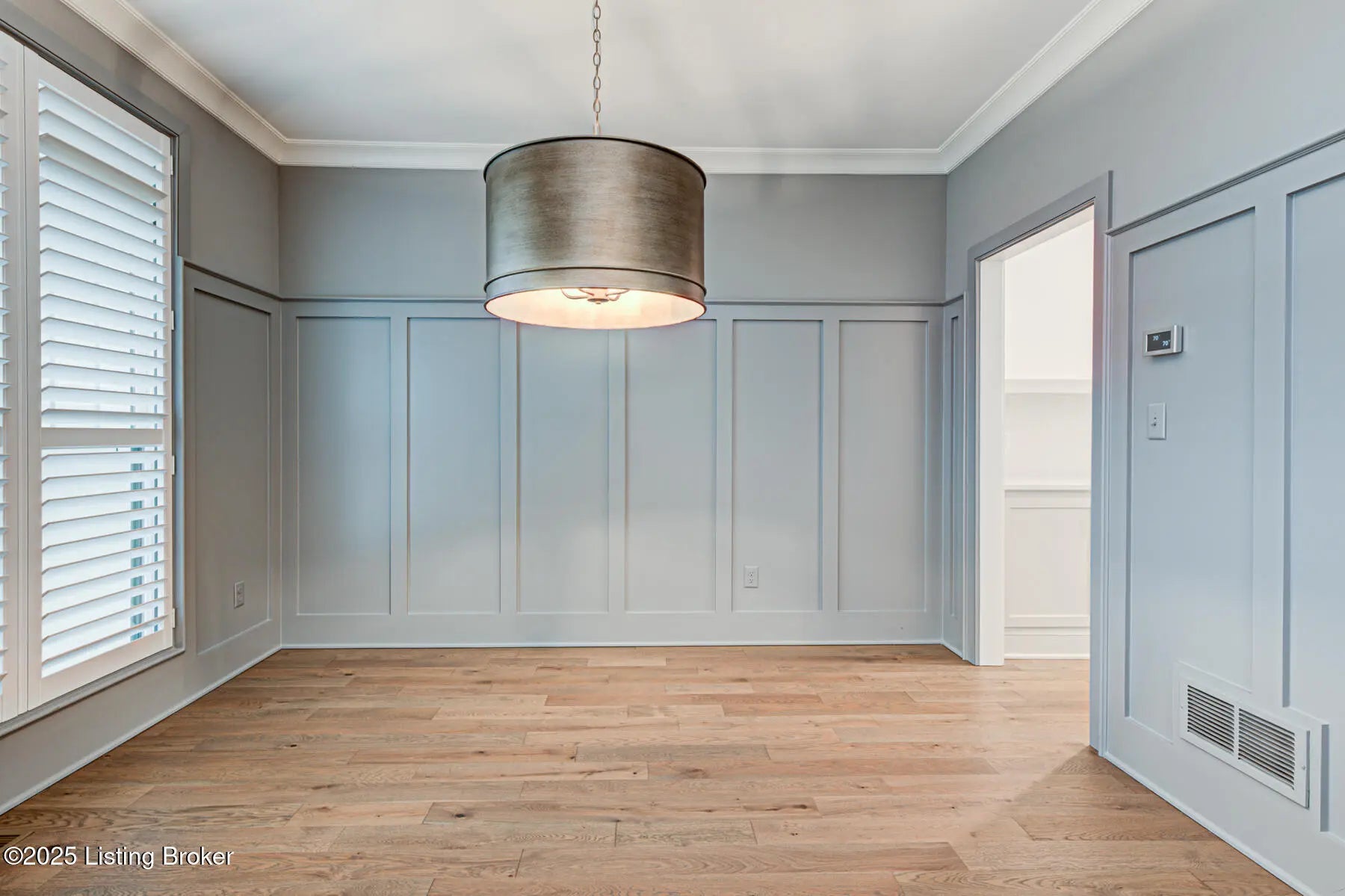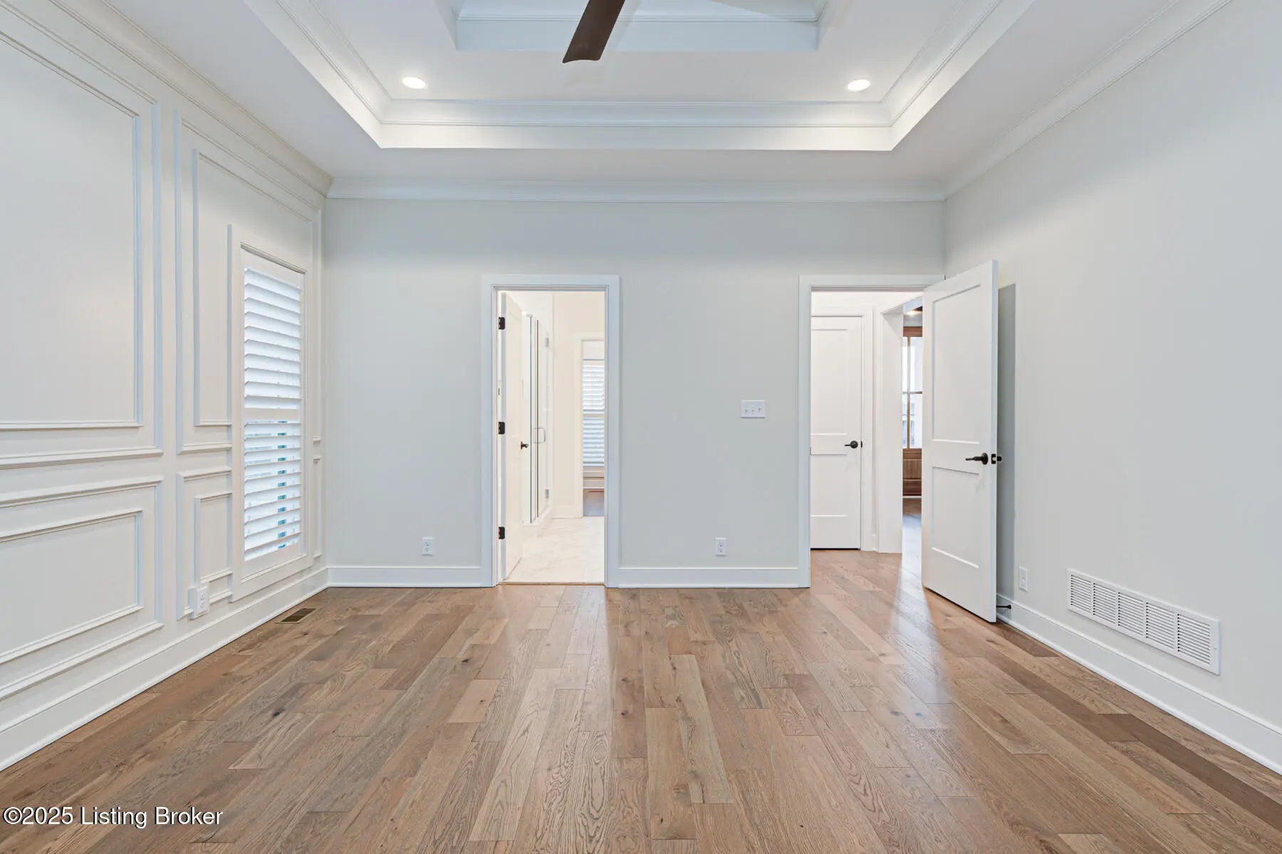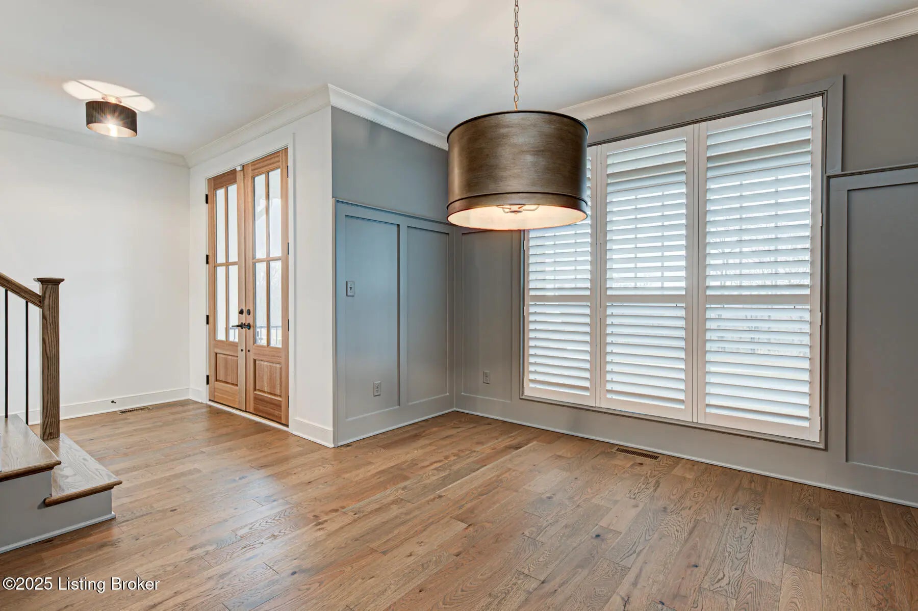 Welcome to this prestigious home in the much sought after Brentwood Subdivision and Oldham County Schools. This custom-built residence offers a perfect blend of modern sleek luxury and thoughtful design for easy living. This home has many extras to offer to the new owners. Solar panel added to cut cost of HVAC systems, irrigation system for easy summertime beautiful lawn, added plantation shutters and custom blinds as well as an ADT alarm system for peace of mind. The main floor hosts an open concept living. A spacious great room with floor to ceiling stone fireplace and a wall of windows overlooking the private backyard. The primary suite consist of extra-large bedroom with panel wall for the bed area and plantation shutters. Large primary bath with free standing tub, a huge glass shower area and beautiful double sink vanity. A separate private toilet room and custom built-in large walk-in primary closet. Also on this level is a beautifully appointed paneled formal dining room with a unique butler pantry between this room and the kitchen. The kitchen has top of the line appliances, a beautiful island with sitting bar and farm sink. Loads of custom cabinetry; a large double door pantry with a quartz shelf with an electric outlet for an out of the way place for small appliances. There is a custom-built nook for a large refrigerator. The laundry room with cabinetry and laundry chute is located next to the kitchen as is a back entrance foyer with custom built-in for storage. This area leads to the 3-car garage. A beautifully designed powder room is also located in this main floor as well as a casual dining area that opens onto the screened porch. A side staircase leads to a spacious multitask area that could be a study area or home office. It has its own walk-in storage closet for keeping equipment and supplies out of sight. There is also a linen closet for the 3 bedrooms and two full baths (one a Jack & Jill) located on this floor. A 3-car garage, zoned HVAC, beautiful landscaping, an added sprinkle system, solar energy panels for cutting utilities, and a lower level studded for finishing out a whole new world in the lower level to the new owner's delight.