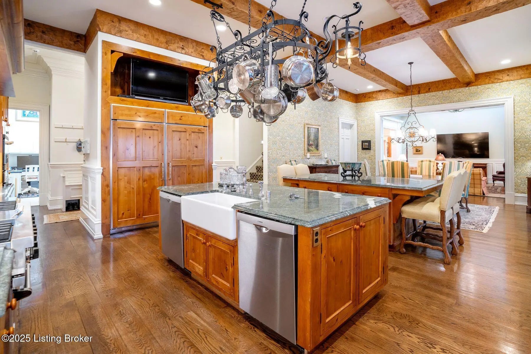 Welcome to this expansive traditional estate, a sanctuary of luxury and refinement nestled on nearly 3 acres of meticulously landscaped grounds. Step into elegance through the marble foyer, where a graceful curved staircase invites you to explore this magnificent residence. Entertain in style in the elegant dining room, adorned with custom woodwork and warmed by one of seven fireplaces. Culinary enthusiasts will delight in the gourmet kitchen, boasting a charming hearth room for intimate gatherings. Retreat to the sunroom, offering serene views and access to a balcony overlooking the pool area. Work or conduct business with sophistication in the large wood-paneled office, while the spacious living room provides a cozy ambiance with its soaring ceilings and fireplace. With seven bedrooms and seven full baths, showcasing a first-floor primary suite and an additional first floor guest suite, there's ample accommodations for all. The lower level offers endless entertainment possibilities, from the wine cellar to the bar area and recreational spaces, complemented by spa-like amenities including a sauna and workout room. Upstairs, discover three bedrooms and an additional guest suite, ensuring comfort and privacy. With a security system and integrated sound system, 4 car attached garage, convenience and peace of mind are paramount. Outdoor gatherings feature a built-in grill and covered entertaining space. Every detail has been thoughtfully curated for discerning tastes.