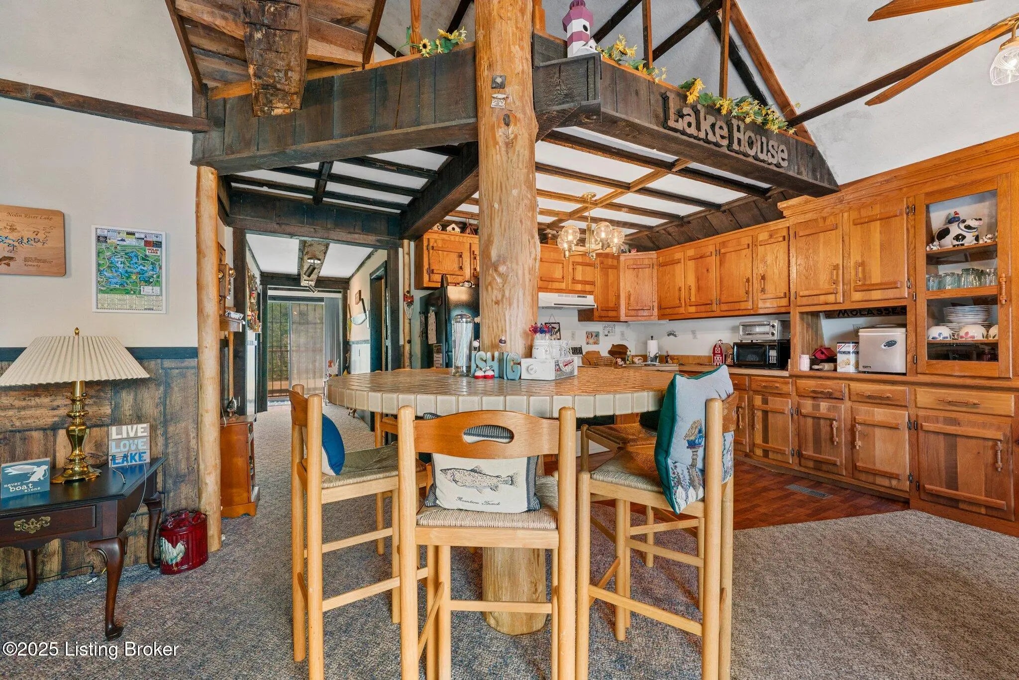 Welcome to your ideal lake getaway! This cozy and inviting 2-bedroom, 2-bath home features a bonus area for additional sleeping space, making it perfect for hosting friends and family. Enjoy ample entertaining areas with a wraparound deck on three sides of the home, a covered pavilion, and a designated fire pit area - all designed for year-round enjoyment. While relaxing on the side or back deck, take in the peaceful water views and soak up the tranquil lake atmosphere. There's plenty of parking, including a large driveway, two-car carport, and a two-car garage located underneath the home (with a laundry area). Plus, there's an additional detached garage behind the house for even more storage or workspace. . The home is situated just around the corner from the dock easement, and you'll find Dog Creek boat ramp less than a minute away - ideal for quick access to the water. Nearby conveniences include BUOYS at the Lodge, Day's Pro Bass, and a Dollar Store for all your lake essentials. As an added bonus, all furniture and furnishings remain with an acceptable offer, making this property truly turn-key and move-in ready. A second laundry hookup is also available inside the home for added convenience. Don't miss your chance to own this charming, fully furnished lake area home with endless possibilities for relaxation and entertainment! There is a dock to transfer pending COE approval and light restrictions do apply. Don't delay, give the listing agents a call today! We Know Nolin!