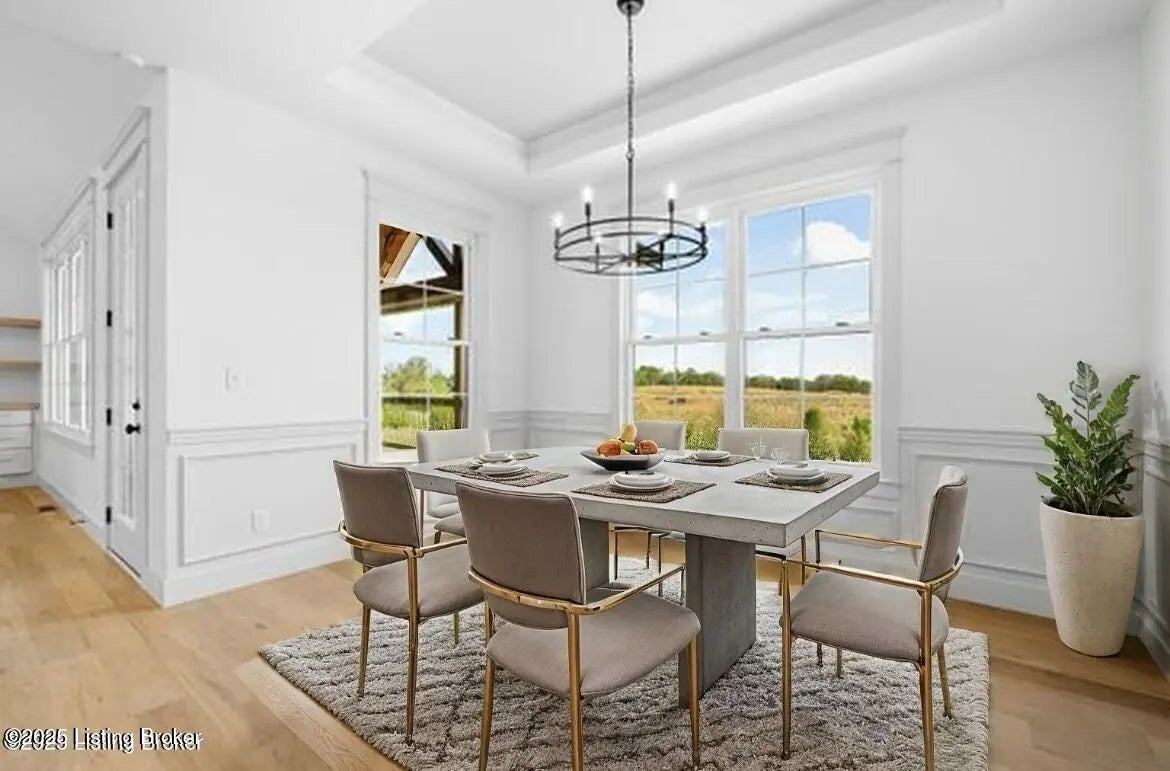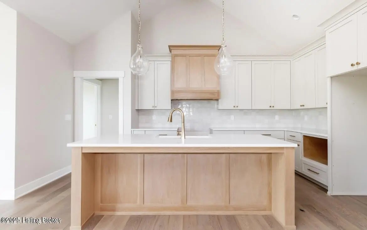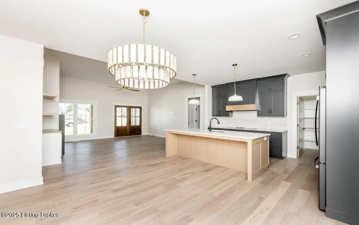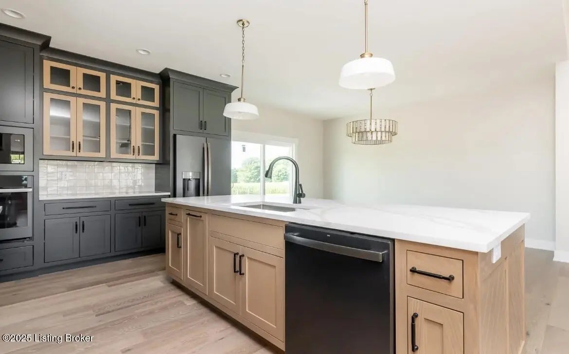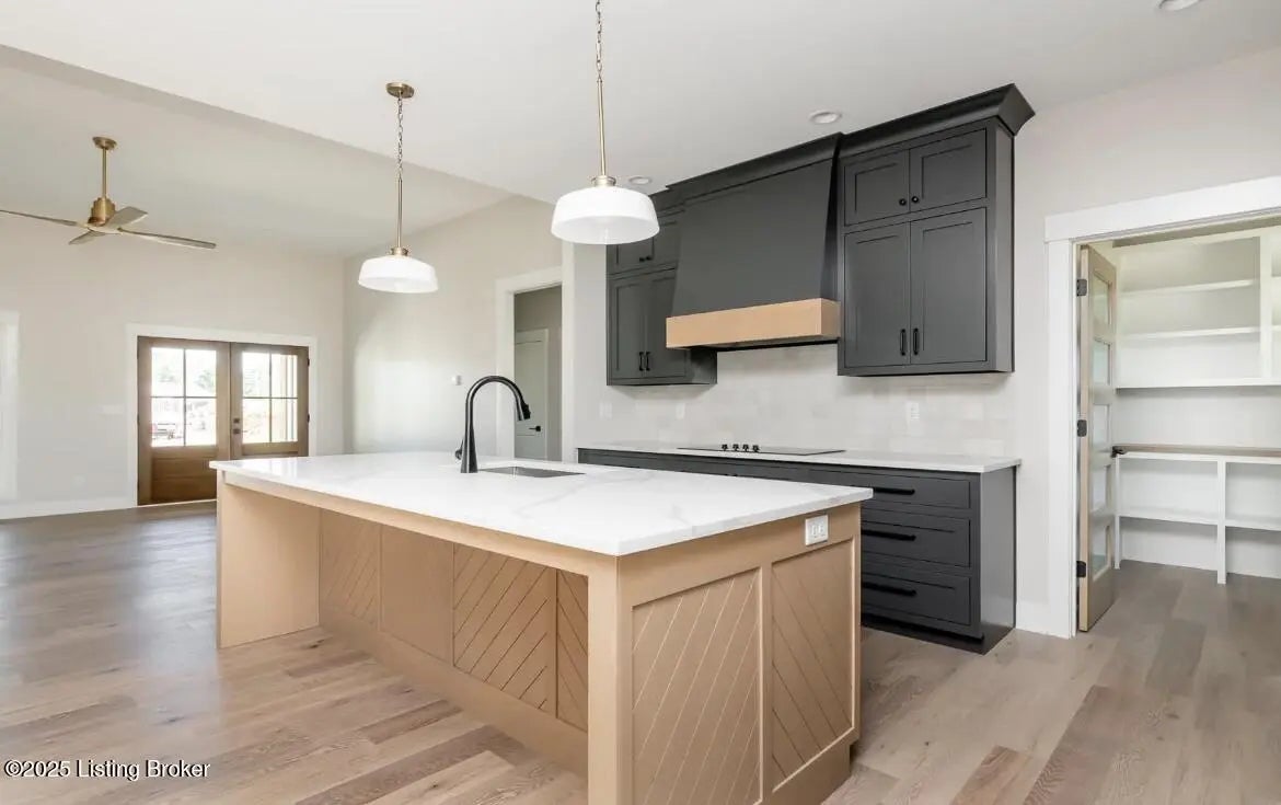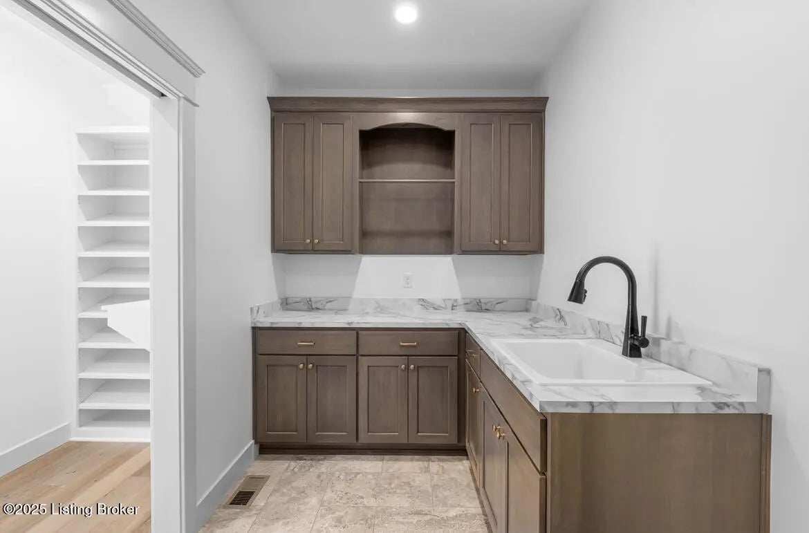 Buyers have opportunity to select their custom finishes throughout. Photos are projects from past projects. This walk-out ranch features an open floor plan with high-end details throughout. The kitchen features custom cabinets with a walk-in pantry. Primary suite features: walk-in shower, free standing tub, and huge walk-in closet. The laundry room connects to the primary closet and includes a mud sink with custom cabinets. Finishes include engineered hardwood floors, vaulted ceilings, custom trim package, crown molding, stained beams, and built-in shelving throughout. 3 car garage on main level and 4th bay in the basement. Covered rear deck with custom wood ceiling overlooks flat, private yard. Unfinished basement has rough-in plumbing and plenty of storage