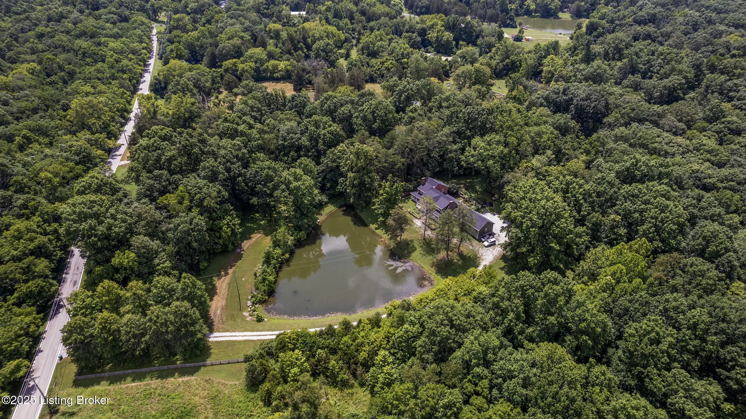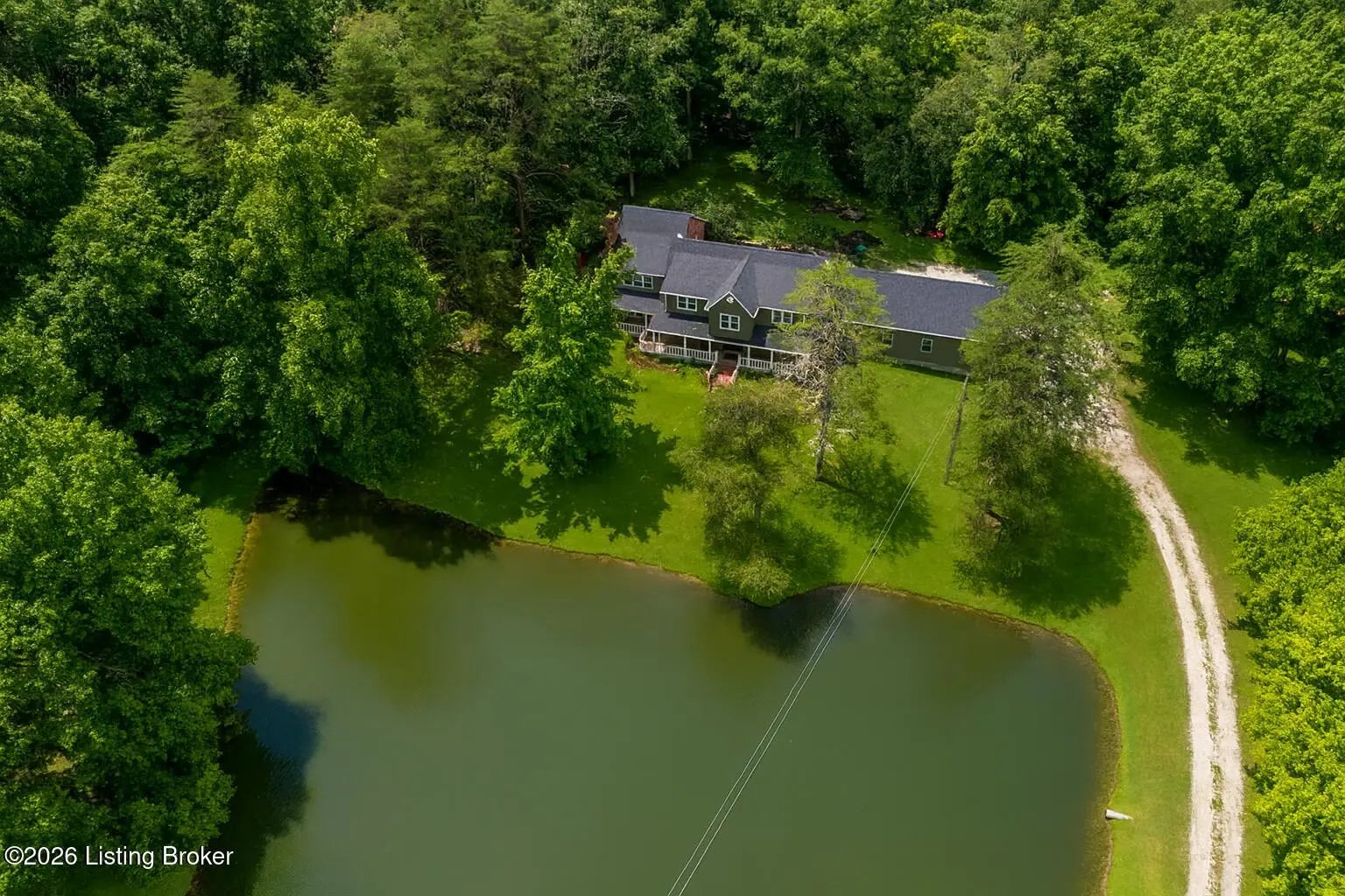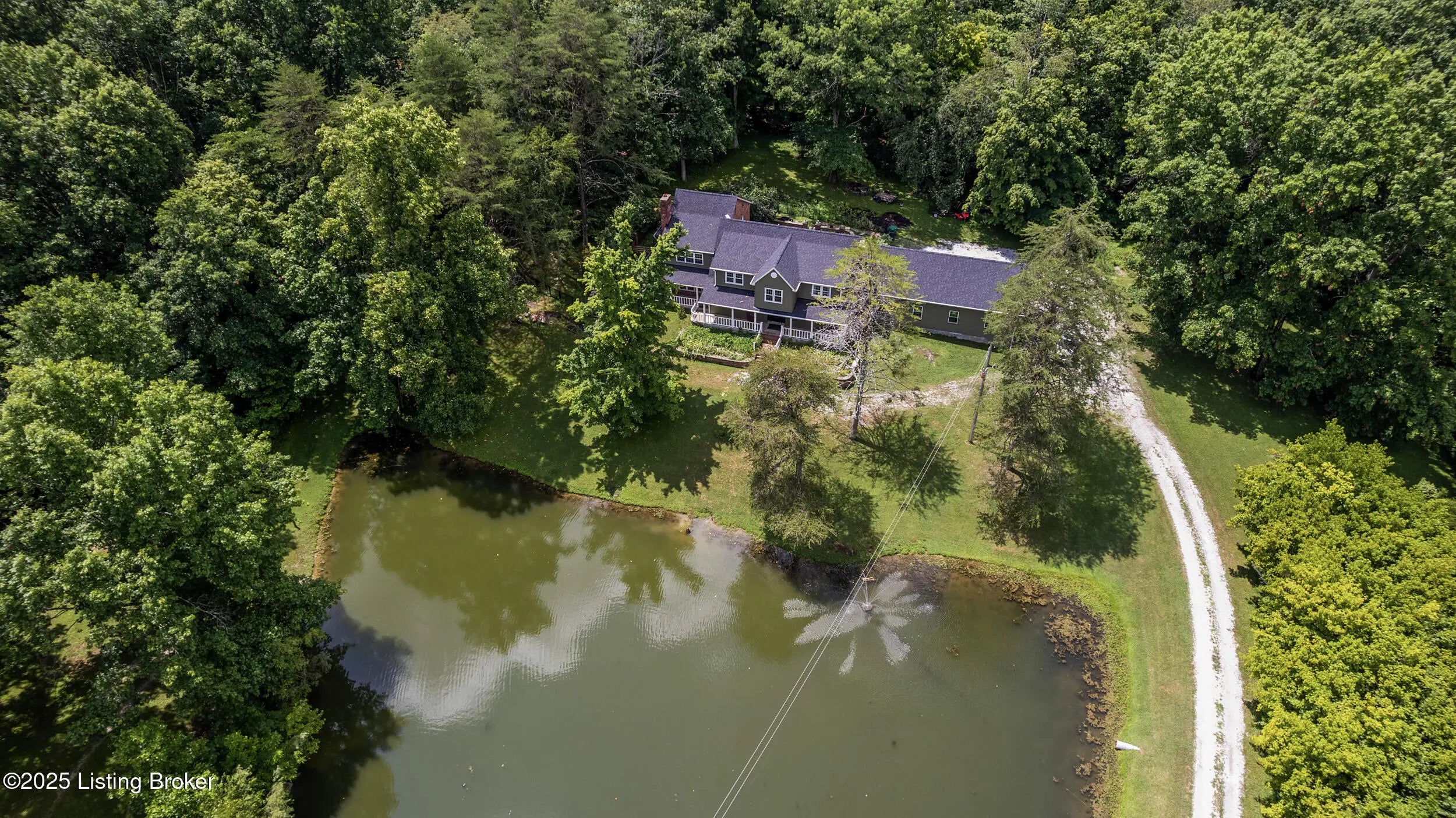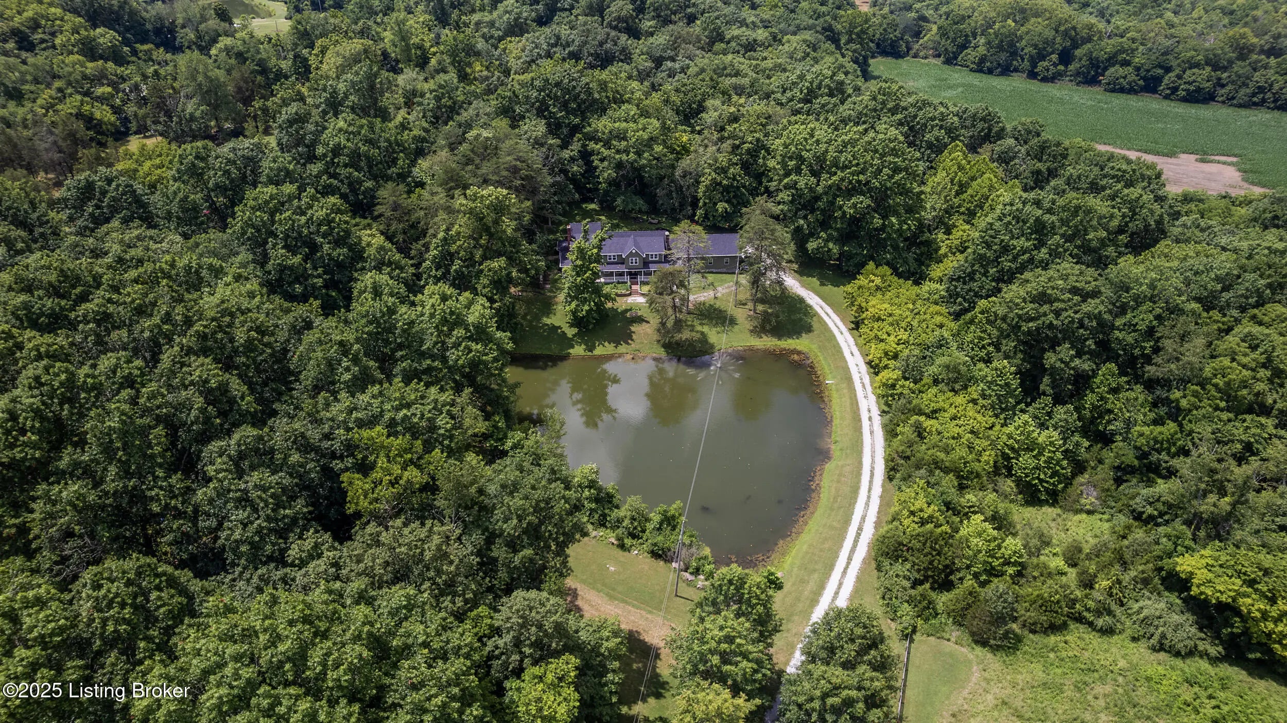 Incredible opportunity at $895,000! You won't find another property like this at this price point—6.6 private acres, completely rebuilt in 2022, high-end finishes, and total privacy. This is a rare offering—schedule your showing now while it's still available. Need a first-floor bedroom? Done. A flexible main-level room with a beautiful fireplace and adjacent full bath access—currently used as a formal dining room—offers excellent potential for a first-floor bedroom, guest suite, or home office. Enter into this private oasis, where a beautiful, expansive pond and complete privacy immediately set the tone. This completely rebuilt (2022) luxury estate sits on 6.6 tree-lined acres, offering an exceptional blend of privacy, style, and modern function. The open floor plan showcases soaring ceilings, hardwood floors, and a chef's kitchen with custom cabinetry, high-end appliances, and stone countertopsflowing seamlessly into the dining area and a stunning great room with fireplace. Step outside to your private outdoor living retreat, complete with a fully equipped outdoor kitchen, large flat-screen TV, and seating area designed for year-round enjoyment and entertaining. Upstairs, the luxurious primary suite features two walk-in closets, a soaking tub, walk-in shower, dual vanities, and a custom makeup station. Two additional bedrooms and two full baths complete the second level, all offering peaceful scenic views. Additional highlights include a custom laundry room with dog shower, full unfinished walk-out basement, and all major systems replaced in 2022including roof, HVAC, plumbing, electrical, appliances, and more. Conveniently located with quick access to Hwy 265 and I-64, close to parks, schools, shopping, and dining. Don't miss this one-of-a-kind property at an incredible value.