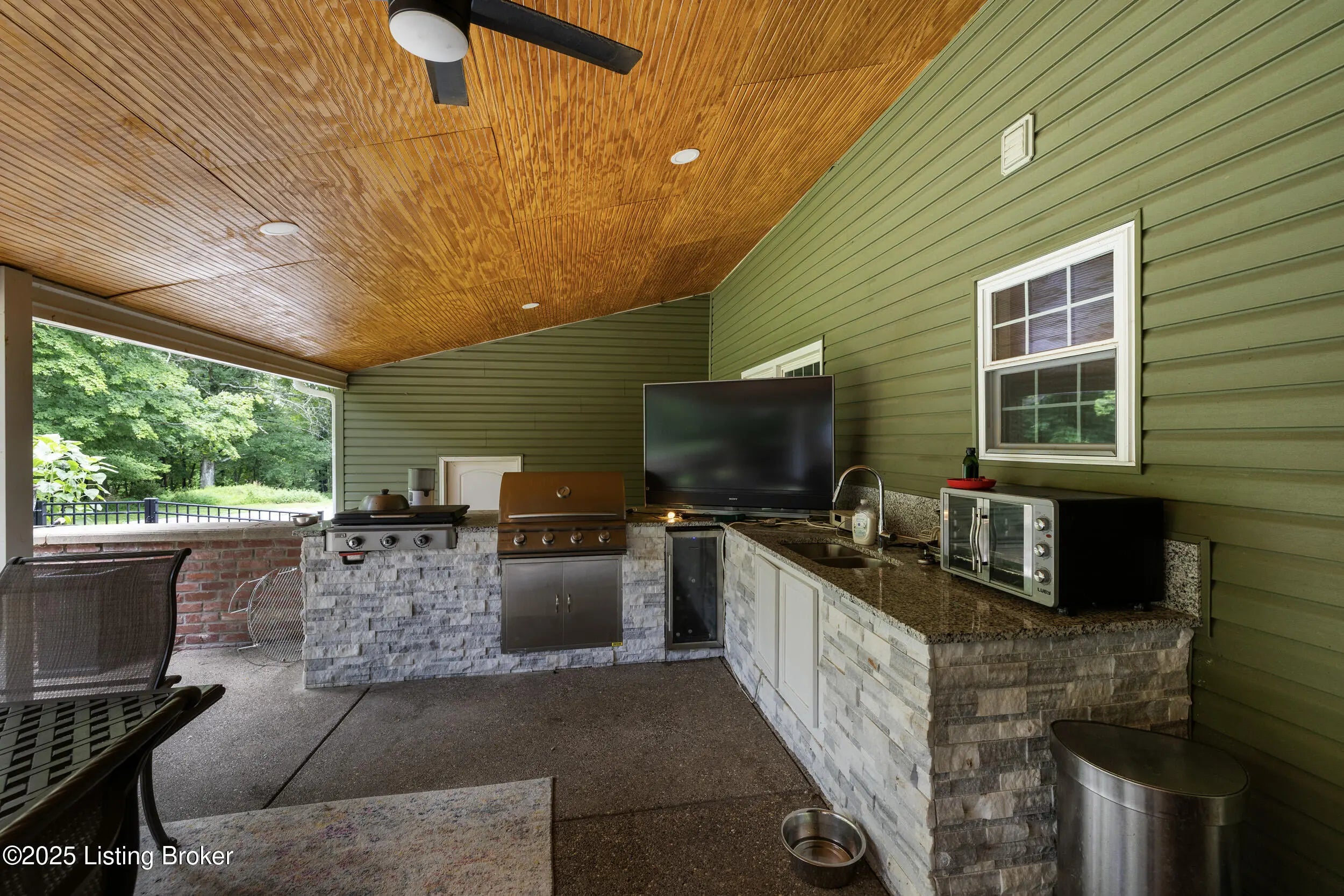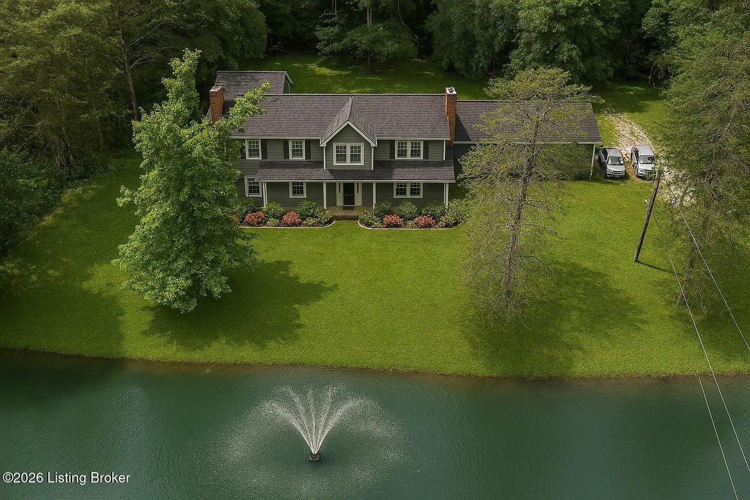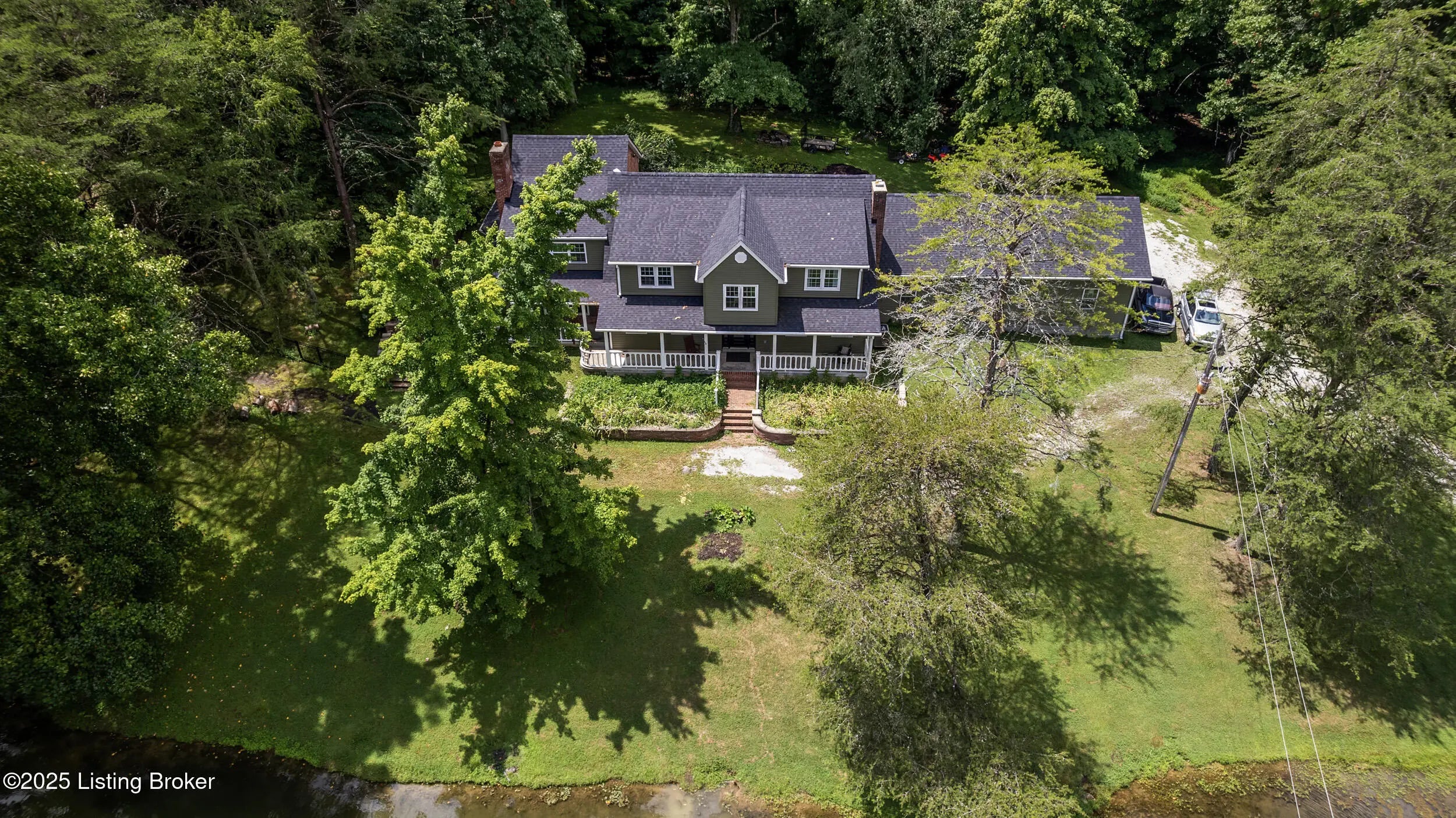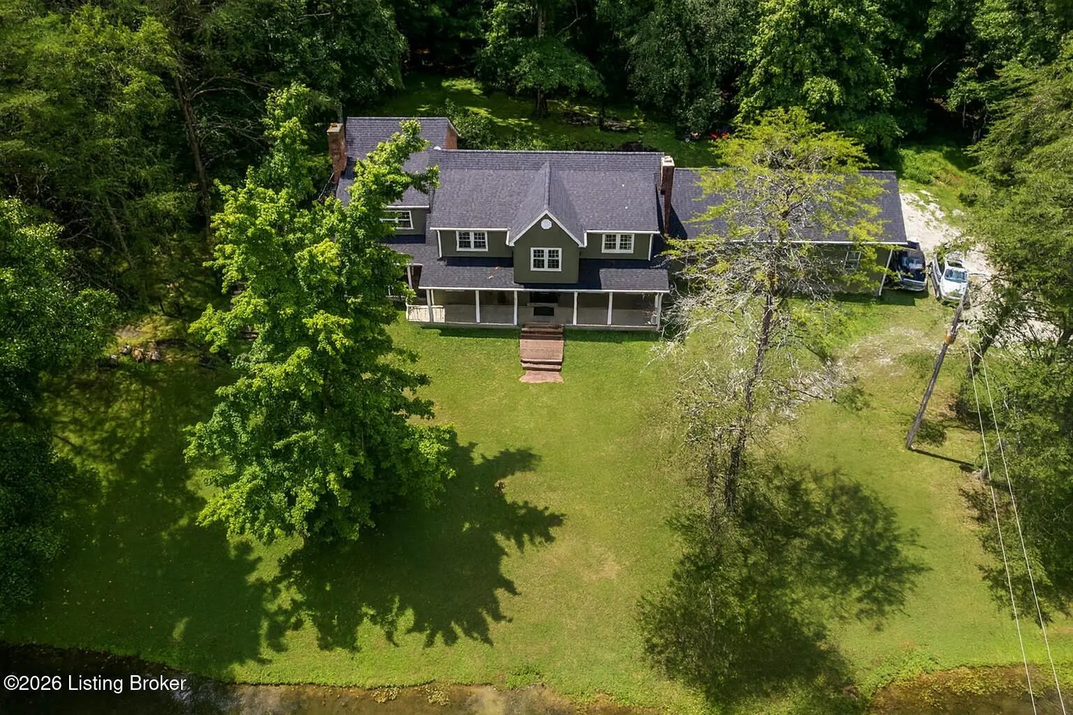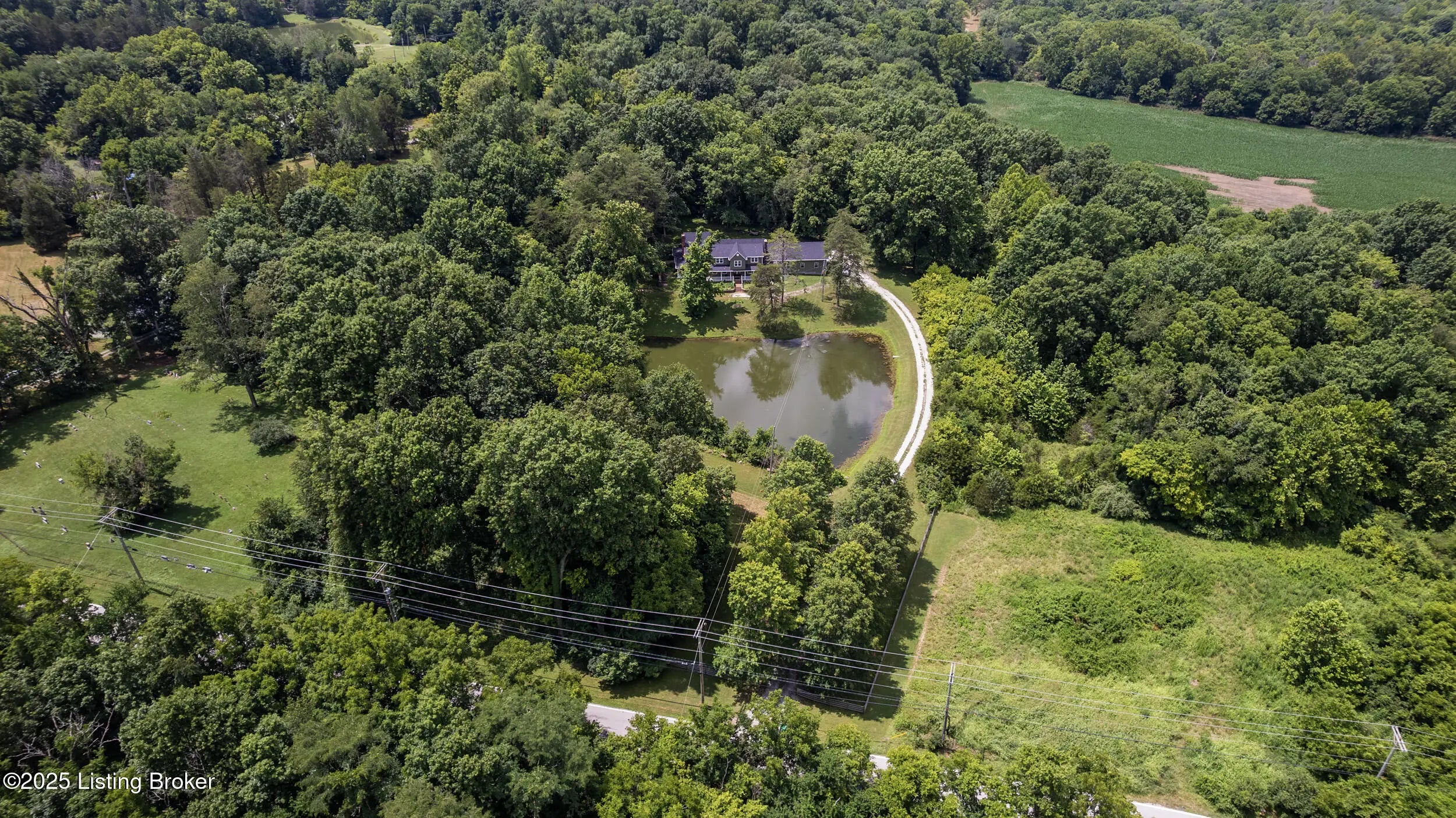 Incredible opportunity at $895,000! You won't find another property like this at this price point—6.6 private acres, completely rebuilt in 2022, high-end finishes, and total privacy. This is a rare offering—schedule your showing now while it's still available. Need a first-floor bedroom? Done. A flexible main-level room with a beautiful fireplace and adjacent full bath access—currently used as a formal dining room—offers excellent potential for a first-floor bedroom, guest suite, or home office. Enter into this private oasis, where a beautiful, expansive pond and complete privacy immediately set the tone. This completely rebuilt (2022) luxury estate sits on 6.6 tree-lined acres, offering an exceptional blend of privacy, style, and modern function. The open floor plan showcases soaring ceilings, hardwood floors, and a chef's kitchen with custom cabinetry, high-end appliances, and stone countertopsflowing seamlessly into the dining area and a stunning great room with fireplace. Step outside to your private outdoor living retreat, complete with a fully equipped outdoor kitchen, large flat-screen TV, and seating area designed for year-round enjoyment and entertaining. Upstairs, the luxurious primary suite features two walk-in closets, a soaking tub, walk-in shower, dual vanities, and a custom makeup station. Two additional bedrooms and two full baths complete the second level, all offering peaceful scenic views. Additional highlights include a custom laundry room with dog shower, full unfinished walk-out basement, and all major systems replaced in 2022including roof, HVAC, plumbing, electrical, appliances, and more. Conveniently located with quick access to Hwy 265 and I-64, close to parks, schools, shopping, and dining. Don't miss this one-of-a-kind property at an incredible value.
