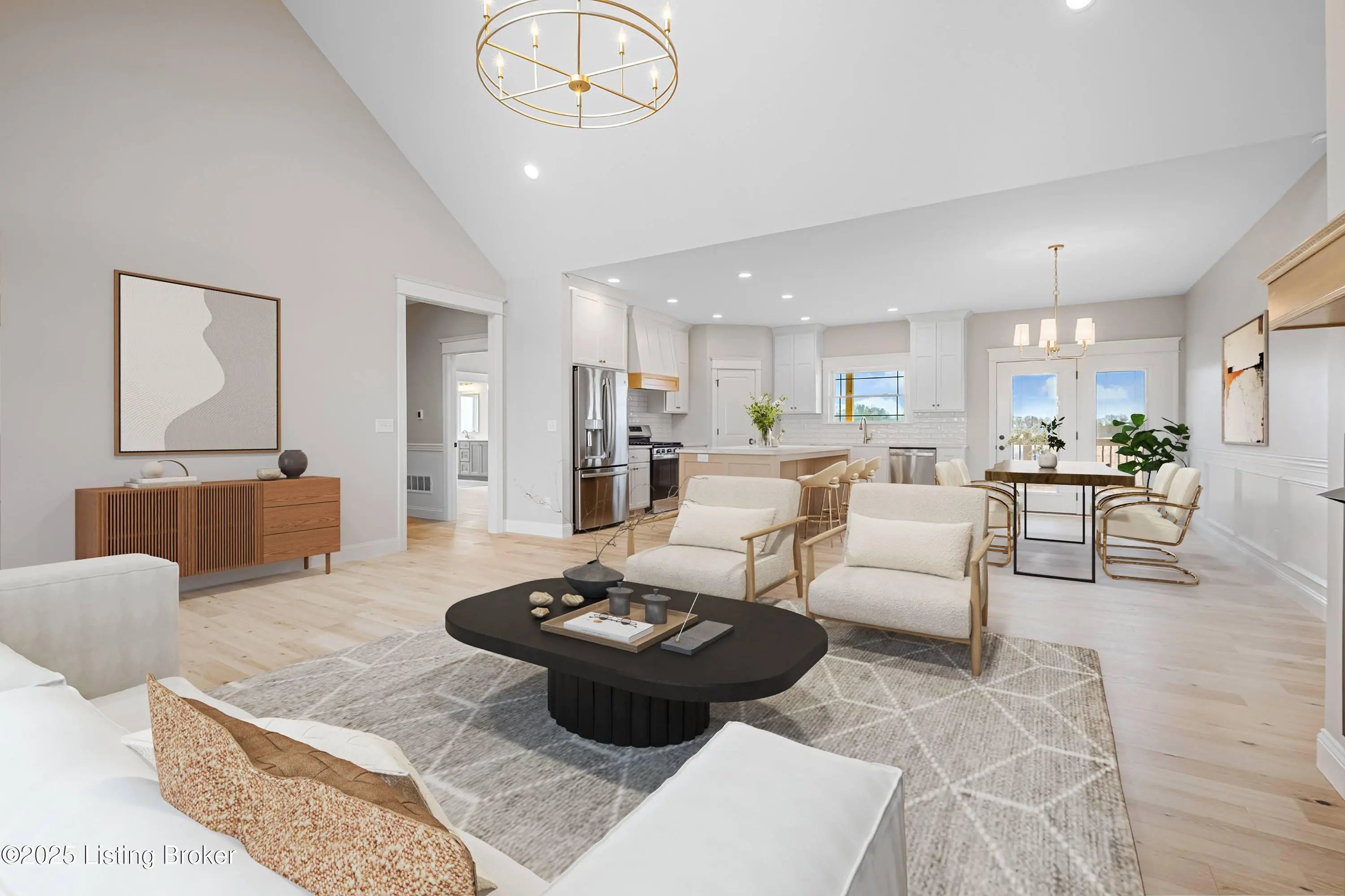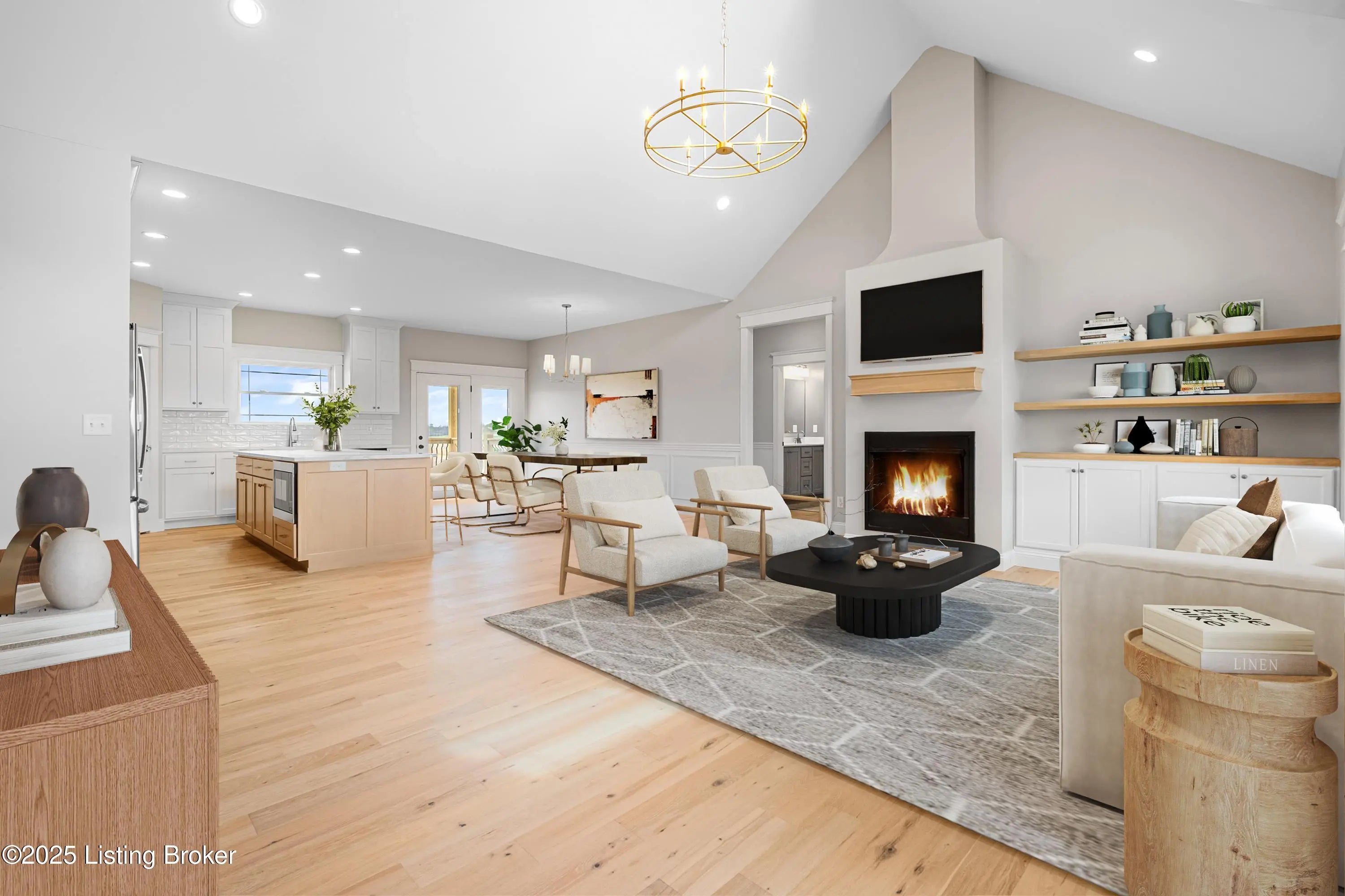 PRICE REFLECTS COST OF FINISHING THE BASEMENT. BASEMENT CAN BE FINISHED WITHIN 45 DAYS UPON CONTRACT ACCEPTANCE. This walk-out ranch with an open floor plan has high-end details throughout. The kitchen features custom cabinets to the ceiling along with a range hood and an 8-foot island. Primary suite features: walk-in shower, free standing tub, and huge walk-in closet. The laundry room connects to the primary closet and includes a mud sink with custom cabinets. Finishes include engineered hardwood floors, vaulted ceilings, custom trim package, crown molding, stained beams, and built-in shelving throughout. 2 car garage on main level and 3rd bay in the basement.