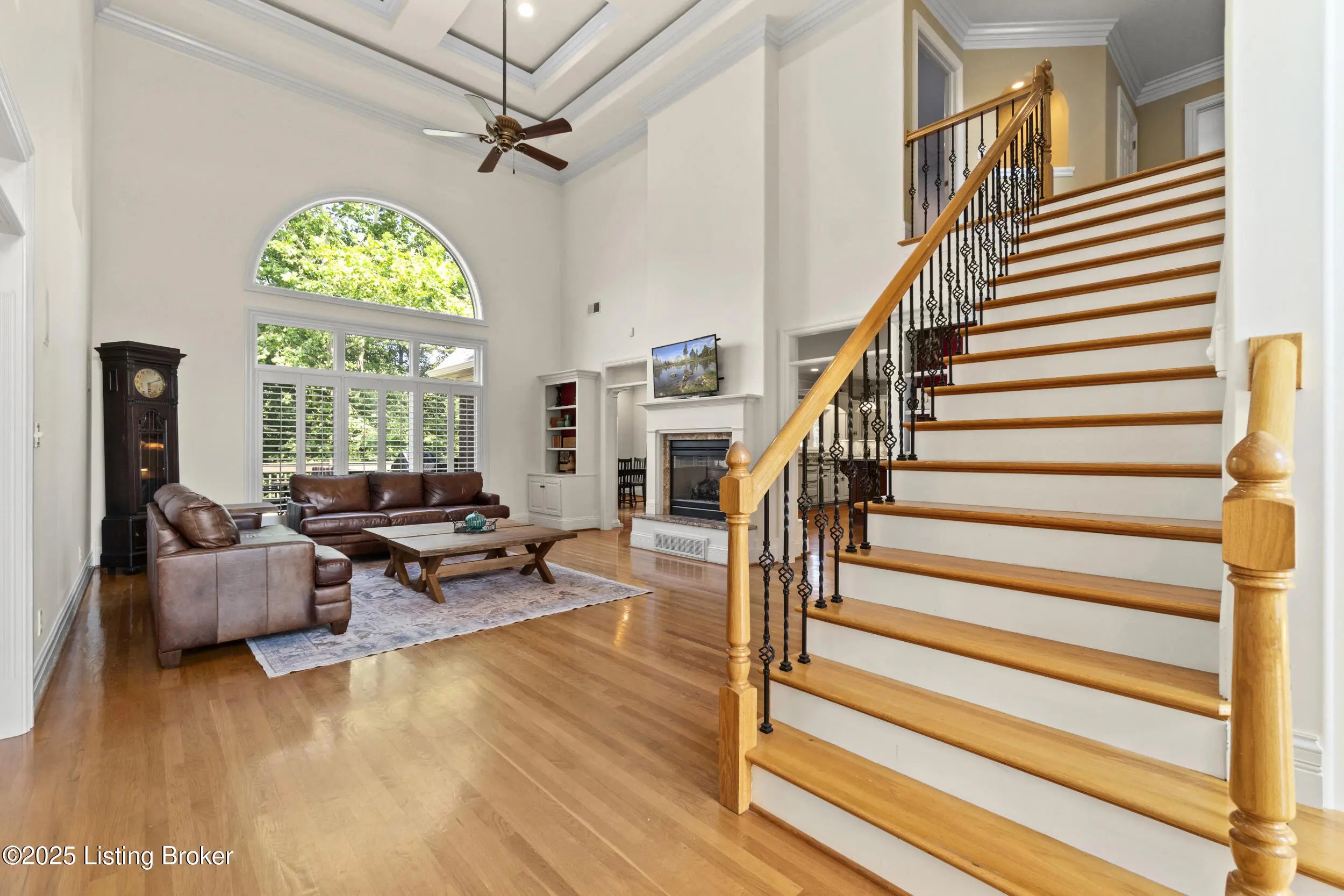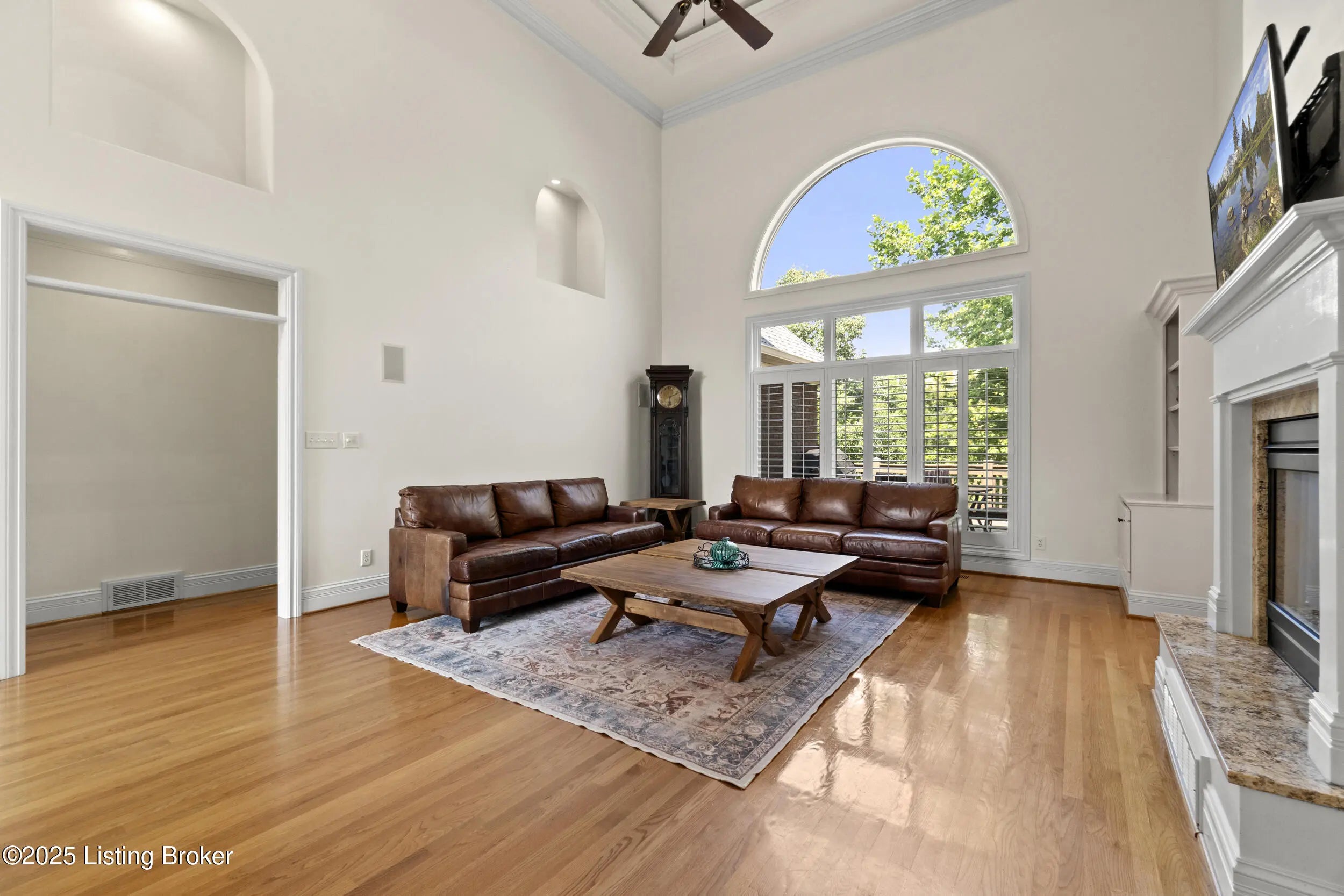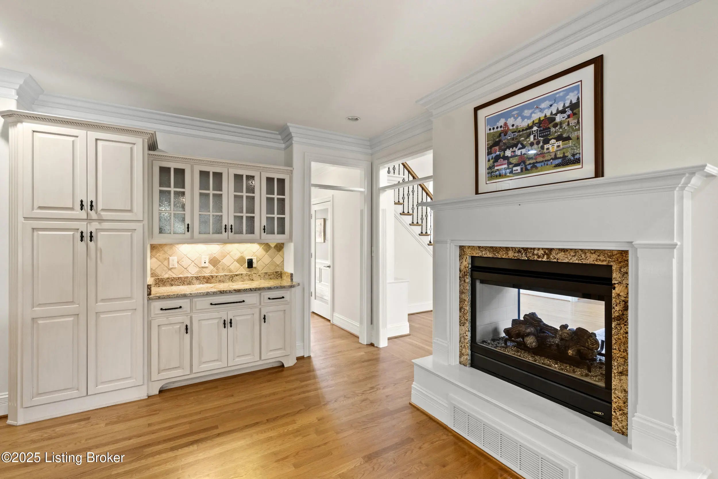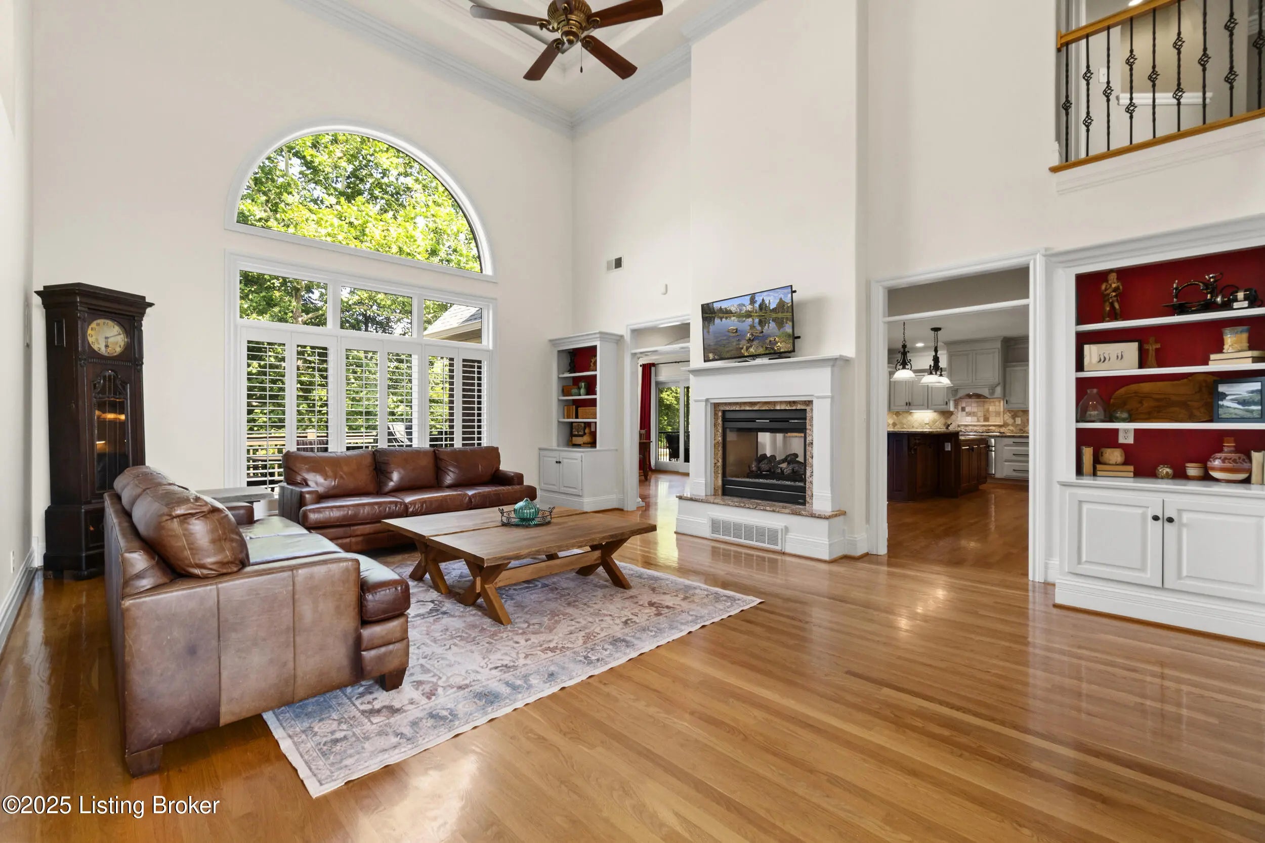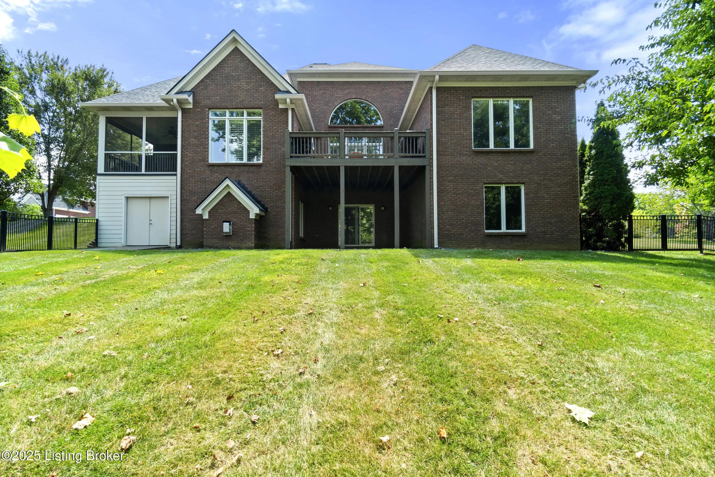 FIRST FLOOR FRESHLY PAINTED! Welcome to luxury living in Goshen, KY—with a brand new roof! This stunning 6-bedroom, 5.5-bath home sits on a beautifully landscaped 0.69-acre corner lot just minutes from the award-winning North Oldham school campus, the new Goshen Library, Creasey Mahan Nature Preserve, and Prospect shopping and dining. Step into the grand two-story foyer where gleaming hardwood floors with intricate inlays, soaring ceilings, and a dramatic arched window make a striking first impression. Elegant crown molding and custom trim continue throughout the home, elevating every space with timeless style. The living room is bathed in natural light thanks to oversized windows and features a dual-sided fireplace, vaulted ceilings, and built-in shelving—perfect for both quiet evenings and entertaining guests. This space flows seamlessly into the gourmet kitchen, where you'll find custom cabinetry, granite countertops, a massive island with seating, stainless steel appliances, an ornate tile backsplash, and gorgeous pendant lighting. The adjacent breakfast room, with arched vaulted ceilings and windows on three sides, opens directly to both decks for an ideal indoor/outdoor dining experience. Enjoy formal meals in the dedicated dining room, which boasts wainscoting, crown molding, and an abundance of natural light. A nearby laundry room offers built-in cabinetry, a utility sink, and ceramic tile flooring, while a half bath adds convenience with rich wood finishes. The main-level primary suite is a luxurious retreat with a double tray ceiling, private deck access, and a spa-like ensuite bathroom featuring a soaking tub framed by columns, a walk-in tiled shower, dual vanities, and a beautiful stained-glass window. A spacious walk-in closet with built-ins completes this restful haven. Nearby, a beautiful office showcases custom built-ins, a second fireplace, and a stunning stained-glass windowideal for a home office, library, or formal sitting room. Also on the main level is a guest bedroom with its own ensuite bath, perfect for multigenerational living or overnight visitors. Upstairs, you'll find three additional bedrooms and a bonus room: one with a private ensuite, two connected by a stylish Jack-and-Jill bathroom, and the bonus room perfect for a playroom, studio, or private retreat. The finished basement offers even more living space, including an expansive entertainment area with a third fireplace, custom built-ins, a wet bar, and a full bathroom. It also includes an additional bedroom, making it a perfect space for guests, extended stays, or even a home gym or hobby room. Whether you're hosting game nights, movie marathons, or weekend visitors, this level offers endless possibilities. Exterior features are just as impressive, including a 3-car attached garage with a man door, a "John Deere garage" for storing lawn equipment with direct backyard access, a spacious U-shaped driveway, a screened-in porch, and a deck perfect for relaxing or grilling. A covered patio beneath the deck provides shaded outdoor space, while a dedicated landscape garage/storage area offers practical storage for tools and equipment. The home also boasts a fully fenced-in backyard, ideal for pets, play, or private enjoyment of your outdoor oasis. This extraordinary home truly offers the perfect blend of elegance, comfort, and functioninside and out. Schedule your private showing today and experience all that 13203 Hampton Circle has to offer!
