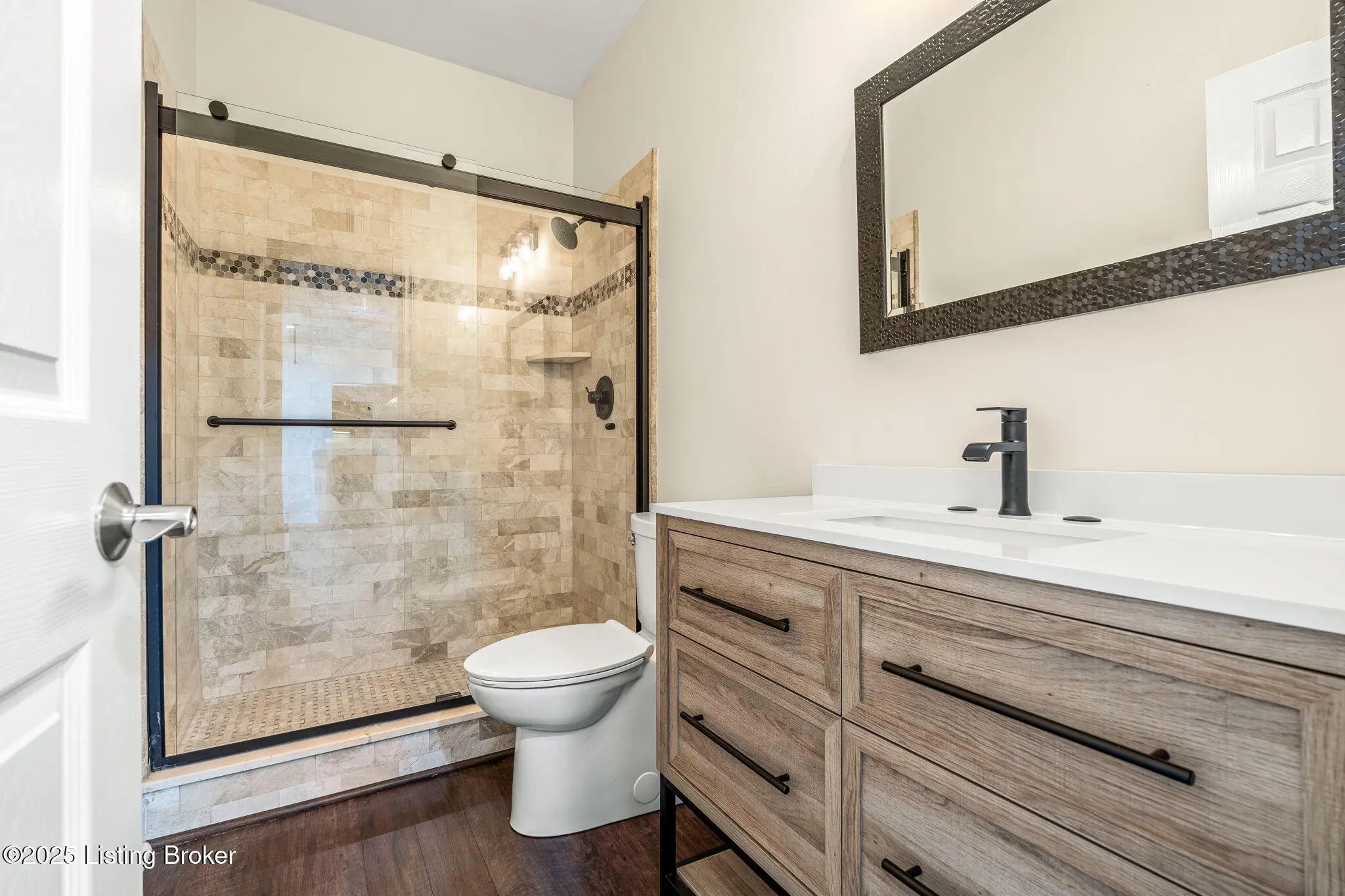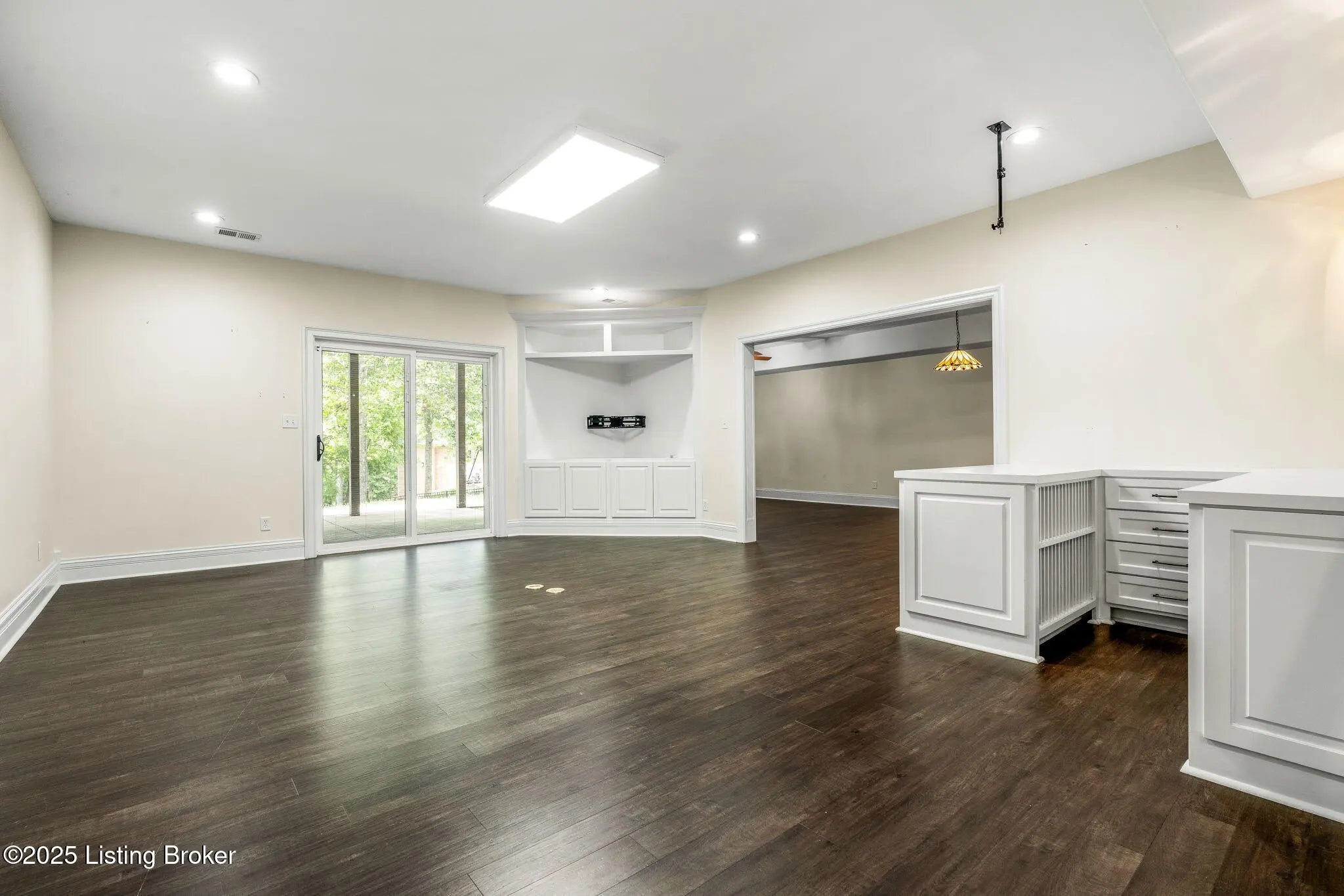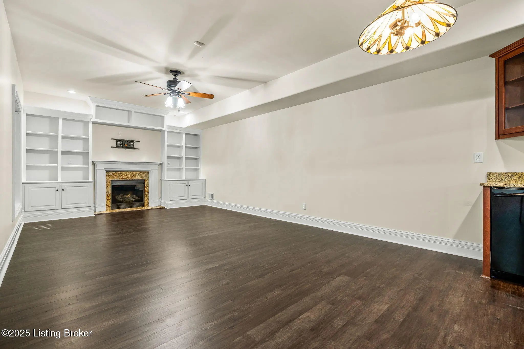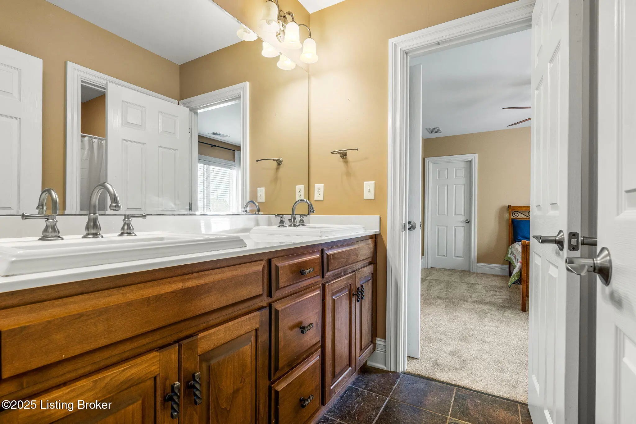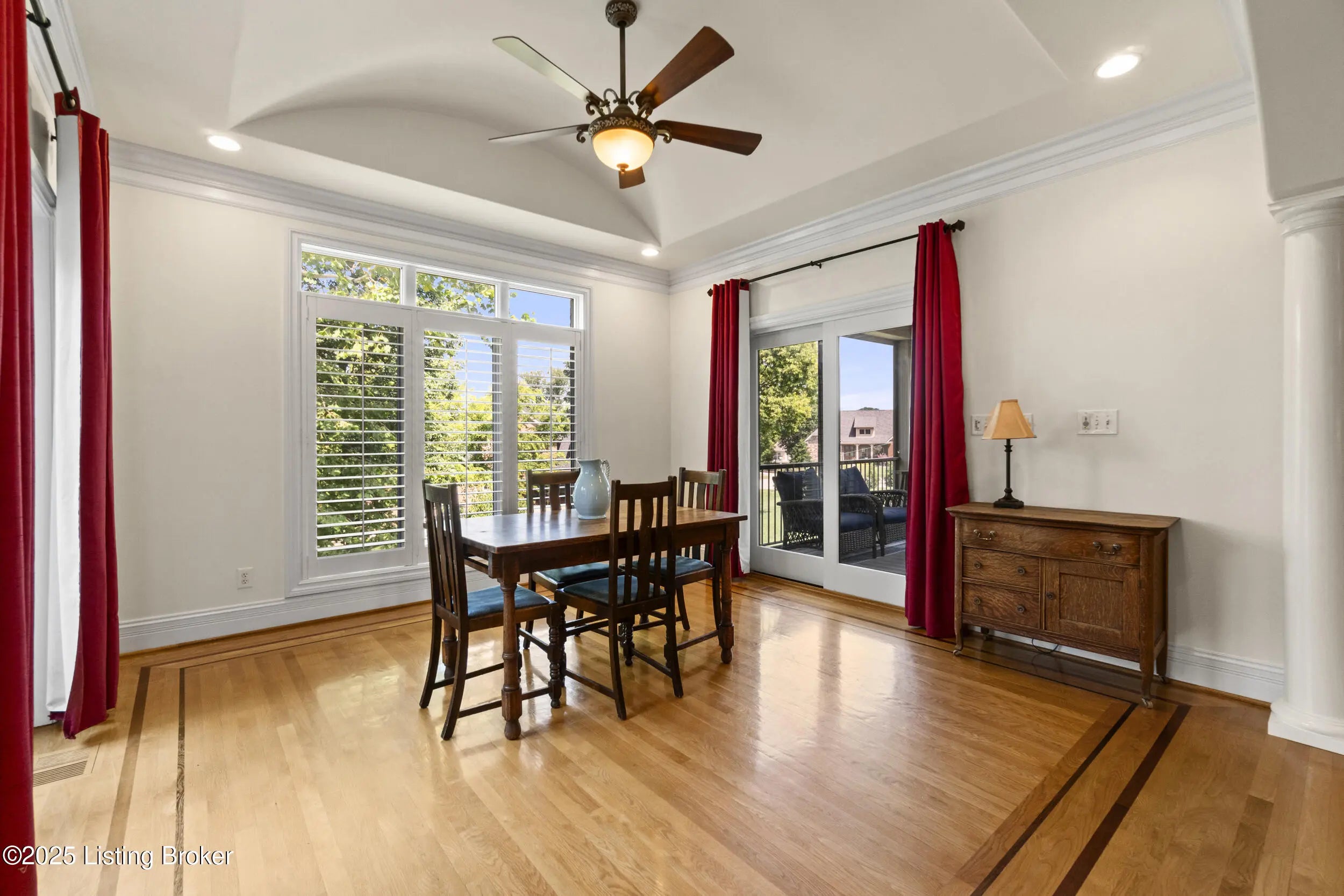 FIRST FLOOR FRESHLY PAINTED! Welcome to luxury living in Goshen, KY—with a brand new roof! This stunning 6-bedroom, 5.5-bath home sits on a beautifully landscaped 0.69-acre corner lot just minutes from the award-winning North Oldham school campus, the new Goshen Library, Creasey Mahan Nature Preserve, and Prospect shopping and dining. Step into the grand two-story foyer where gleaming hardwood floors with intricate inlays, soaring ceilings, and a dramatic arched window make a striking first impression. Elegant crown molding and custom trim continue throughout the home, elevating every space with timeless style. The living room is bathed in natural light thanks to oversized windows and features a dual-sided fireplace, vaulted ceilings, and built-in shelving—perfect for both quiet evenings and entertaining guests. This space flows seamlessly into the gourmet kitchen, where you'll find custom cabinetry, granite countertops, a massive island with seating, stainless steel appliances, an ornate tile backsplash, and gorgeous pendant lighting. The adjacent breakfast room, with arched vaulted ceilings and windows on three sides, opens directly to both decks for an ideal indoor/outdoor dining experience. Enjoy formal meals in the dedicated dining room, which boasts wainscoting, crown molding, and an abundance of natural light. A nearby laundry room offers built-in cabinetry, a utility sink, and ceramic tile flooring, while a half bath adds convenience with rich wood finishes. The main-level primary suite is a luxurious retreat with a double tray ceiling, private deck access, and a spa-like ensuite bathroom featuring a soaking tub framed by columns, a walk-in tiled shower, dual vanities, and a beautiful stained-glass window. A spacious walk-in closet with built-ins completes this restful haven. Nearby, a beautiful office showcases custom built-ins, a second fireplace, and a stunning stained-glass windowideal for a home office, library, or formal sitting room. Also on the main level is a guest bedroom with its own ensuite bath, perfect for multigenerational living or overnight visitors. Upstairs, you'll find three additional bedrooms and a bonus room: one with a private ensuite, two connected by a stylish Jack-and-Jill bathroom, and the bonus room perfect for a playroom, studio, or private retreat. The finished basement offers even more living space, including an expansive entertainment area with a third fireplace, custom built-ins, a wet bar, and a full bathroom. It also includes an additional bedroom, making it a perfect space for guests, extended stays, or even a home gym or hobby room. Whether you're hosting game nights, movie marathons, or weekend visitors, this level offers endless possibilities. Exterior features are just as impressive, including a 3-car attached garage with a man door, a "John Deere garage" for storing lawn equipment with direct backyard access, a spacious U-shaped driveway, a screened-in porch, and a deck perfect for relaxing or grilling. A covered patio beneath the deck provides shaded outdoor space, while a dedicated landscape garage/storage area offers practical storage for tools and equipment. The home also boasts a fully fenced-in backyard, ideal for pets, play, or private enjoyment of your outdoor oasis. This extraordinary home truly offers the perfect blend of elegance, comfort, and functioninside and out. Schedule your private showing today and experience all that 13203 Hampton Circle has to offer!