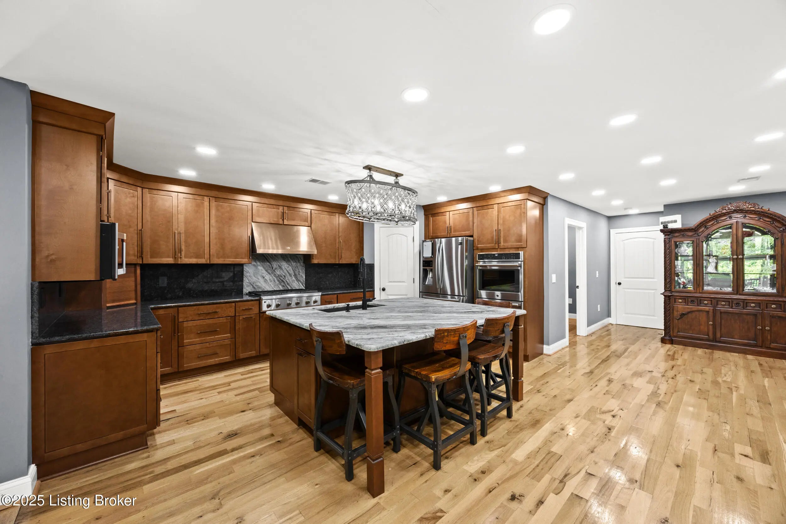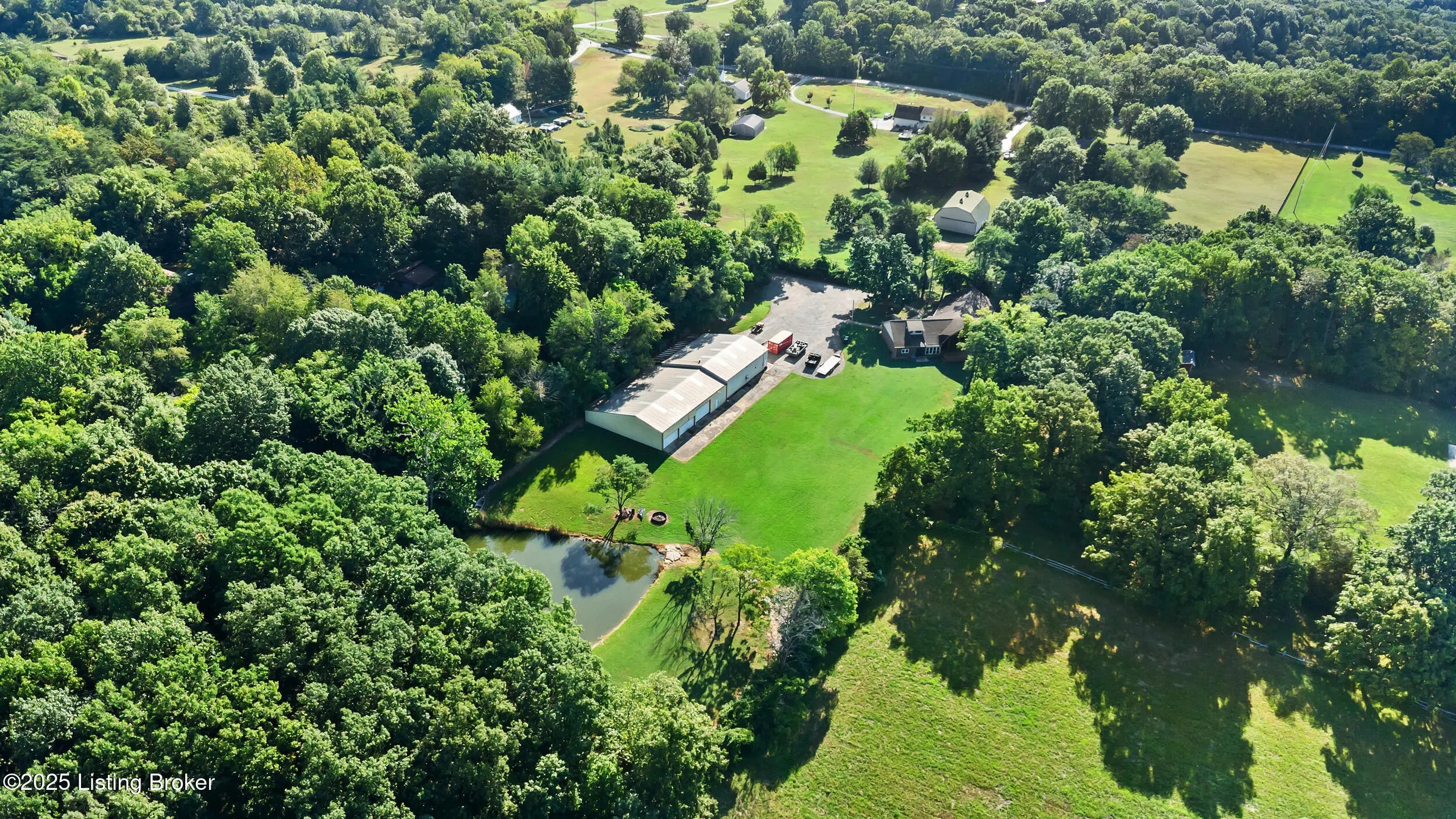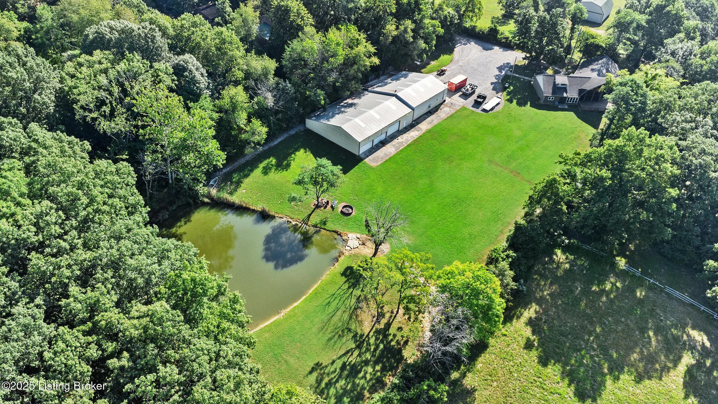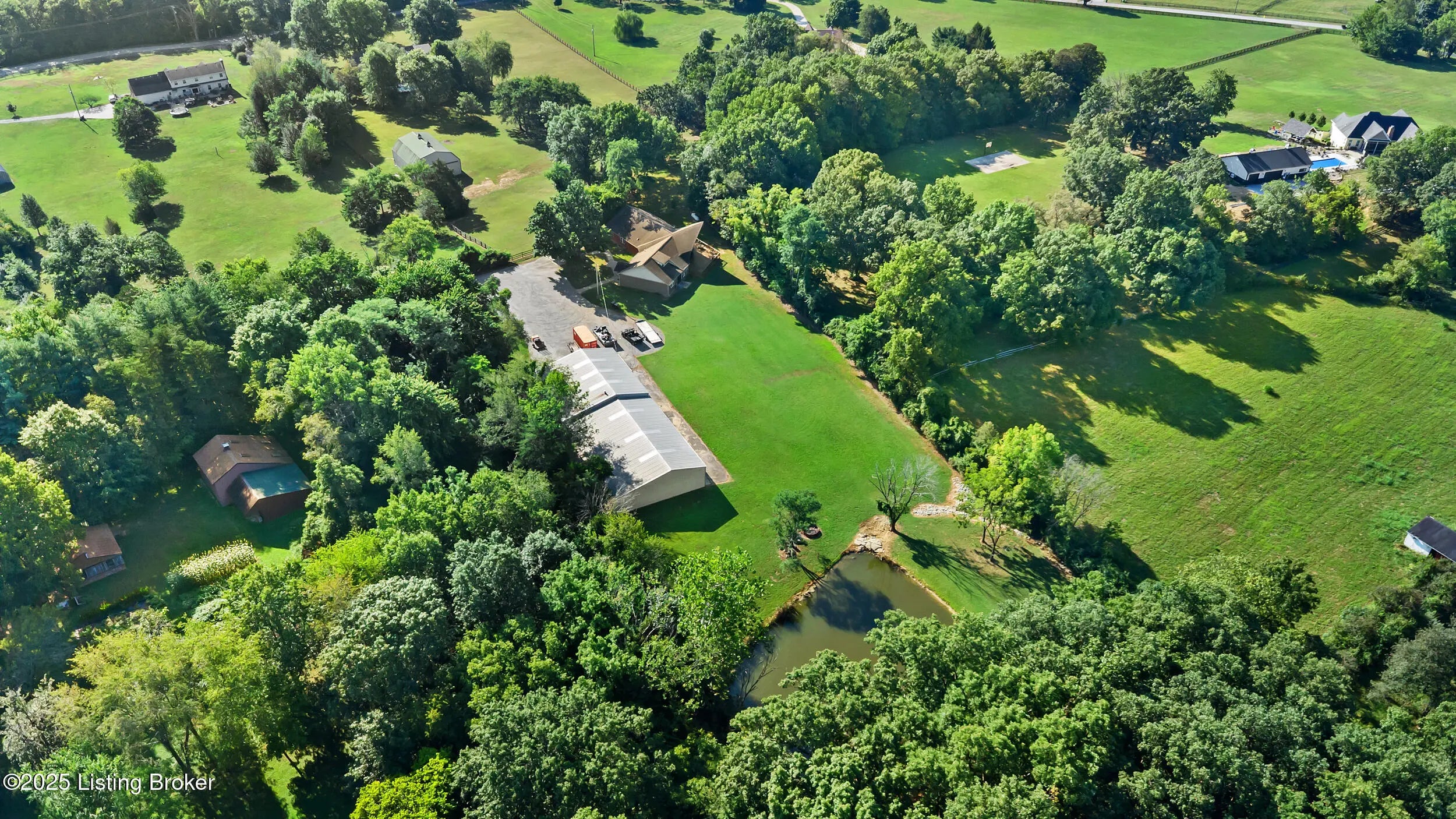 Luxury, privacy, and nature come together in perfect harmony at 9905 Tunnel Way. This stunning 4 bed, 3 1/2 bath home offers the ultimate lifestyle, whether you're entertaining guests or simply unwinding in your own private paradise. Step into an expansive, open living area filled with natural light and breathtaking views of your own private oasis. Large windows frame the scenic surroundings, while high ceilings and thoughtful design create a bright and inviting space. The kitchen is designed to impress and built for both function and style. Ceiling-high cabinets provide an abundance of storage while adding a sense of grandeur to the space. At the heart of the room, a massive island with leathered marble countertops offer plenty of prep space, casual seating, and a stunning focal point. A farmhouse sink ties the design together with timeless charm, making this kitchen both a chef's dream and the ultimate gathering place for family and friends. The primary suite is nothing short of extraordinary. It is spacious, luxurious, and designed with comfort in mind. Envision your oversized bedroom and peaceful retreat in the color you want as the seller is willing to paint the room how you want it! This room also includes direct access to a versatile second-floor bonus room, perfect for a private office or lounge area. A climate controlled sunroom adds year-round relaxation right at your fingertips. The ensuite is a true spa experience, featuring a giant walk-in closet, dual vanities, a private water closet, and a breathtaking shower room that must be seen to be believed. This suite blends elegance and functionality, creating the ultimate personal sanctuary. The second floor media room is ideal for movie nights, gaming, or simply relaxing with family and friends. With plenty of room for oversized seating, a large screen, or even a home theater setup, it's designed to be the ultimate entertainment hub. Outdoors, enjoy vacation living every day with your serene pond, ideal for fishing, relaxing, or watching the sunset. A massive 5,000+ square foot outbuilding offers exceptional functionality and space, ideal for contractors, builders, or anyone needing serious storage and workspace. Featuring three 12-foot overhead doors, it easily accommodates large construction equipment, vehicles, and machinery. The expansive interior provides high ceilings and wide open floor space, designed to handle heavy-duty use. With its versatile layout, there's plenty of room for workshop areas, materials storage, or even a business operation base. Whether for commercial use or personal projects, this outbuilding delivers the space, access, and strength needed for any demanding job. If you're dreaming of a home that feels like a getaway every day, this is it. Don't miss your chance to own a truly exceptional property that blends elegance, functionality, and natural beauty.