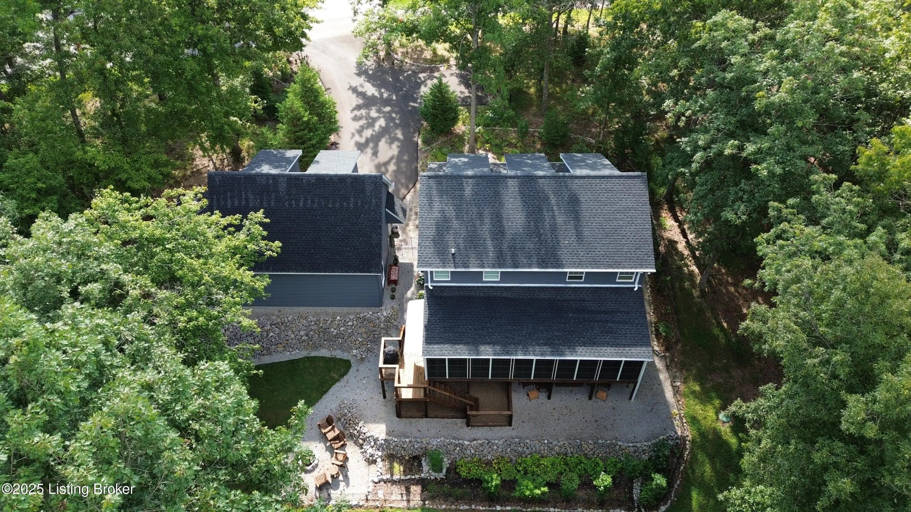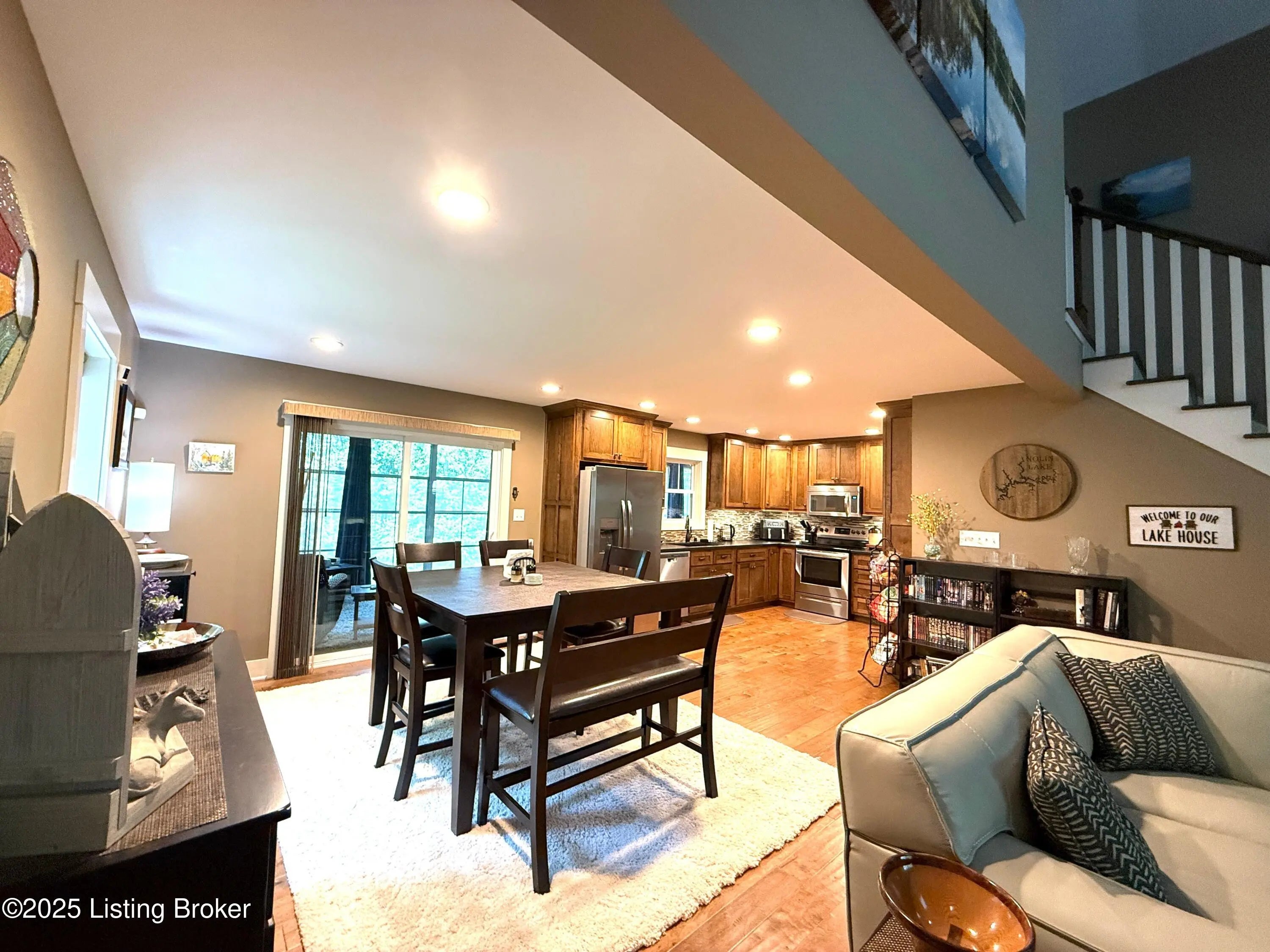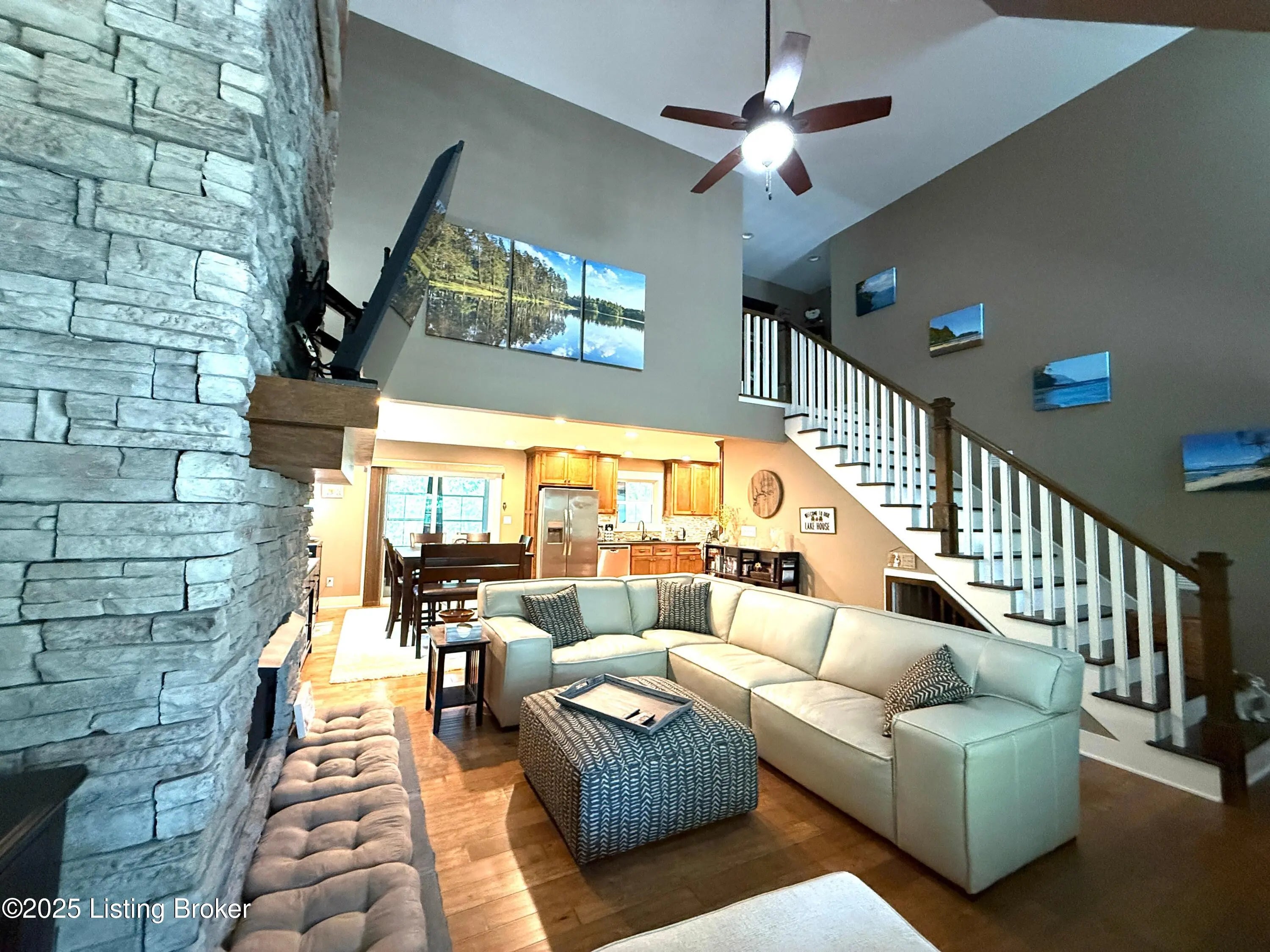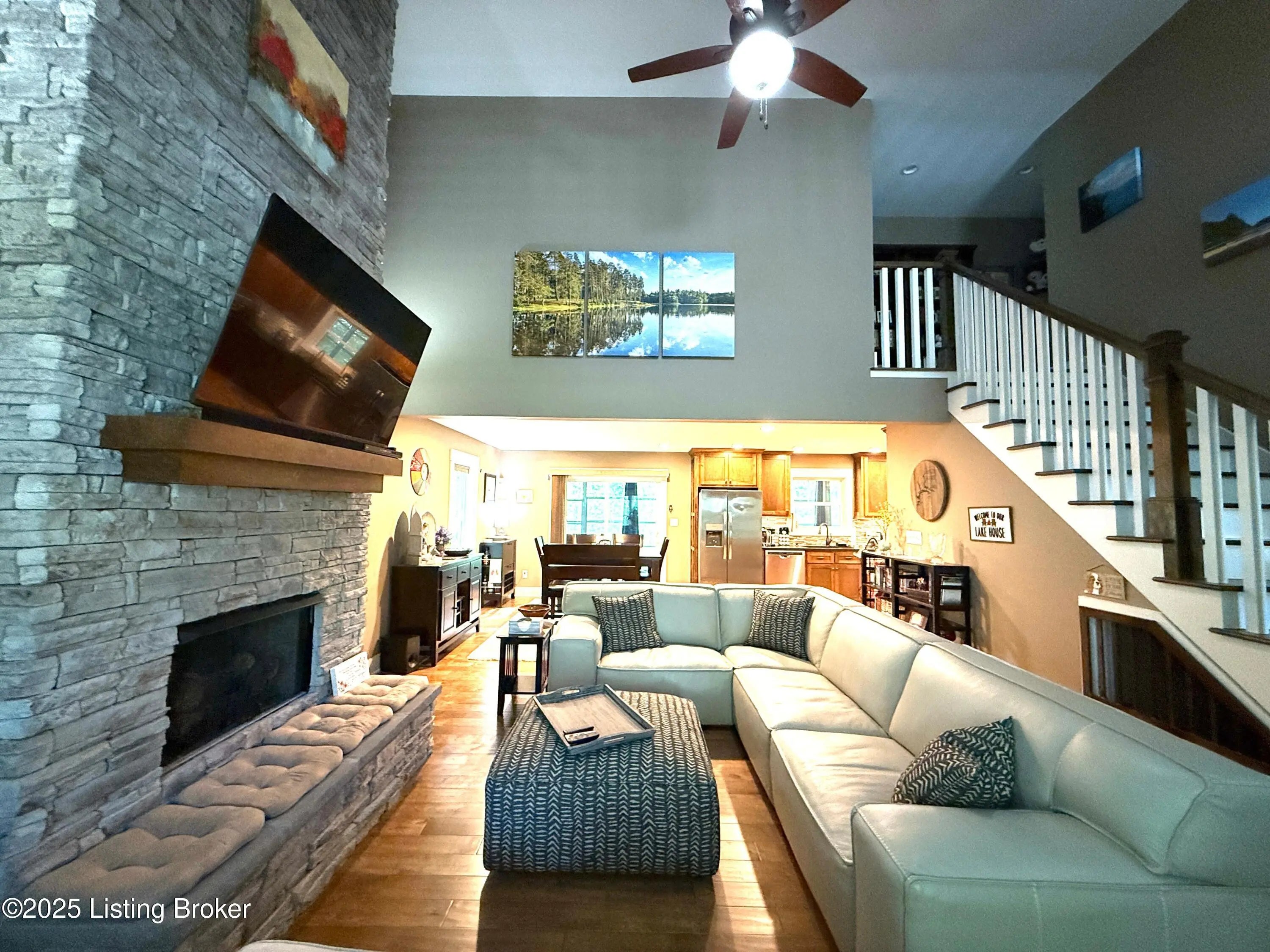 DISCOVER THIS YEAR AROUND LAKE RETREAT in one of Nolin Lake's most sought-after gated communities, complete with paved roads. A public boat ramp is less than 2 miles away at the Moutardier Recreation Area. A covered boat slip at the marina is available for transfer. Tucked away on a quiet cul-de-sac, this inviting lakehouse offers the perfect blend of comfort, privacy, and thoughtful updates. A paved driveway (fall 2024) leads to the home, where recent improvements—including a new roof, gutters, and downspouts on both the house and garage (fall 2024)—provide peace of mind for years to come. Inside, you'll find spacious bedrooms featuring walk-in closets throughout, along with two full baths equipped with double vanities for added convenience. Outdoor living is just as impressive, with the decks, stairs, and landings freshly resealed in fall 2025, creating ideal spaces to relax or entertain. The fenced entertaining areas are designed for memorable gatherings, complete with a fire ring and a lighted covered seating area for year-round enjoyment. An oversized 2-story garage offers abundant space for vehicles, storage, or hobbies. Additional highlights include a Ring security system already in place, making this lake retreat as practical as it is charming.