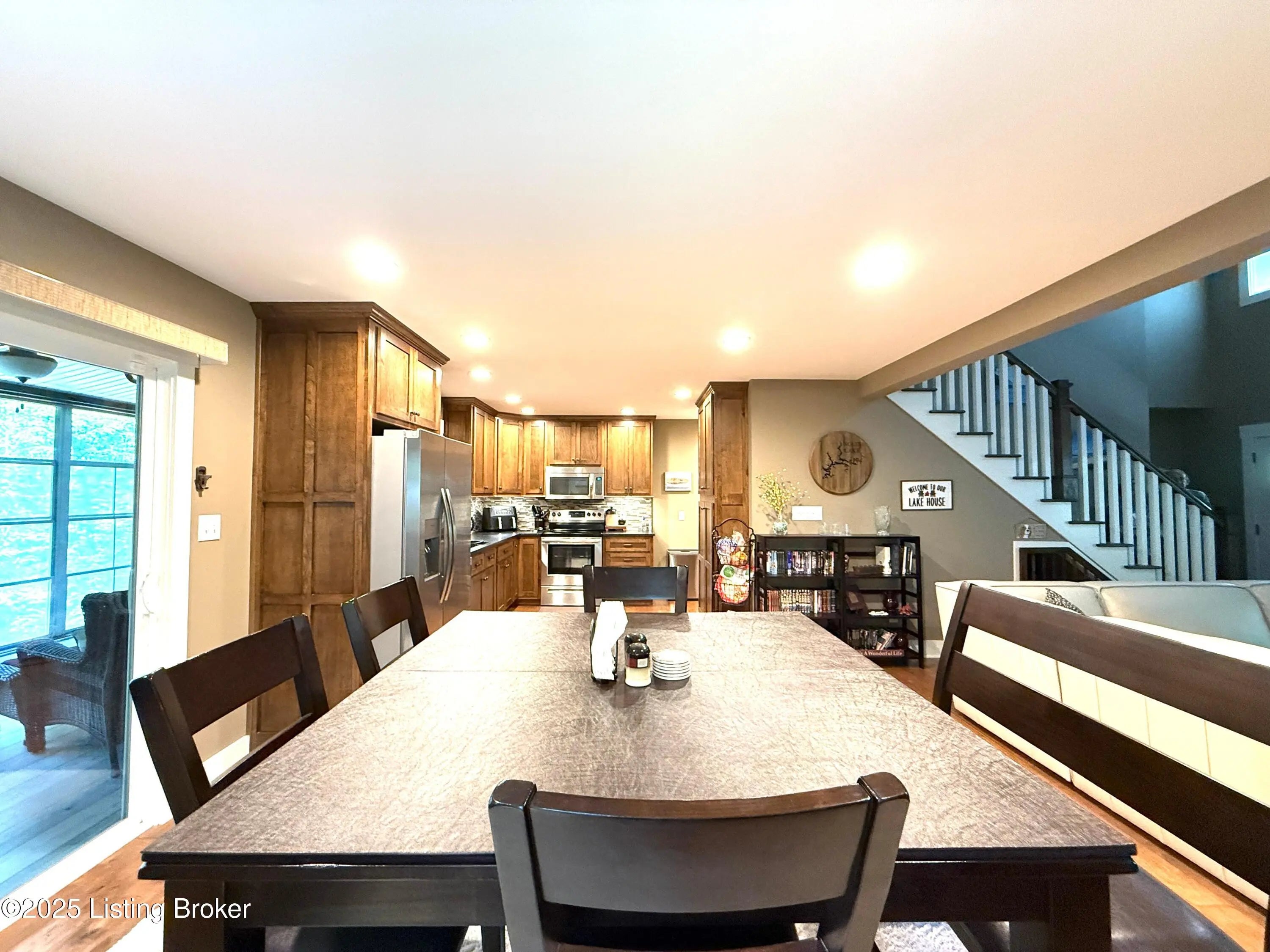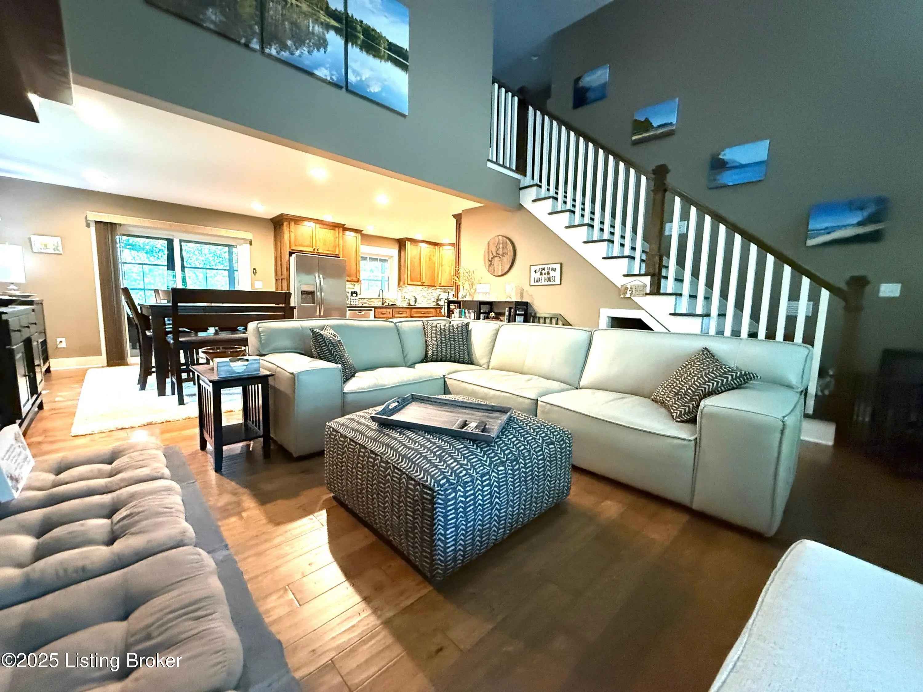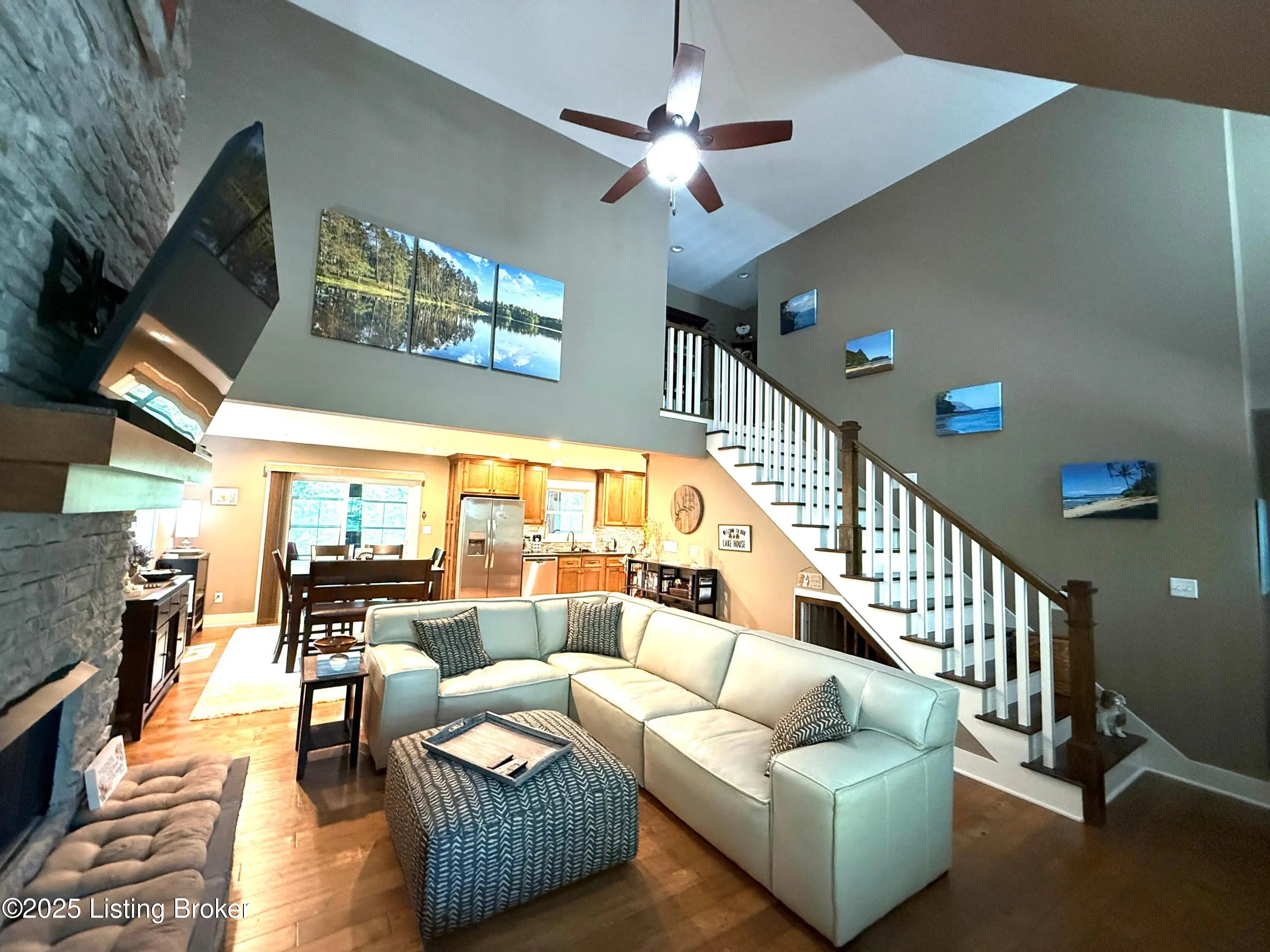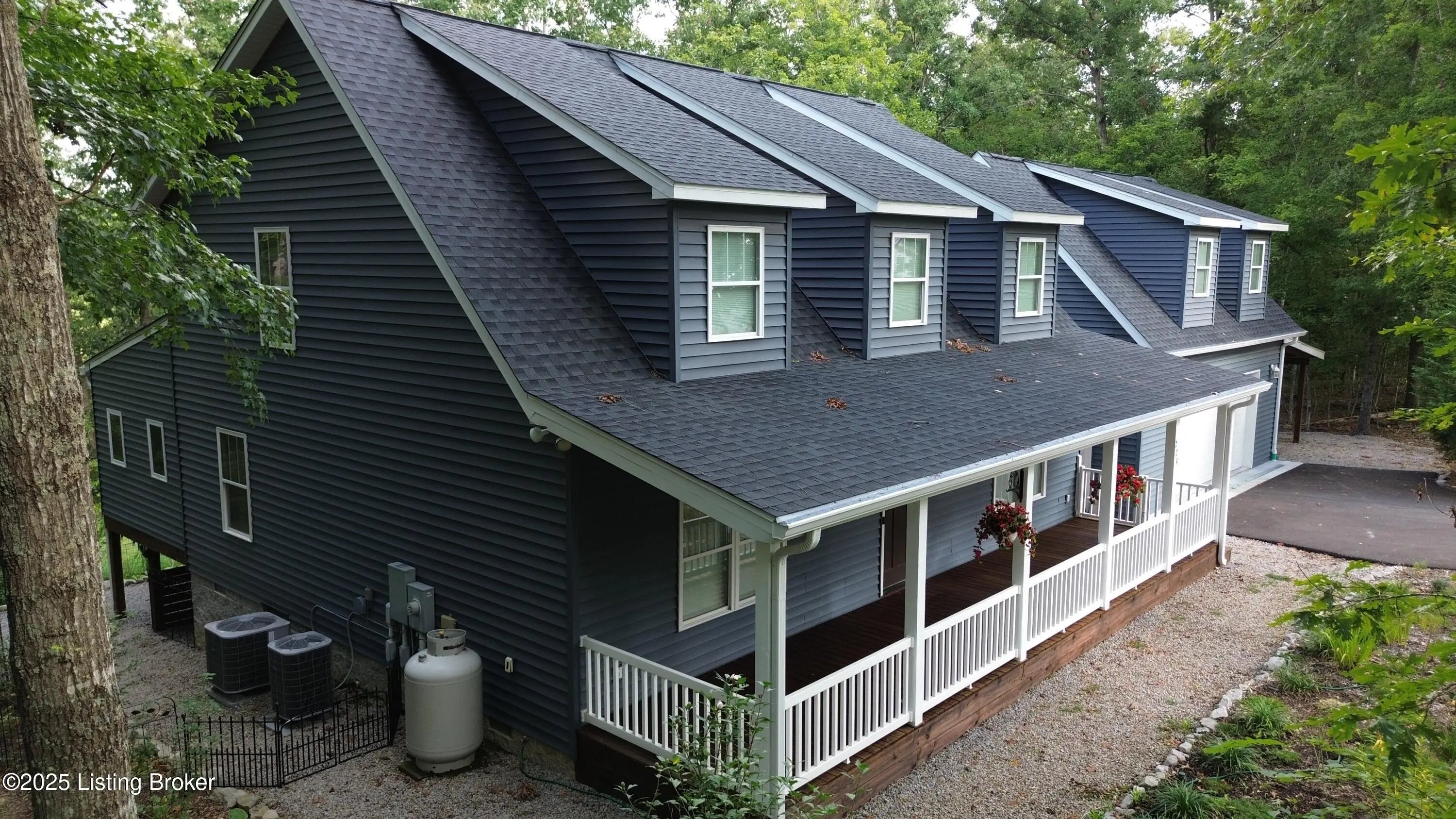 DISCOVER THIS YEAR AROUND LAKE RETREAT in one of Nolin Lake's most sought-after gated communities, complete with paved roads. A public boat ramp is less than 2 miles away at the Moutardier Recreation Area. A covered boat slip at the marina is available for transfer. Tucked away on a quiet cul-de-sac, this inviting lakehouse offers the perfect blend of comfort, privacy, and thoughtful updates. A paved driveway (fall 2024) leads to the home, where recent improvements—including a new roof, gutters, and downspouts on both the house and garage (fall 2024)—provide peace of mind for years to come. Inside, you'll find spacious bedrooms featuring walk-in closets throughout, along with two full baths equipped with double vanities for added convenience. Outdoor living is just as impressive, with the decks, stairs, and landings freshly resealed in fall 2025, creating ideal spaces to relax or entertain. The fenced entertaining areas are designed for memorable gatherings, complete with a fire ring and a lighted covered seating area for year-round enjoyment. An oversized 2-story garage offers abundant space for vehicles, storage, or hobbies. Additional highlights include a Ring security system already in place, making this lake retreat as practical as it is charming.