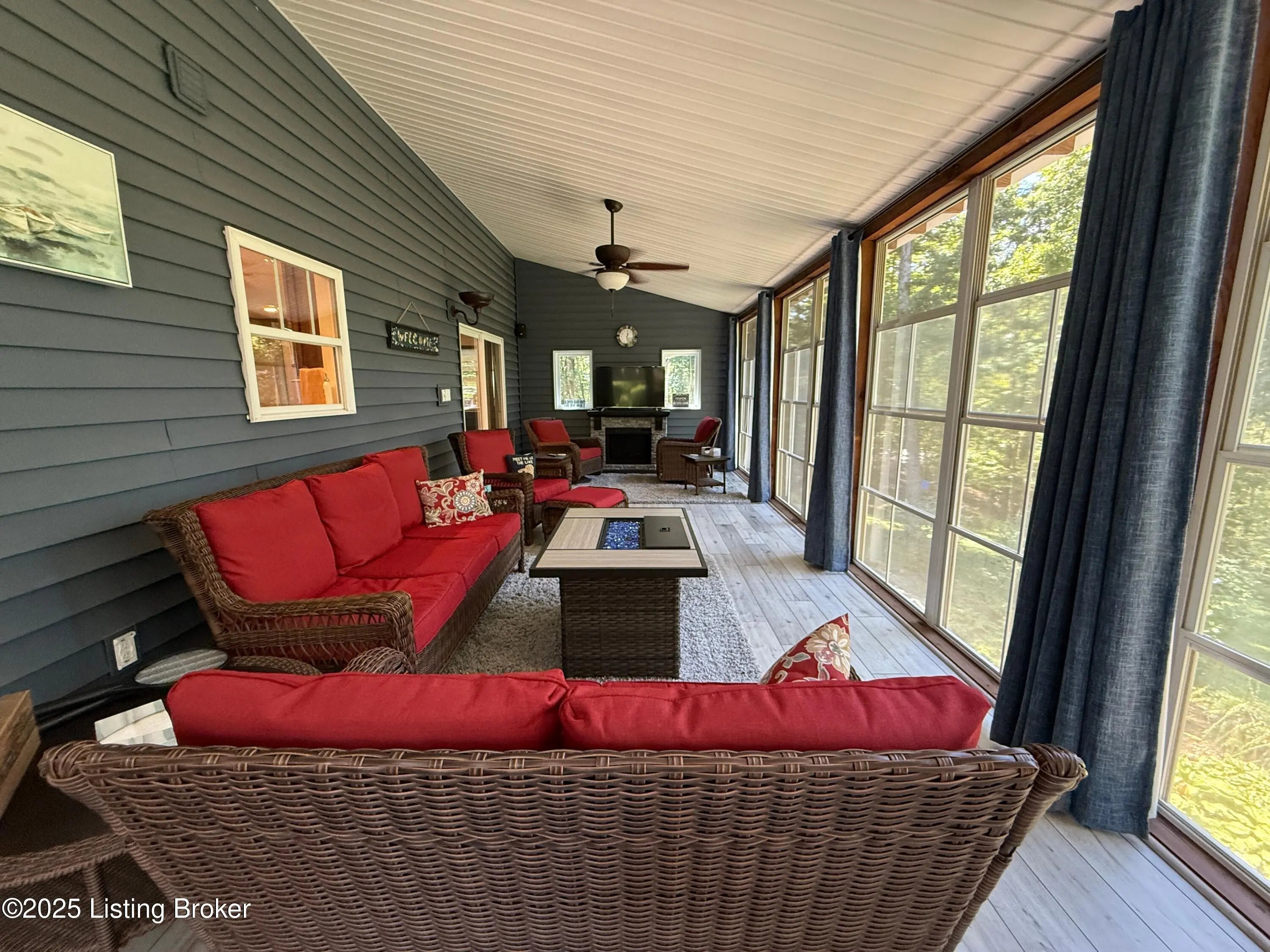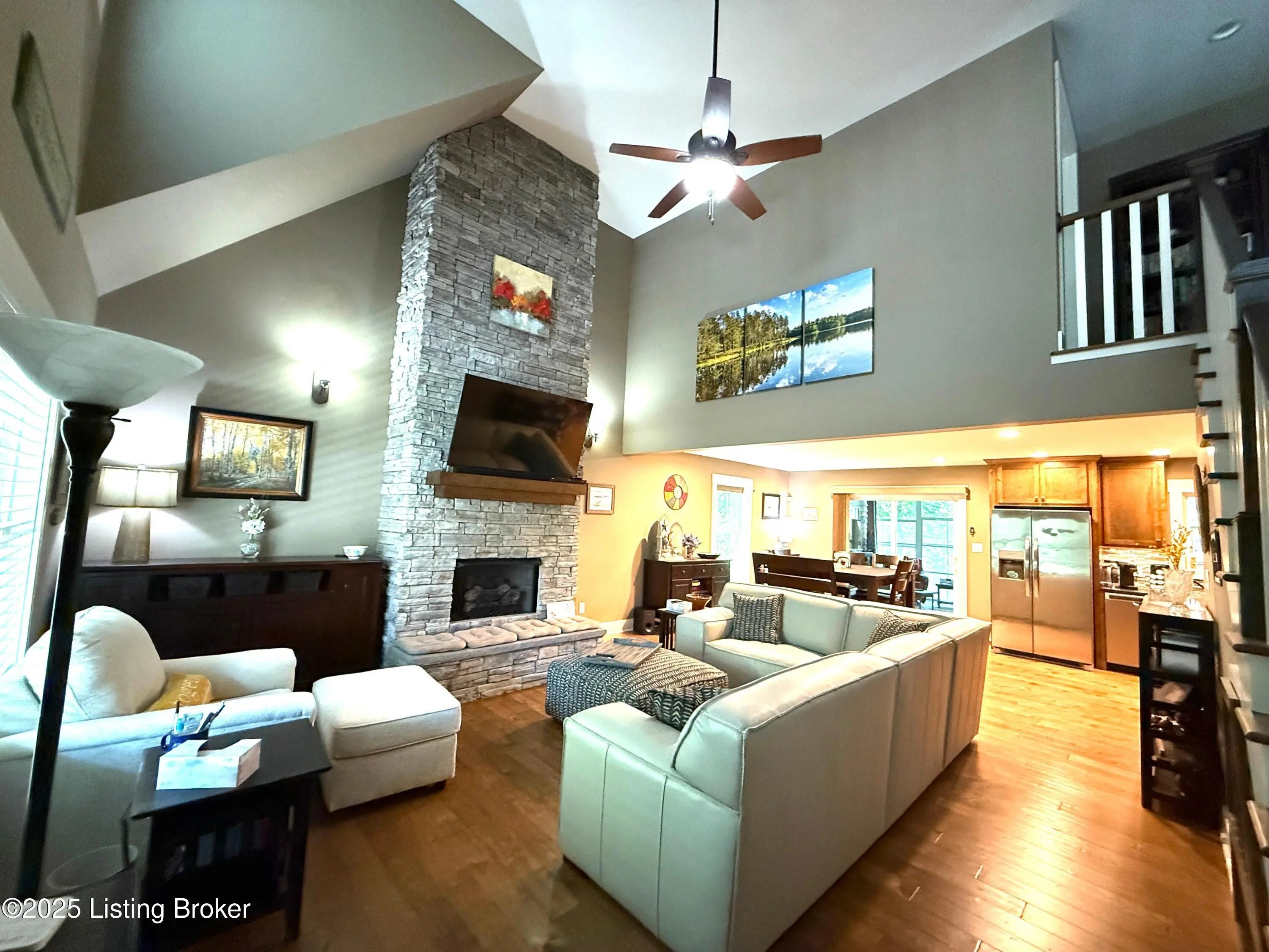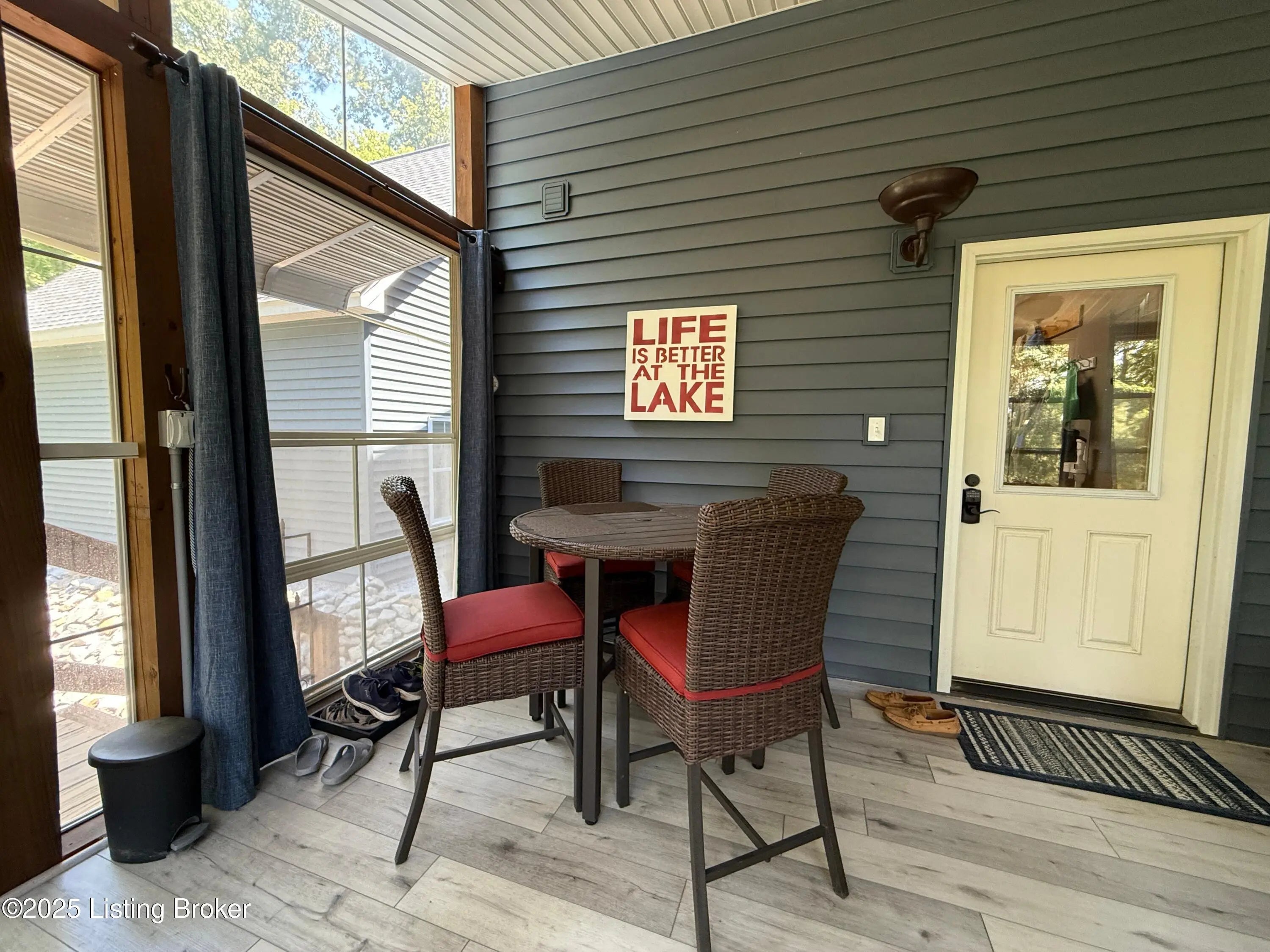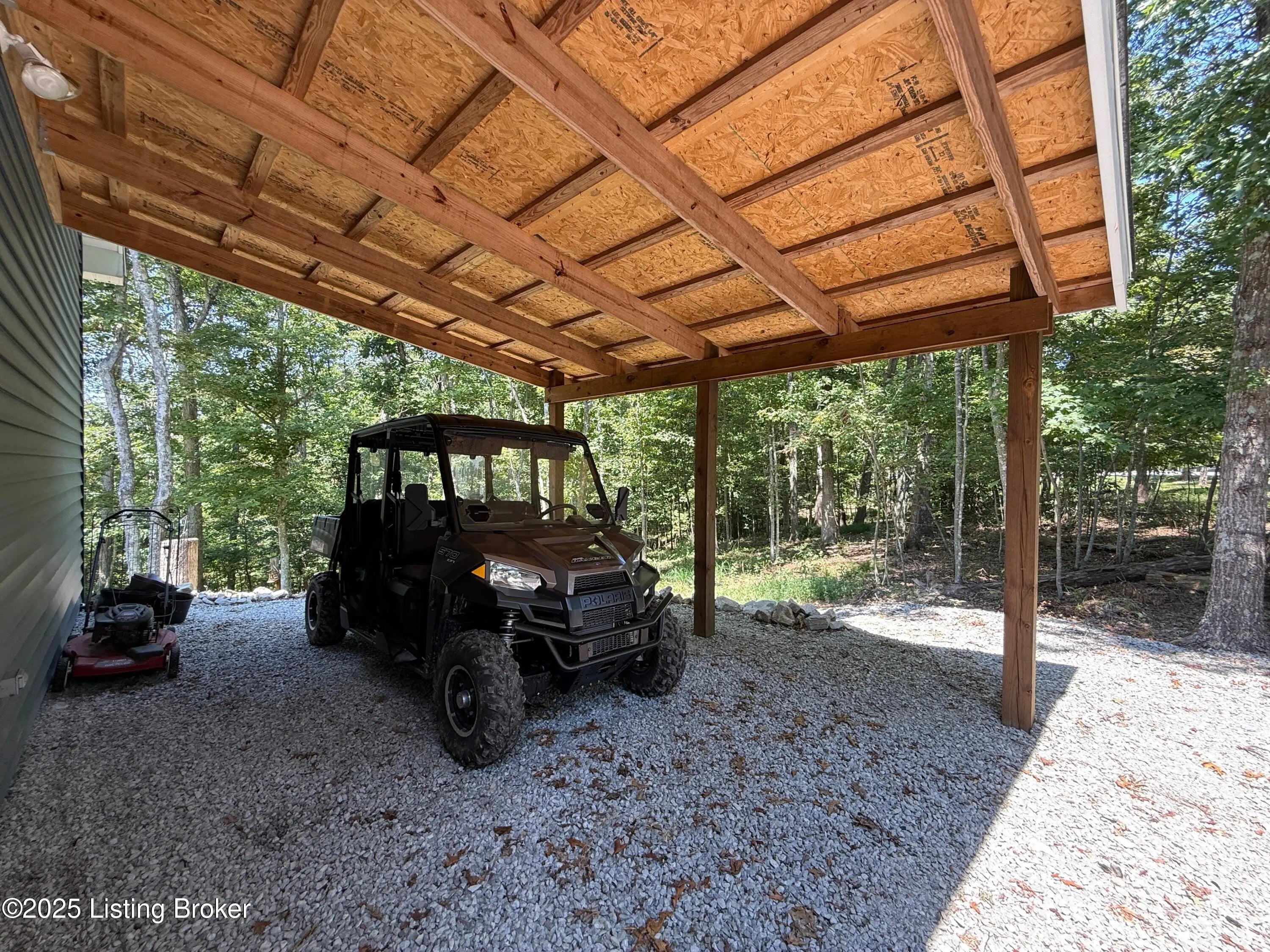 DISCOVER THIS YEAR AROUND LAKE RETREAT in one of Nolin Lake's most sought-after gated communities, complete with paved roads. A public boat ramp is less than 2 miles away at the Moutardier Recreation Area. A covered boat slip at the marina is available for transfer. Tucked away on a quiet cul-de-sac, this inviting lakehouse offers the perfect blend of comfort, privacy, and thoughtful updates. A paved driveway (fall 2024) leads to the home, where recent improvements—including a new roof, gutters, and downspouts on both the house and garage (fall 2024)—provide peace of mind for years to come. Inside, you'll find spacious bedrooms featuring walk-in closets throughout, along with two full baths equipped with double vanities for added convenience. Outdoor living is just as impressive, with the decks, stairs, and landings freshly resealed in fall 2025, creating ideal spaces to relax or entertain. The fenced entertaining areas are designed for memorable gatherings, complete with a fire ring and a lighted covered seating area for year-round enjoyment. An oversized 2-story garage offers abundant space for vehicles, storage, or hobbies. Additional highlights include a Ring security system already in place, making this lake retreat as practical as it is charming.