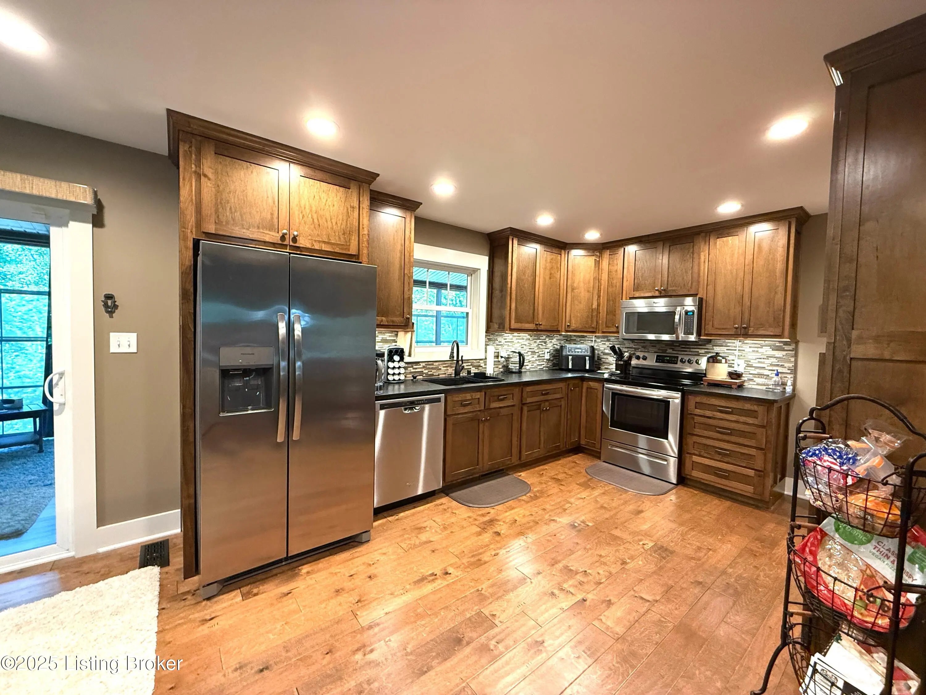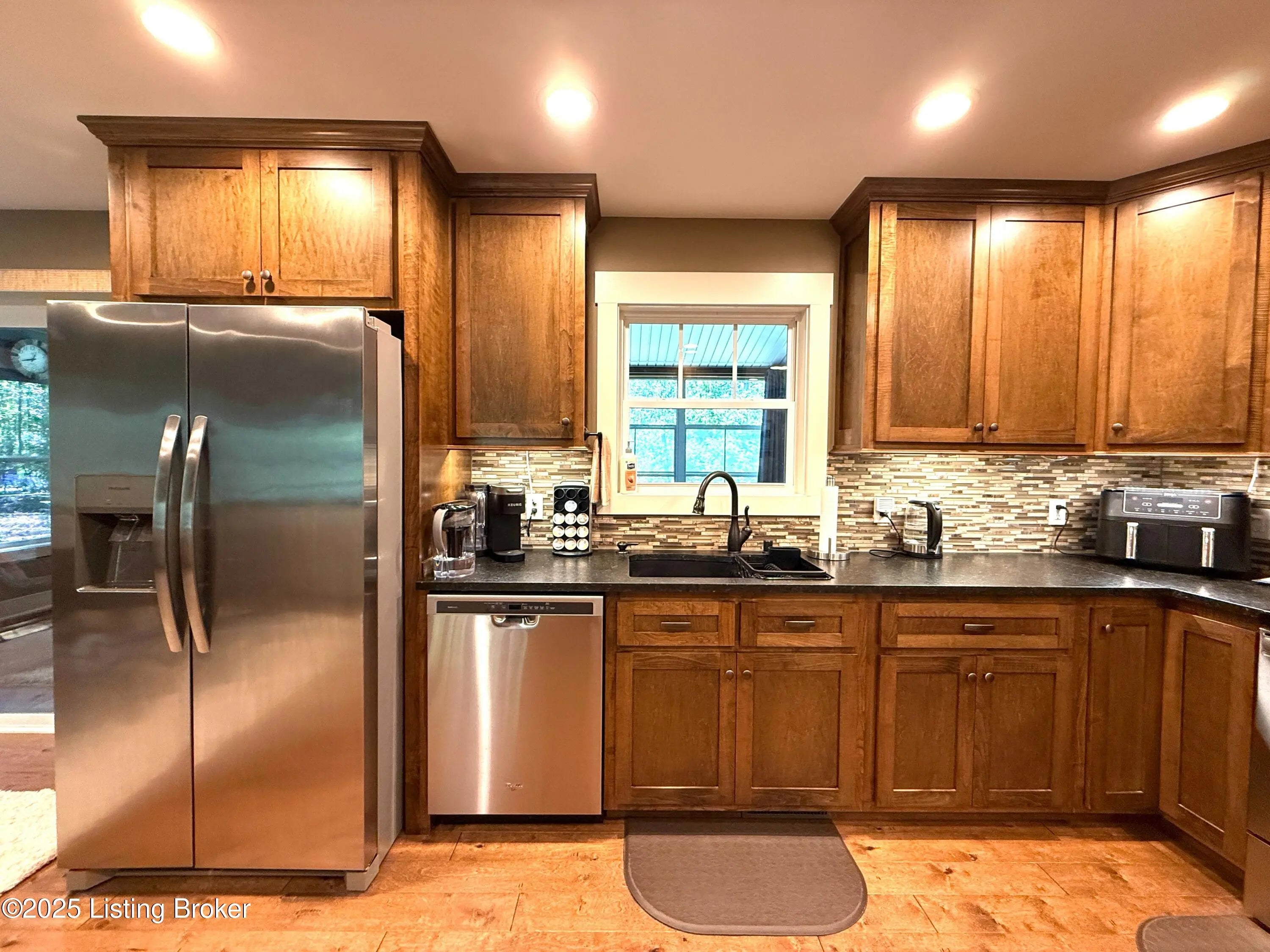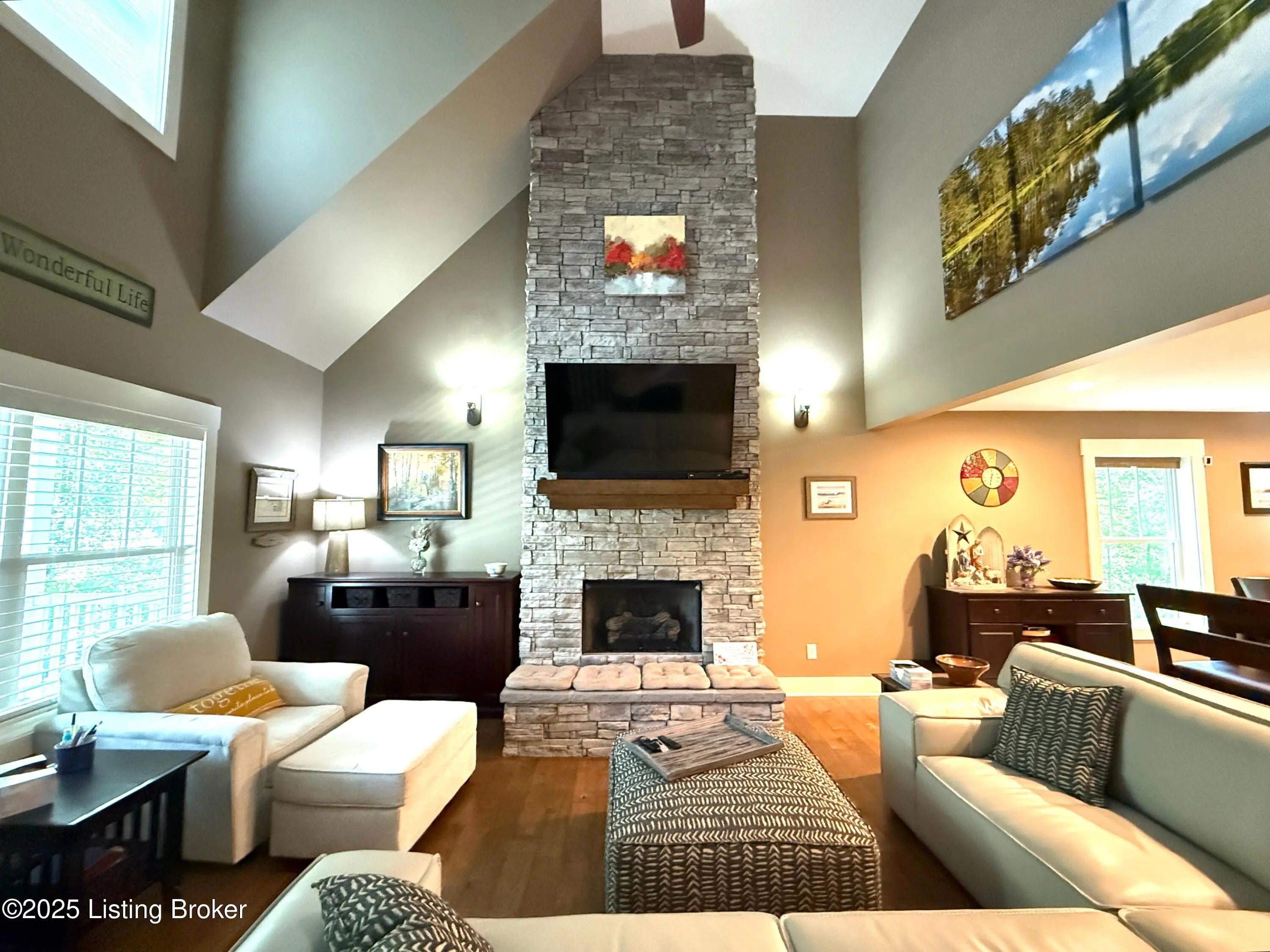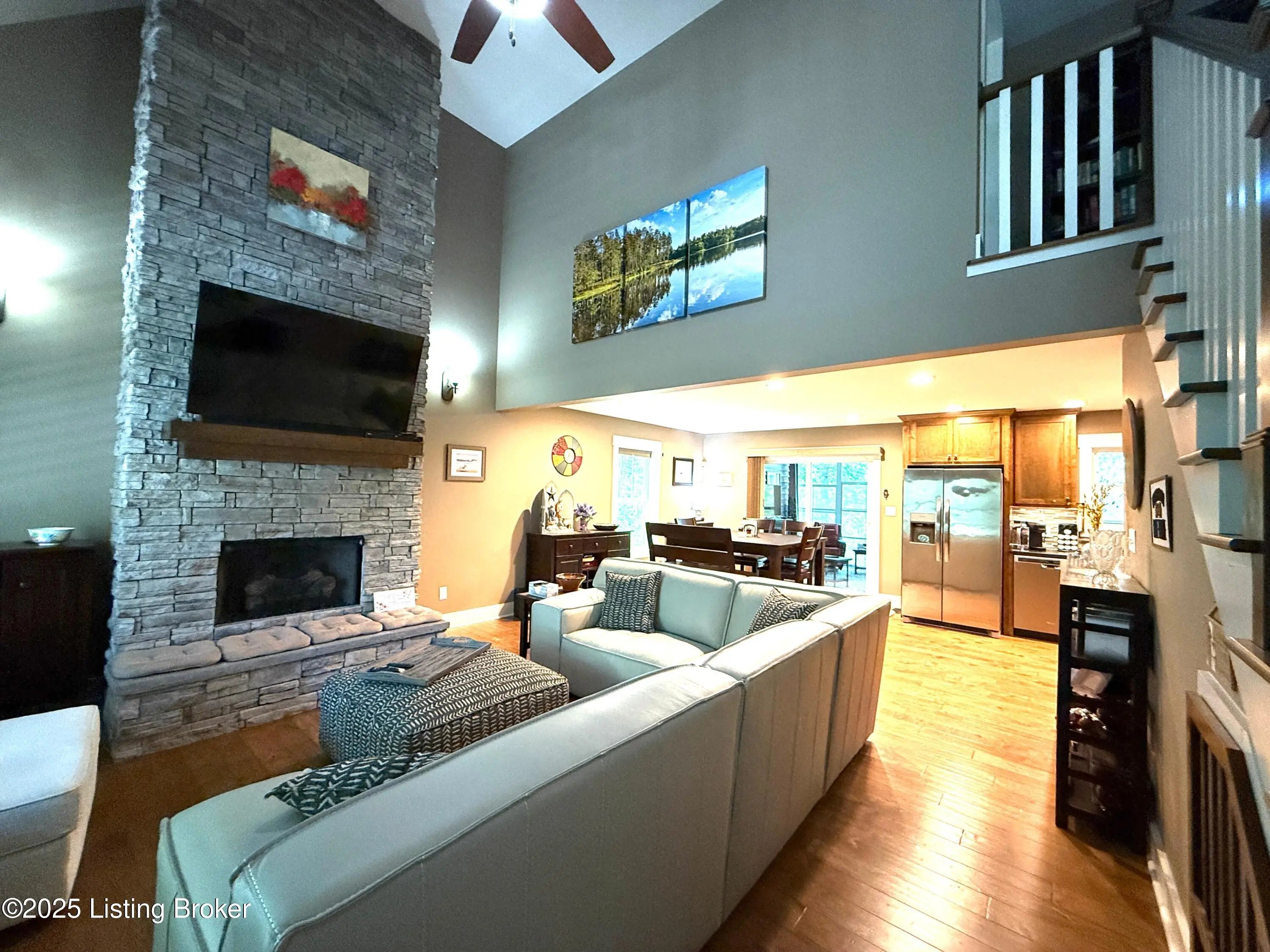DISCOVER THIS YEAR AROUND LAKE RETREAT in one of Nolin Lake's most sought-after gated communities, complete with paved roads. A public boat ramp is less than 2 miles away at the Moutardier Recreation Area. A covered boat slip at the marina is available for transfer. Tucked away on a quiet cul-de-sac, this inviting lakehouse offers the perfect blend of comfort, privacy, and thoughtful updates. A paved driveway (fall 2024) leads to the home, where recent improvements—including a new roof, gutters, and downspouts on both the house and garage (fall 2024)—provide peace of mind for years to come. Inside, you'll find spacious bedrooms featuring walk-in closets throughout, along with two full baths equipped with double vanities for added convenience. Outdoor living is just as impressive, with the decks, stairs, and landings freshly resealed in fall 2025, creating ideal spaces to relax or entertain. The fenced entertaining areas are designed for memorable gatherings, complete with a fire ring and a lighted covered seating area for year-round enjoyment. An oversized 2-story garage offers abundant space for vehicles, storage, or hobbies. Additional highlights include a Ring security system already in place, making this lake retreat as practical as it is charming.