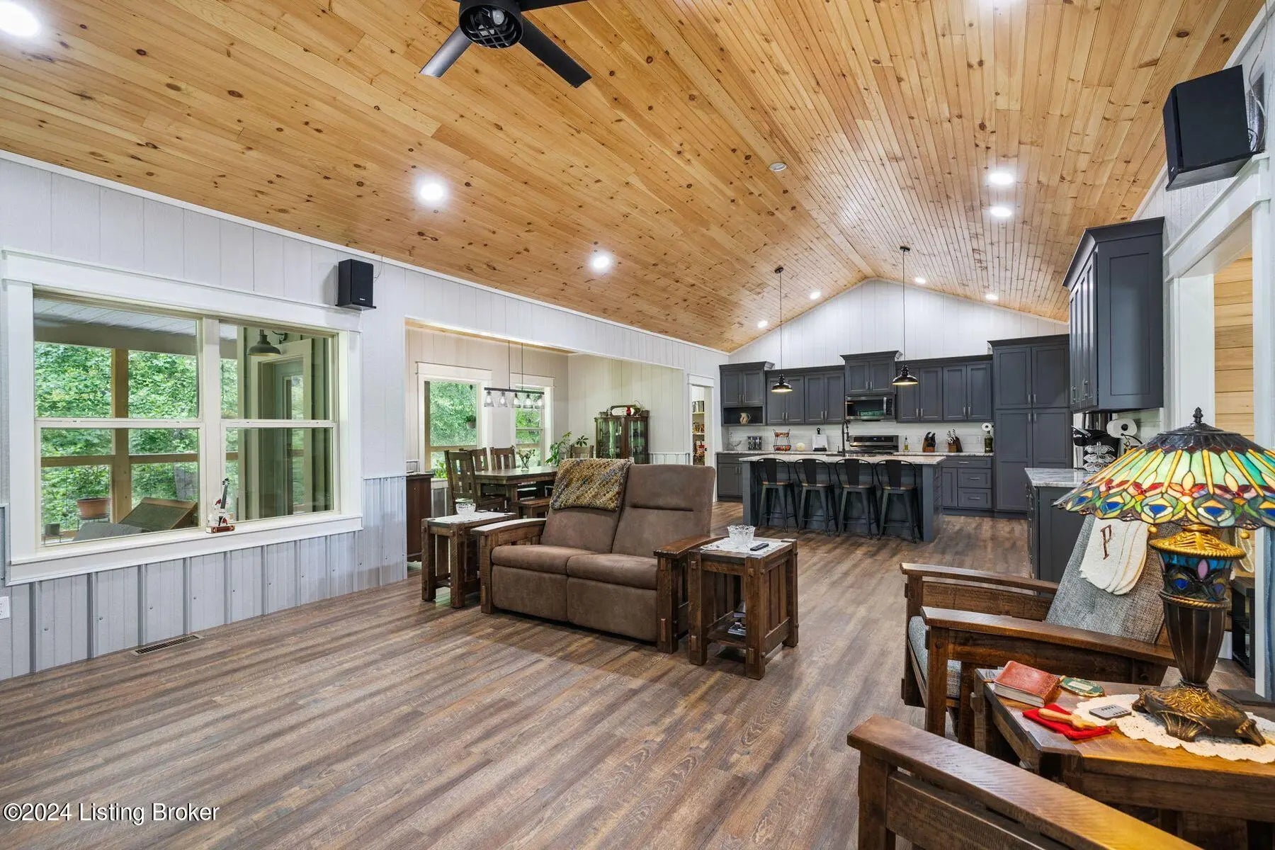 ''Trout Haven'' sits perched perfectly on the banks of the beautiful Cumberland River. Located strategically between the bustling metropolitan areas of Nashville, TN, Louisville, KY and Lexington KY , this retreat is an easy commute away. Whether one chooses this as a permanent residence with a guest cabin or as a weekend/vacation home on approx. 4 acres.,Trout Haven beckons one to relax and take in the tranquility and peace that nature provides. The main residence is a thoughtfully designed walkout ranch with decks, balconies and docks with views of the Cumberland River. The main floor has an open plan complete with kitchen, dining, living room spaces as well as an inviting entry and windows to take in the scenery in all directions. There is a generous Primary suite with en suite bath, double sink vanity, shower and huge walk in closet on this level. Additionally, there is another full bath and a bedroom (currently utilized as an office) as well as a laundry/utility room. The kitchen has abundant cabinetry with stylish design and finish, stainless steel appliances, granite counters , farm sink and a massive walk in pantry. A two car garage with additional storage opportunity is just steps away. A propane powered generator gives comfort to any occupant as well. The lower level which boasts the same level of finish has a guest bedroom, full bath, large living room including a convenient wet/bar kitchenette. The patio area walks down to a multi level dock area that is made from metal and hangs over the banks of the river. The Cumberland River is home to record setting trout and abundant fly fishing as well as a treasured spot for kayaking and canoeing. The falls of the Cumberland are among the largest waterfalls in the Southeast United States. The guest cabin is super charming with its own feel. Open format with bunks, sleeping area, full kitchen, bath and mini split heating and cooling. It has a covered dining area outside and a walkway down to its own private deck with a firepit overlooking the river. On the backside of the cabin is a fish cleaning station providing the perfect spot to clean your catch of the day. Equipment storage area is on the opposite side of this structure. The private yard is filled with mature trees, raised bed gardens, a screened blueberry garden and more. To say this is a nature lover's dream is an understatement. Selling almost fully furnished! Short-term rental eligible. Call for your appointment today.