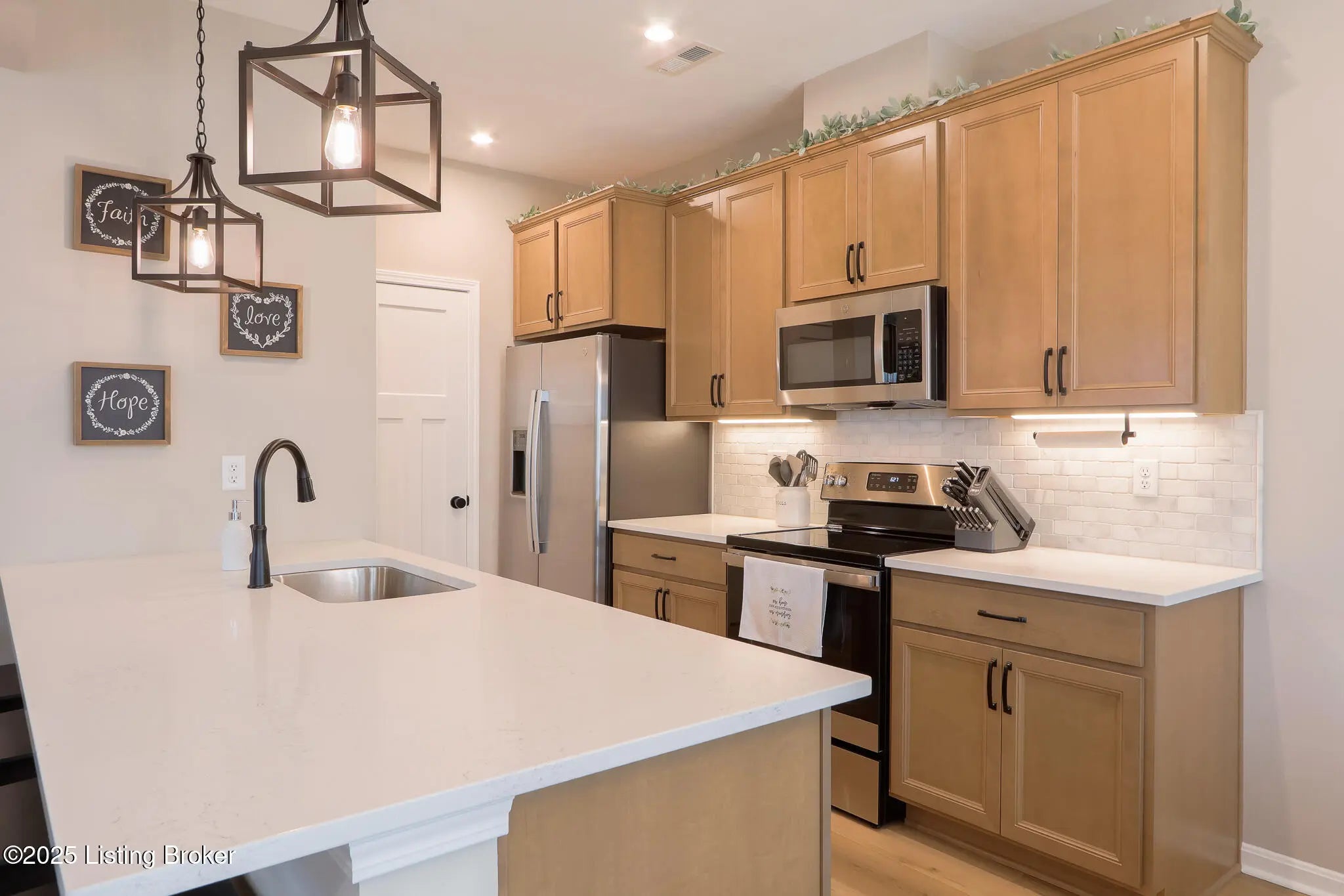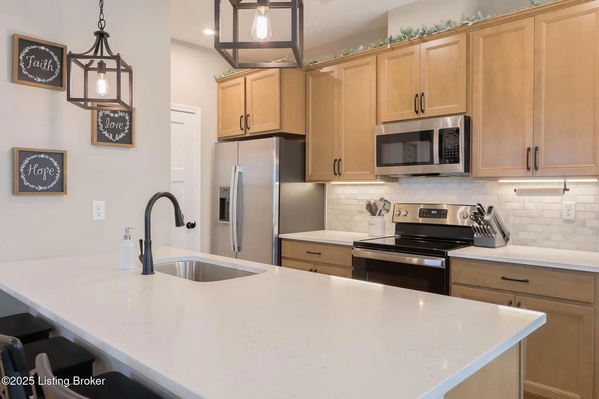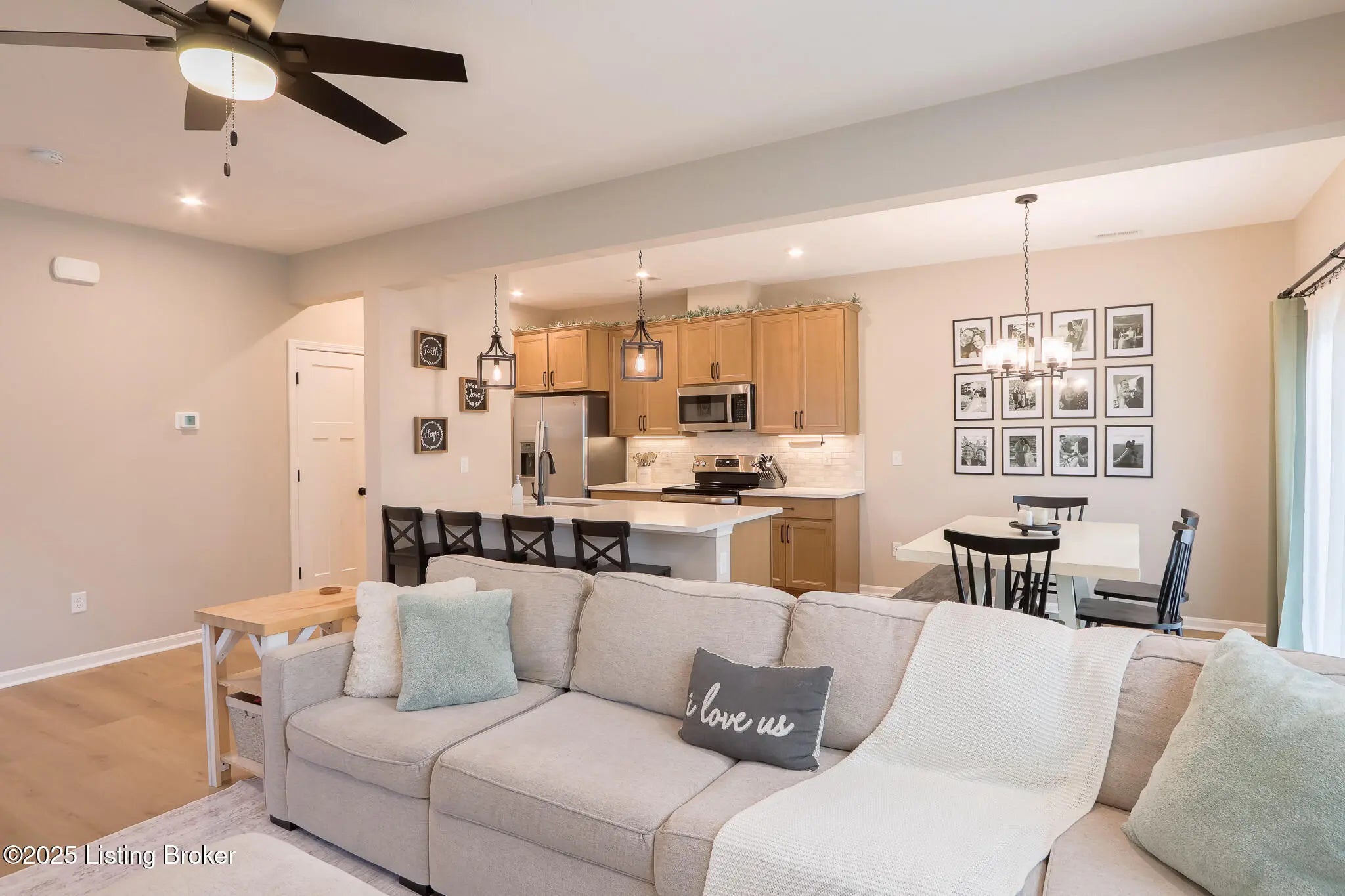 Better Than New in Harvest Point! Welcome to 117 Sunset Way, a stunning Hudson Western Craftsman plan in the desirable Harvest Point community. While this home is competing with brand-new construction in the neighborhood, it stands far above the rest thanks to its extensive high-end upgrades, designer finishes, and immaculate like-new condition. Why settle for builder-grade when you can own a home that already includes the expensive upgrades the others don't? Step inside and be greeted by a wide-open floor plan filled with warmth and style. The chef's kitchen shines with quartz countertops, Carrara marble backsplash, crown molding on cabinetry, under-cabinet lighting, soft-close hinges, a large pantry, and a counter-depth stainless steel refrigerator, all details that elevate the space far beyond standard finishes. The oversized family room with a shiplap fireplace creates the perfect spot for cozy evenings. Upstairs, the primary suite is a retreat with a spa-like en suite bathroom featuring a double vanity, walk-in shower, and large closet. Secondary bedrooms include custom accent trim walls, and the home offers a versatile loft and a convenient upstairs laundry room with white cabinetry and shelving. Every detail has been thoughtfully upgraded: luxury vinyl plank flooring throughout the first floor, premium matte black hardware, three-panel Craftsman-style doors, high-end light fixtures, and top-of-the-line ceiling fans in every bedroom. Even the half bath boasts a designer vanity with vessel sink and waterfall faucet. The exterior is just as impressive. This home sits on a premium corner lot backing to a retention pond, offering privacy and peaceful views. The upgraded trim package, landscaping, and additional guest parking just 100 feet away add convenience and curb appeal. Custom touches continue with garage shelving, foyer wainscoting with hooks, and smart home features including a Ring doorbell and security cameras. Located in Mt. Washington, one of Kentucky's fastest-growing and most desirable communities, this home combines small-town charm with easy access to Louisville. Families will also appreciate being part of the highly regarded Bullitt County school system. This is not just another house in Harvest Point, it's a flawless, move-in ready home with upgrades already in place, saving you time, money, and hassle. Truly, better than new!