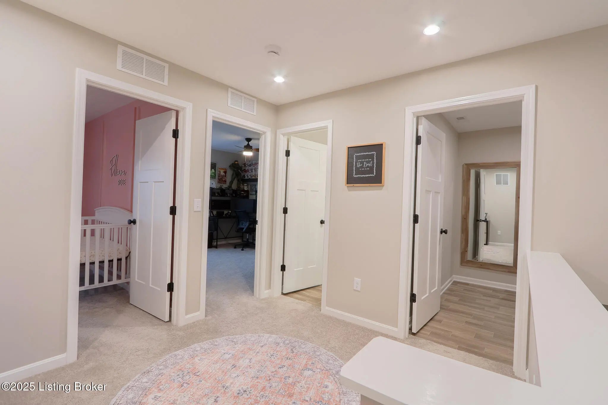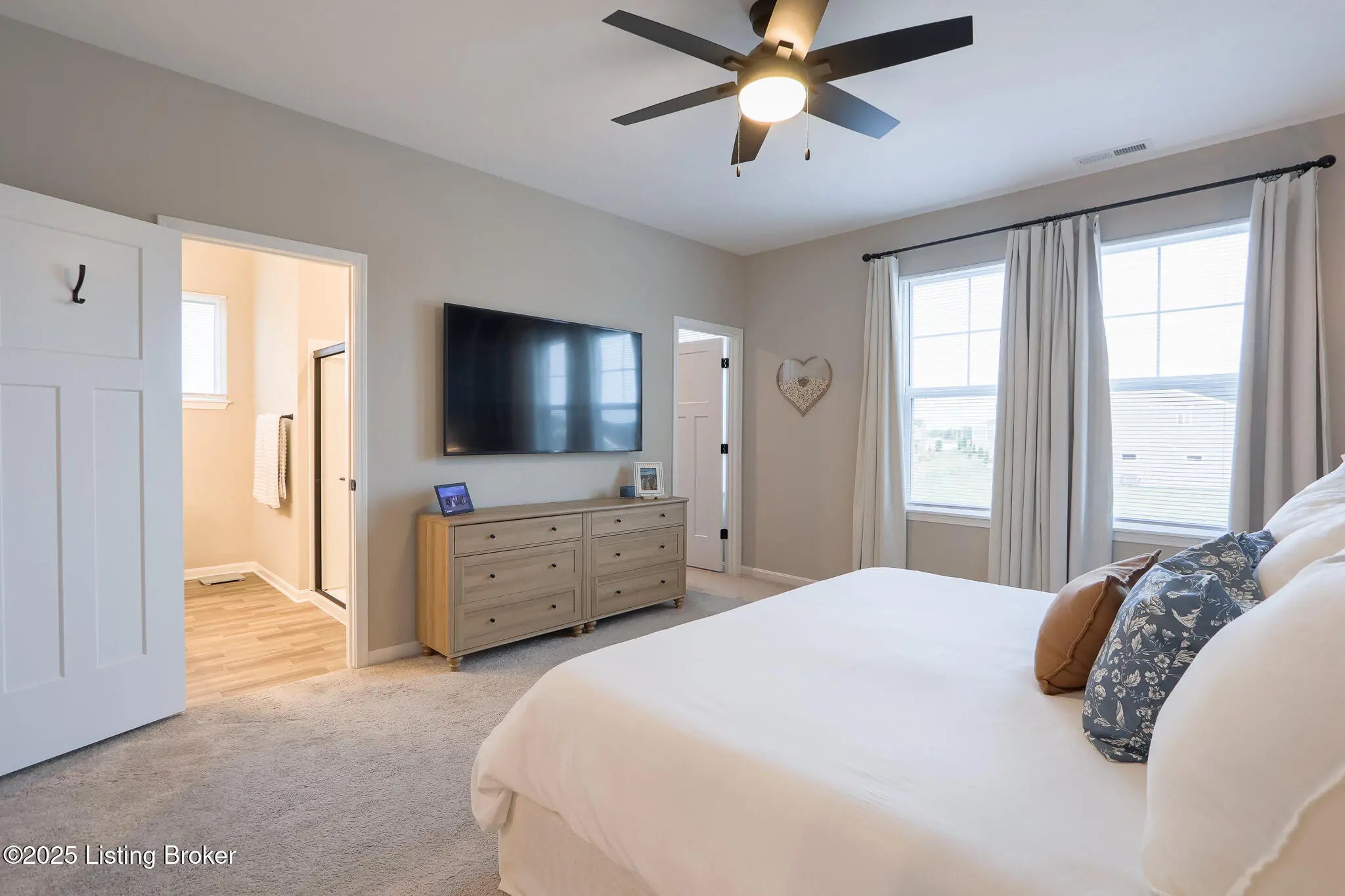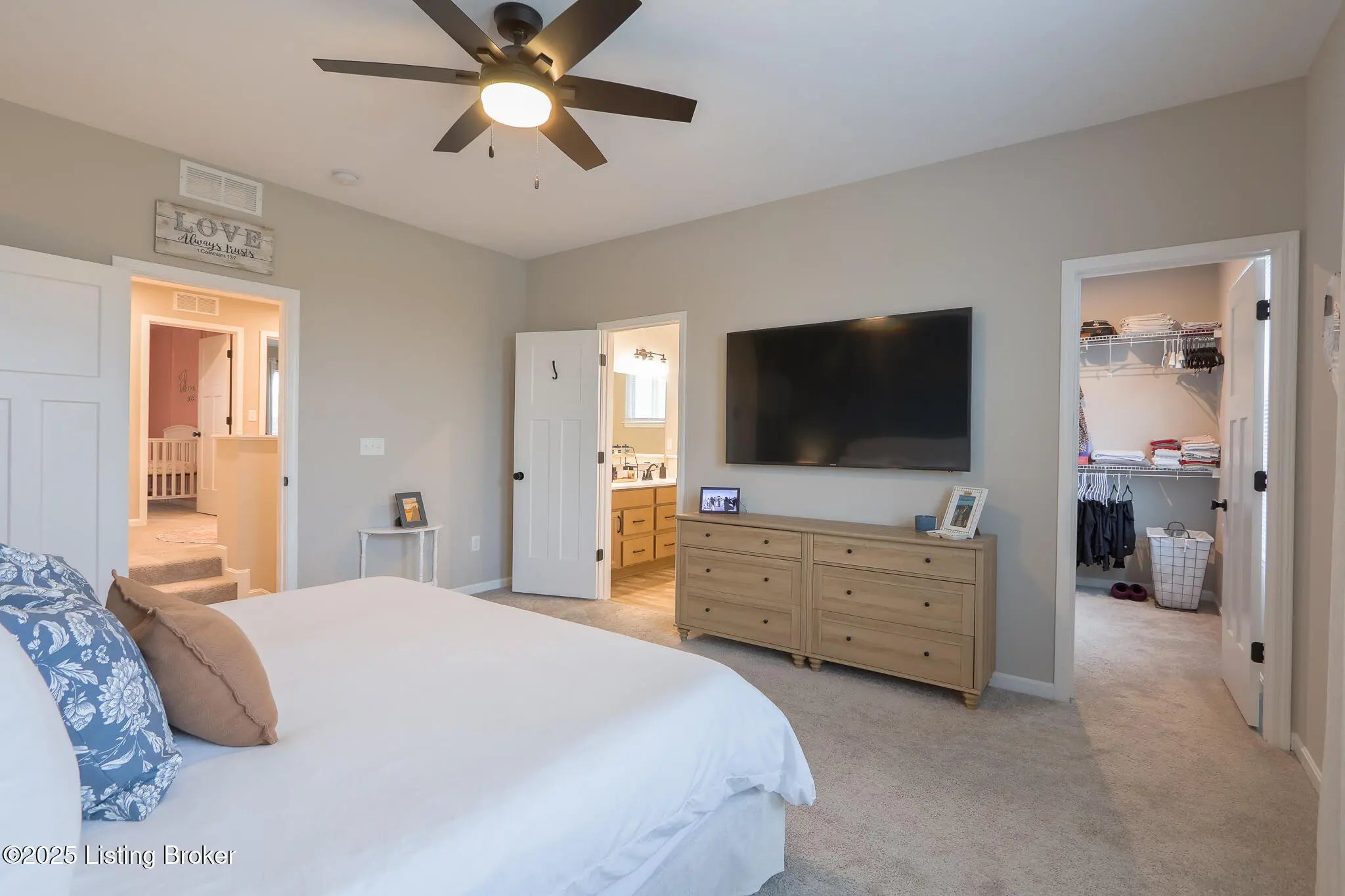 Better Than New in Harvest Point! Welcome to 117 Sunset Way, a stunning Hudson Western Craftsman plan in the desirable Harvest Point community. While this home is competing with brand-new construction in the neighborhood, it stands far above the rest thanks to its extensive high-end upgrades, designer finishes, and immaculate like-new condition. Why settle for builder-grade when you can own a home that already includes the expensive upgrades the others don't? Step inside and be greeted by a wide-open floor plan filled with warmth and style. The chef's kitchen shines with quartz countertops, Carrara marble backsplash, crown molding on cabinetry, under-cabinet lighting, soft-close hinges, a large pantry, and a counter-depth stainless steel refrigerator, all details that elevate the space far beyond standard finishes. The oversized family room with a shiplap fireplace creates the perfect spot for cozy evenings. Upstairs, the primary suite is a retreat with a spa-like en suite bathroom featuring a double vanity, walk-in shower, and large closet. Secondary bedrooms include custom accent trim walls, and the home offers a versatile loft and a convenient upstairs laundry room with white cabinetry and shelving. Every detail has been thoughtfully upgraded: luxury vinyl plank flooring throughout the first floor, premium matte black hardware, three-panel Craftsman-style doors, high-end light fixtures, and top-of-the-line ceiling fans in every bedroom. Even the half bath boasts a designer vanity with vessel sink and waterfall faucet. The exterior is just as impressive. This home sits on a premium corner lot backing to a retention pond, offering privacy and peaceful views. The upgraded trim package, landscaping, and additional guest parking just 100 feet away add convenience and curb appeal. Custom touches continue with garage shelving, foyer wainscoting with hooks, and smart home features including a Ring doorbell and security cameras. Located in Mt. Washington, one of Kentucky's fastest-growing and most desirable communities, this home combines small-town charm with easy access to Louisville. Families will also appreciate being part of the highly regarded Bullitt County school system. This is not just another house in Harvest Point, it's a flawless, move-in ready home with upgrades already in place, saving you time, money, and hassle. Truly, better than new!
