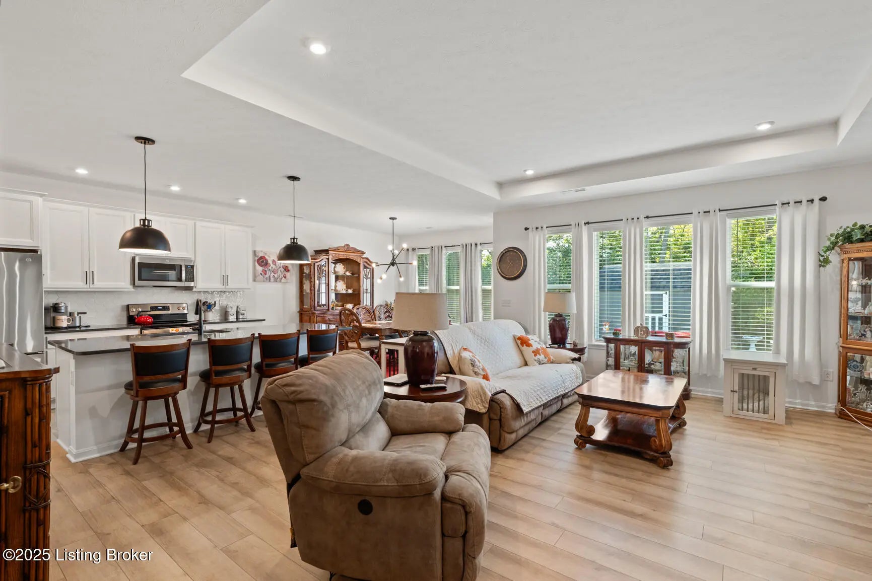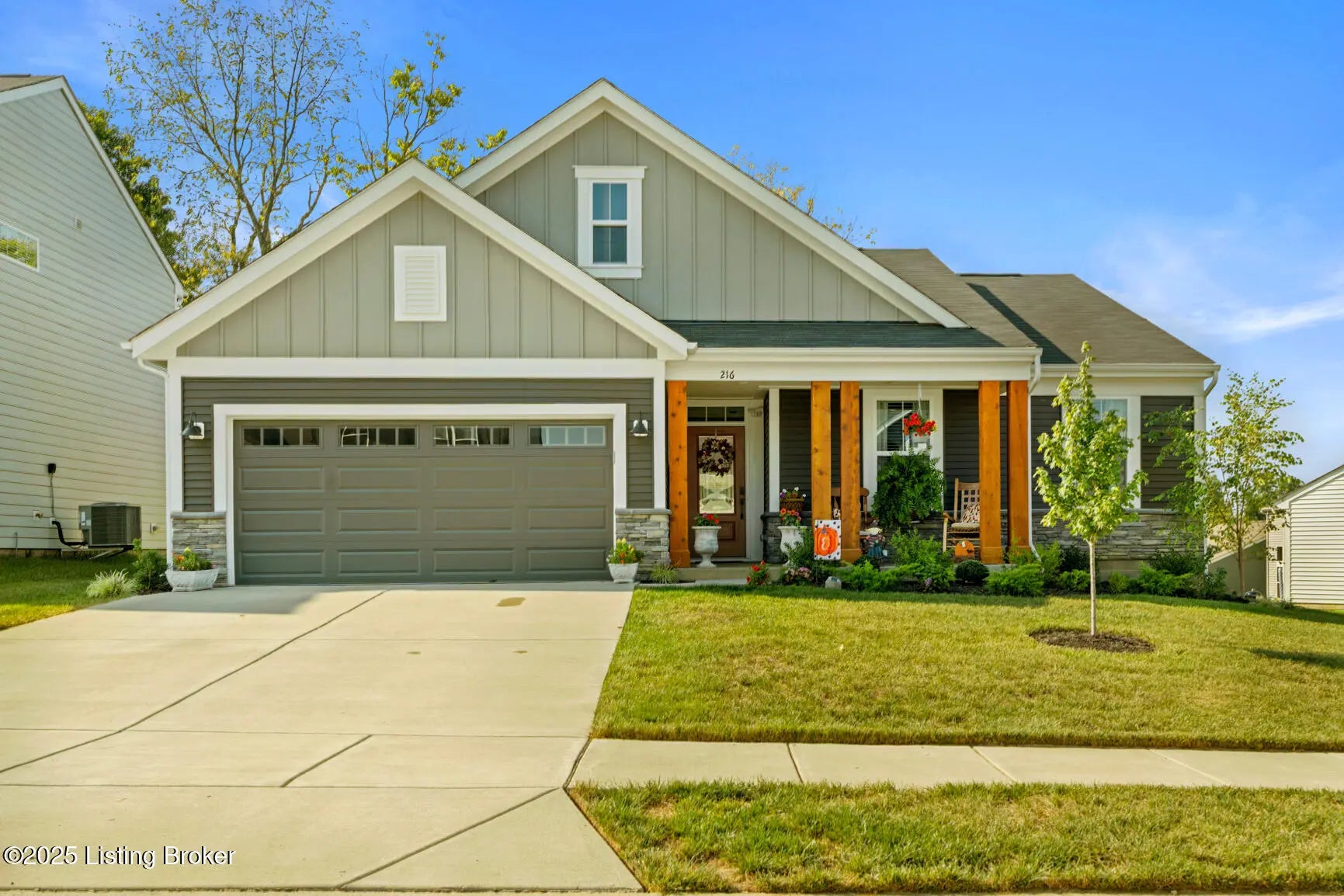 Step onto the welcoming covered front porch of this beautifully maintained modern farmhouse in the sought-after Discovery Point community, and you'll feel at home before you even open the door. Inside, the single-level layout offers effortless living with 9-foot ceilings throughout creating a sense of space and light. The heart of the home is the gourmet kitchen: stainless steel appliances, quartz countertops, 42″ soft-close maple cabinets, walk-in pantry and a generous island that makes gathering easy and natural. From there you'll move into the expanded morning room and into a spacious family room. At the back, a tree-lined yard offers both privacy and calm, perfect for morning coffee or evening unwinding. The owner's suite feels like a retreat: a soaking tub, separate shower, double vanity, and a large walk-in closet. Two additional bedrooms and a full hall bath provide flexibility, use them for guests, family or a home office. And there's more: a newly added shed built to match the farmhouse style adds practical charm. With a two-car garage, thoughtful upgrades, and a move-in-ready ranch floor plan, this home offers value well below comparable new construction in the area. Financial bonus: This home qualifies for an assumable loan at just 4.875% fixed rate which is rare in today's market. Call today to schedule your private showing.