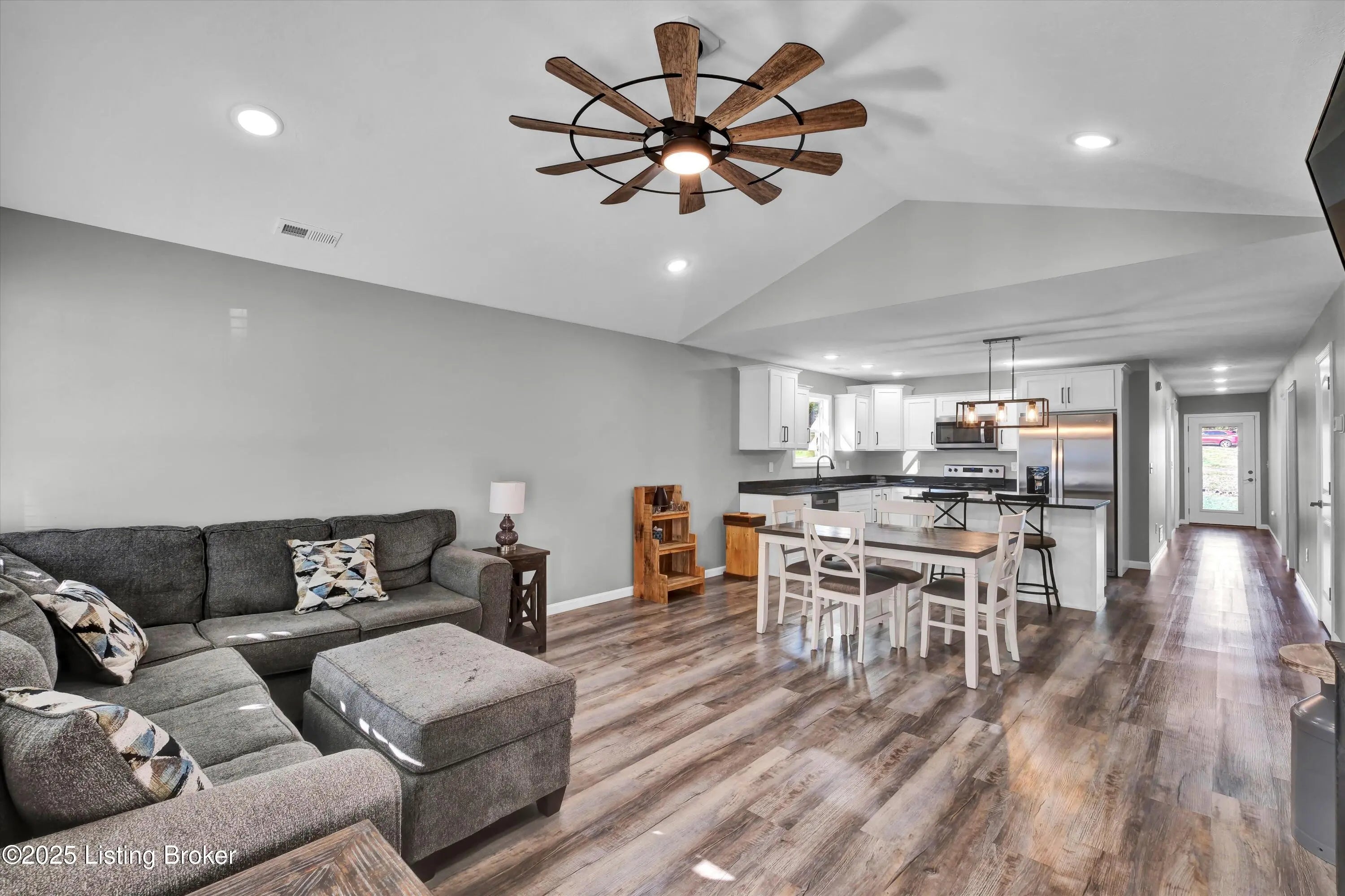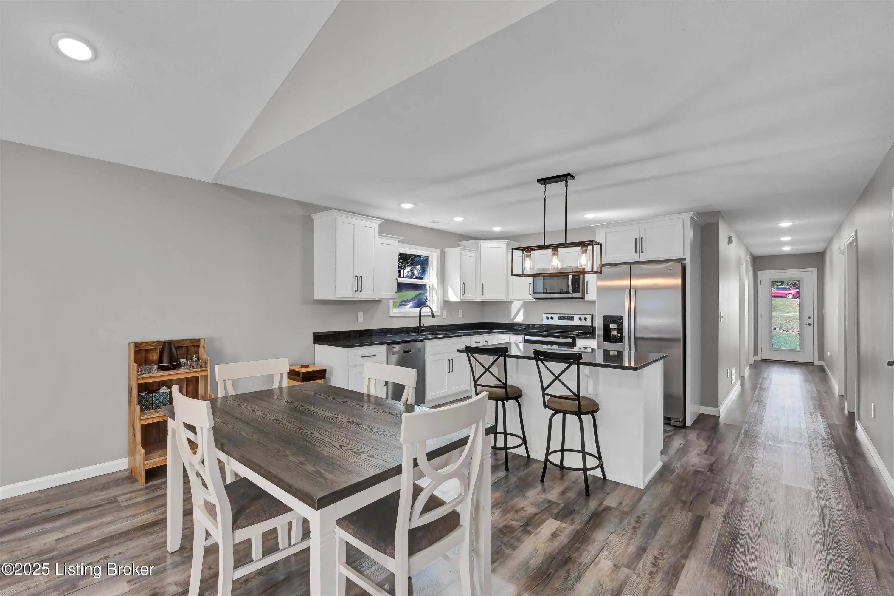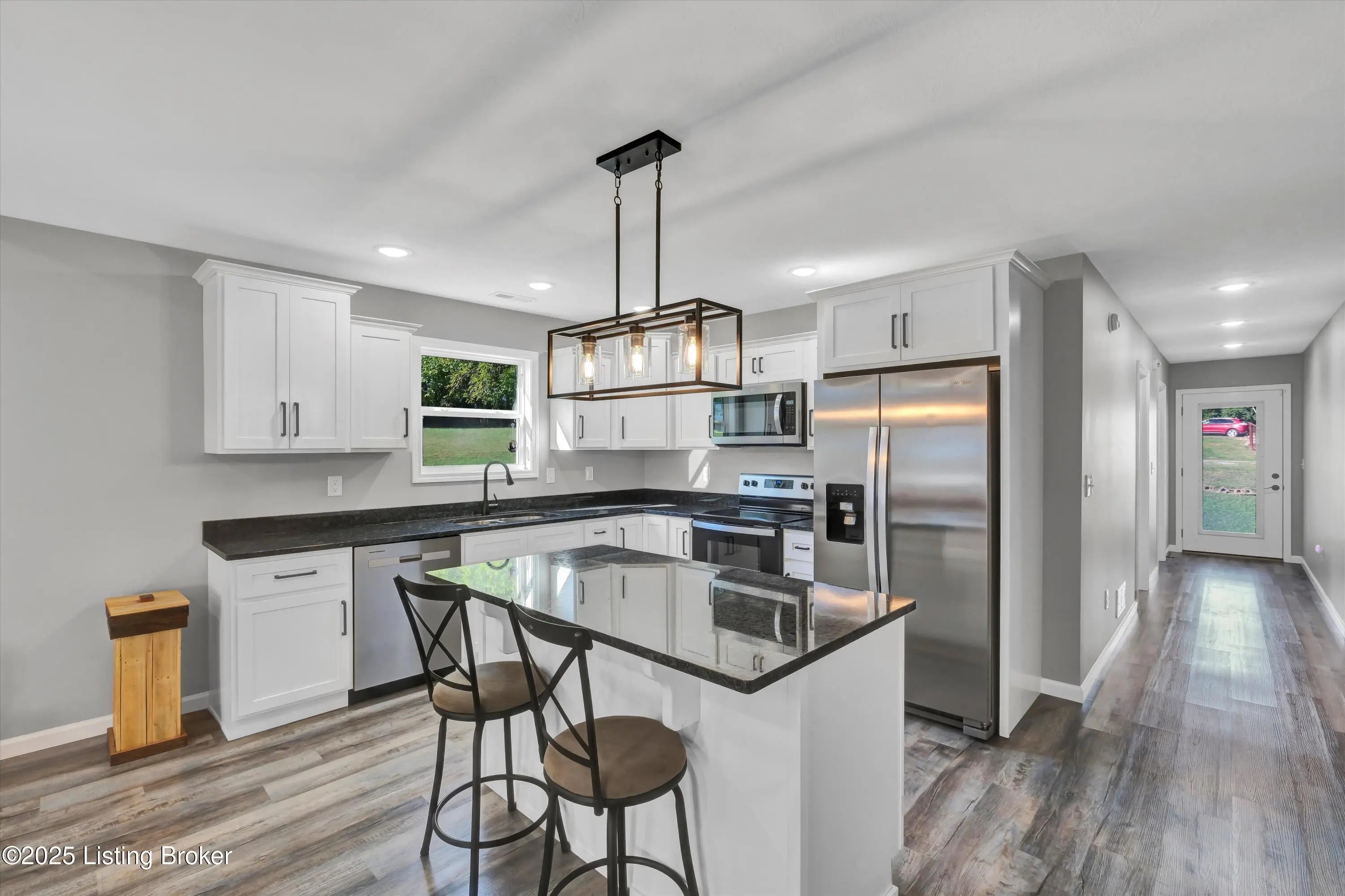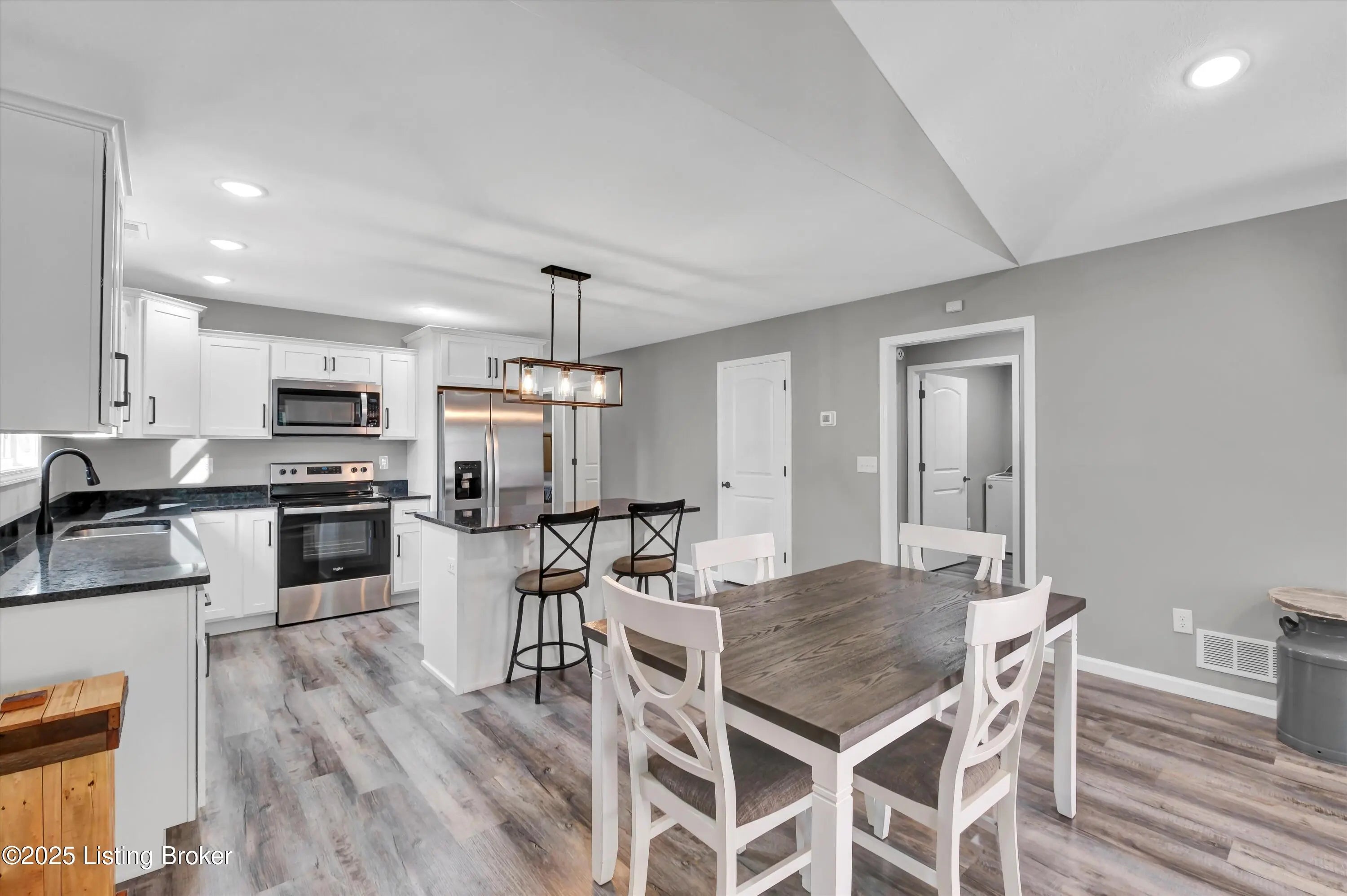 Open floor plan ranch on corner lot. Beautiful neutral decor, fixtures and lighting. Step into a modern house with nice grey vinyl plank flooring throughout. White cabinets with black granite countertops. Theres a nice island with complimentary nuevo lighting. Stainless appliances and black matte spaghetti faucet make cooking a breeze. The owners suite features a unique tray ceiling with it's own private bath and large walk-closet. There's plenty of room for family or company in the two additional bedrooms. The home boasts cozy front porch as well as a back porch. Vine Grove is close to Ft. Knox, Radcliff, Brandenburg and Elizabethtown. Welcome home--this one won't last long.