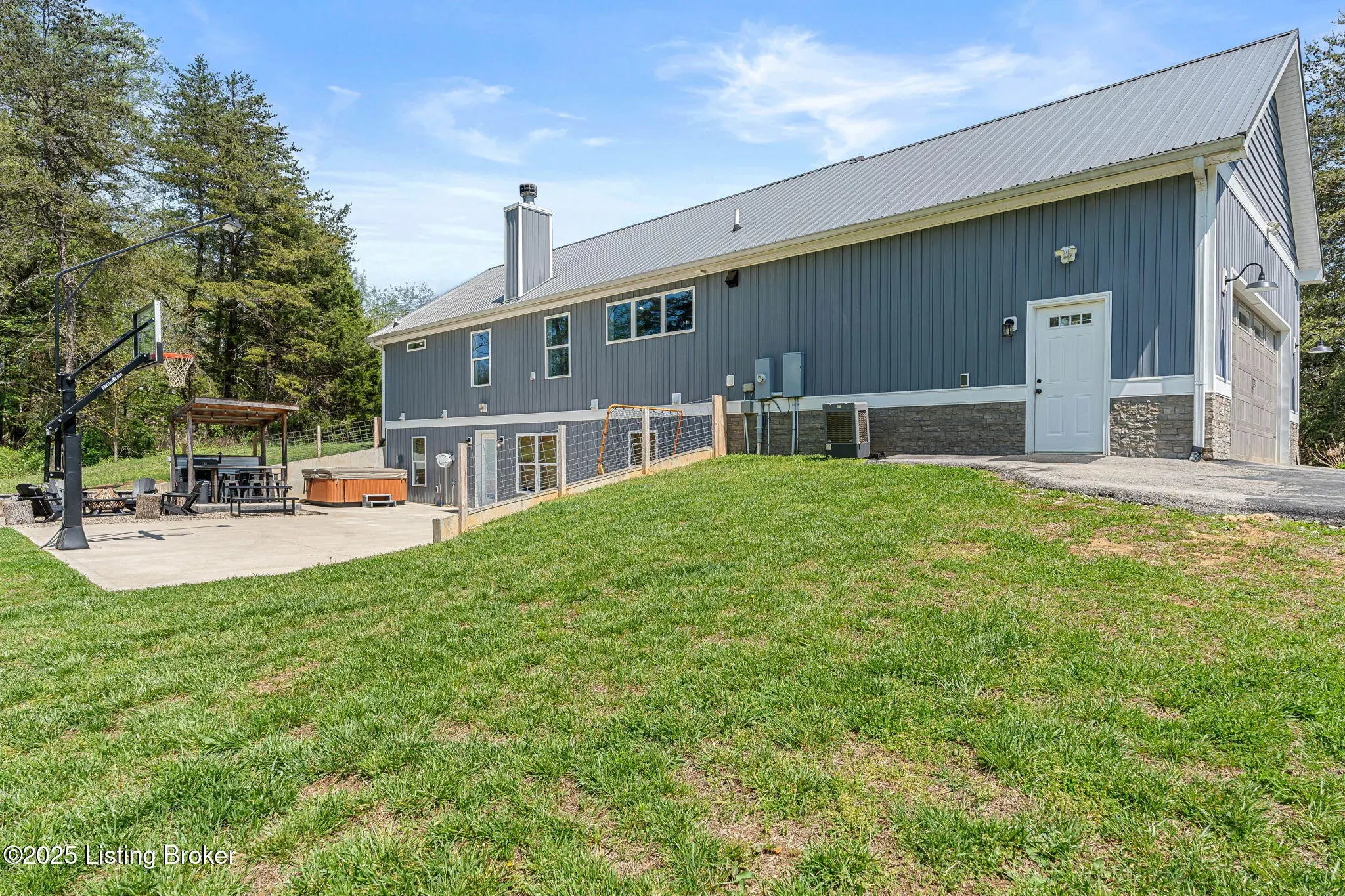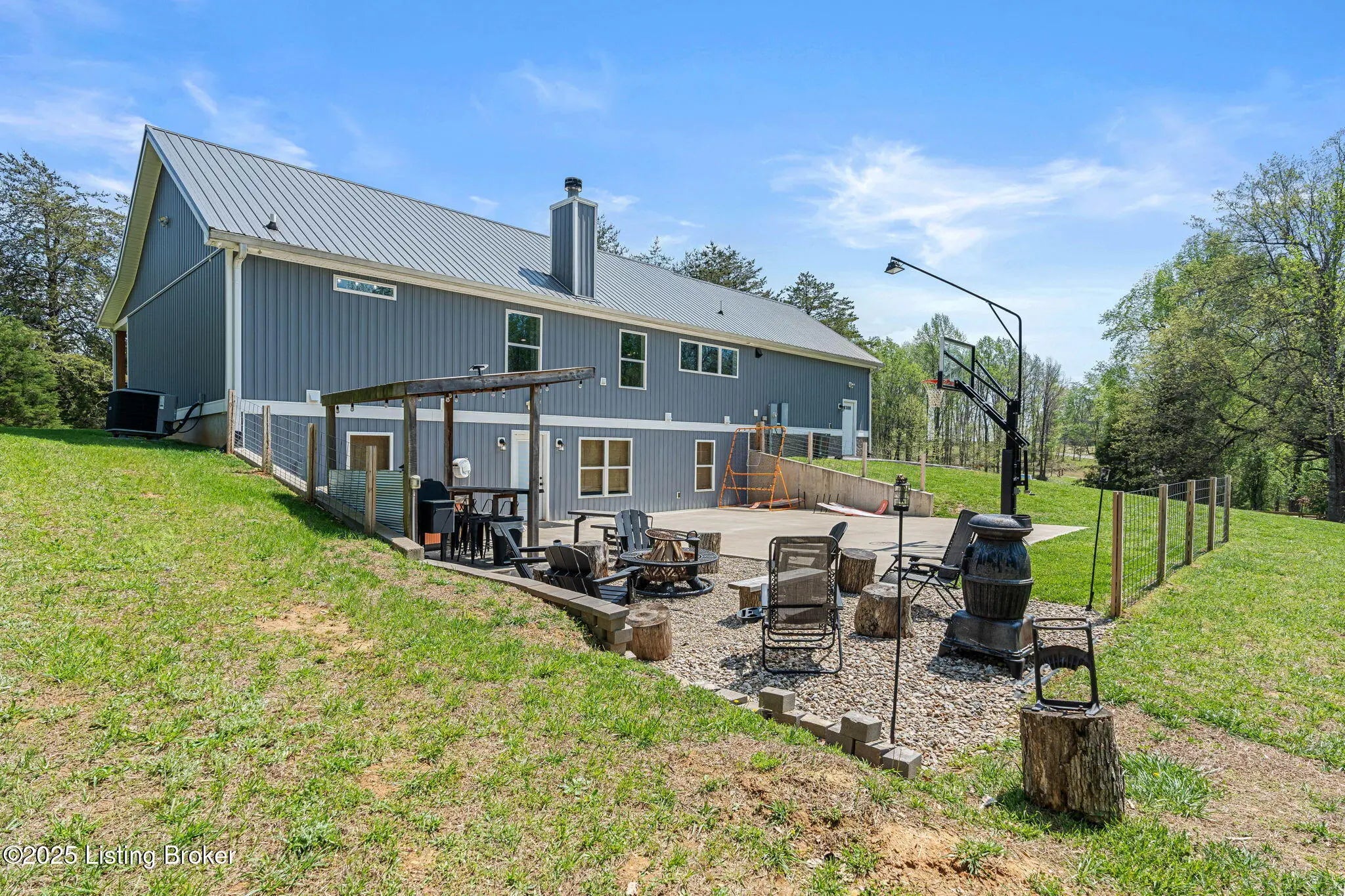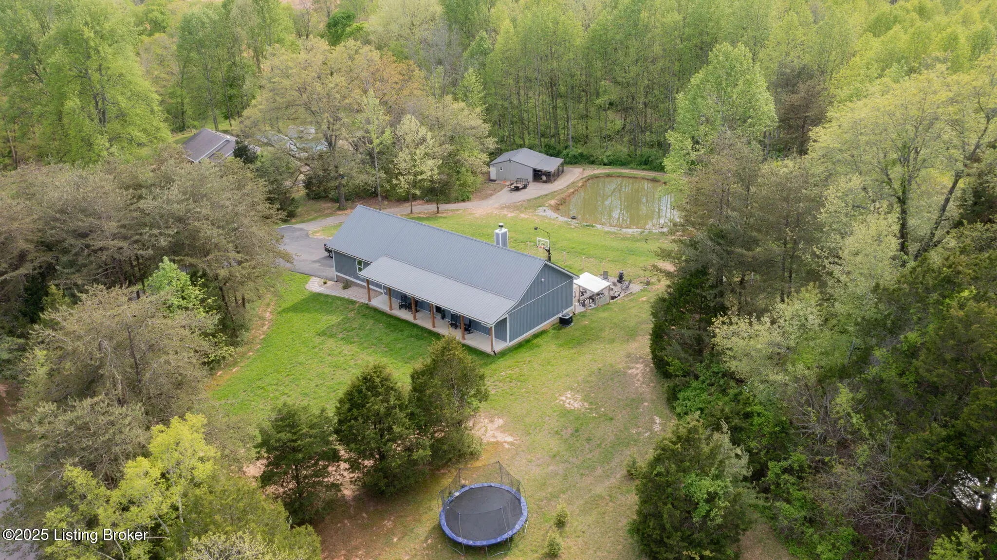 Sitting on 23.8 acres of land, this property is a paradise for outdoor enthusiasts offering privacy and endless opportunities for hunting with areas for food plots, dirt biking riding, and even target shooting. This property also has a fish stocked pond, a fully insulated 24x24 barn with electricity, 12x24 lean to attached to it, and 1.5+ miles of SXS side by side trails that meander throughout the entire property. The walk-out basement leads to a sprawling 30x30 concrete patio which has a heavy duty pro basketball goal, a hot tub, 14x24 fire pit and bar area that could seat roughly 20 people. Inside, an open floor plan floods the space with natural light, showcasing custom kitchen cabinets with an island and wood-burning fireplace. The primary suite is on the main floor and offers two walk-in closets and a custom-designed shower with Bluetooth capability. Each bedroom is a private oasis, with its own bathroom and shower. Additionally, entertainment and creativity thrive here with a separate living area in the basement, complete with a soundproof studio ideal for music lovers or anyone seeking a peaceful retreat to indulge in their hobbies.