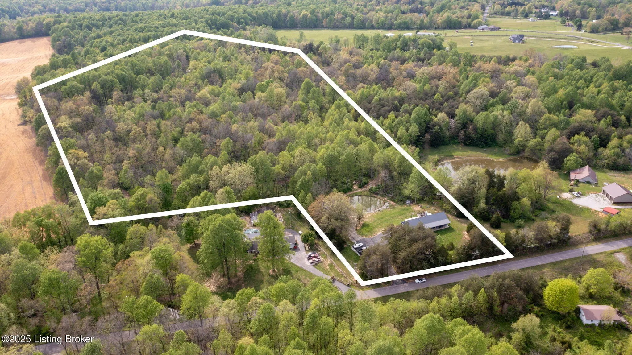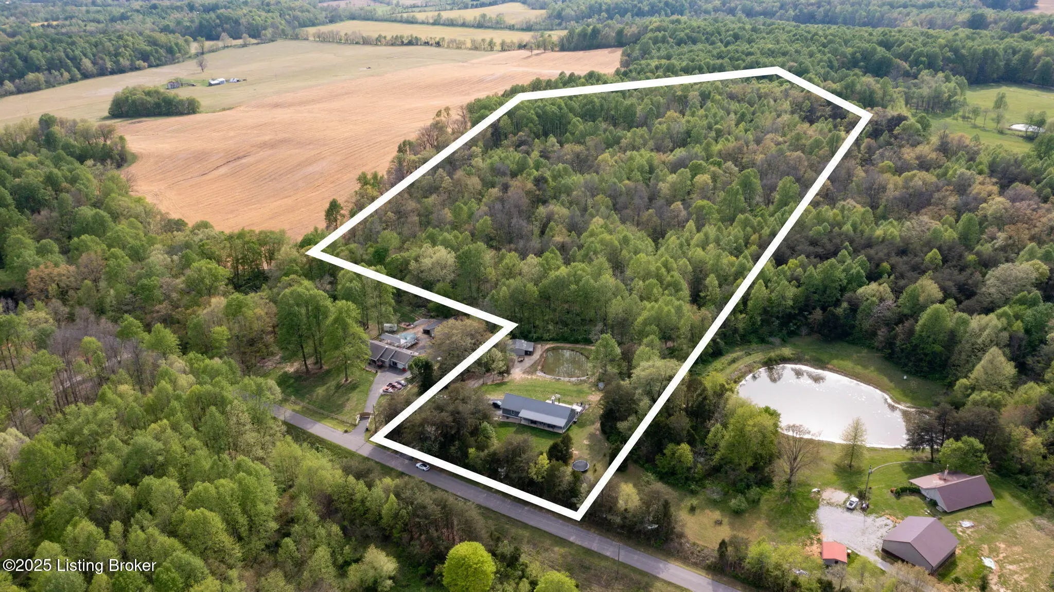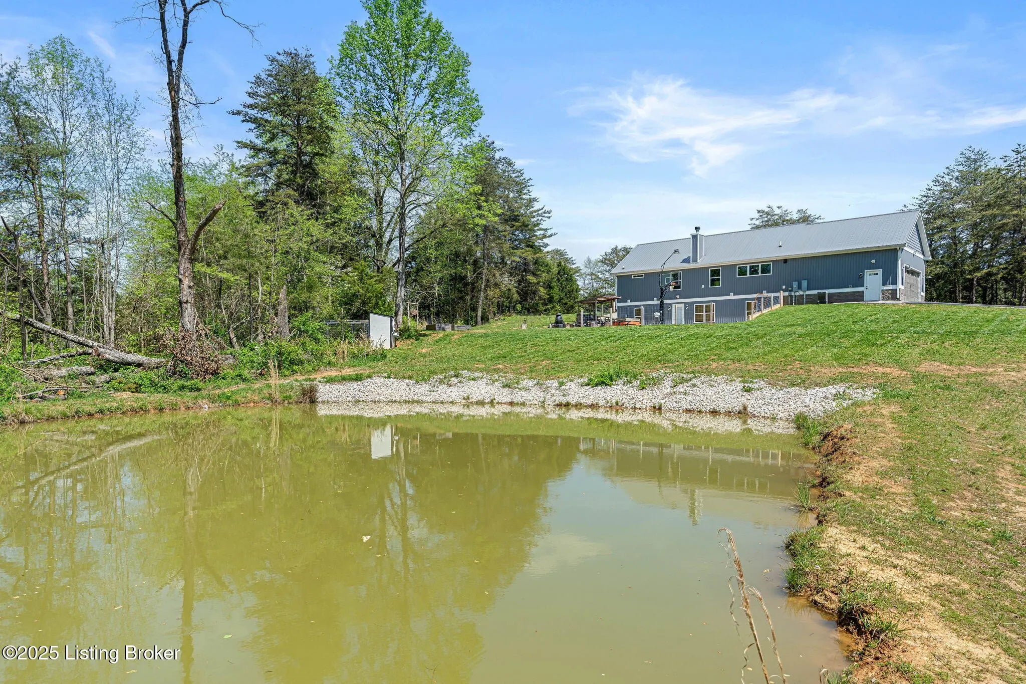 Sitting on 23.8 acres of land, this property is a paradise for outdoor enthusiasts offering privacy and endless opportunities for hunting with areas for food plots, dirt biking riding, and even target shooting. This property also has a fish stocked pond, a fully insulated 24x24 barn with electricity, 12x24 lean to attached to it, and 1.5+ miles of SXS side by side trails that meander throughout the entire property. The walk-out basement leads to a sprawling 30x30 concrete patio which has a heavy duty pro basketball goal, a hot tub, 14x24 fire pit and bar area that could seat roughly 20 people. Inside, an open floor plan floods the space with natural light, showcasing custom kitchen cabinets with an island and wood-burning fireplace. The primary suite is on the main floor and offers two walk-in closets and a custom-designed shower with Bluetooth capability. Each bedroom is a private oasis, with its own bathroom and shower. Additionally, entertainment and creativity thrive here with a separate living area in the basement, complete with a soundproof studio ideal for music lovers or anyone seeking a peaceful retreat to indulge in their hobbies.