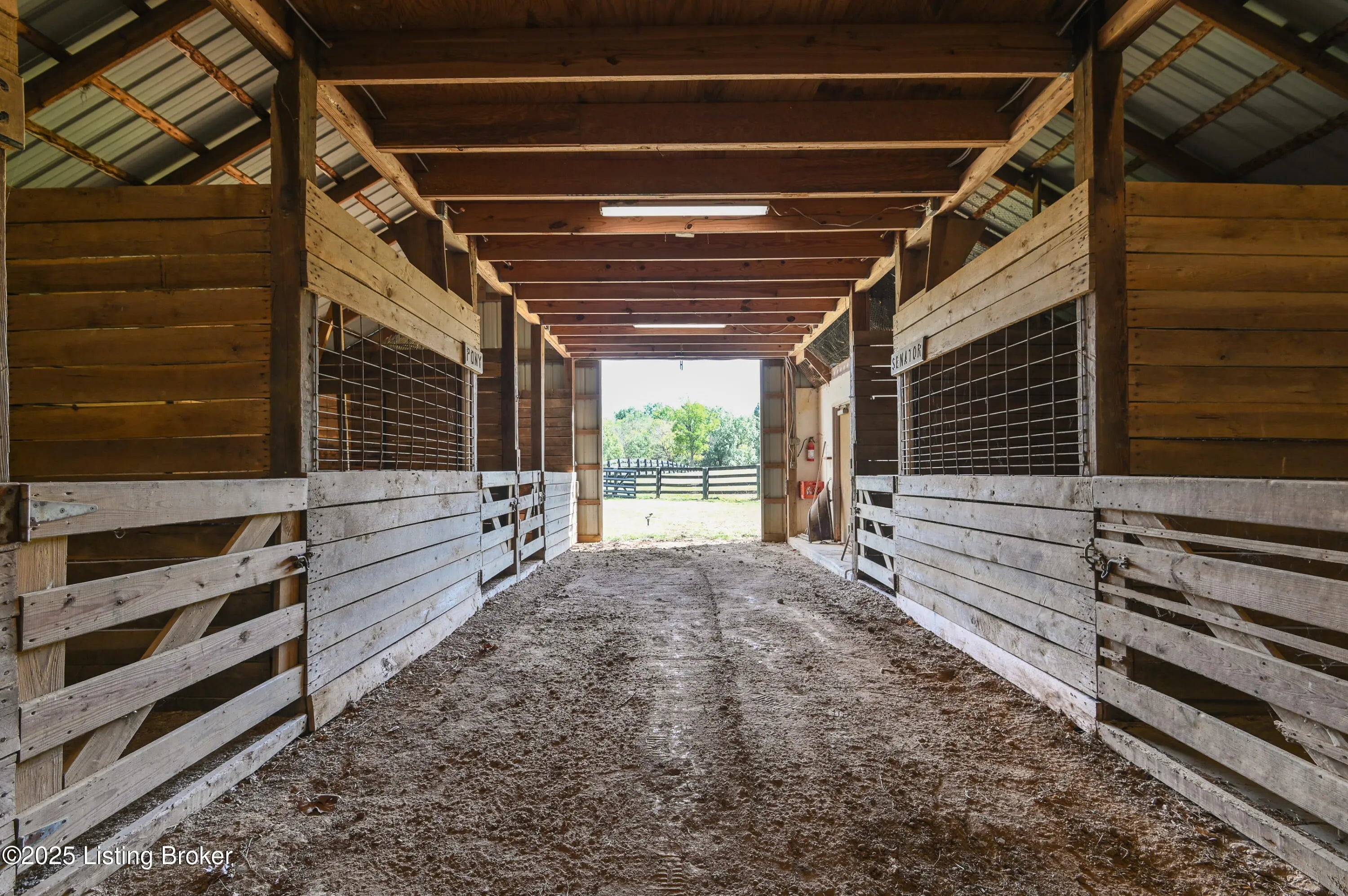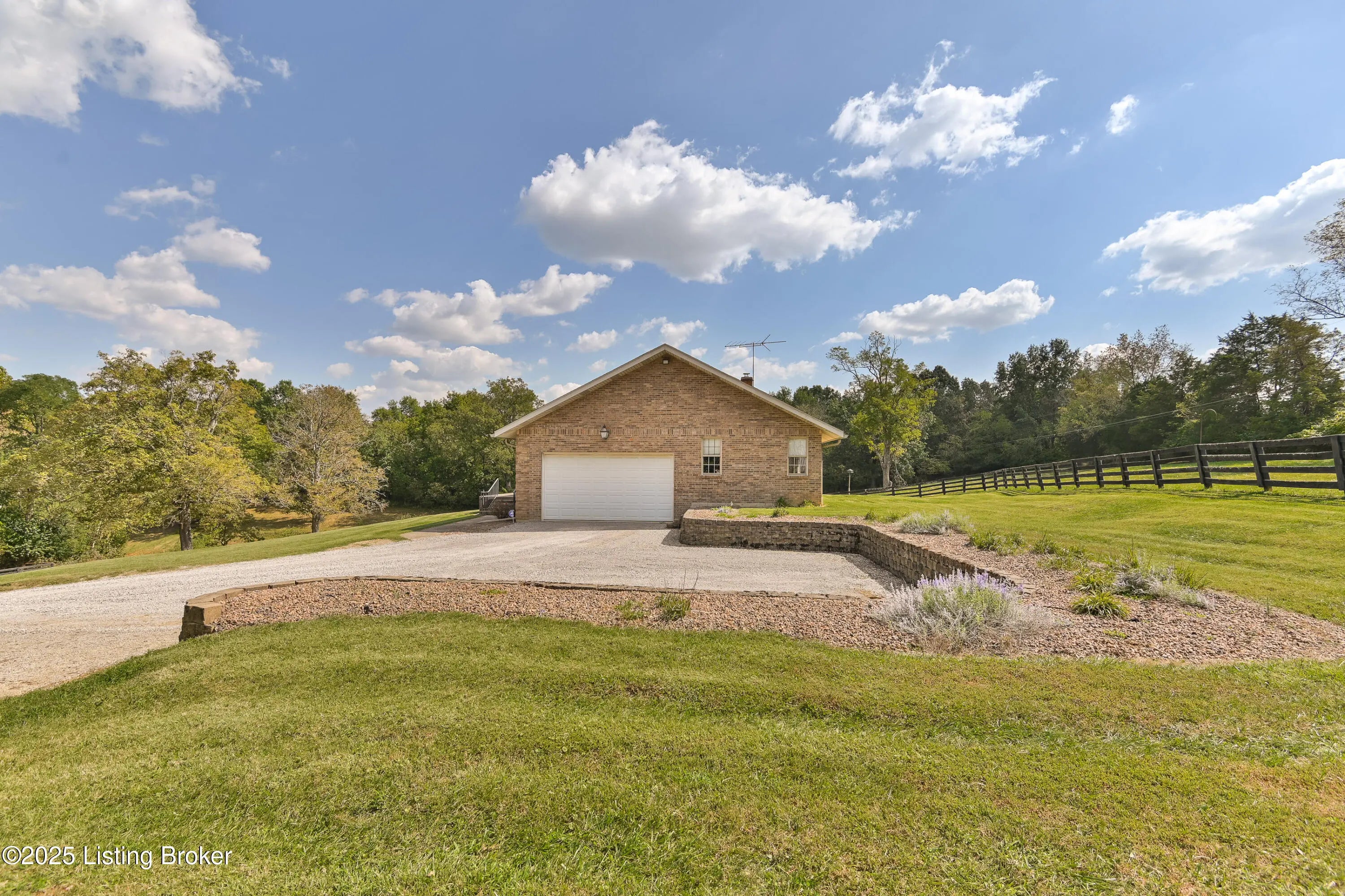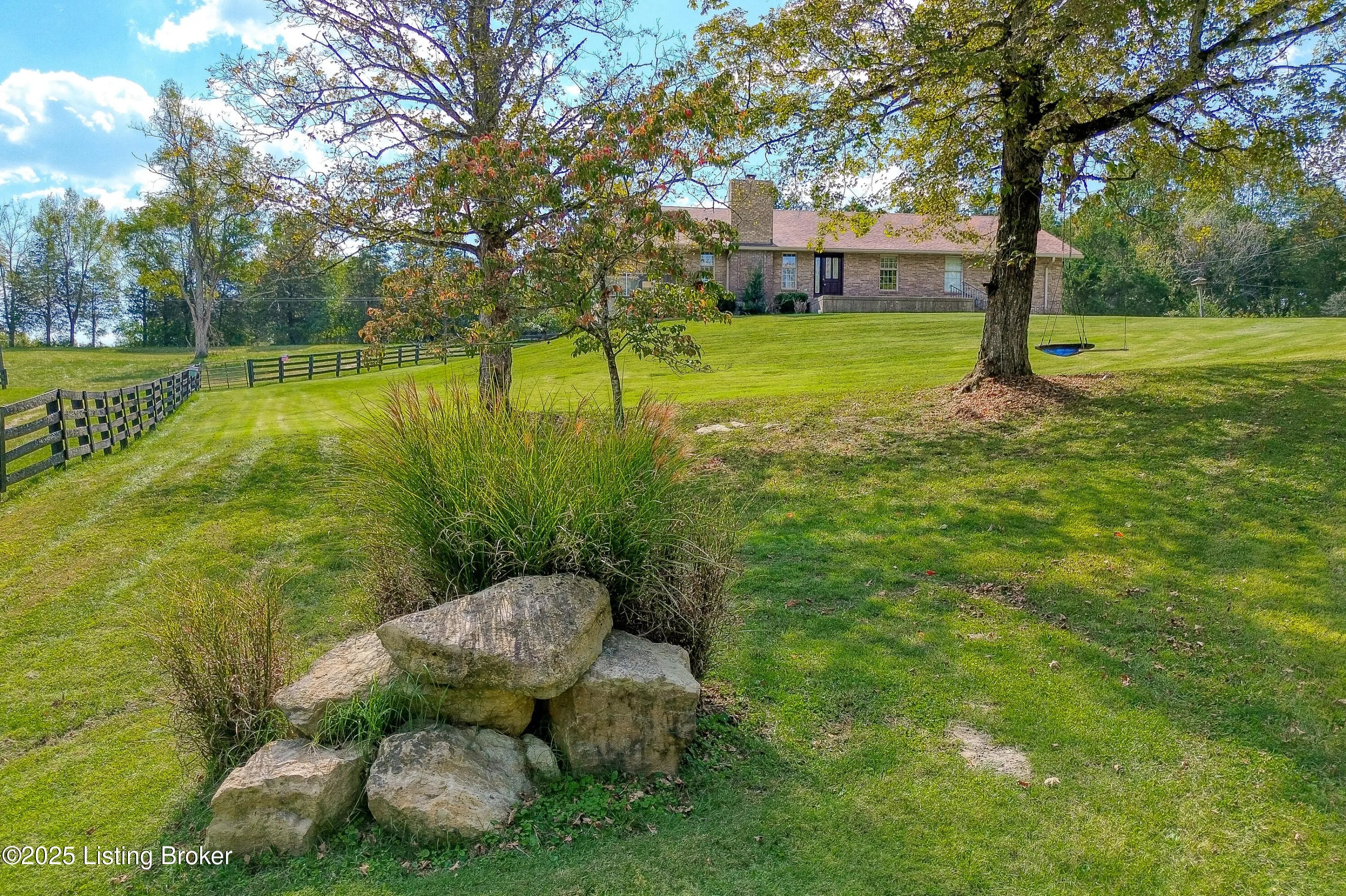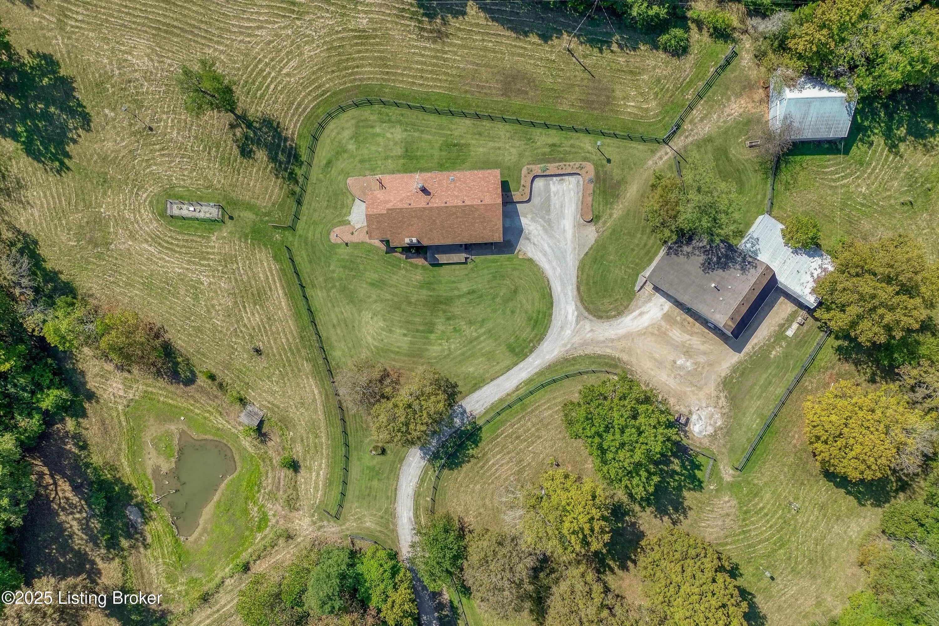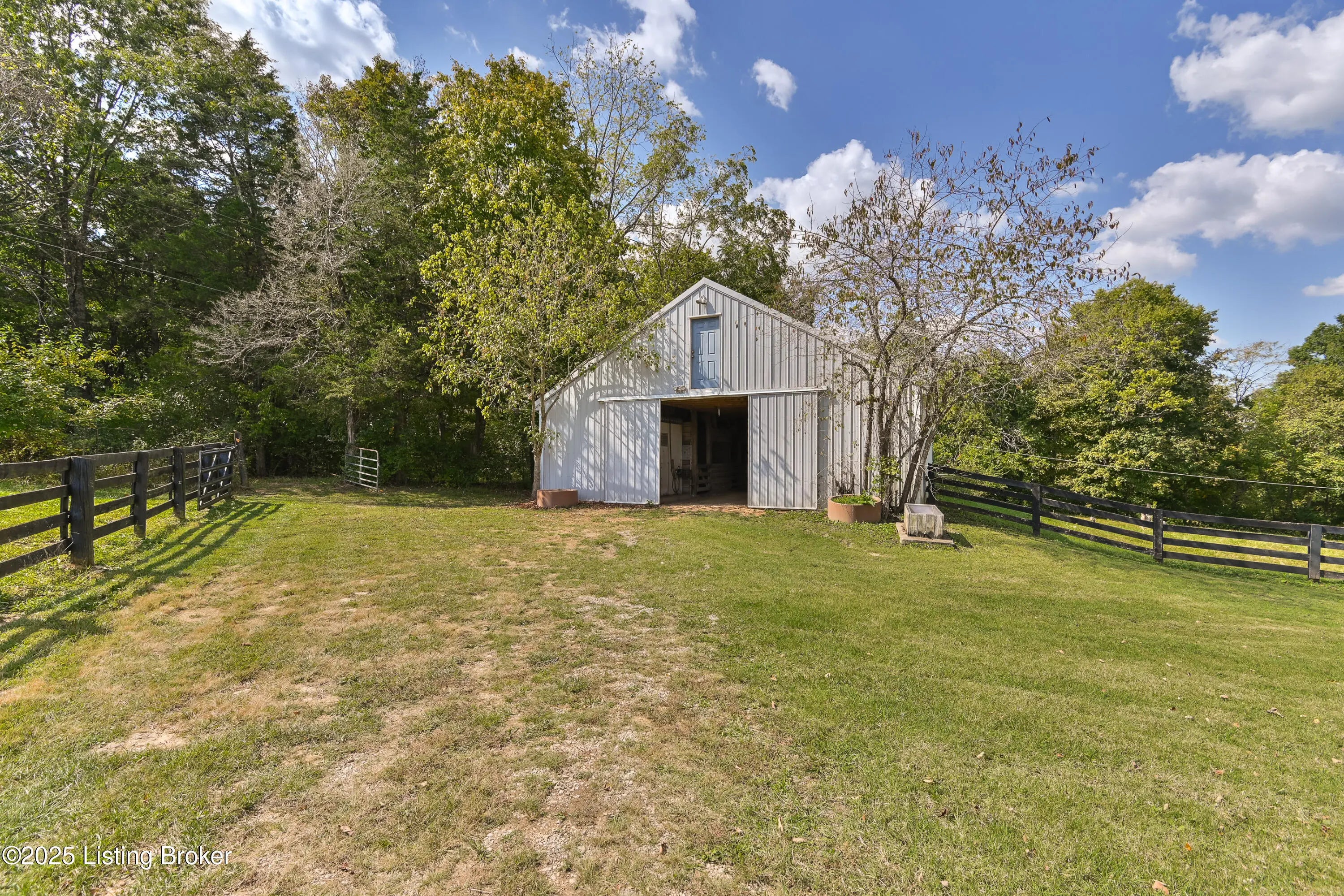 Imagine waking up on 22 acres of rolling countryside, coffee in hand, watching your horses graze just outside the window. This property is more than a home — it's a lifestyle. The 36×36 horse stable with 5 oversized 12×12 stalls and a tack room is ready for your equestrian dreams, with wood-fenced pastures stretching out around you. A second 40×60 outbuilding with loft includes a vehicle lift and compressor that stay — perfect for the hobbyist, collector, or anyone ready to turn their passion into a business. Add in a huge carport and equipment storage, and you'll never run out of space for tools, toys, or tractors. Inside, the ranch-style design makes life easy with everything on one level — 3 bedrooms, 2 baths, a vaulted living room with a cozy fireplace, and an open kitchen-dining flow perfect for gathering. The sunroom is your morning retreat, where deer and wildlife wander by. Downstairs, a partially finished basement expands your options with a 3rd full bath, two offices, and plenty of extra living space. Multiple garages and laundry hookups on both levels add everyday convenience. And the best part? You get peace, privacy, and fresh air while being just 5 miles from the Gene Snyder and minutes to The Parklands. Country calm meets city convenience. Don't just dream it come walk the land, tour the barns, and see what life could look like here. Schedule your private showing today!