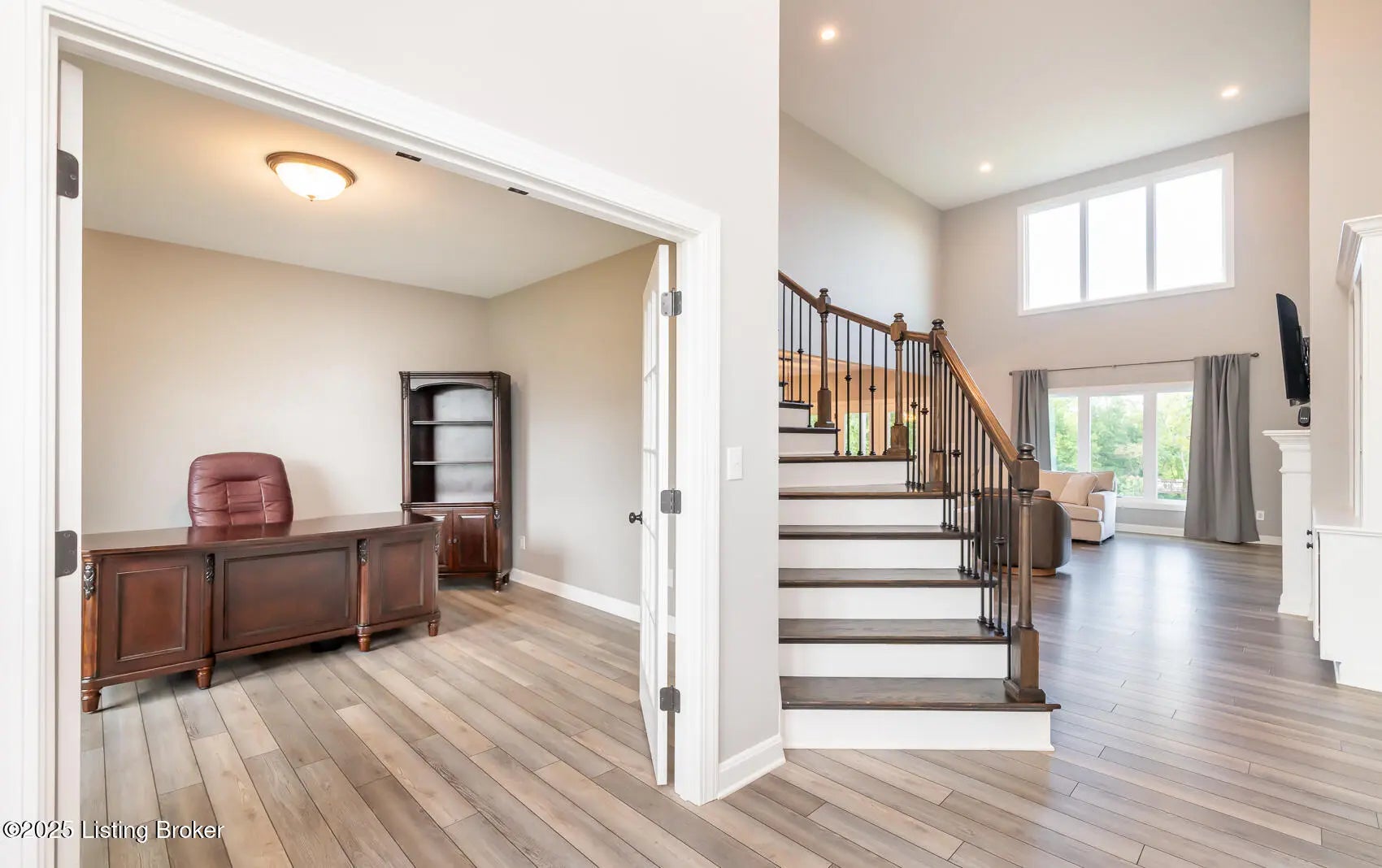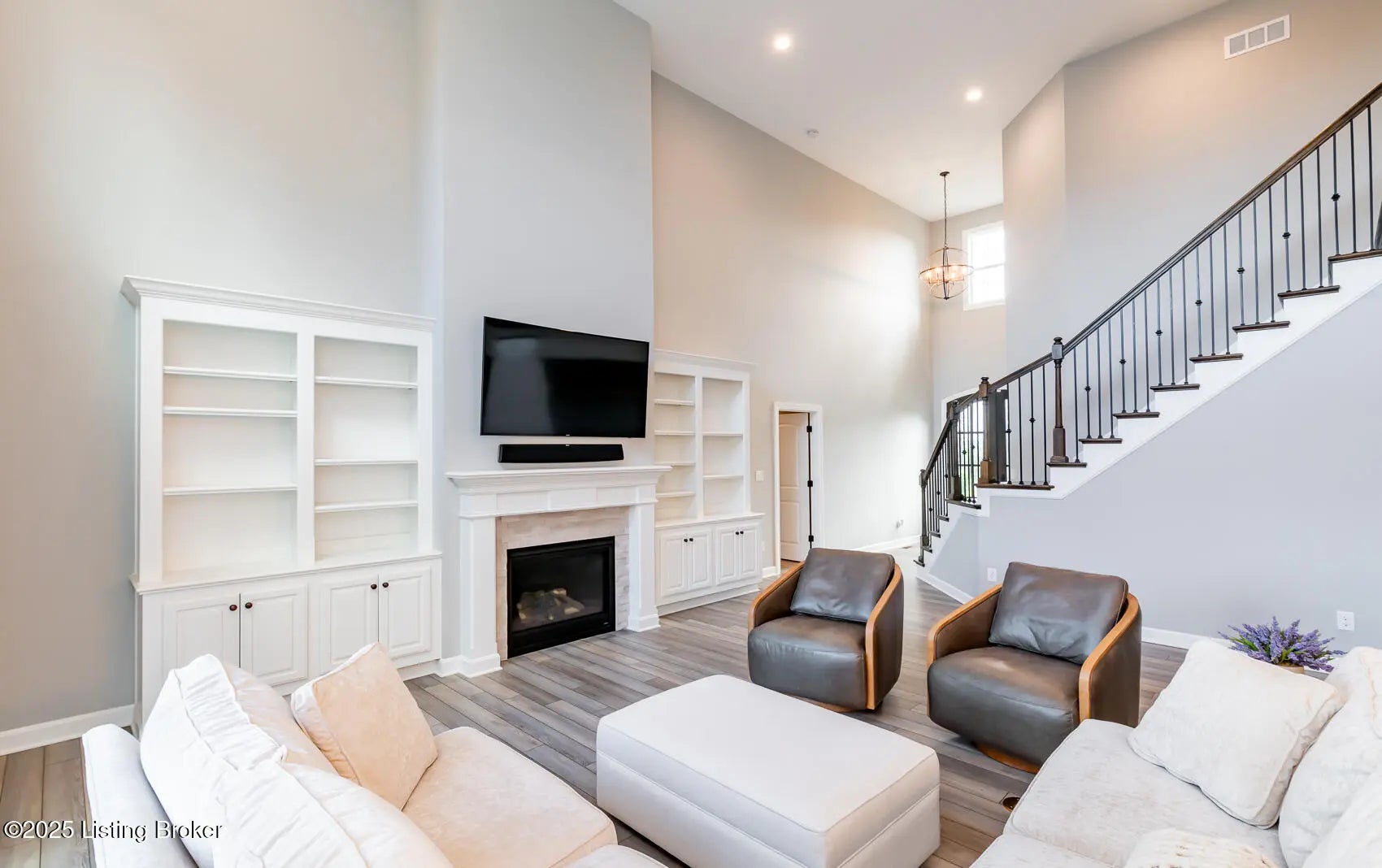 Discover refined living in this exceptional 6-bedroom, 4.5-bath home offering over 4,370 sq ft of beautifully finished space. Step into a grand two-story foyer and great room, where soaring ceilings, built-in shelving, and an elegant fireplace set the tone for both comfort and style. The open-concept layout is ideal for entertaining, flowing seamlessly into a designer kitchen featuring custom cabinetry, quartz countertops, top-tier appliances, and a sprawling center island. The main level also features a private home office, convenient laundry room, and a luxurious primary suite with spa-inspired ensuite and walk-in closet. Upstairs, natural light fills four generously sized bedrooms and two full baths. The fully finished walkout basement adds even more versatility,complete with a large family room, guest suite, full bath, and ample storage. Enjoy outdoor living on the expansive deck overlooking a wooded backyard. Perfect for relaxing or hosting guests. Additional highlights include a 3-car garage and access to the highly desirable Shakes Run amenities: pool, clubhouse, and scenic walking trails. With close proximity to shopping, and dining, this home offers an unmatched lifestyle of luxury and convenience.
