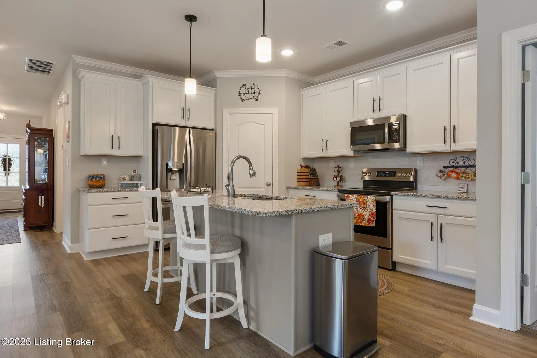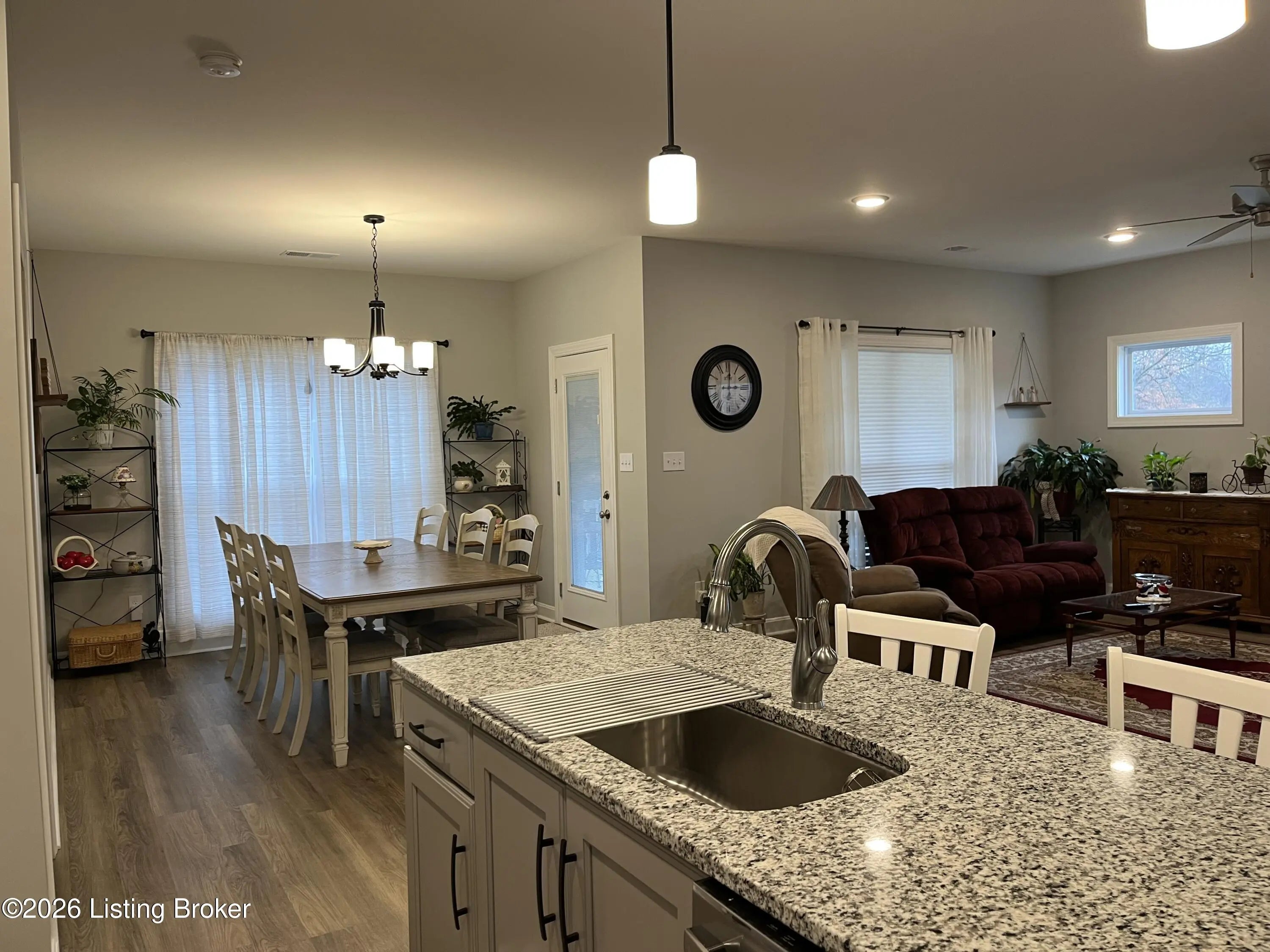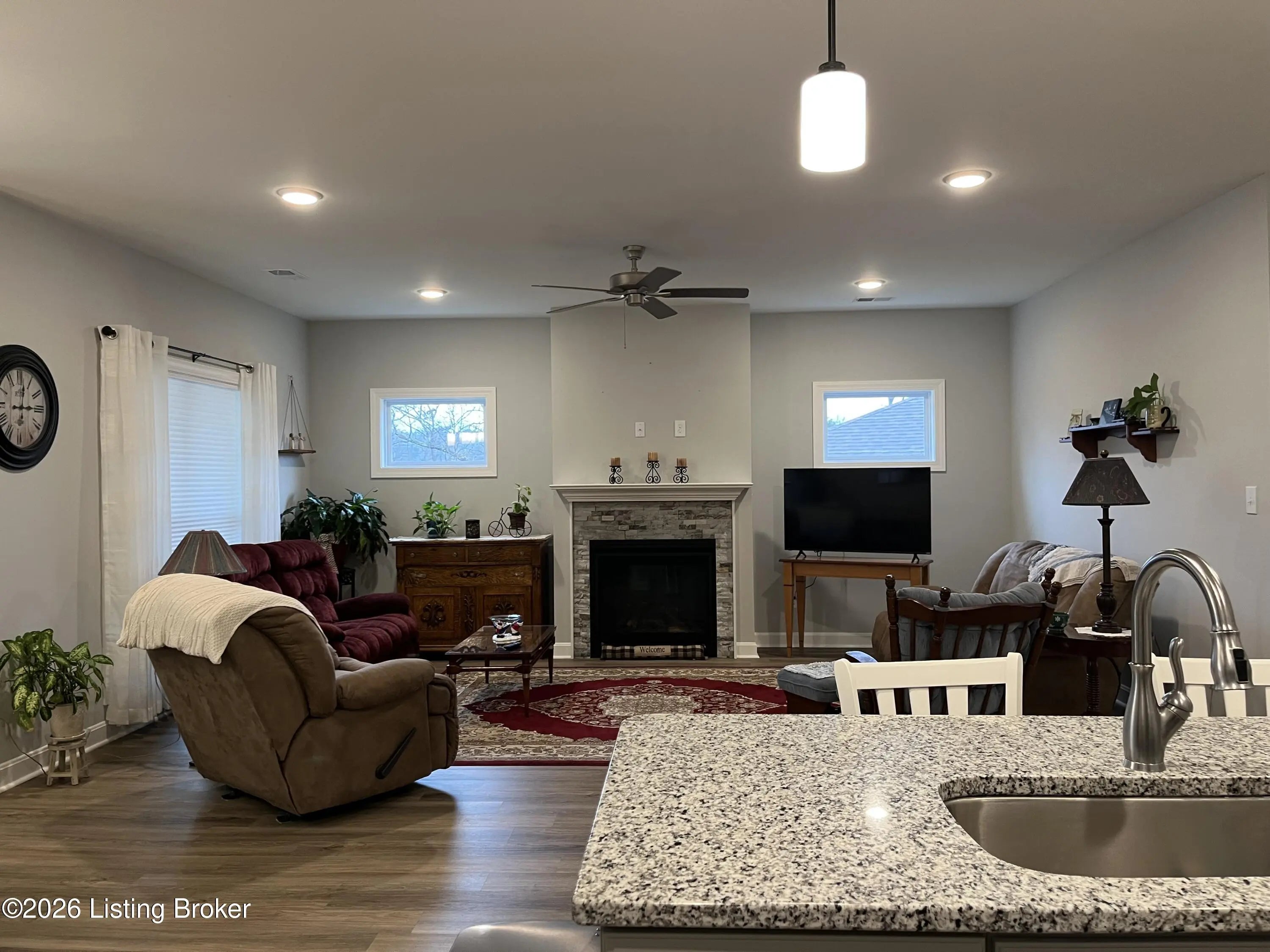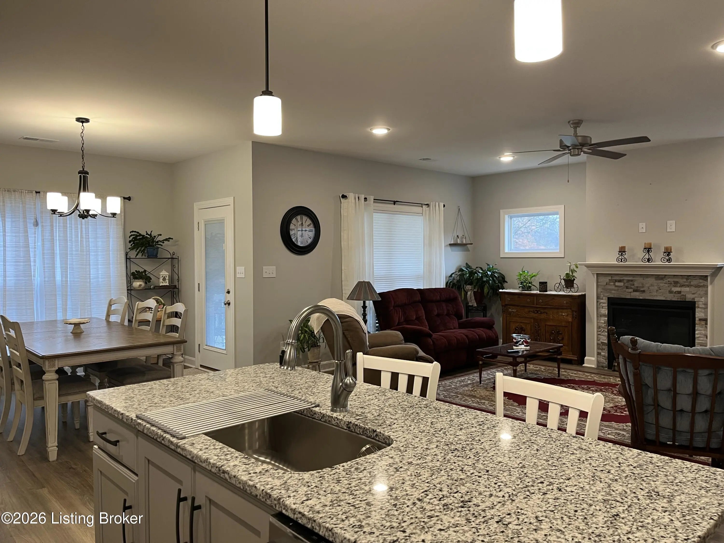 Welcome to this charming 3-bedroom, 2-bath Craftsman-style ranch tucked away on a quiet cul-de-sac lot. Designed for both comfort and style, this home features an inviting open-concept kitchen and great room with a cozy fireplace as the centerpiece. The kitchen is a chef's delight, complete with a center island, corner pantry, and gleaming granite countertops. The spacious primary suite offers a private retreat, highlighted by a luxurious tile shower, soaking tub, and a large walk-in closet with convenient access to the laundry room. Two additional bedrooms provide flexibility for family, guests, or a home office. Enjoy outdoor living year-round with a covered front porch and rear porch, perfect for relaxing or entertaining. Additional features include an attached two-car garage with pull-down attic stairs for extra storage. Set in a peaceful neighborhood, this home combines modern functionality with timeless Craftsman charman ideal place to settle in and call your own. Swing on rear porch does not remain with the house.