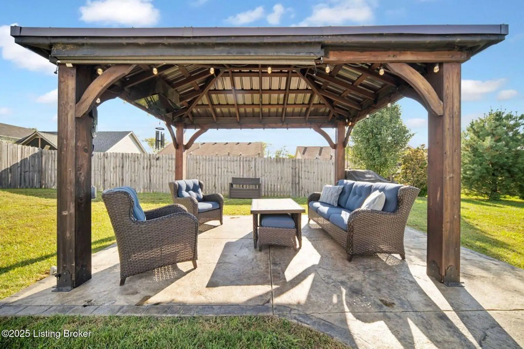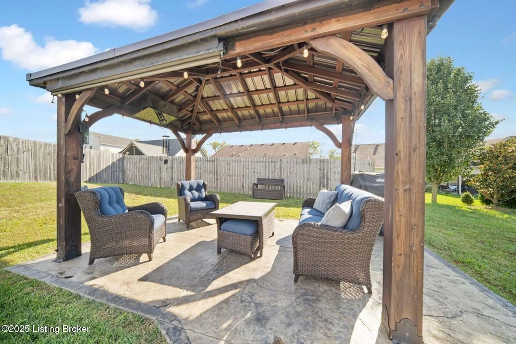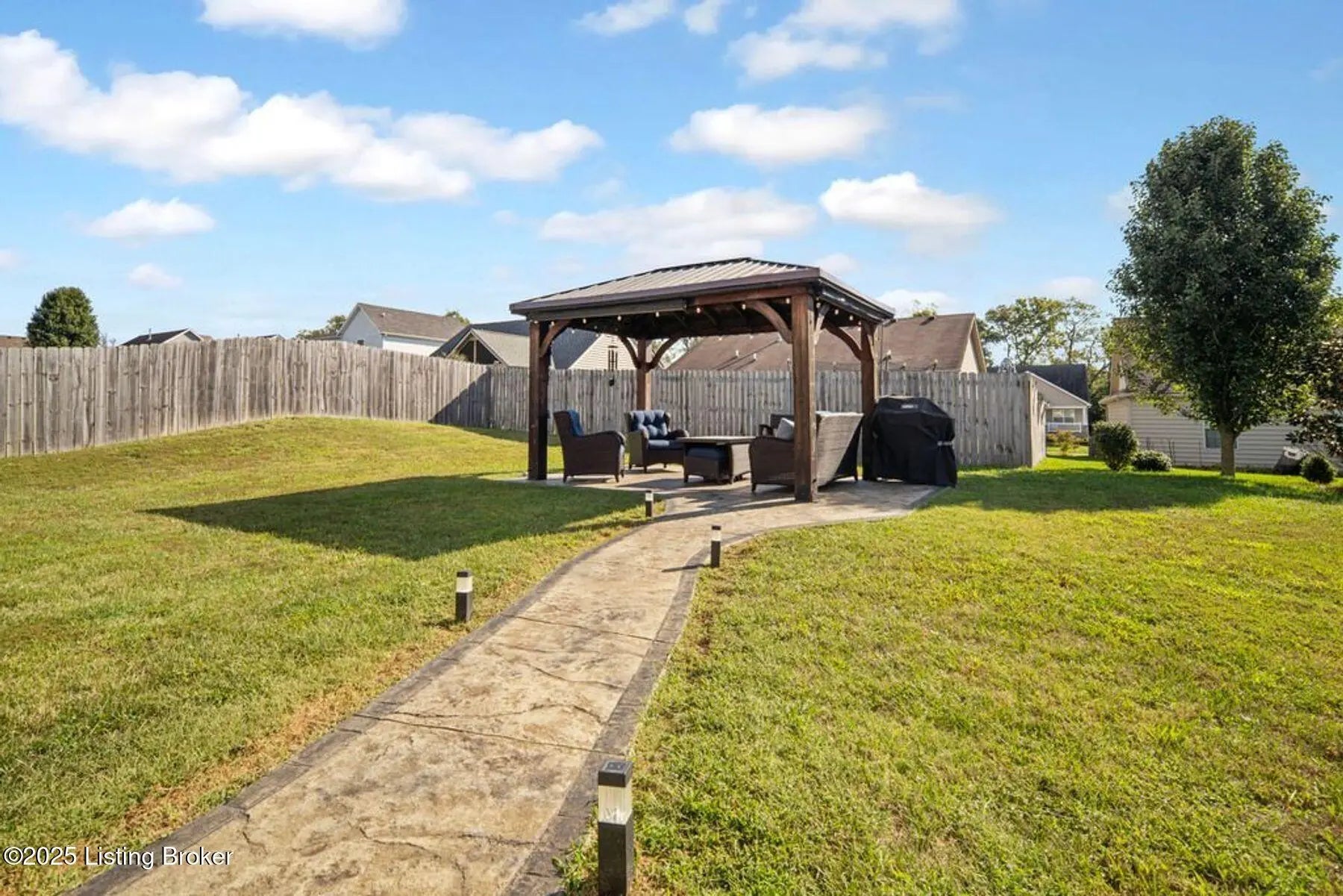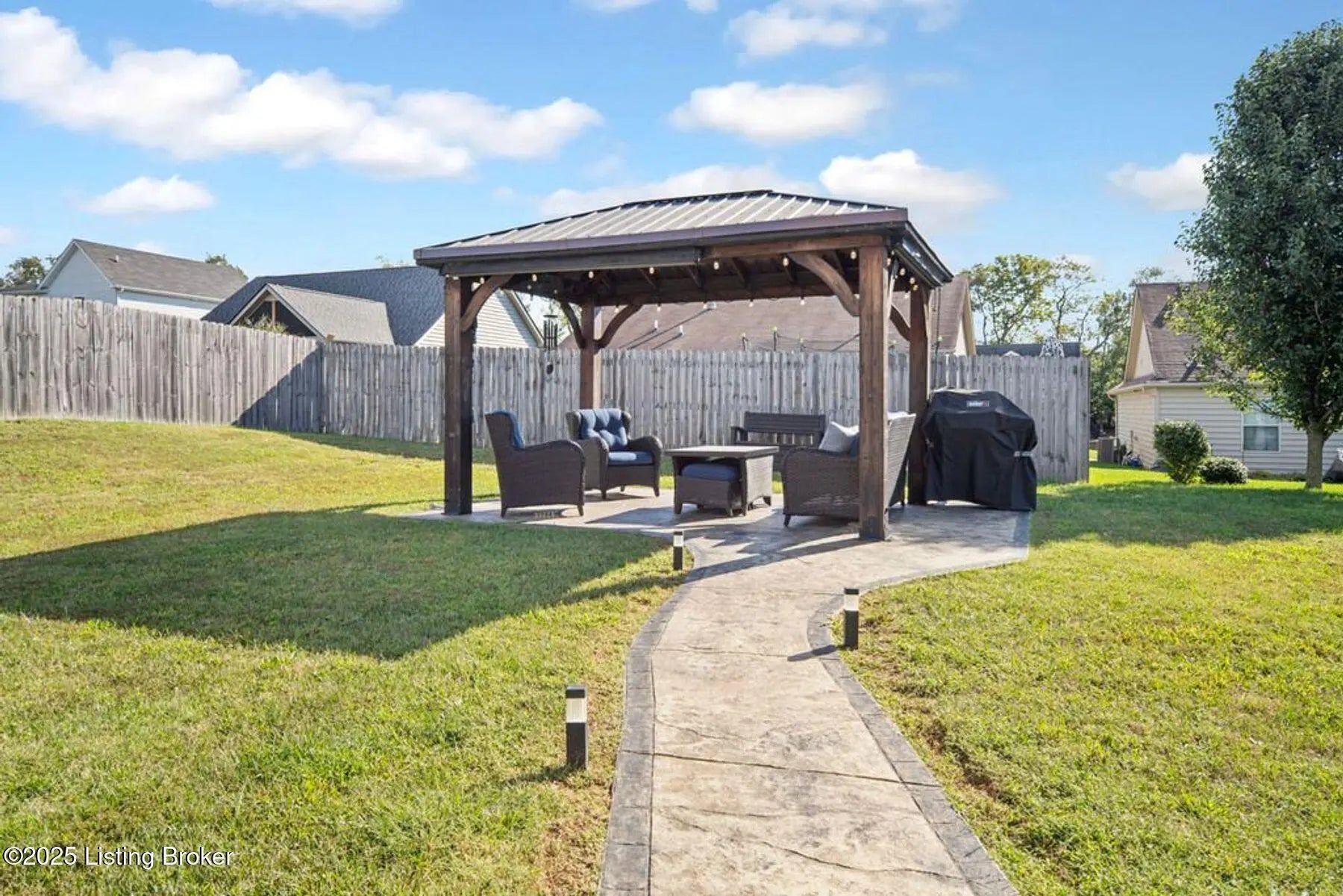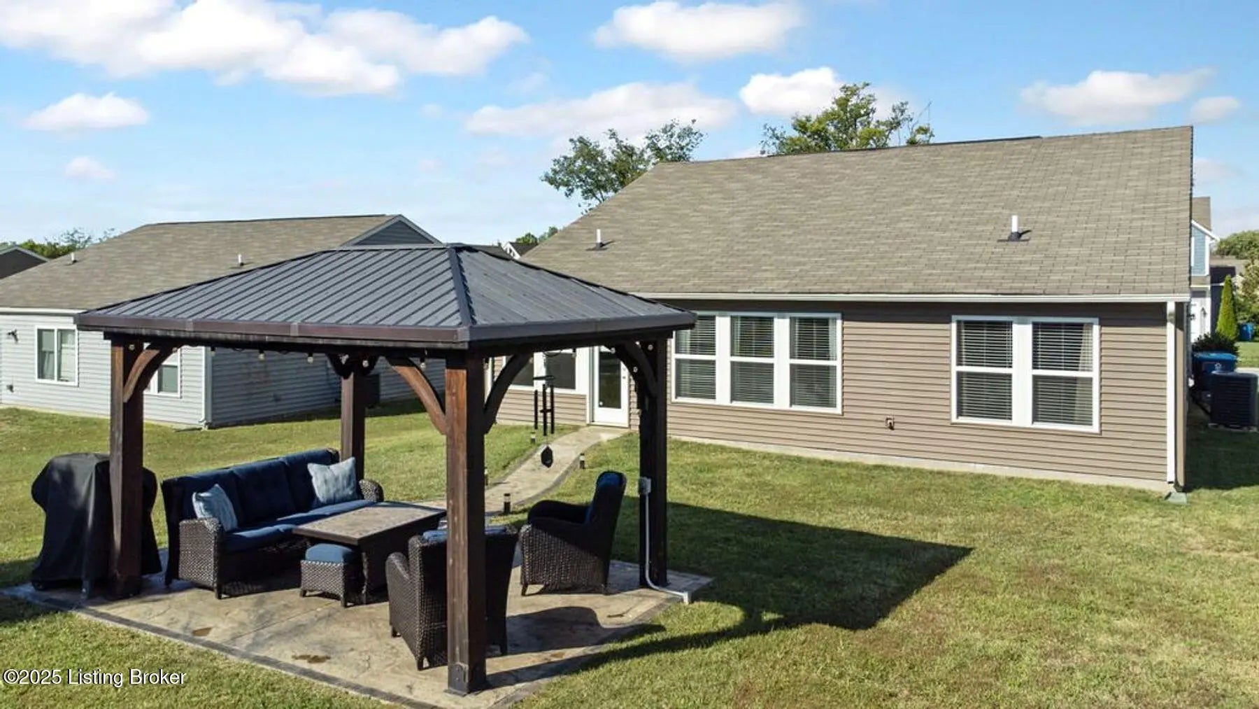 Welcome to this well-maintained 3 bedroom, 2 bath, less than 5 year old home in the desirable Summersfield Place subdivision. Providing one-level living, and a split floor plan with primary being on one side of the house, while the other 2 bedrooms are on the other side, everyone has a place to call their own. The spacious kitchen with island, features stainless steel appliances which remain, granite countertops, tiled backsplash, and LVP flooring, which extends through the kitchen, dining area, bathrooms, and hallways for easy living. The real star of the show? You will get to enjoy your own private outdoor retreat with a custom-built gazebo complete with electrical hookups for lighting and TV (which remain), plus a gorgeous & stylish stamped concrete sidewalk leading to the patio. With the right offer, the patio furniture can also be negotiated to stay...giving you a ready-made space for entertaining, grilling, and watching your favorite game! Additional features include a 2-car garage with side entry door, and convenient access to popular Shelby County dining, shopping, and attractions. This property combines comfort, style, and location, ready for its next owners!