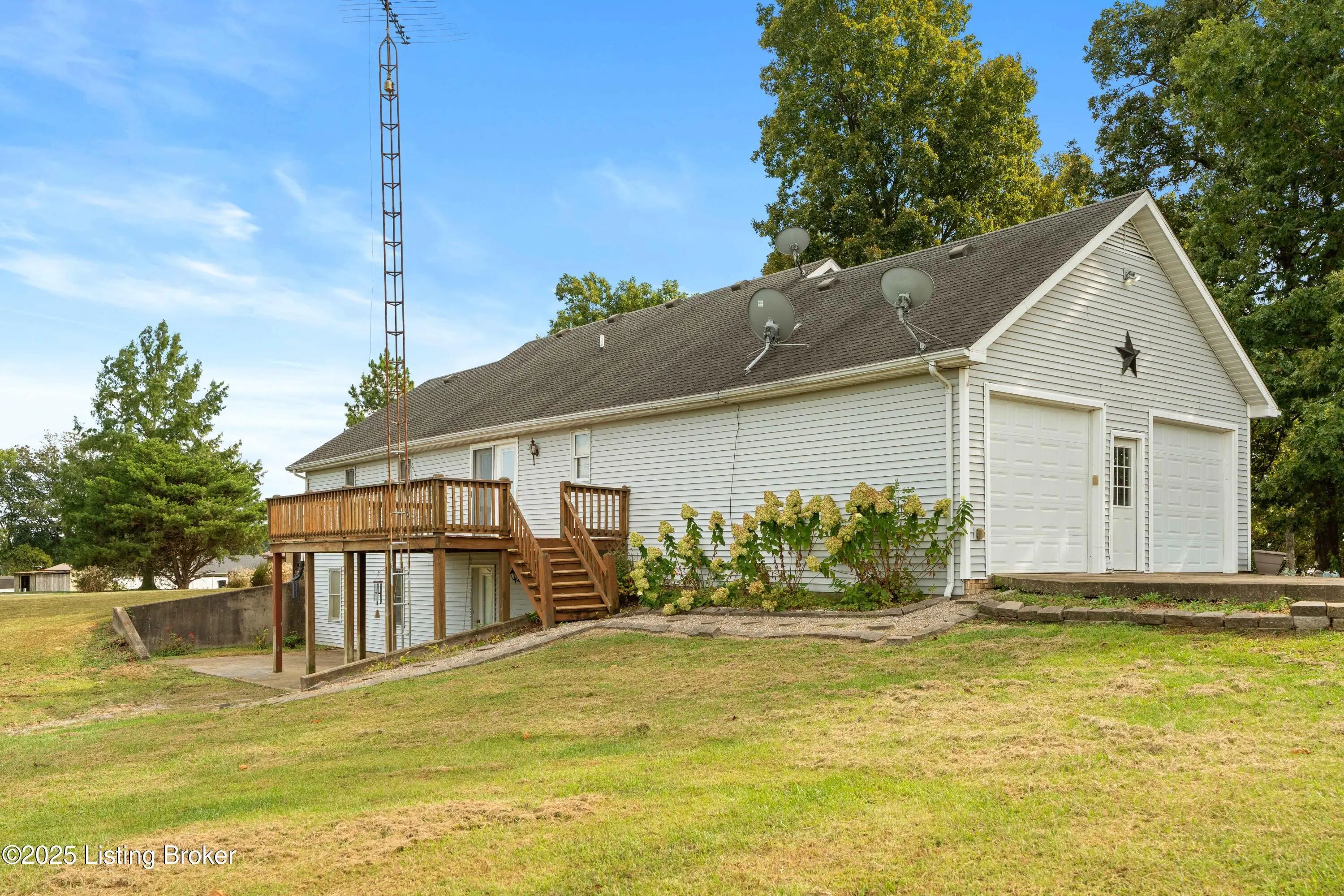 Gorgeous 4 possibly 6 bedroom home situated on 2.087 newly surveyed acres. This home features cathedral ceilings in the living room with gas fireplace, large eat-in kitchen with an abundance of cabinets, master suite with bathroom and large walk-in closet and an additional room that has served as a bedroom but could also be an office. Down stairs features a large foyer area with an exterior door, an additonal master suite with walk-in closet, 2 addtional bedrooms and a bedroom with no exterior window, full bethroom and additonal laundry! Outside this home is well off the road and on top of having a two car attached garage also has a 25X40 detached garage with concrete floor and an older barn! Call today to schedule your showing!