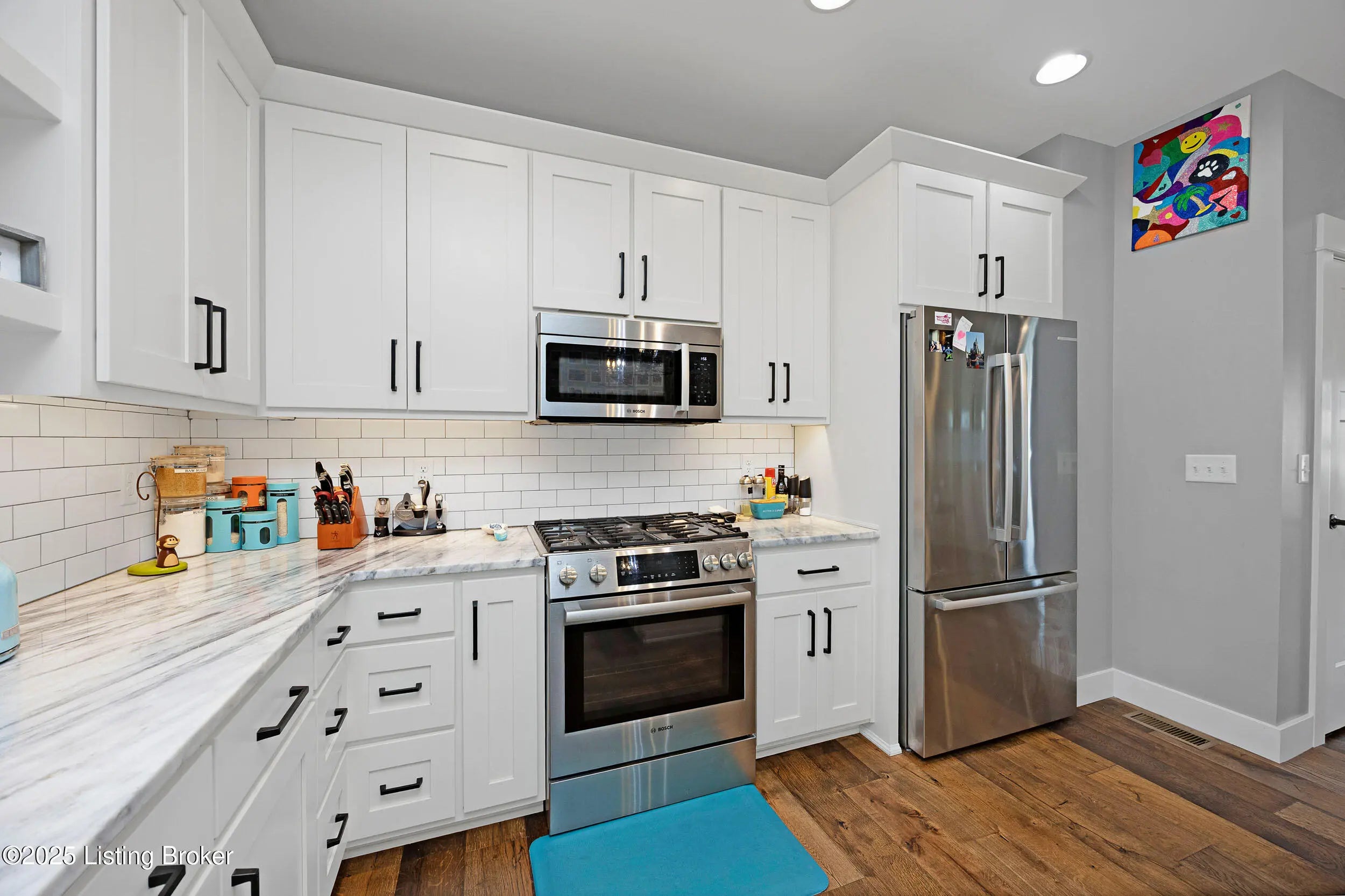Come take a look at this beautiful home located in Tullamore of Historic Bardstown, Ky. Stunning 4 Bedroom 3 Bath brick & stone ranch style home with finished walkout basement & two car attached side entry garage is situated on private cul de sac lot. This home offers 9' ceilings, beautiful hardwood & tile floors, smooth ceilings & plantation shutters. Living Room features a stone gas fireplace with custom built in bookcases. Open floor plan with kitchen offering custom white cabinetry, granite countertops, tiled backsplash, large island bar and stainless appliances.