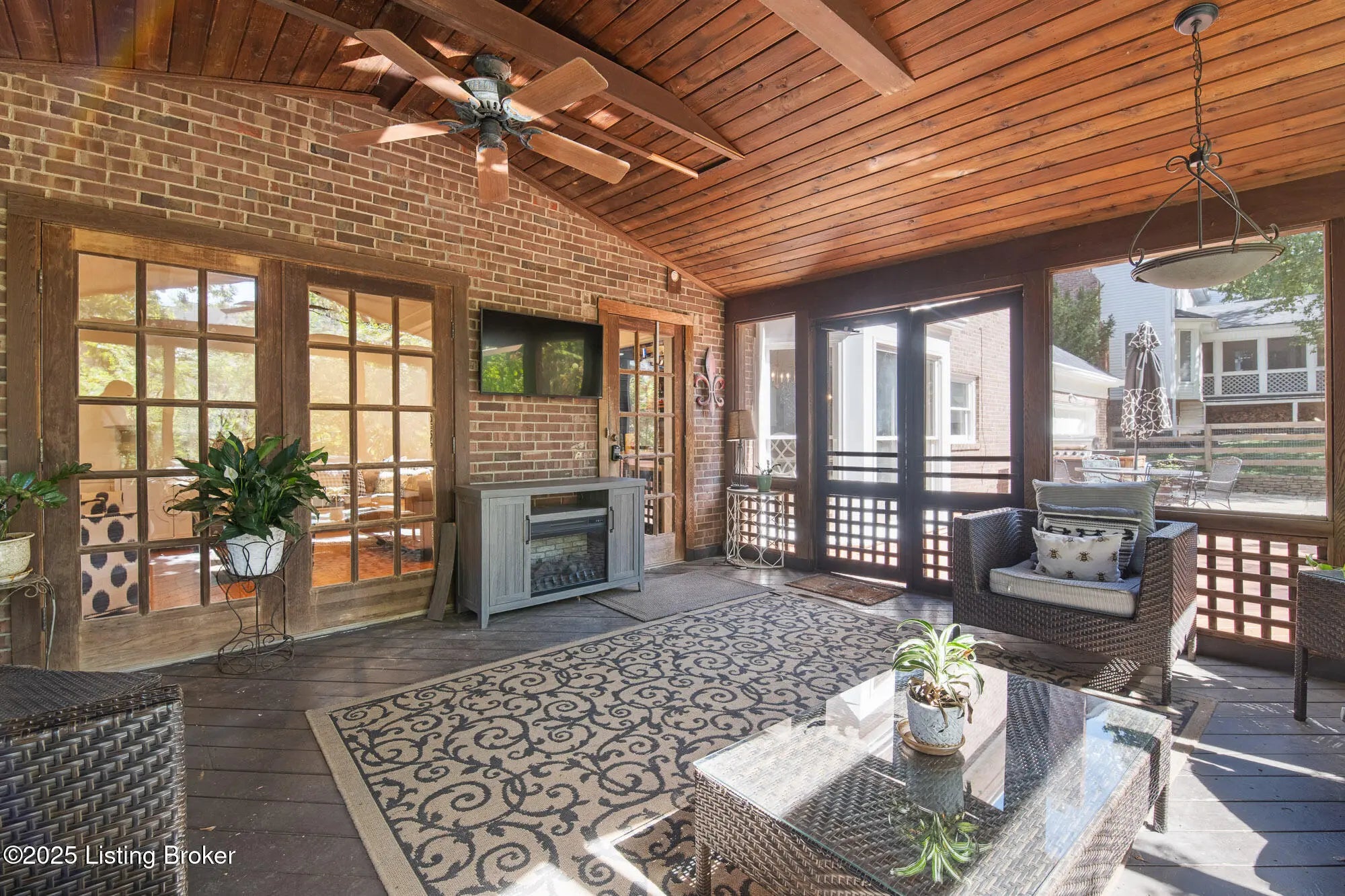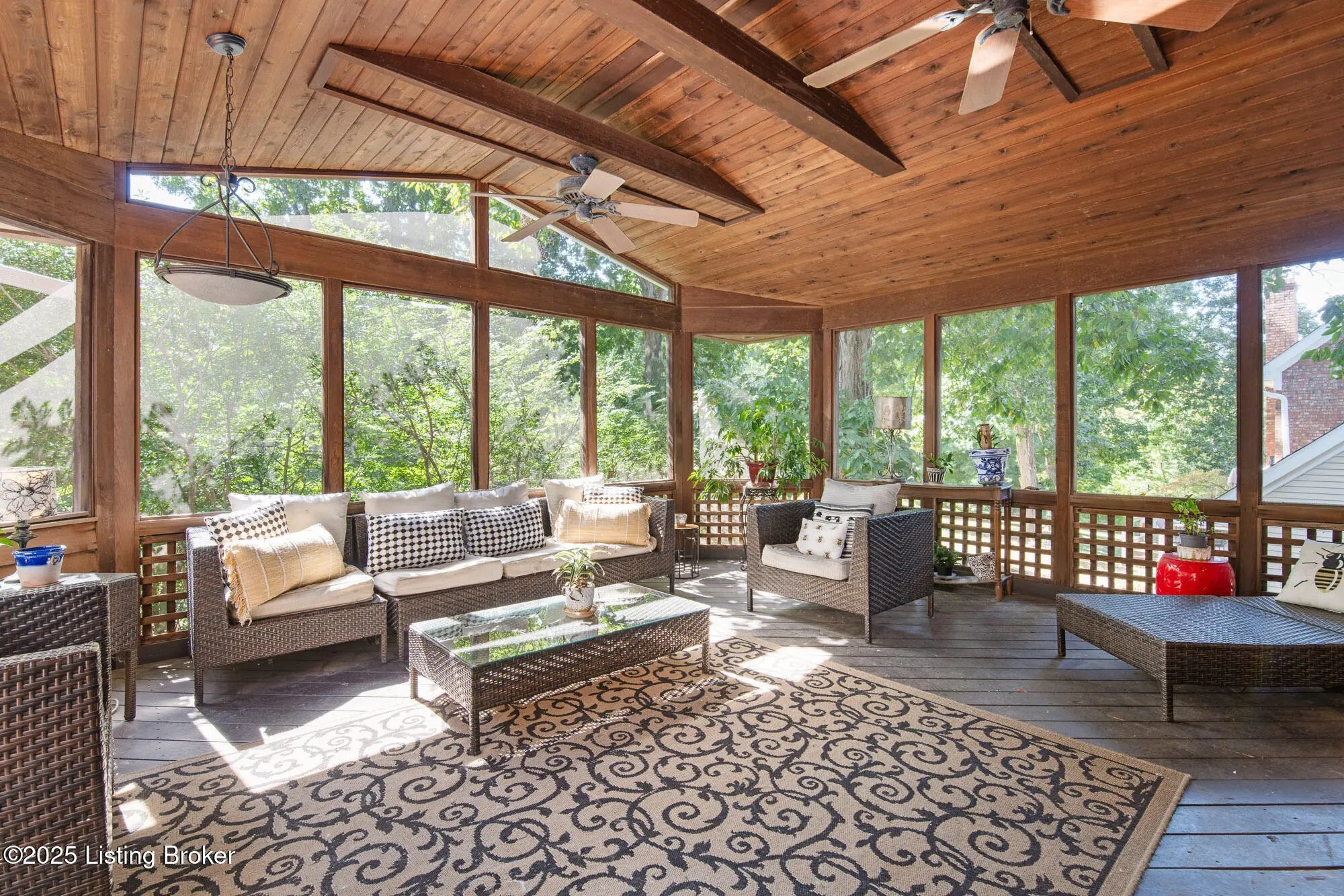 Discover this classic 4-bedroom, 3.5-bath home nestled in the highly sought-after Falls Creek neighborhood. The incredible and inviting screened-in back porch provides an ideal space for relaxing or entertaining while overlooking a fully fenced backyard perfect for outdoor activities. Inside, the main level features beautiful hardwood flooring throughout. The welcoming foyer seamlessly flows into the spacious living room and into the elegant dining room in the front and an updated eat-in kitchen + family room in the back. The kitchen is equipped with stainless steel appliances, plentiful white cabinetry and stunning stone countertops. A window-filled breakfast table nook is the ideal space for family meals. The kitchen is adjacent to the family room and includes a cozy fireplace flanked by built-in bookcases and a Kentucky-themed bar perfect for entertaining and situated by the doors leading to the outdoor spaces. The vaulted ceilinged screened porch is a perfect addition to the already-generous interior square footage for fun and outdoor enjoyment. The rear deck is perfect for gatherings and accessible to the fully fenced backyard with mature landscaping. A half-bath and laundry facilities complete the main floor. Upstairs, you'll find a luxurious primary suite with three additional bedrooms all with brand-new carpeting. The primary suite boasts am en-suite bath , dressing area. a walk-in closet as well as an additional bonus office spaceperfect for remote work or relaxation. A full bathroom services the other 3 generously sized bedrooms. The walkout basement provides even more living space with a large open family room featuring fresh carpet, a fireplace and extensive built-in cabinetry. An additional office or bonus room plus a full bathroom makes the finished lower level ideal for guests, a home gym, or a play area. In Falls Creek, all you have to do is venture outside to enjoy outdoor adventures just steps from your door. The well-maintained neighborhood wooden stairs lead down to a scenic walking trail along the creek, where you can hike and take in picturesque views of the creek and waterfall. Parents of school aged children will love the convenience of some of the area schools' bus stops near to the house. This wonderful home combines comfort, functionality, and natural beautya truly ideal place to call home.