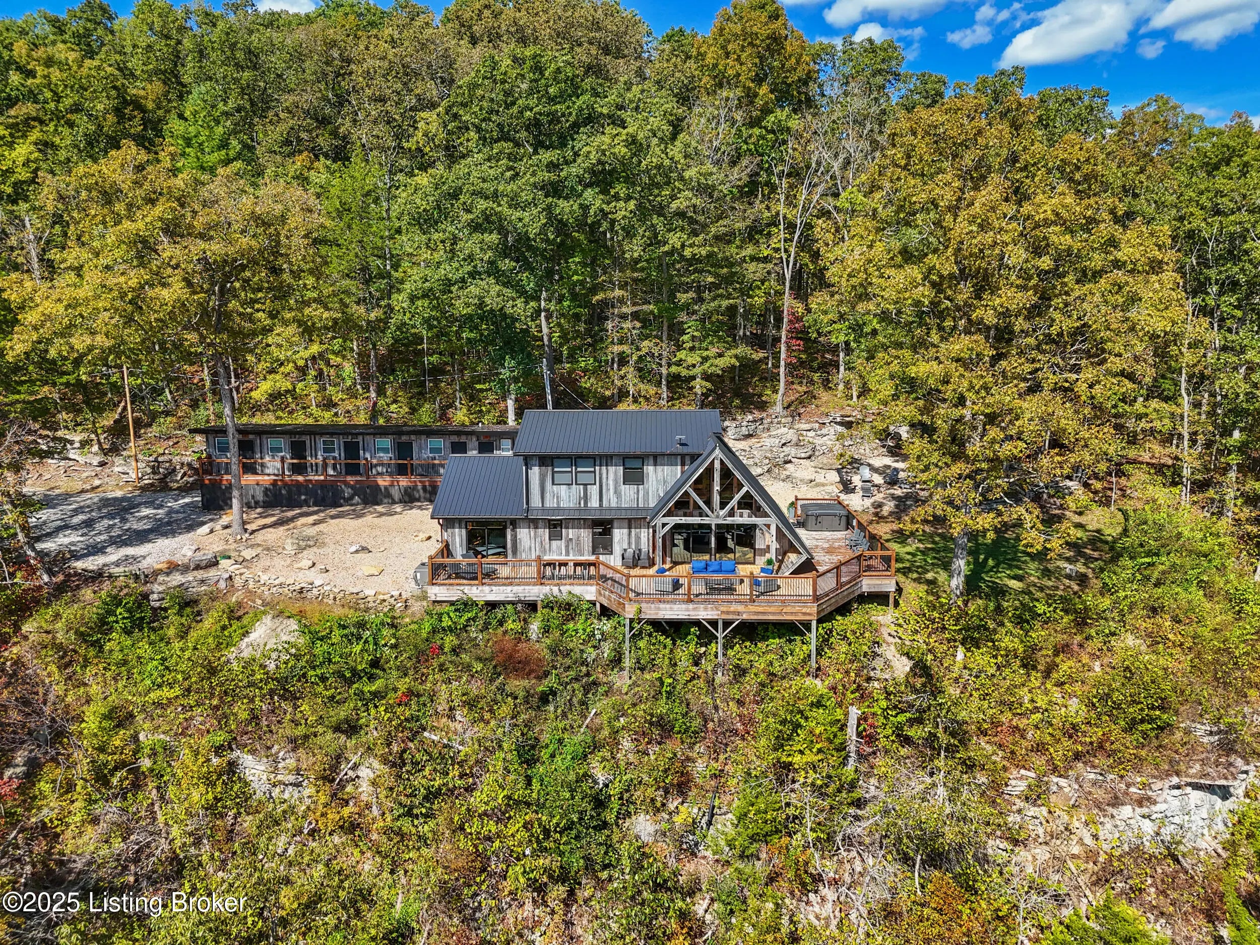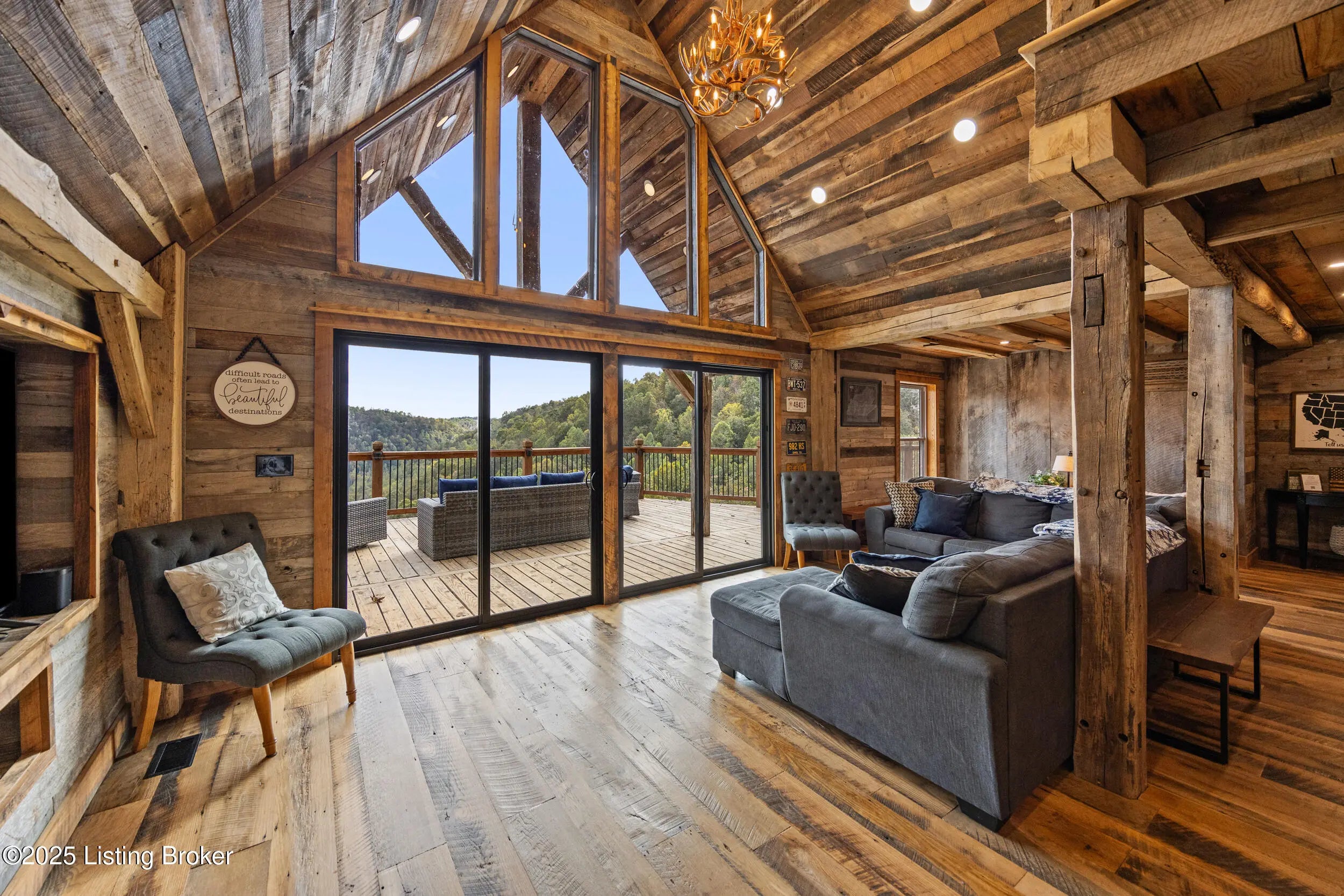 Notably featured in KY Homes and Gardens Magazine, this September/October issue, Estill Oaks is a thriving Short Term Rental and rustic retreat on a secluded 40 acres with long range views. Featuring a 3 br/2.5 bath main house with a 4 br/2 bath bunkhouse (sleeps 16), take a look at the reclaimed wood finishes and superior design. This property offers a unique investment in the Red River Gorge area with multiple additional build sites and a matching reclaimed wood barn that can be marketed for weddings and events. In the existing home, enjoy smart home features like WiFi, indoor/outdoor speakers, adjustable lighting, hot tub, and fire pit. With stunning views, luxurious touches, and hiking/ UTV trails, Estill Oaks is an ideal getaway for up to 16 guests. Additional acreage available.