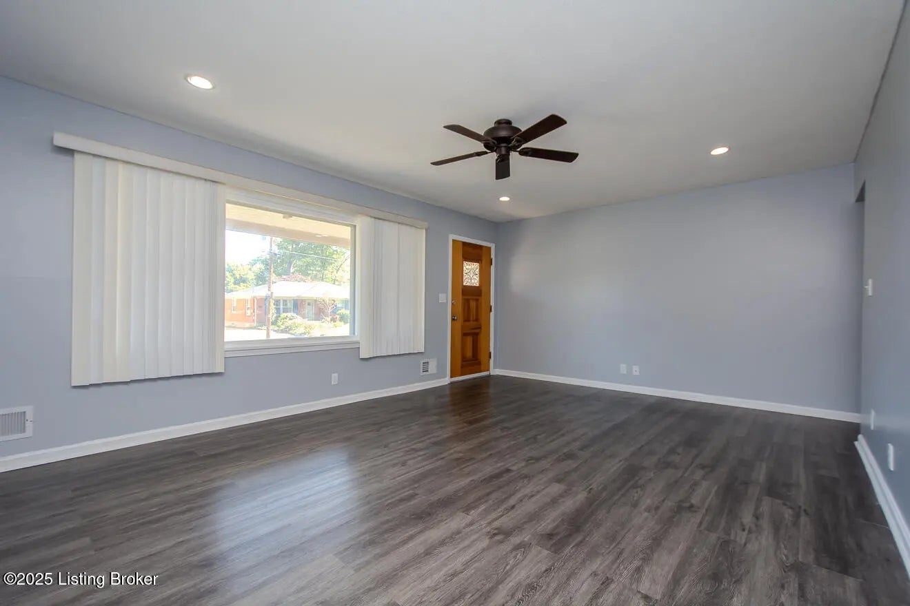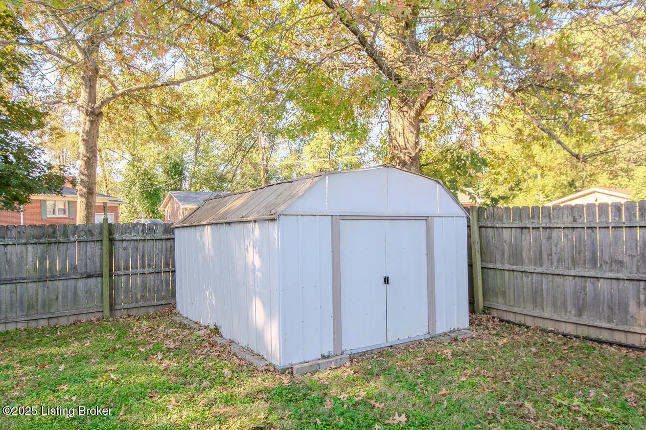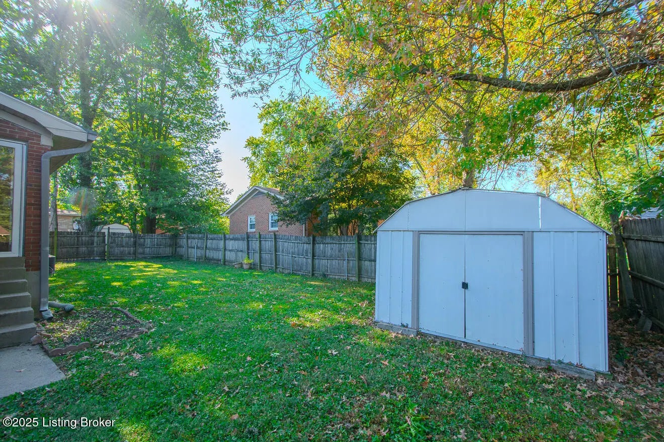 Welcome to this well-maintained brick ranch featuring an open floor plan, hardwood floors, and neutral colors. Enjoy a bright living room with recessed lighting and a spacious eat-in kitchen with breakfast, tile backsplash, and appliances included. Partly finished basement offers a family room with fireplace, office, and storage. There is also a shed on the backyard for storage. Updates include new roof (2025) and fresh paint. Corner lot with fenced backyard in peaceful Midlane Terrace near schools, shops Center, I-264 and parks. A Pleasure to show-move in ready.