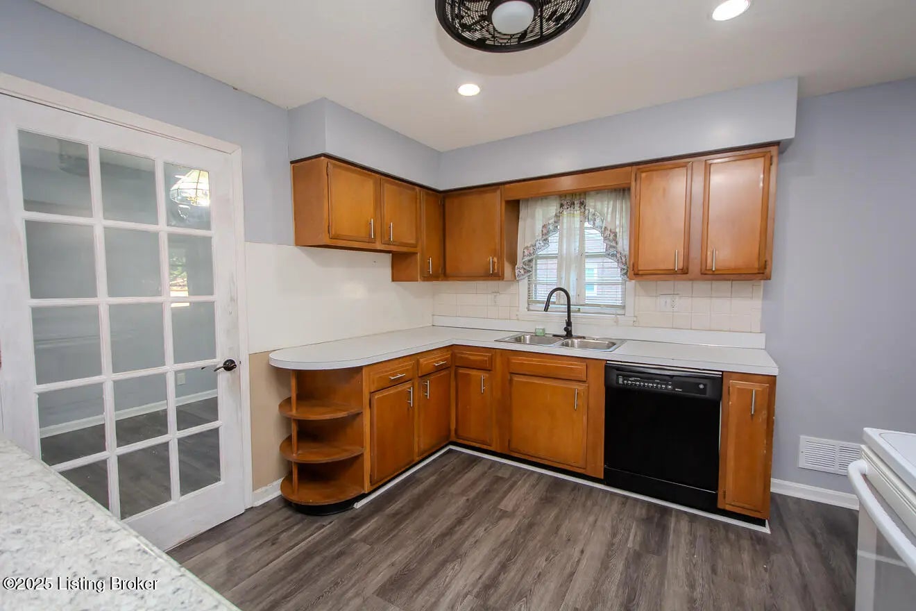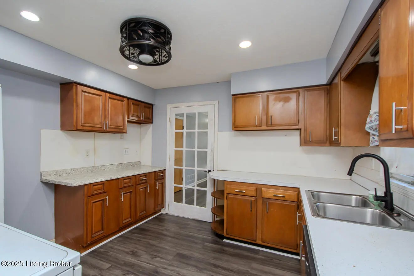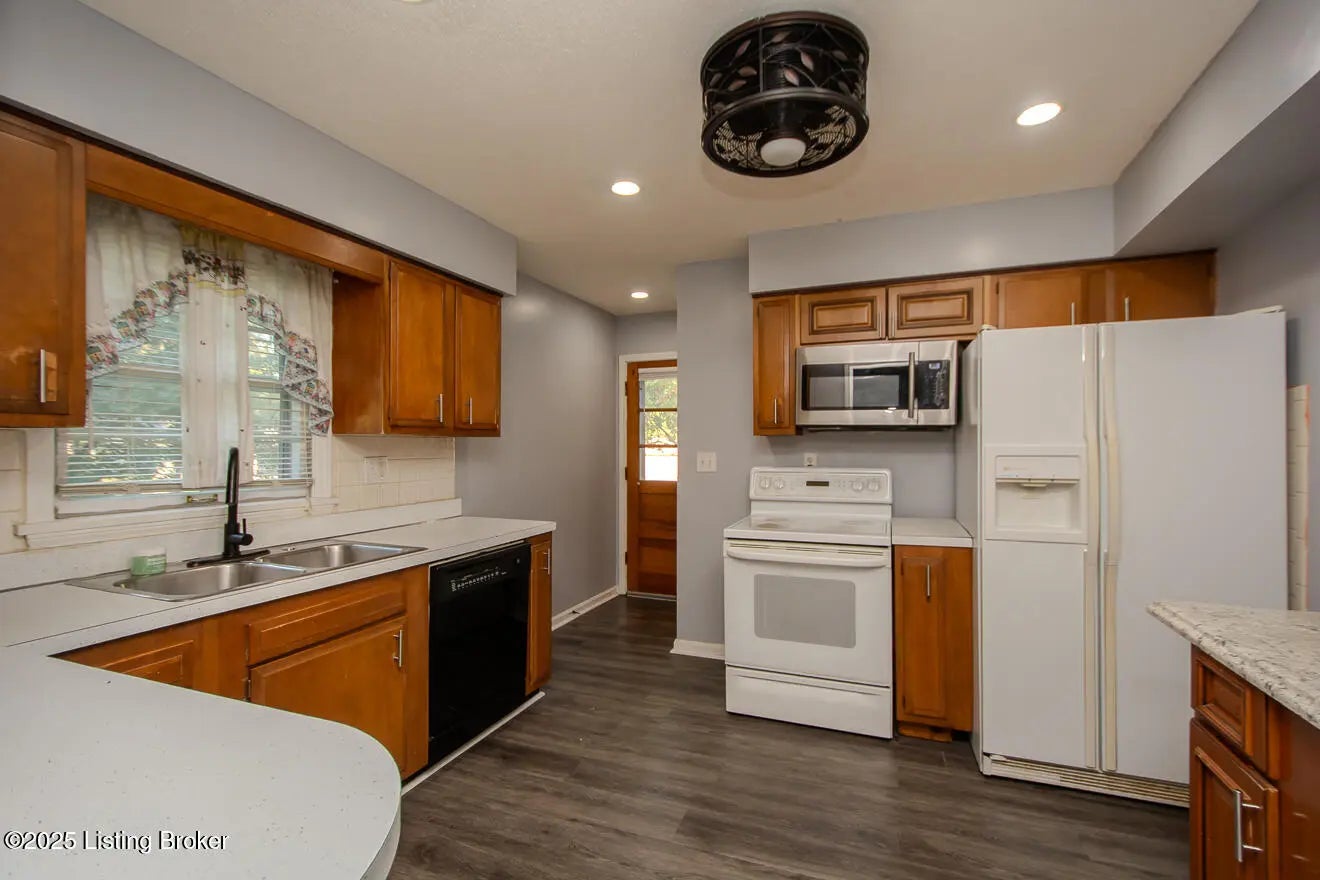 Welcome to this well-maintained brick ranch featuring an open floor plan, hardwood floors, and neutral colors. Enjoy a bright living room with recessed lighting and a spacious eat-in kitchen with breakfast, tile backsplash, and appliances included. Partly finished basement offers a family room with fireplace, office, and storage. There is also a shed on the backyard for storage. Updates include new roof (2025) and fresh paint. Corner lot with fenced backyard in peaceful Midlane Terrace near schools, shops Center, I-264 and parks. A Pleasure to show-move in ready.