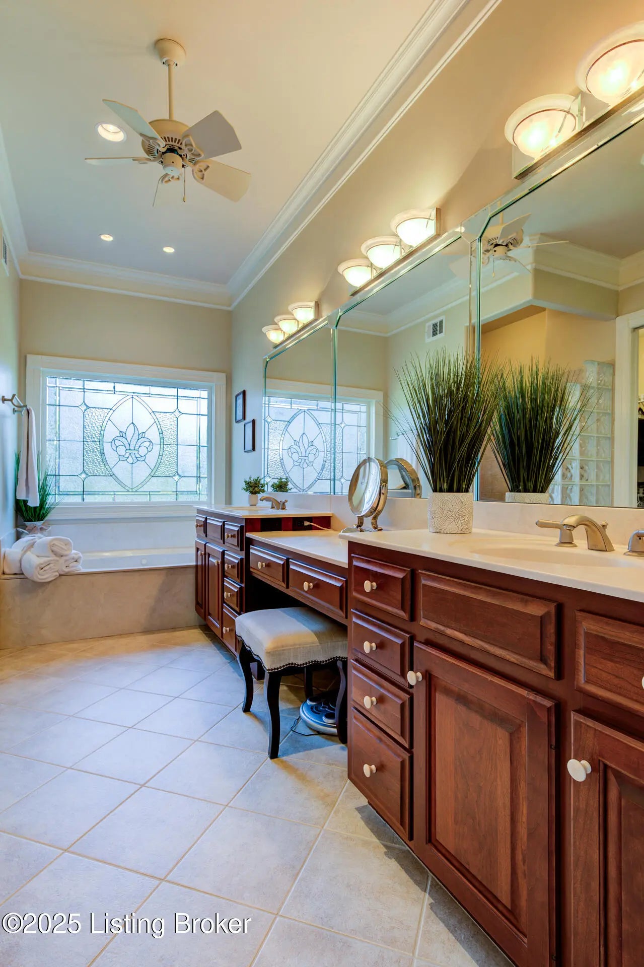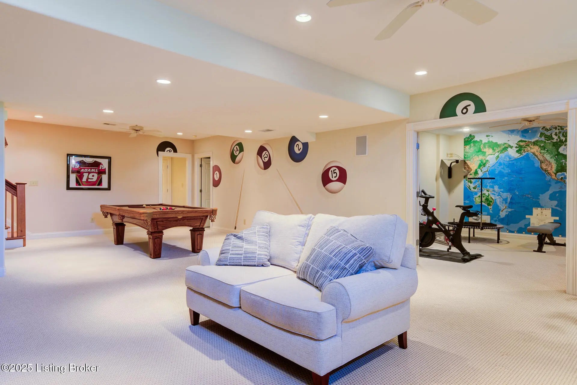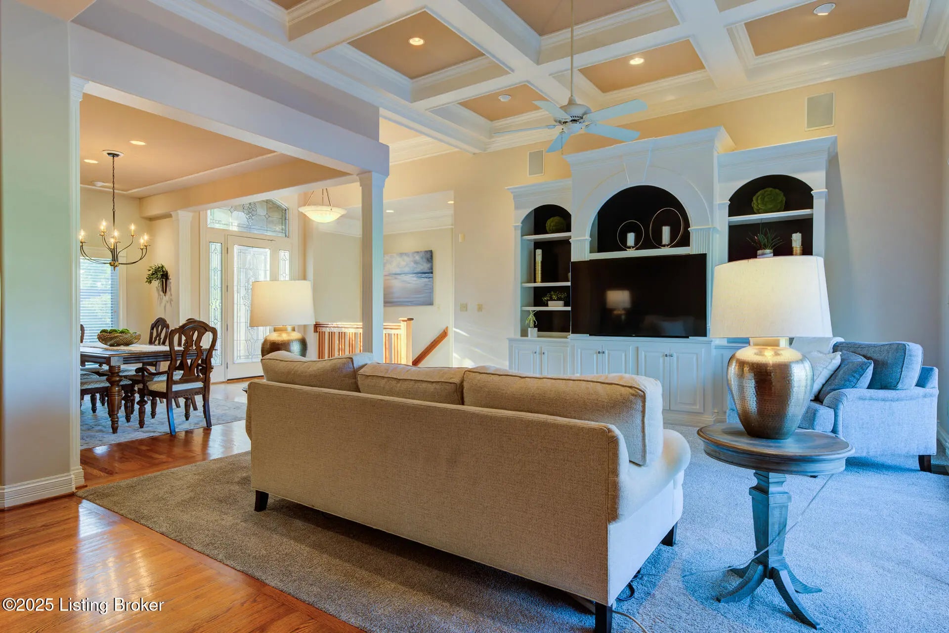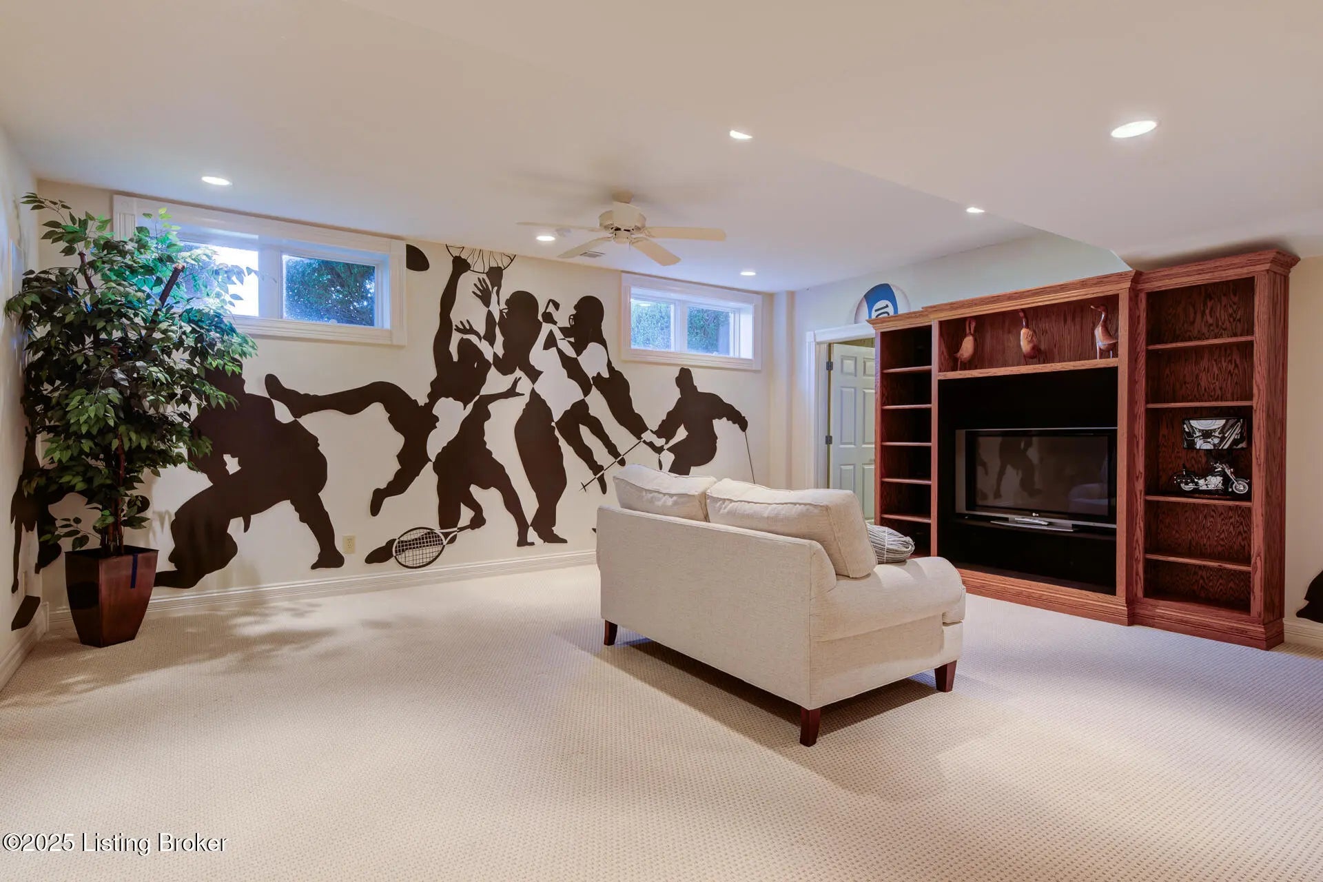 Rare Opportunity - Will Not Last! Meticulously maintained and absolutely gorgeous, this 4-bedroom (one in basement), 3.5-bath ranch-style home sits on the golf course in prestigious Lake Forest. Offering 4,471 sq. ft. of finished living space plus 949 sq. ft. of unfinished basement, this home is designed for comfort and entertaining. The open floor plan seamlessly connects the formal dining room, great room, and hearth room. The dining room features hardwood inlay, recessed lighting, and custom trim. The great room impresses with golf course views, a coffered ceiling, and built-in entertainment center, while the hearth room's stone fireplace provides a cozy retreat. The eat-in kitchen shines with granite countertops (extended for seating), travertine backsplash, new cafe designer double ovens, gas cooktop, designer lighting, and abundant cabinetry. The luxurious primary suite boasts a double tray ceiling and spa-inspired bath with dual vanities, oversized walk-in shower, jetted tub, and ornate picture window. Two additional main-floor bedrooms share a Jack-and-Jill bath (one currently an office). A half bath and spacious laundry room complete this level. Downstairs, the finished lower level offers a family room, entertainment area, workout room, 4th bedroom, and full bath, plus a huge unfinished space perfect for storage or hobbies. Step outside to the deck overlooking hole #4 and the pondthe perfect spot for morning coffee or evening relaxation. Lake Forest is one of Louisville's most sought-after communities, offering pools, clubhouse, tennis, walking trails, award-winning schools, shopping, and dining. A magnificent home on one of Lake Forest's premier lots