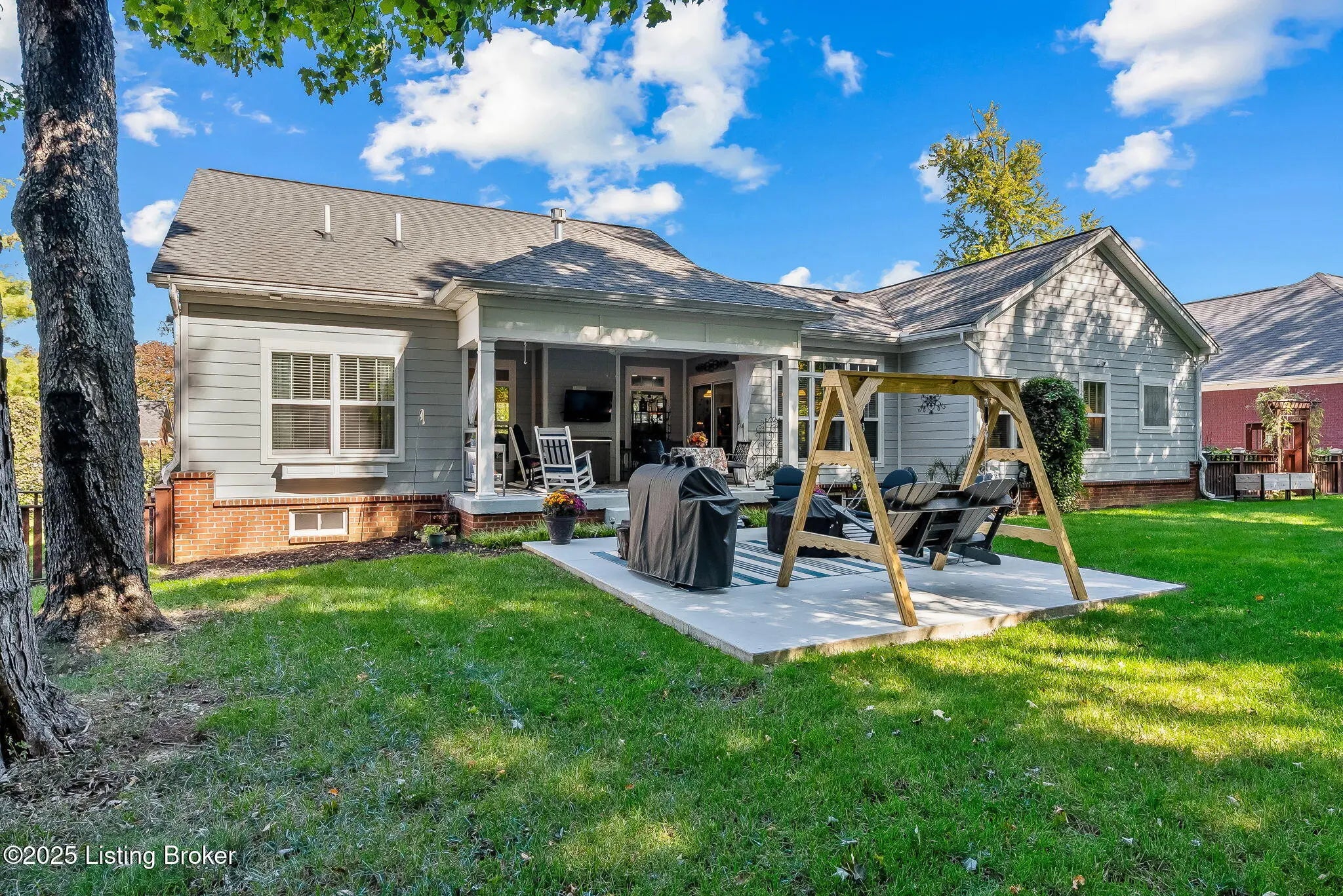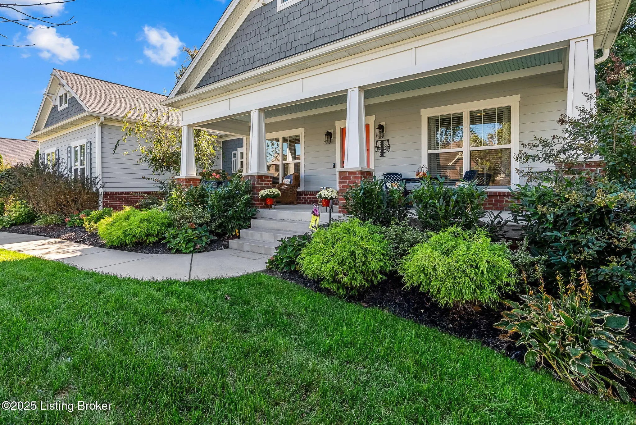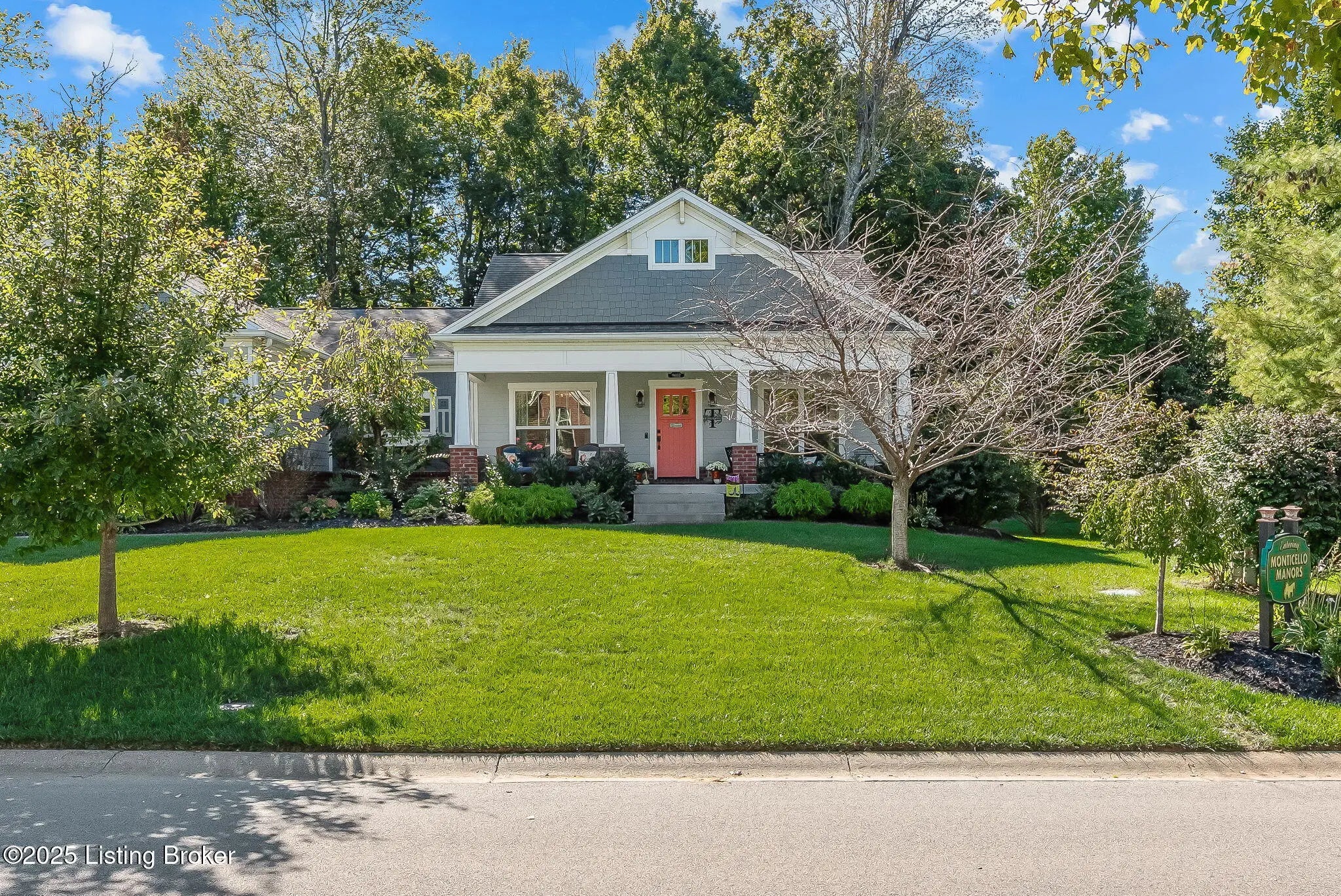 Discover 9602 Dabney Carr Drive, nestled in the desirable Monticello Manors community. This stunning custom Craftsman home seamlessly blends elegance and functionality. The property boasts exceptional curb appeal, featuring a beautifully landscaped front yard and an expansive front porch. Step inside to an inviting open layout showcasing hardwood floors, transom windows, and a vaulted and arched great room with gas fireplace. The gourmet eat-in kitchen is equipped with leathered granite countertops, double ovens, convection microwave, large island with prep sink, gas cooktop, and an abundance of soft-close cabinetry. Adjacent to the kitchen, the laundry/mudroom includes a generous pantry and leads to an oversized garage with built-in cabinets and shelving. The primary suite offers ample space and privacy, complete with granite-topped vanities, tiled shower, separate jetted tub, and walk-in closet. Two additional bedrooms and a full bath are located on the opposite side of the home for added privacy. The expansive lower level features high ceilings, full bath, and a dedicated storage area with built-ins, providing excellent potential for future customization. Outdoor amenities include a covered porch, new concrete patio, and a fully fenced backyard with custom gate. Additional highlights include gutter guards and an irrigation system enhancing the property's value and convenience, making this home ideal for relaxing, entertaining, and enjoying the outdoors. Come see for yourself what this amazing home has to offer.