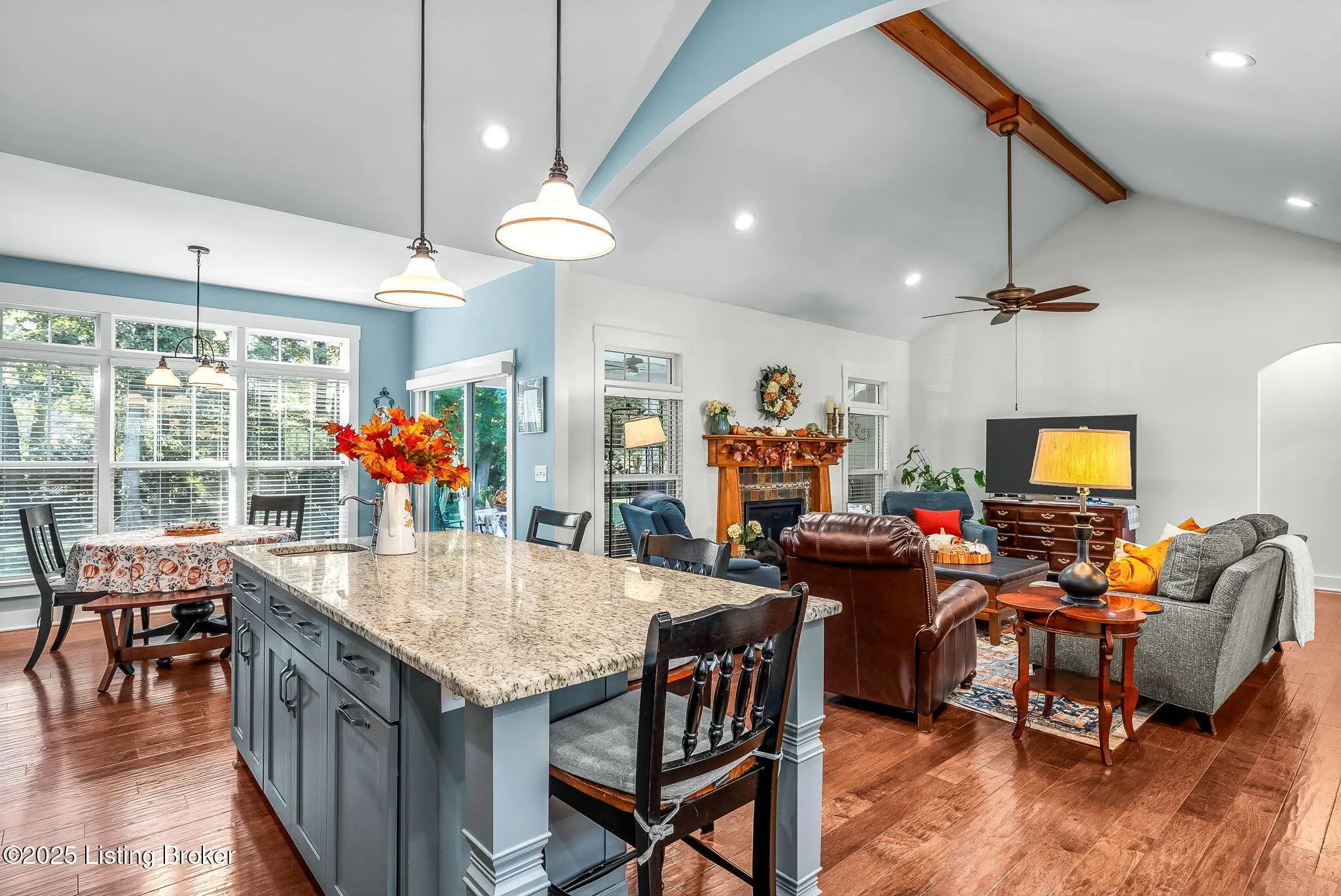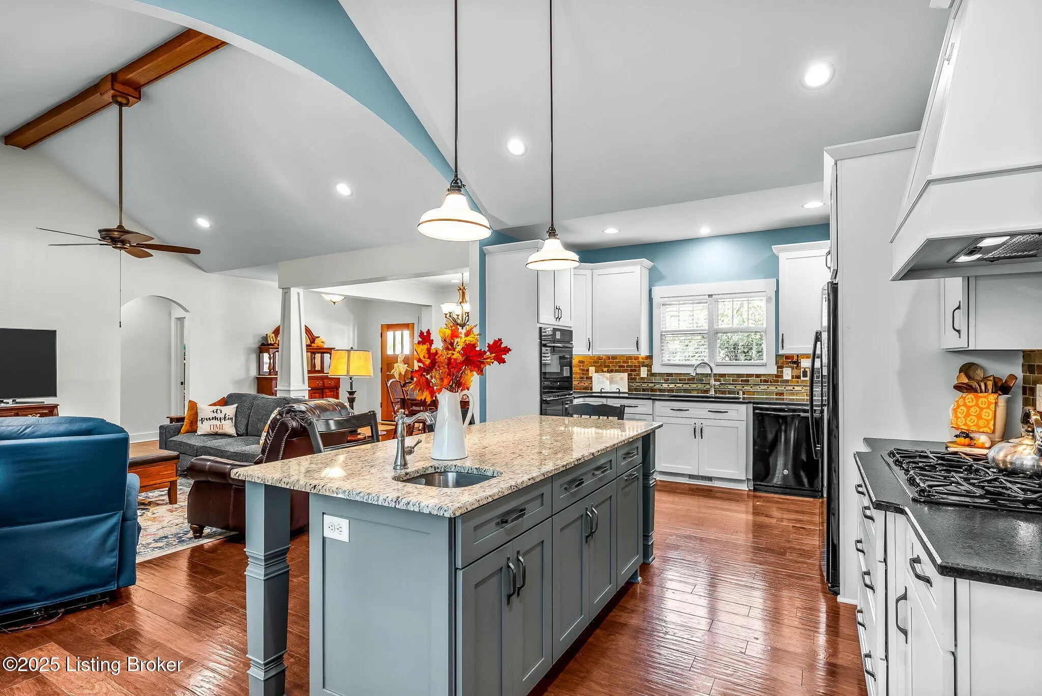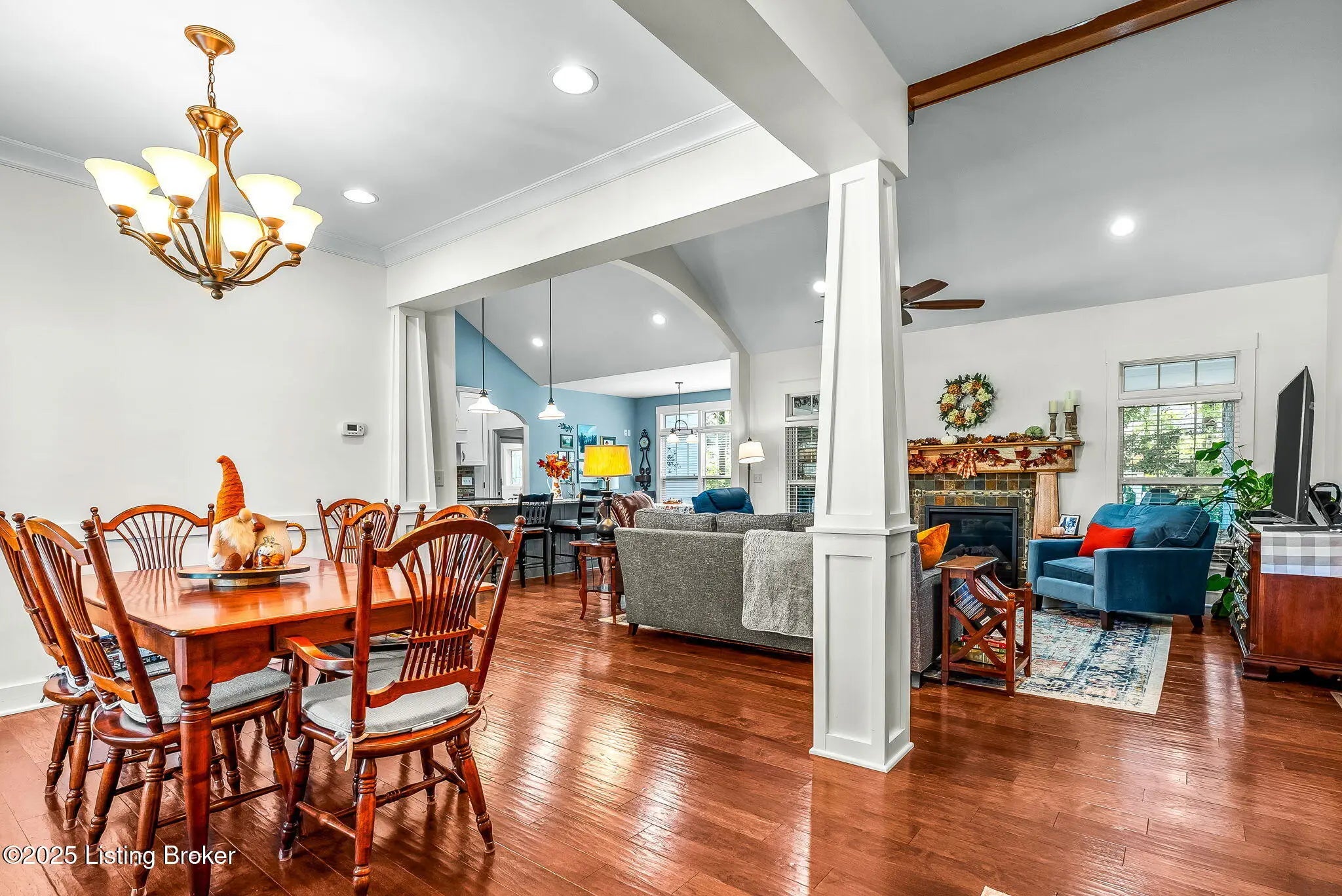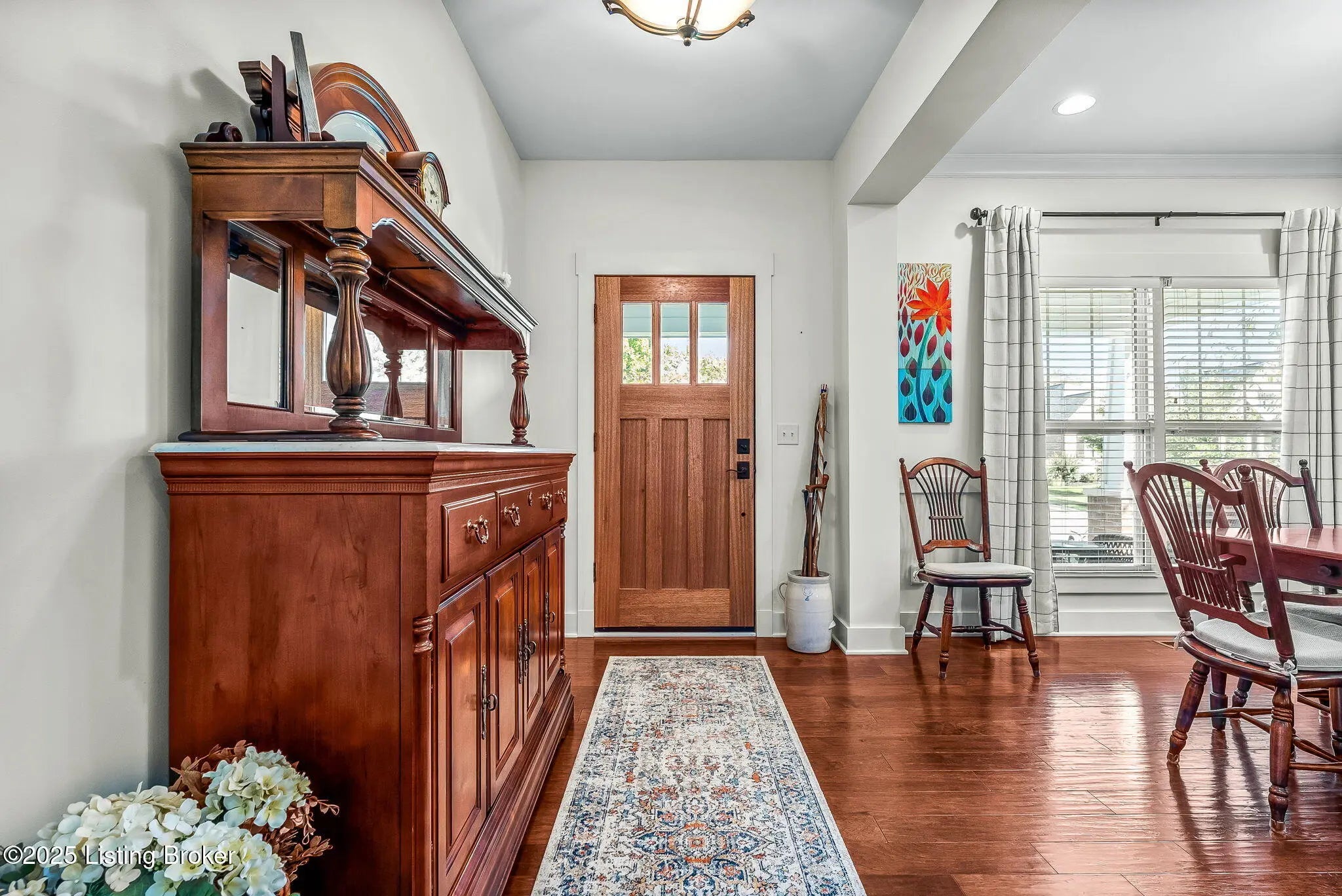 Discover 9602 Dabney Carr Drive, nestled in the desirable Monticello Manors community. This stunning custom Craftsman home seamlessly blends elegance and functionality. The property boasts exceptional curb appeal, featuring a beautifully landscaped front yard and an expansive front porch. Step inside to an inviting open layout showcasing hardwood floors, transom windows, and a vaulted and arched great room with gas fireplace. The gourmet eat-in kitchen is equipped with leathered granite countertops, double ovens, convection microwave, large island with prep sink, gas cooktop, and an abundance of soft-close cabinetry. Adjacent to the kitchen, the laundry/mudroom includes a generous pantry and leads to an oversized garage with built-in cabinets and shelving. The primary suite offers ample space and privacy, complete with granite-topped vanities, tiled shower, separate jetted tub, and walk-in closet. Two additional bedrooms and a full bath are located on the opposite side of the home for added privacy. The expansive lower level features high ceilings, full bath, and a dedicated storage area with built-ins, providing excellent potential for future customization. Outdoor amenities include a covered porch, new concrete patio, and a fully fenced backyard with custom gate. Additional highlights include gutter guards and an irrigation system enhancing the property's value and convenience, making this home ideal for relaxing, entertaining, and enjoying the outdoors. Come see for yourself what this amazing home has to offer.