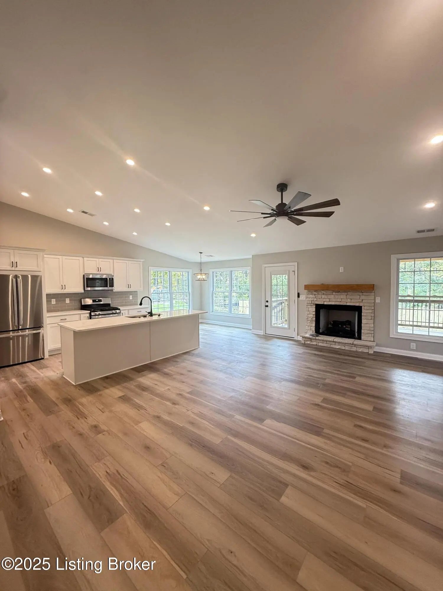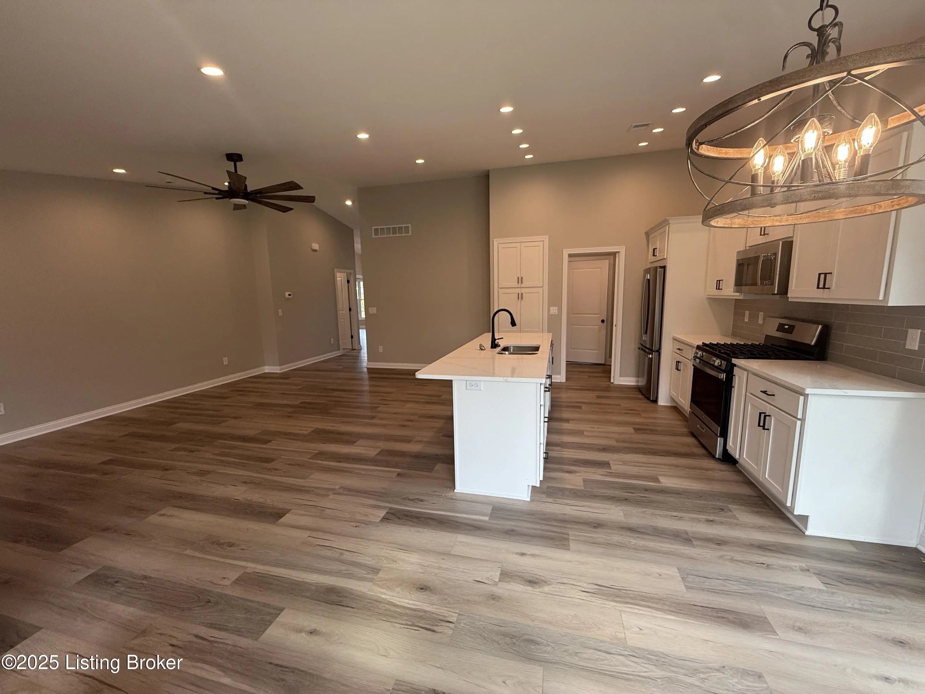 Welcome to Regal Valley, a brand-new 10-lot subdivision adjacent to the well-established Apple Valley Subdivision. This absolutely stunning new construction ranch home built by RLM Building and Remodel offers 3 bedrooms, 2 full baths, and over 1,600 square feet of beautifully designed living space. This home has all the amenities you expect from a custom builder including GE stainless kitchen appliances, stunning quartz countertops and luxury vinyl plank flooring. No builder-grade choices in this home- you get high end finishes here! Step into the open great room with a fireplace, flowing seamlessly into the modern kitchen with large island, perfect for both everyday living and entertaining. The spacious primary suite is a true retreat, complete with an en suite bath and a large walk-in closet. Two additional oversized bedrooms and a first-floor laundry room provide convenience and flexibility. This home sits on a large corner lot with outdoor living highlighted by a covered back porch featuring Trex decking for no maintenance! This is an ideal spot for relaxing or hosting gatherings. With its thoughtful layout, stylish finishes, and location in Louisville's sought-after Regal Valley community, this home checks all the boxes.