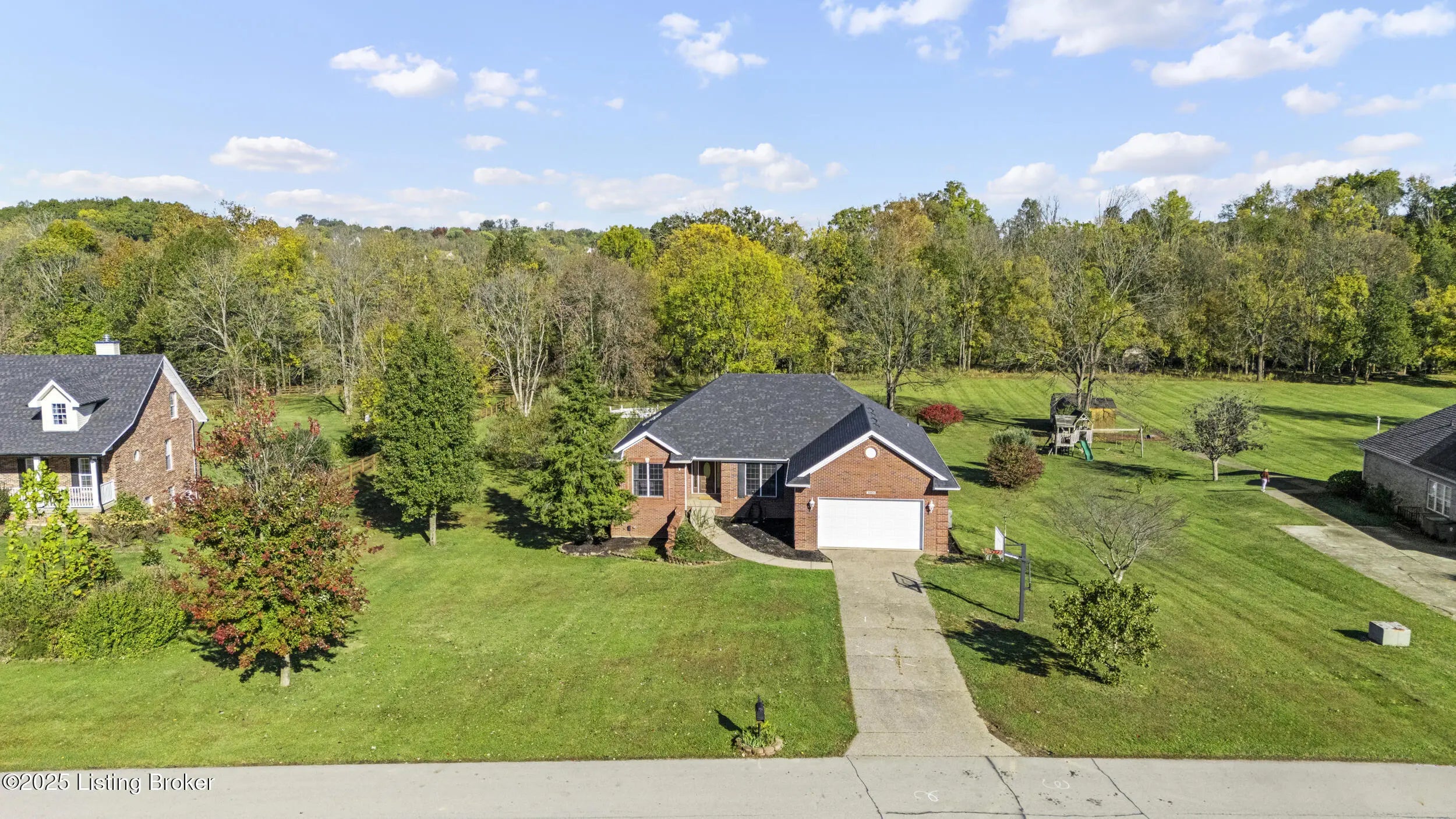 Do you want the beautiful country life in a highly desired neighborhood of Oldham County? Don't miss this 4 bed 3 full bath beautiful brick ranch home quietly tucked away on 1.95 acres of land equipped with a private pond and a creek that runs along the back of the property! As soon as you enter the home you are greeted with the elegance of timeless crown molding in the foyer and newly refinished hardwood floors that leads directly into the tranquil and spacious living room with a beautiful cathedral ceiling and a gas fireplace for those cold winter nights. The open floor plan offers first floor laundry, a dining room/office with newly installed carpet, an open eat-in kitchen with stainless steel appliances and granite countertops, and 3 bedrooms on the main floor. You will find an additional bedroom in the basement as well as an added bonus room for an office space or to be utilized to your liking! The primary bedroom overlooks the large and spacious backyard and offers a private en-suite bathroom with a large jacuzzi tub, walk-in shower, double vanity, and walk-in closet. Don't miss the fully finished walkout basement that has ample room for entertaining with a second kitchenette and plenty of space for large gatherings. You can enjoy the beautiful fall nights on the fully screened deck that presents a peaceful view of the property. With a brand new furnace installed, you are guaranteed a warm cozy home this winter! Schedule your showing today!