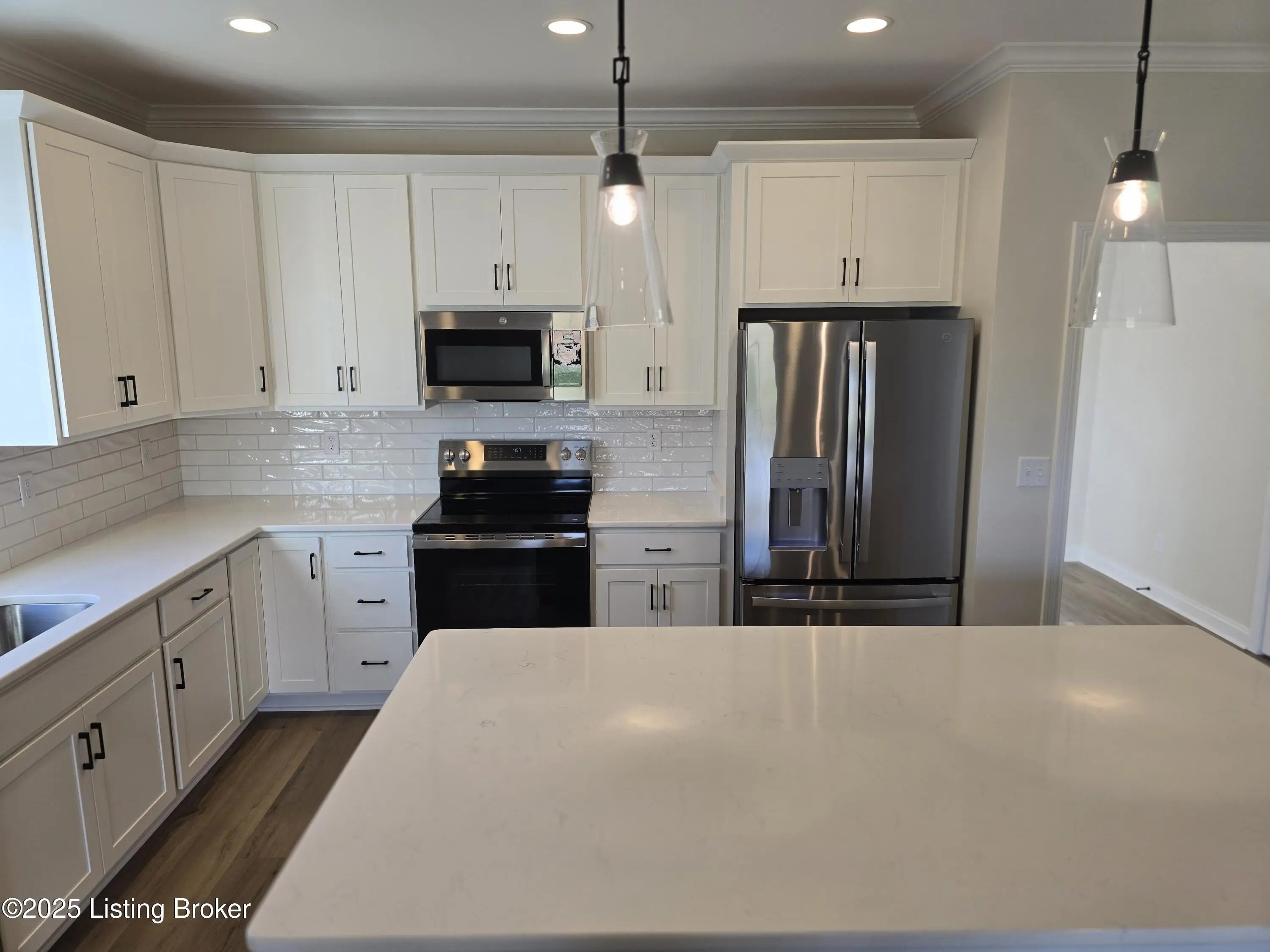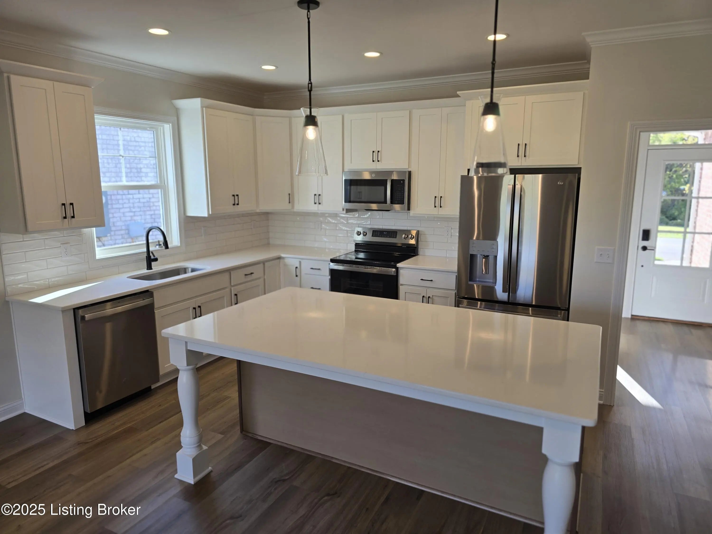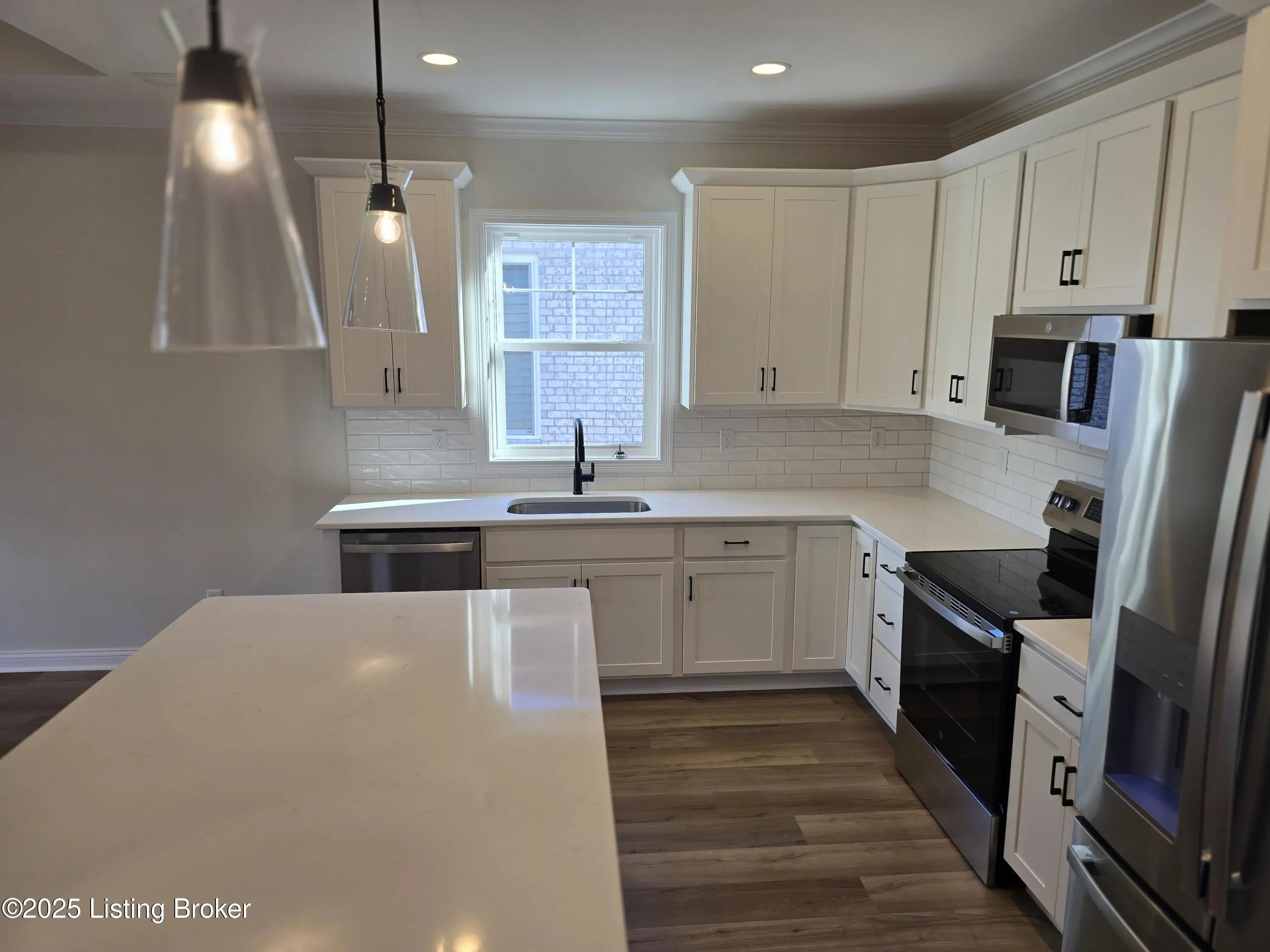 BRAND NEW CONSTRUCTION in Prime Jeffersontown Location! Welcome to this stunning 3-bedroom, 2-bath new construction home offering quality craftsmanship, energy efficiency & stylish modern finishes throughout. With approximately 1,550 sq. ft., this home features a mix of brick and vinyl exterior, a 2-car garage & a well-designed open floor plan built for today's lifestyle. Step inside to find 9-foot ceilings, LVP flooring throughout & ceramic tile in the bathrooms & utility room. The custom trim & crown molding, upgraded lighting package & super insulation-including insulated garage walls & ceiling-showcase the attention to detail in every corner. The gourmet kitchen boasts a large quartz center island, 42-inch upper cabinets with soft-close doors and drawers, and stainless steel appliances including a range, refrigerator, dishwasher, and above-range microwave. Additional touches like built-in laundry cabinets and a covered back porch with ceiling fan enhance comfort and convenience. The spacious primary suite offers a hip-vault ceiling, double-bowl vanity, and a large walk-in closet. Located in a prime Jeffersontown neighborhood, this property is one of 10 new homes available each featuring modern layouts and quality finishes. Builder is a licensed Real Estate Broker in the States of Kentucky and Florida. Listing Agent is related to the Seller/Builder.