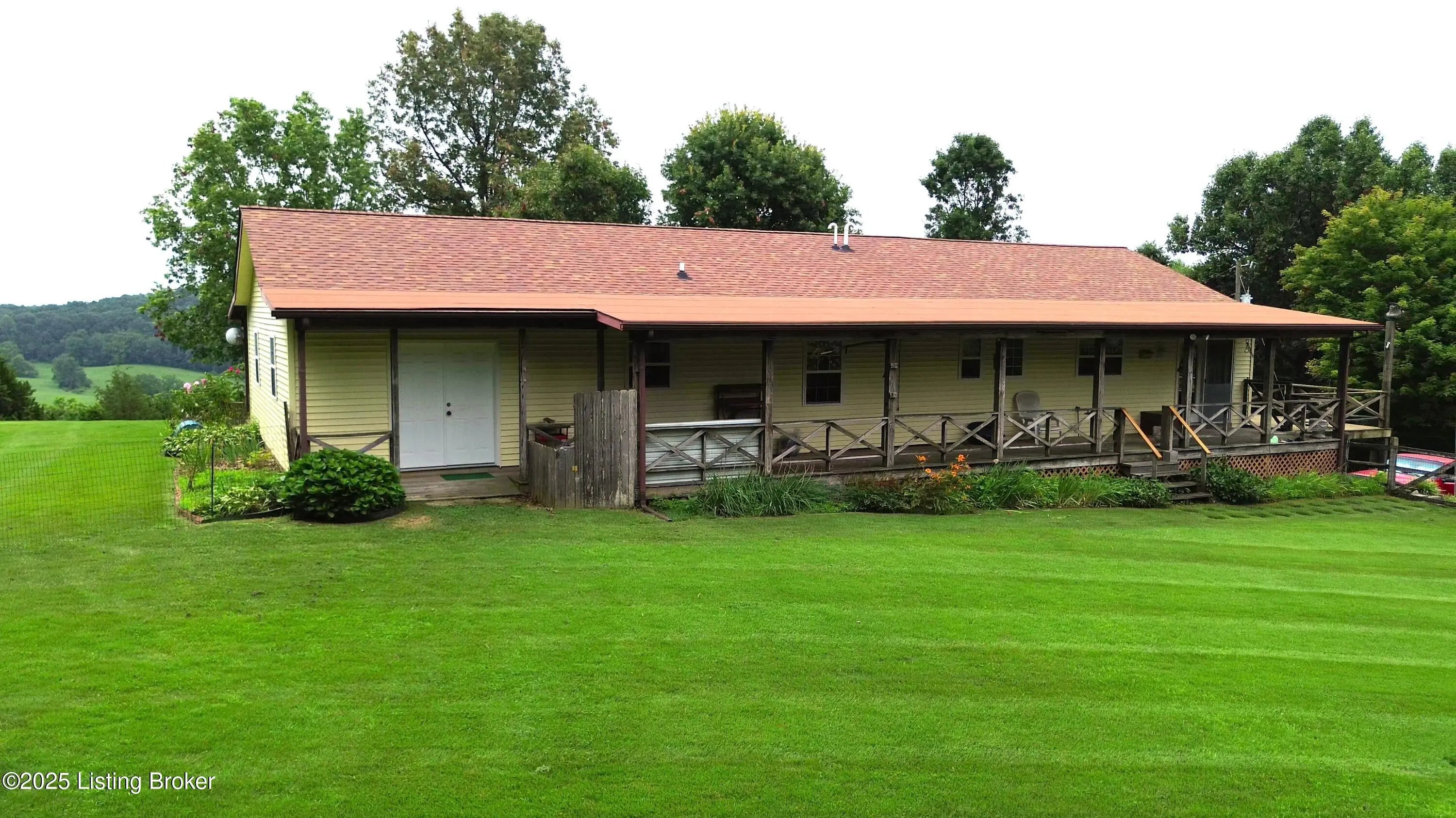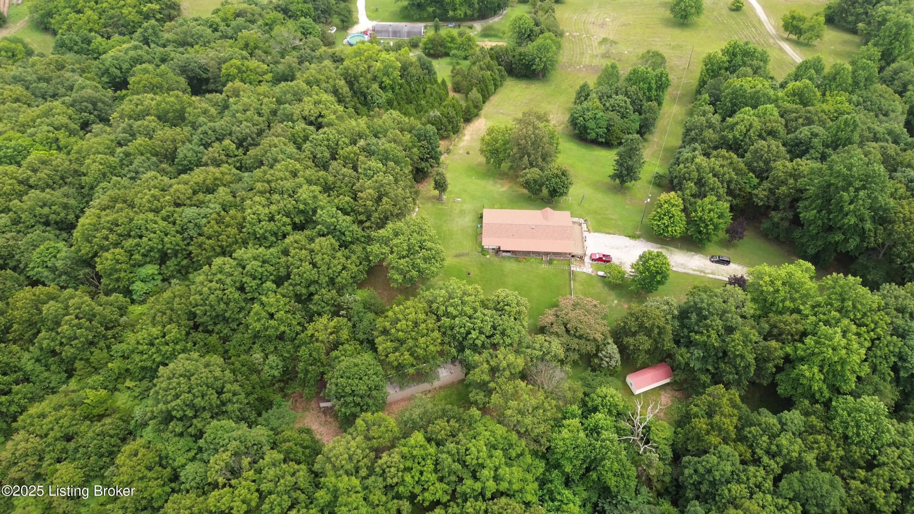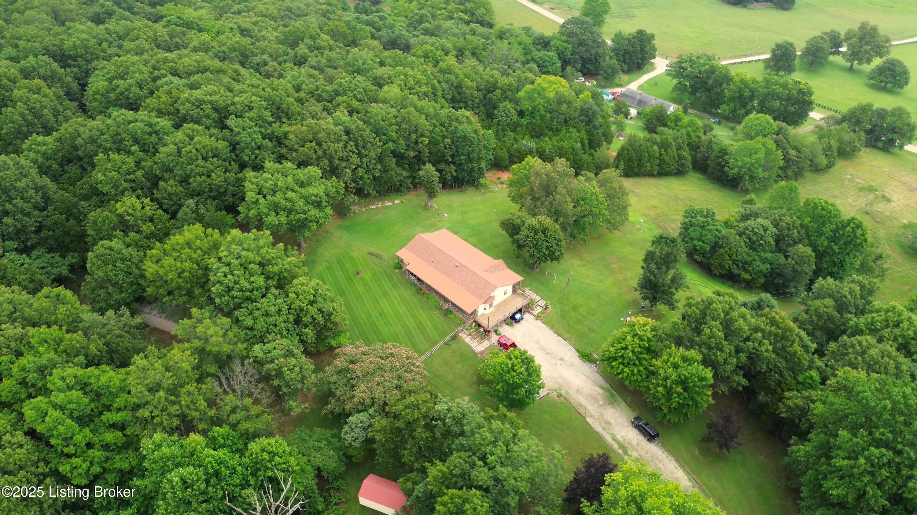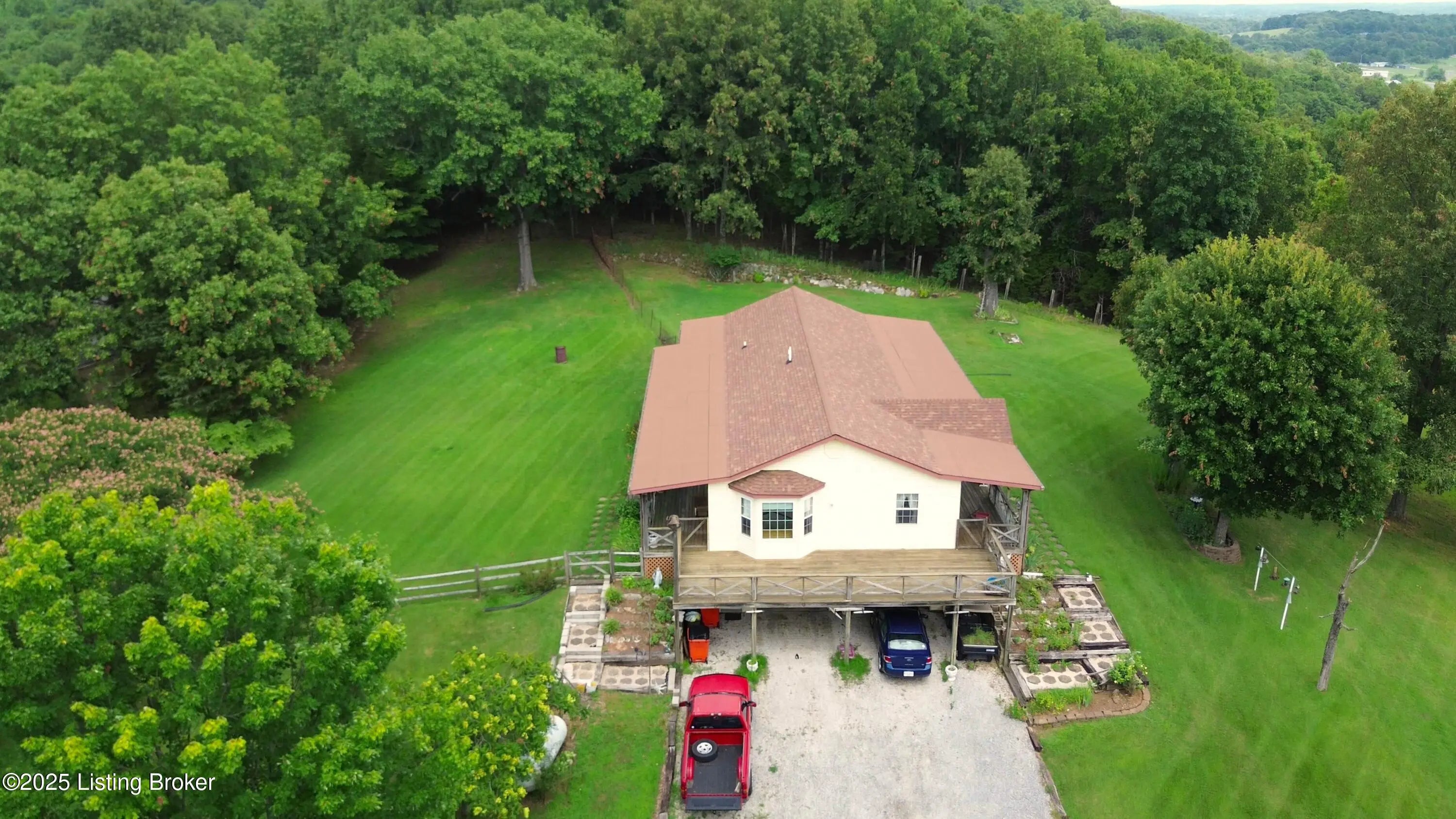 Escape to your private sanctuary at 1020 Yates Chapel Rd in Cecilia, KY. This custom-built 3-bedroom, 2.5-bath, 2,610 sq ft home offers the perfect blend of comfort, privacy, and craftsmanship. Enjoy peaceful country living from the covered front and rear porches that wrap three sides of the home and capture scenic rural views. An oversized two-car garage with automatic overhead doors, accessible from the basement, provides excellent storage and convenience. Situated on 45.3 acres, the property features abundant wildlife, panoramic views, and marketable timber—ideal for outdoor enthusiasts and those seeking space and seclusion. Inside, the open-concept living, dining, and kitchen areas showcase vaulted ceilings with exposed beams, creating a warm and inviting atmosphere. A gas fireplace and gas stove offer comfort and reliability during power outages. The primary suite serves as a true retreat with a double vanity, walk-in shower, and jetted tub. Double bay doors lead directly to the covered porches, perfect for relaxing or entertaining. Additional highlights include a finished basement with a large entertaining area, half bath, and utility sink; an attached heated and cooled concrete-floor workshop with hot and cold water; an 840 sq ft equipment shed and multiple outbuildings; insulation in all interior walls; and a non-smoking, one-owner history with detailed maintenance records. Despite its private setting, this exceptional property is just 13 miles from Elizabethtown, offering easy access to shopping, dining, and employment opportunities.
