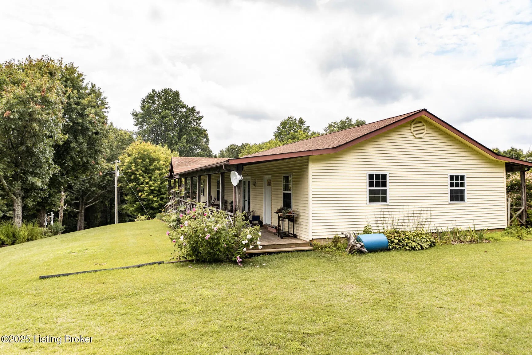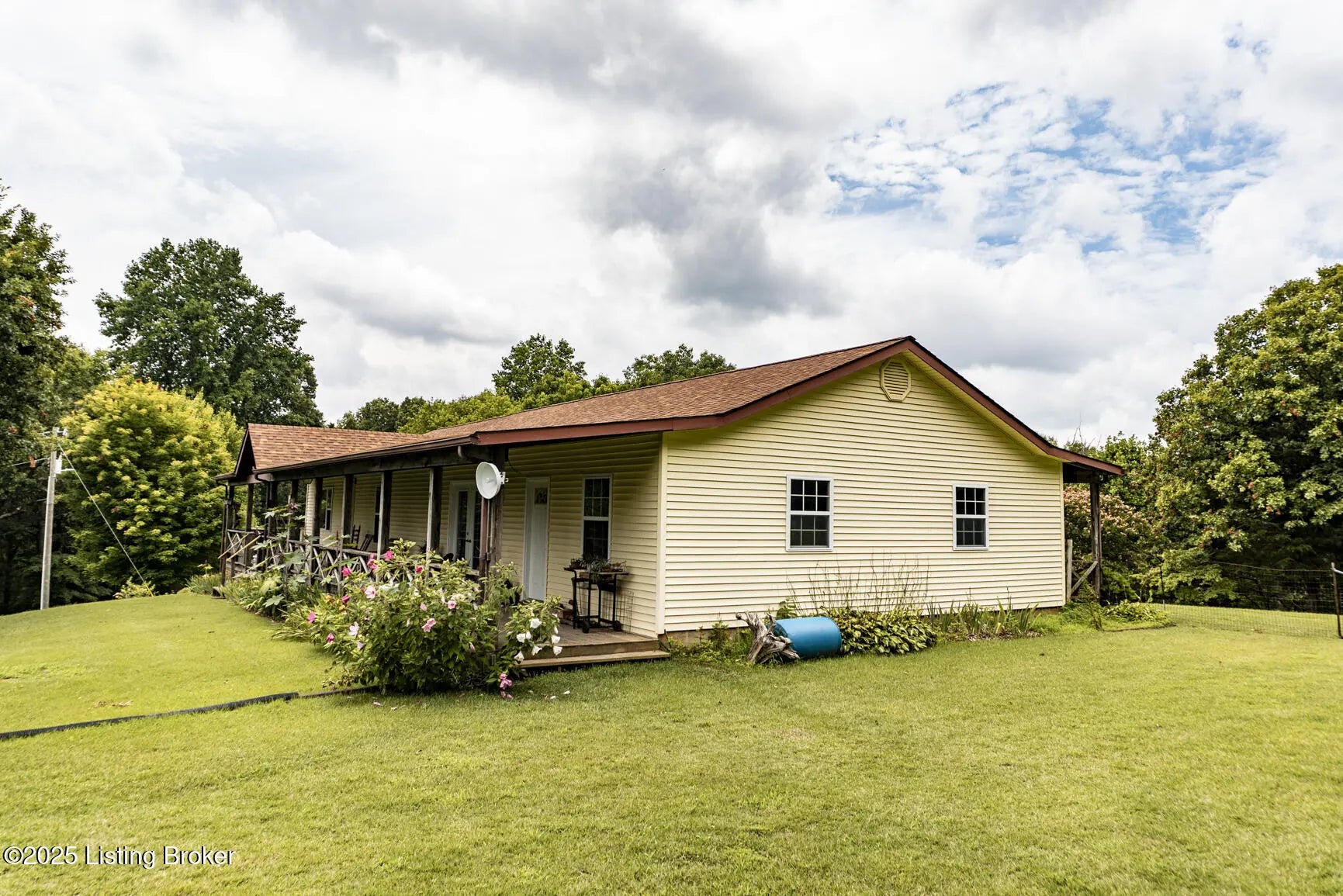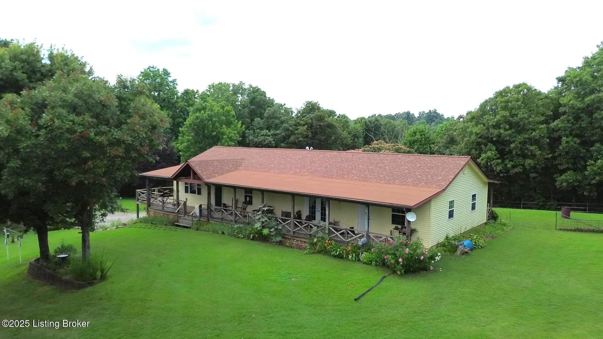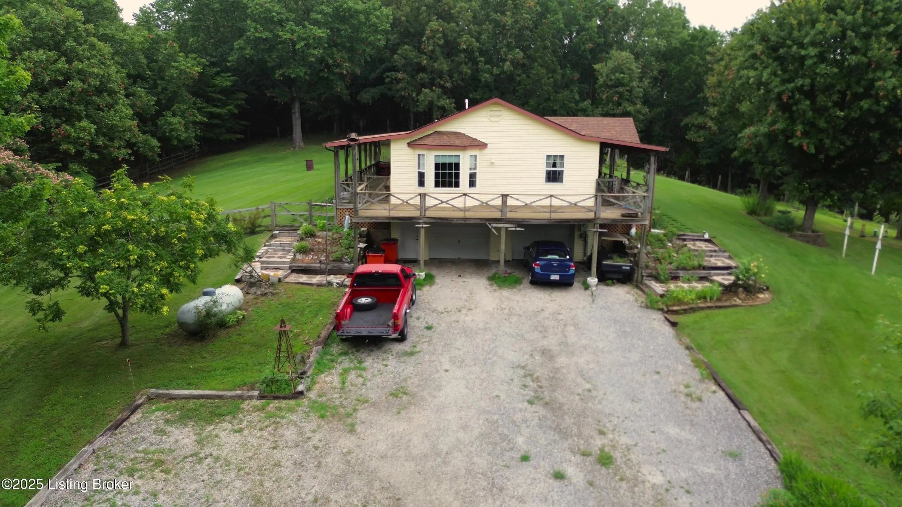 Escape to your private sanctuary at 1020 Yates Chapel Rd in Cecilia, KY. This custom-built 3-bedroom, 2.5-bath, 2,610 sq ft home offers the perfect blend of comfort, privacy, and craftsmanship. Enjoy peaceful country living from the covered front and rear porches that wrap three sides of the home and capture scenic rural views. An oversized two-car garage with automatic overhead doors, accessible from the basement, provides excellent storage and convenience. Situated on 45.3 acres, the property features abundant wildlife, panoramic views, and marketable timber—ideal for outdoor enthusiasts and those seeking space and seclusion. Inside, the open-concept living, dining, and kitchen areas showcase vaulted ceilings with exposed beams, creating a warm and inviting atmosphere. A gas fireplace and gas stove offer comfort and reliability during power outages. The primary suite serves as a true retreat with a double vanity, walk-in shower, and jetted tub. Double bay doors lead directly to the covered porches, perfect for relaxing or entertaining. Additional highlights include a finished basement with a large entertaining area, half bath, and utility sink; an attached heated and cooled concrete-floor workshop with hot and cold water; an 840 sq ft equipment shed and multiple outbuildings; insulation in all interior walls; and a non-smoking, one-owner history with detailed maintenance records. Despite its private setting, this exceptional property is just 13 miles from Elizabethtown, offering easy access to shopping, dining, and employment opportunities.