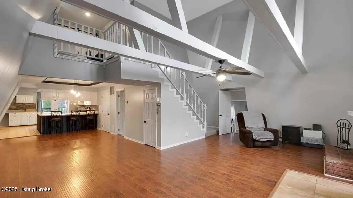 Welcome Home! This A Frame beauty is unique with tall beamed ceilings. You enter a large living room with vaulted/ beamed ceilings open to the updated kitchen and dining area. There are 2 bedrooms and a full bath on the main level. The 2nd floor has a bedroom and full bath. Outside you have a nearly 3/4 lot, detached garage, large in ground pool and deck with plenty of room to entertain.