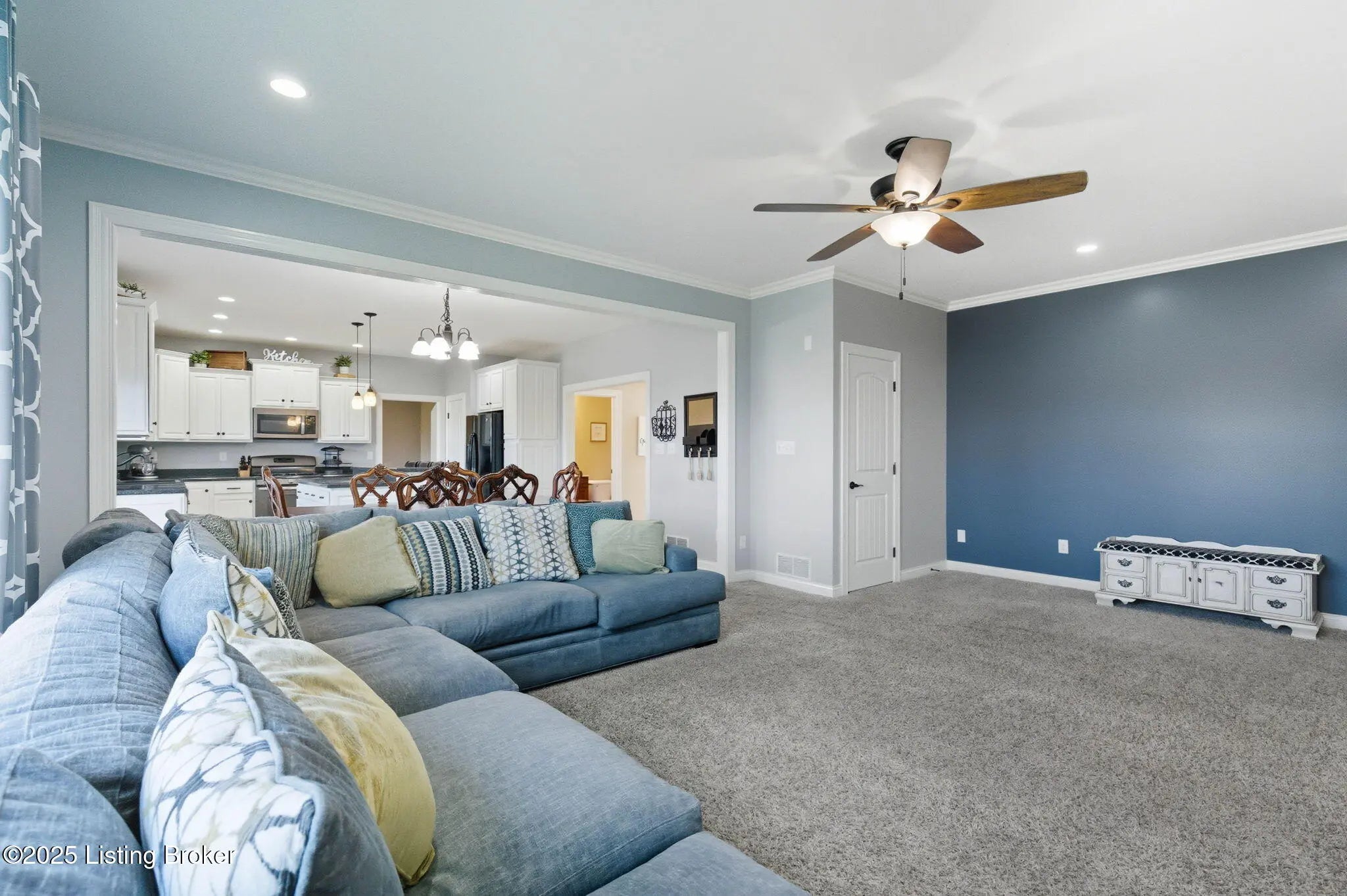Welcome to this beautifully maintained 5-bedroom, 3.5-bath home in the highly sought-after Reserves of Deerfields, perfectly situated on a quiet cul-de-sac in the heart of Buckner. Thoughtfully designed, custom-built, and tastefully updated, this home combines comfort, functionality, and style. The main level welcomes you with a spacious foyer that opens to a bright living room featuring a decorative statement wall and ceiling fan. The elegant dining room with wainscoting flows into the eat-in kitchen, complete with abundant cabinetry, ample countertops, walk-in pantry, gas cooktop, full complement of appliances, breakfast bar, and direct access to the expansive covered deck - perfect for outdoor dining and relaxation. A convenient mudroom connects the kitchen to the garage, while the great room with a cozy fireplace serves as the heart of the home for gatherings and entertaining. A stylish powder room completes this level. Upstairs, the primary suite offers a peaceful retreat with a tray ceiling, ceiling fan, and plush carpeting. The en-suite bath features dual vanities, a soaking tub, a generous walk-in closet, walk-in shower, and private toilet room with linen closet. Down the hall, you will find a conveniently located laundry room with plenty of space for organization. Three additional bedrooms - each with a walk-in closet - plus a full hall bath and a versatile bonus room ideal for an office or study, complete the upper level. The finished basement adds even more living space, including a spacious family room with an option for setting up surround sound and movie projector for additional entertainment. A fifth bedroom, a full bath provide extra space for the family or guests. This basement also includes ample storage. Enjoy outdoor living on the covered deck with ceiling fan, overlooking the fenced backyard - an ideal spot for entertaining or unwinding at the end of the day. Located just minutes from top-rated Oldham County Schools, Wendell Moore Park, Oldham County Country Club, the YMCA, and with easy access to I-71, this home truly offers the best of Buckner living!