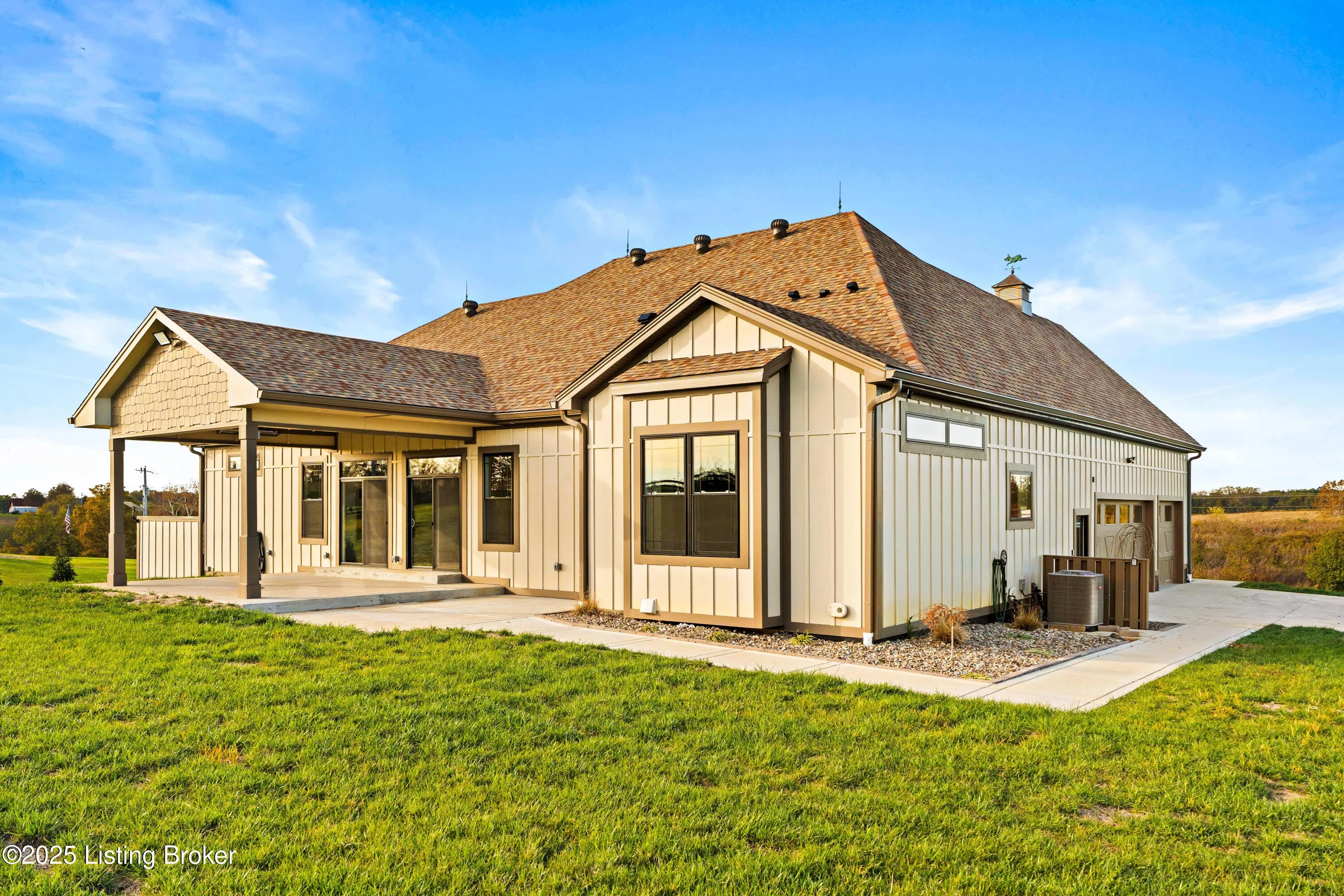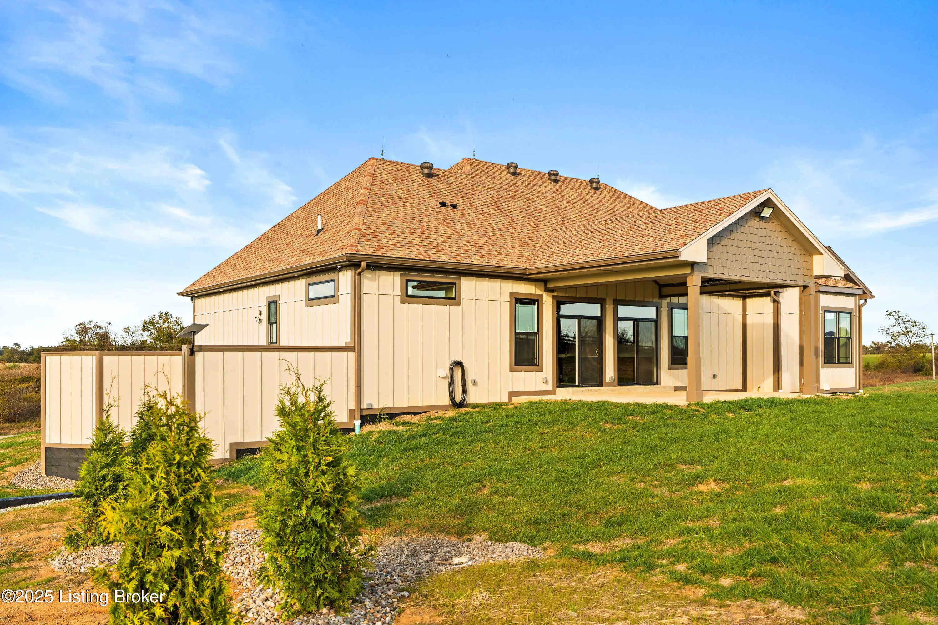 Luxurious 1.5-Story Estate on Over 5 Acres in Bagdad, Kentucky Where Modern Comfort Meets Timeless Country Elegance Experience the best of modern country living in this exquisite new-construction estate, gracefully set on over five acres of peaceful Kentucky countryside. Thoughtfully designed and masterfully crafted, this home embodies timeless elegance, upscale finishes, and effortless comfort throughout. Offering more than 6,250 square feet of finished living space, this 1.5-story residence features 5 spacious bedrooms, 4.5 baths, and a fully finished walkout basement designed for elevated entertaining and relaxed everyday living. Main Level Highlights The main level showcases an airy open-concept design highlighted by engineered European white oak flooring, custom cabinetry, designer lighting and quartz surfaces throughout. The gourmet kitchen is a chef's dream featuring over 35 feet of quartz countertops, premium GE Monogram stainless-steel appliances, an oversized island, and a walk-in pantry. A wet bar and beverage center make entertaining effortless, while the great room impresses with a 60" gas fireplace and a 75" Samsung Picture Frame TV. The primary suite provides a serene retreat with a spa-inspired bath, dual vanities, soaking tub, and a walk-in shower, complemented by a generous custom closet. A first-floor laundry with built-in cabinetry and quartz counters adds ease to everyday living. Upper & Lower Levels Upstairs, a beautifully appointed wet bar with a beverage center and built-in microwave creates a perfect spot for movie nights or entertaining. The walkout lower level expands the living experience with a complete second kitchen, bedroom and bath, and flex spaces a home theater, gym, or guest suite. A large safe room, dedicated utility room, and 98" Samsung TV with surround-sound theater system add both practicality and luxury. Outdoor & Structural Features Designed for both beauty and durability, the exterior showcases James Hardie Board & Batten siding, custom roof accents, and a Lifetime Class 3 architectural shingle roof system. Enjoy seamless indoor-outdoor living with a covered main-level patio equipped with gas service, ceiling fan, and 220V radiant heaters, plus a lower-level patio pre-wired and plumbed for a future outdoor kitchen. The property is completed with Kentucky Bluegrass sod, 4-rail fencing, and a concrete and asphalt drive leading to an oversized 3-car garage with 8' vertical-lift door and features a hot/cold hose bib for washing cars and pets. Modern Comforts & Smart Home Innovations include a hybrid HVAC system (heat pump with propane backup; 4 zones), 400-amp electrical service & underground utilities, Tankless gas water heater with recirculation, Whole-house water filtration system, Spray foam & fiberglass insulation package, Prewired full smart-home capability, Four exterior security cameras, and Starlink high-speed internet. Perfectly situated just minutes from Shelbyville and Frankfort, and within the Shelby County School District, this exceptional estate delivers the ultimate blend of rural tranquility, modern convenience, and refined living. This is more than a home it's a lifestyle. Every detail has been curated for those who appreciate craftsmanship, comfort, and cutting-edge technology in a serene country setting.