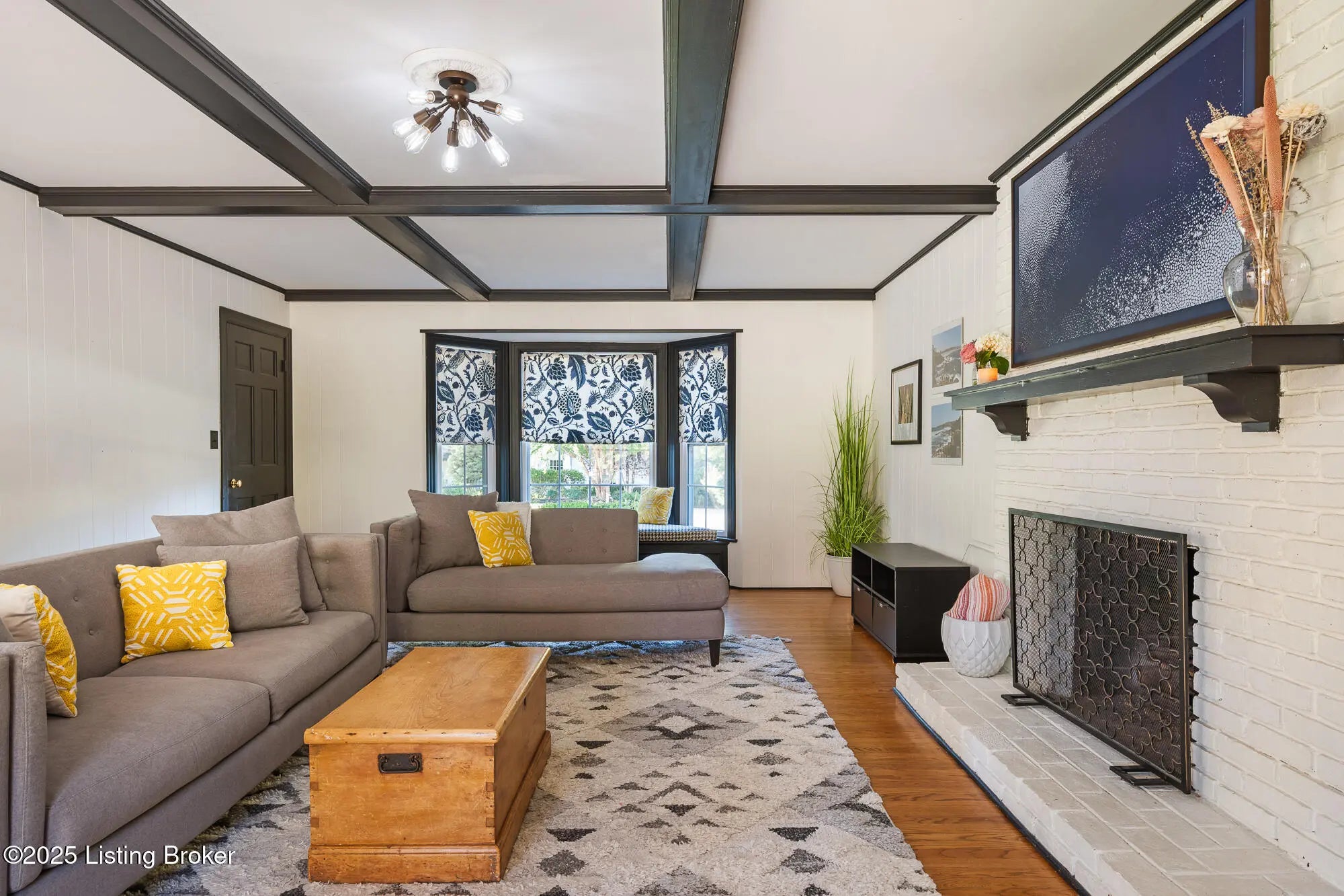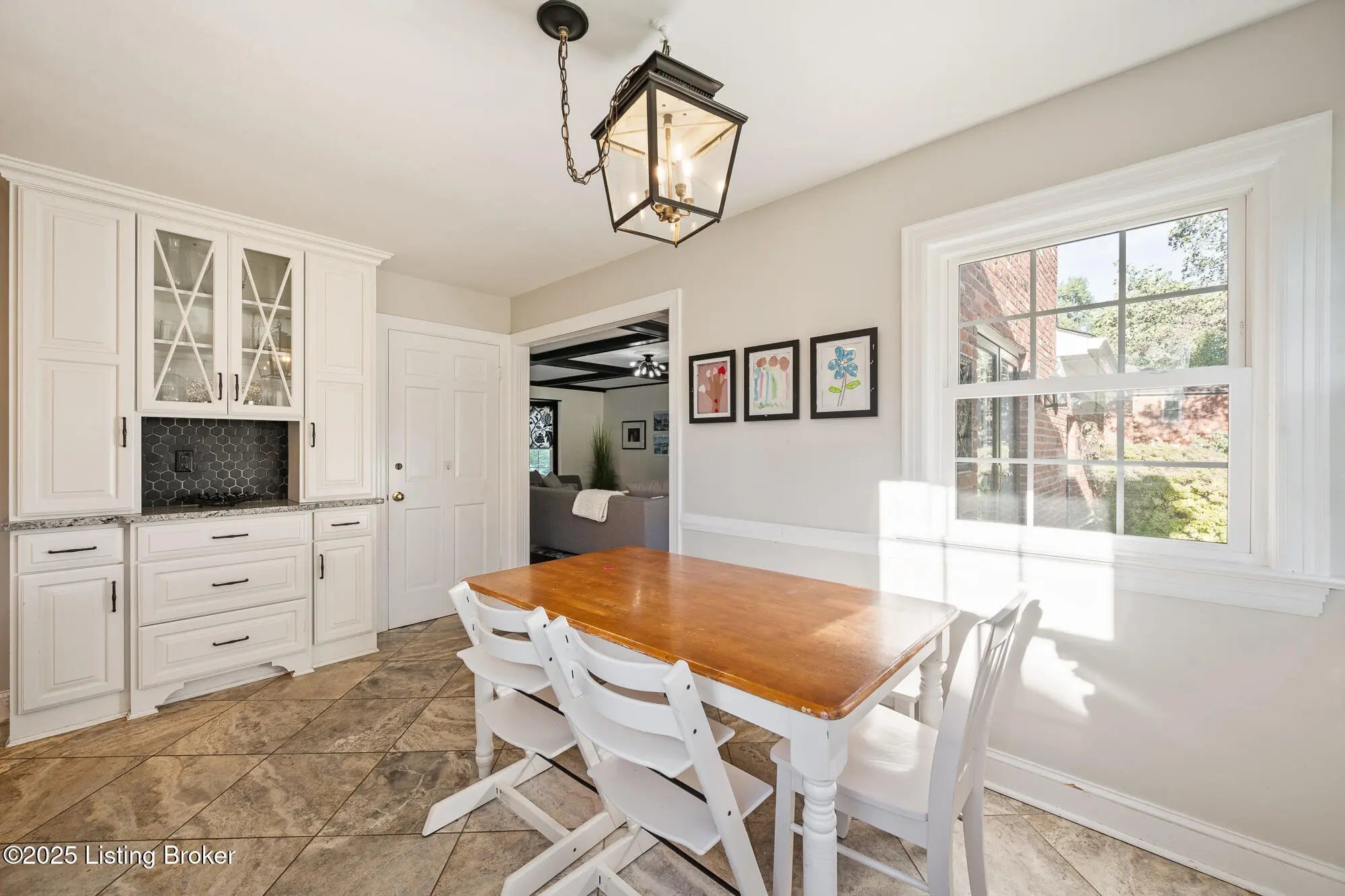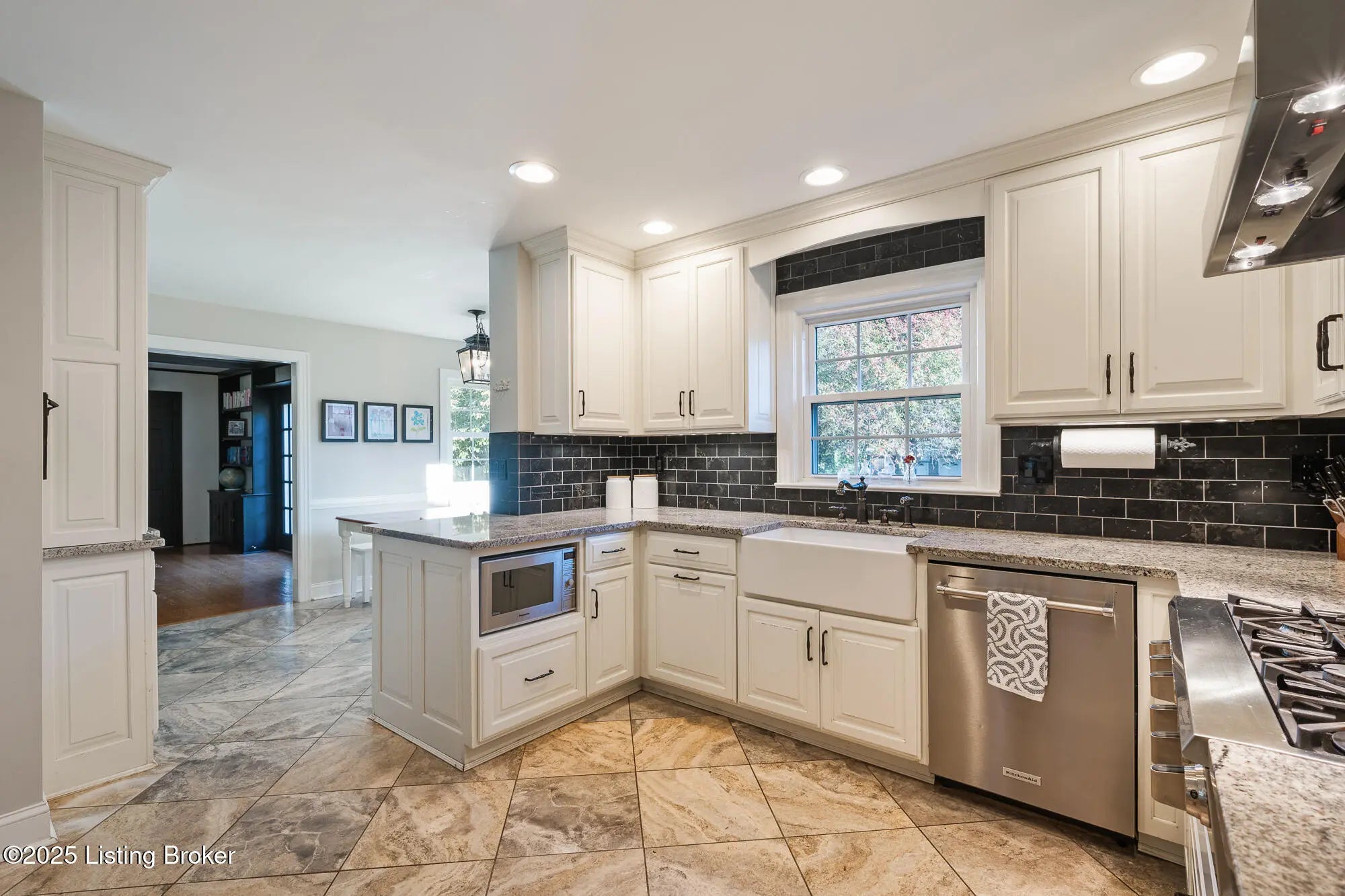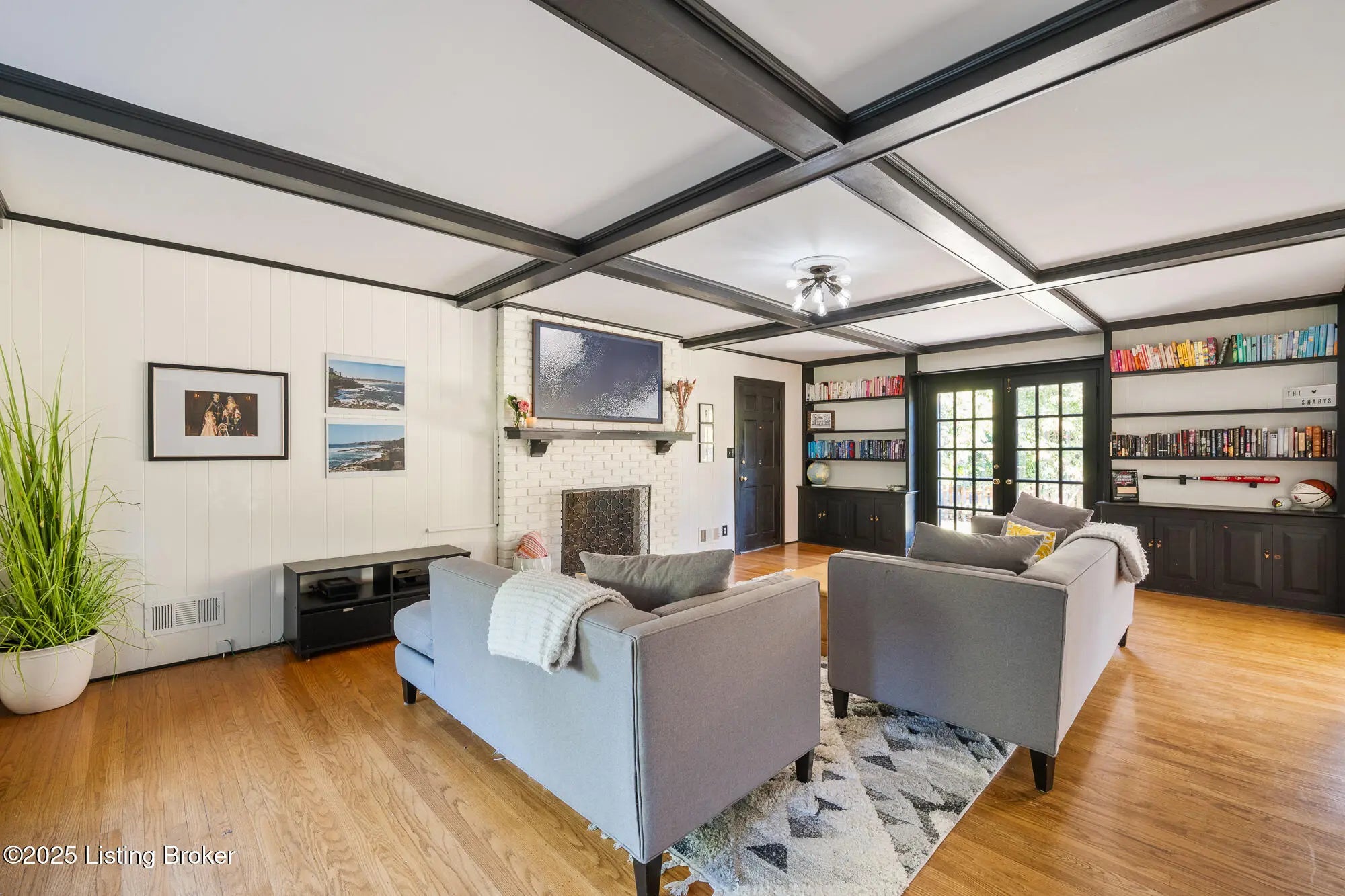 This exceptional two-story brick residence presents an impressive blend of sophisticated design and comfortable living across 3,263 square feet of thoughtfully appointed space. The moment you step through the front door, you'll be greeted by an elegant foyer that sets the tone for the remarkable craftsmanship found throughout this home. The first floor showcases beautiful hardwood flooring that flows seamlessly through the living spaces, creating a sense of continuity and warmth. The heart of the home features a spectacular family room where coffered ceilings draw the eye upward, while built-in bookcases and a cozy fireplace create an atmosphere perfect for both intimate gatherings and grand entertaining French doors bathe the space in natural light, and a charming built-in window seat offers an ideal spot for morning coffee or evening reflection. The kitchen stands as a culinary enthusiast's dream, featuring pristine white cabinetry complemented by stunning granite countertops and a farmhouse sink that adds character and functionality. The space boasts premium stainless steel appliances, including a convenient double oven and gas range, while subway tile backsplash provides timeless appeal. A breakfast nook creates casual dining opportunities, and the tile flooring ensures easy maintenance for busy lifestyles. The adjacent formal dining room offers an elegant setting for special occasions and holiday celebrations. A generous living room with its own fireplace and a convenient powder room complete the main level. The second floor houses four well-proportioned bedrooms, including three comfortable guest rooms, a full bathroom and a luxurious primary suite. The primary bedroom retreat features an ensuite bathroom and an organized walk-in closet complete with built-in shelving systems. Hardwood flooring extends throughout most of the upper level, maintaining the home's consistent quality and appeal. The finished basement adds tremendous value with 707 additional square feet of living space featuring attractive plank flooring and an open living space. This level includes a convenient laundry room, comfortable family room, and versatile bonus area (with egress window) that can adapt to your changing needs whether that's a home office, exercise room, or recreational space. The outdoor living experience is equally impressive with a large, fully fenced backyard that provides privacy and security. A well-positioned patio creates the perfect setting for barbecues, outdoor dining, or simply enjoying Kentucky's beautiful seasons. This home's location offers excellent access to schools, restaurants and shopping nearby. Call now to schedule your private showing today!