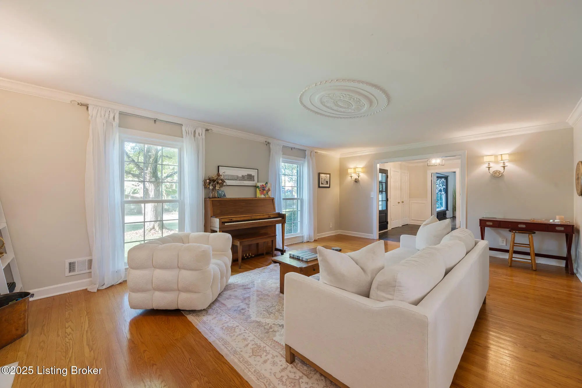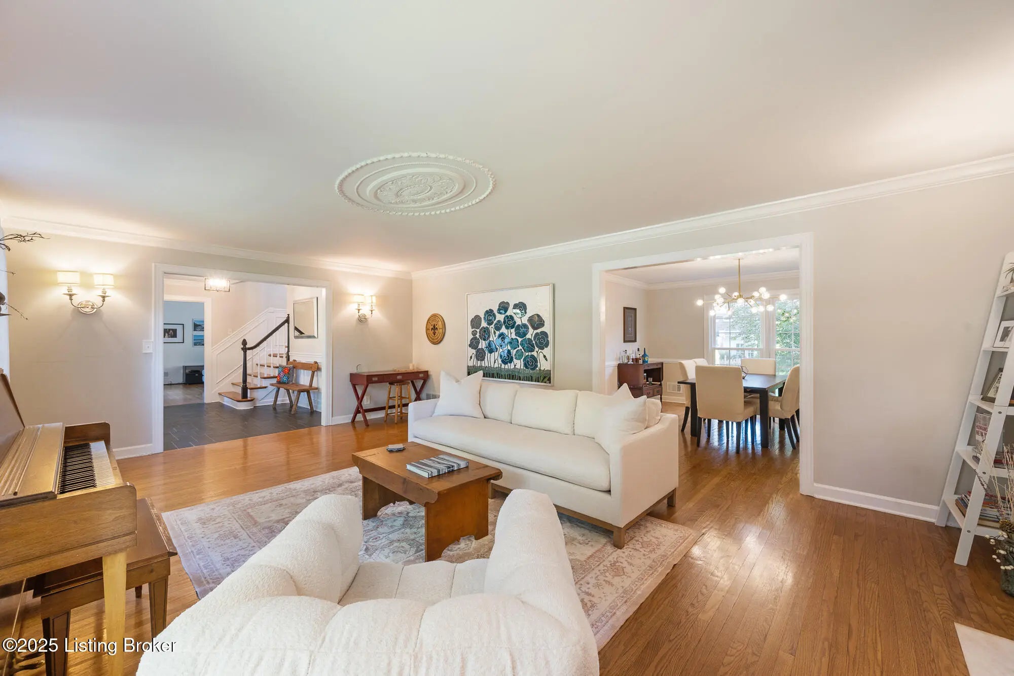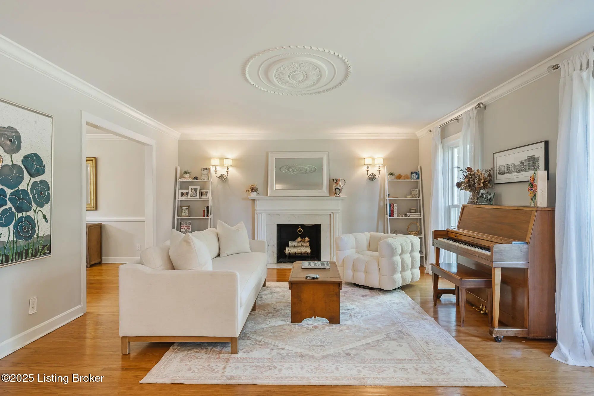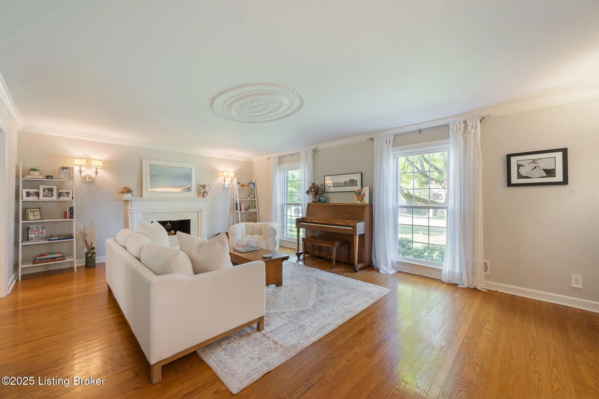 This exceptional two-story brick residence presents an impressive blend of sophisticated design and comfortable living across 3,263 square feet of thoughtfully appointed space. The moment you step through the front door, you'll be greeted by an elegant foyer that sets the tone for the remarkable craftsmanship found throughout this home. The first floor showcases beautiful hardwood flooring that flows seamlessly through the living spaces, creating a sense of continuity and warmth. The heart of the home features a spectacular family room where coffered ceilings draw the eye upward, while built-in bookcases and a cozy fireplace create an atmosphere perfect for both intimate gatherings and grand entertaining French doors bathe the space in natural light, and a charming built-in window seat offers an ideal spot for morning coffee or evening reflection. The kitchen stands as a culinary enthusiast's dream, featuring pristine white cabinetry complemented by stunning granite countertops and a farmhouse sink that adds character and functionality. The space boasts premium stainless steel appliances, including a convenient double oven and gas range, while subway tile backsplash provides timeless appeal. A breakfast nook creates casual dining opportunities, and the tile flooring ensures easy maintenance for busy lifestyles. The adjacent formal dining room offers an elegant setting for special occasions and holiday celebrations. A generous living room with its own fireplace and a convenient powder room complete the main level. The second floor houses four well-proportioned bedrooms, including three comfortable guest rooms, a full bathroom and a luxurious primary suite. The primary bedroom retreat features an ensuite bathroom and an organized walk-in closet complete with built-in shelving systems. Hardwood flooring extends throughout most of the upper level, maintaining the home's consistent quality and appeal. The finished basement adds tremendous value with 707 additional square feet of living space featuring attractive plank flooring and an open living space. This level includes a convenient laundry room, comfortable family room, and versatile bonus area (with egress window) that can adapt to your changing needs whether that's a home office, exercise room, or recreational space. The outdoor living experience is equally impressive with a large, fully fenced backyard that provides privacy and security. A well-positioned patio creates the perfect setting for barbecues, outdoor dining, or simply enjoying Kentucky's beautiful seasons. This home's location offers excellent access to schools, restaurants and shopping nearby. Call now to schedule your private showing today!
