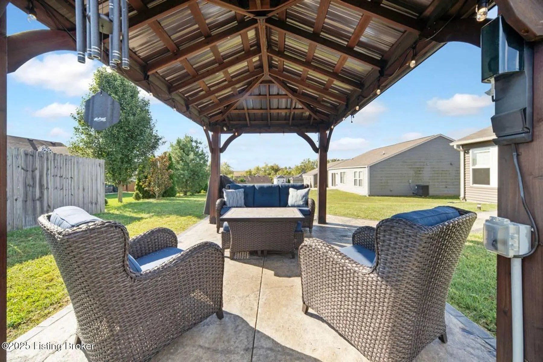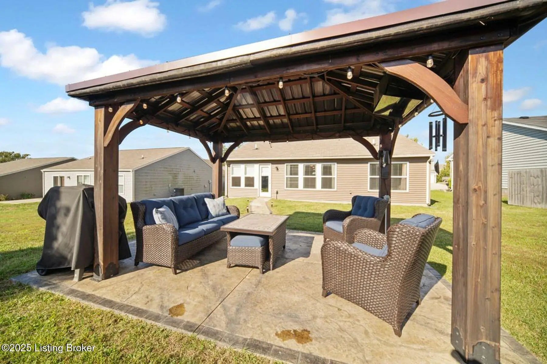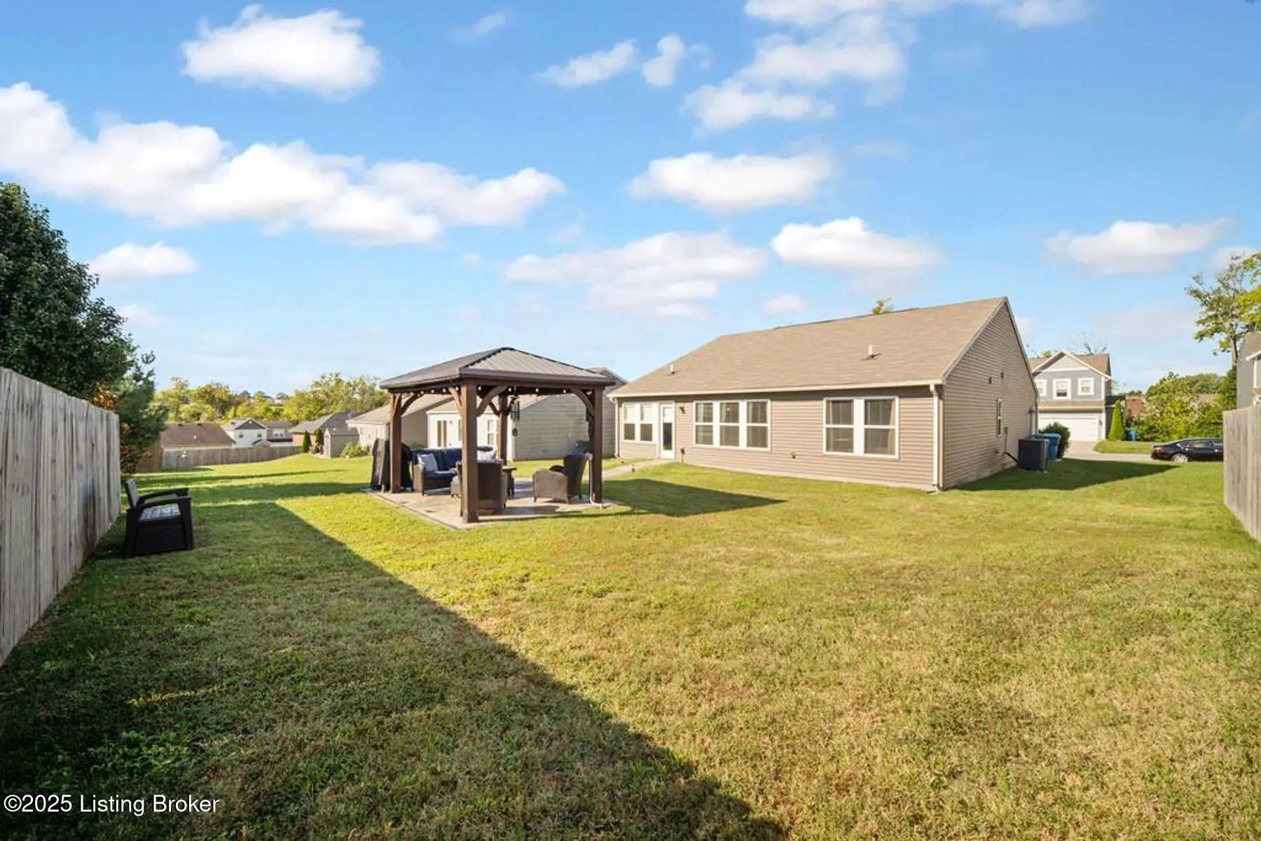 Like new, less than 5 year old home 3 bedroom, 2 bath, home in the desirable Summersfield Place subdivision. Convenient one-level living, and a split floor plan with primary being on one side of the house, while the other 2 bedrooms are on the other side, everyone has a place to call their own. The spacious kitchen with island, features stainless steel appliances which remain, granite countertops, tiled backsplash, and LVP flooring, which extends through the kitchen, dining area, bathrooms, and hallways for easy living. The real show stopper? You will get to enjoy your own private outdoor retreat with a custom-built gazebo complete with electrical hookups for lighting and TV (which remain), plus a gorgeous & stylish stamped concrete sidewalk leading to the patio. With the right offer, the patio furniture can also be negotiated to stay...giving you a ready-made space for entertaining, grilling, and watching your favorite game! Additional features include a 2-car garage with side entry door, and convenient access to popular Shelby County dining, shopping, and attractions. This property combines comfort, style, and location, ready for its next owners!