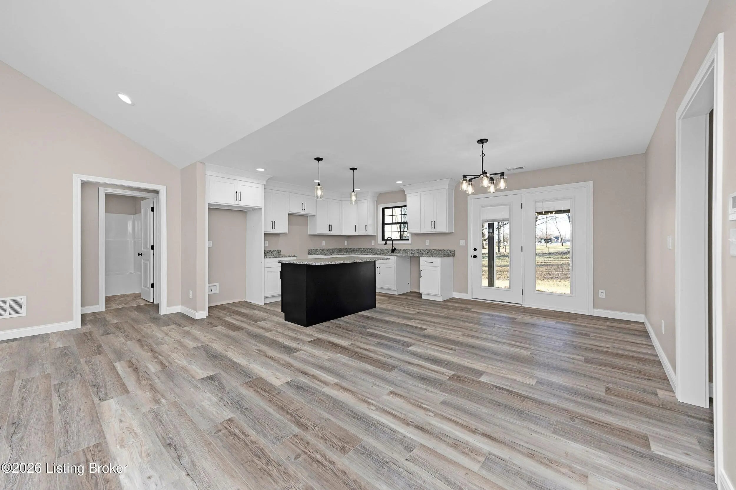 New Construction Home This home offers three bedrooms and two bathrooms with a spacious, open floor plan. The living area flows seamlessly into the kitchen, which features granite countertops and an island for extra workspace. The primary bedroom includes a private bath with a double bowl vanity and a walk-in shower. Enjoy relaxing or entertaining on the large covered patio.