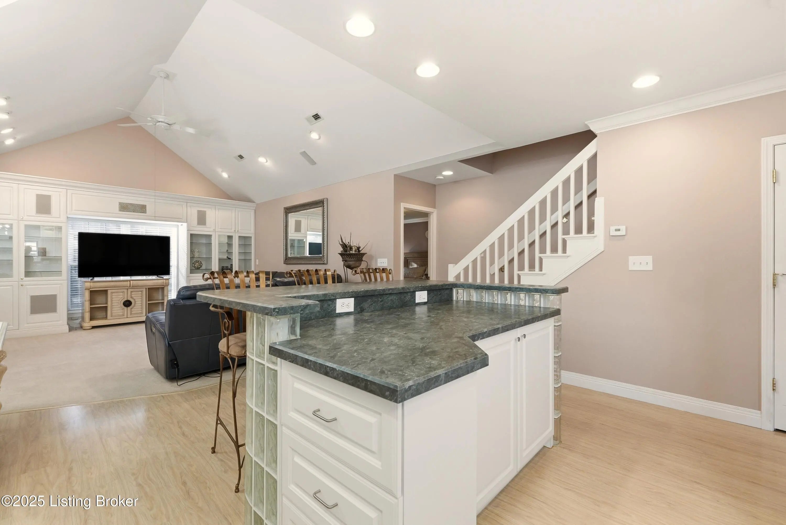 Welcome to 404 Eastgate Village Wynde in the heart of Middletown. This charming corner unit offers the ease of first-floor living, with the primary suite, laundry, and attached two-car garage all conveniently located on the main level. The open-concept layout features vaulted ceilings, abundant natural light, and a well-appointed kitchen with modern appliances and plenty of counter space. The primary bedroom includes a spacious walk-in closet and private bath, while an additional first-floor bedroom is perfect for guests or a home office. Upstairs, you'll find a versatile third bedroom with a full bath and extra storage. Enjoy morning coffee or evening conversation on the private front patio, and appreciate the extra parking and quiet setting this corner location provides. Just minutes from grocery stores, shopping, and restaurants, this move-in ready home blends comfort, convenience, and low-maintenance living in one of Louisville's most desirable areas.