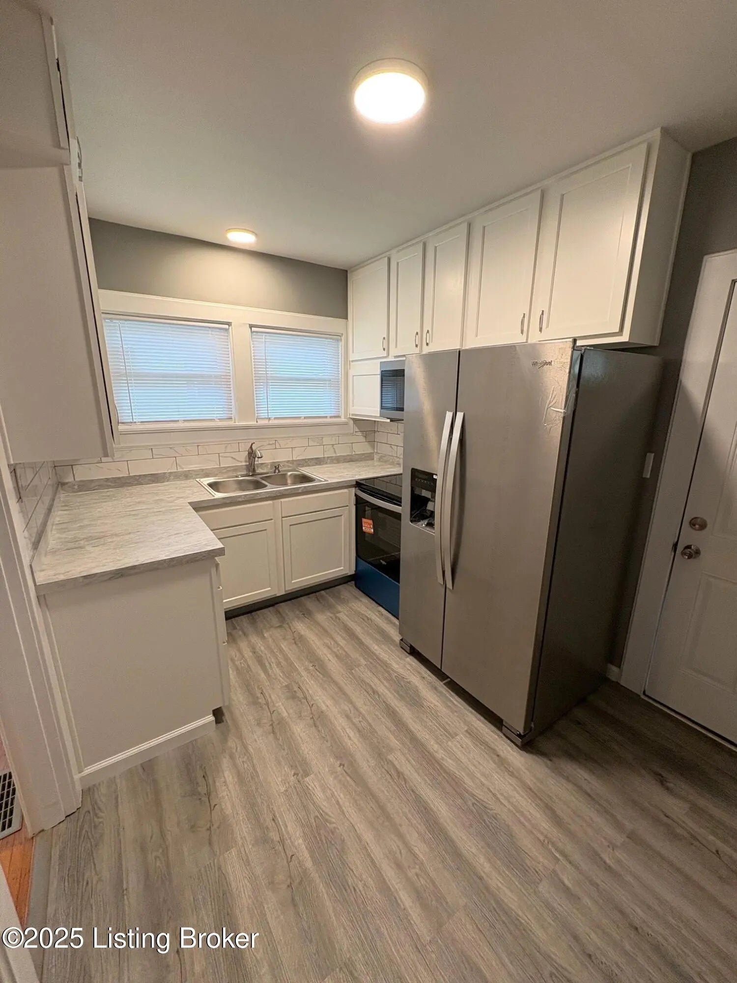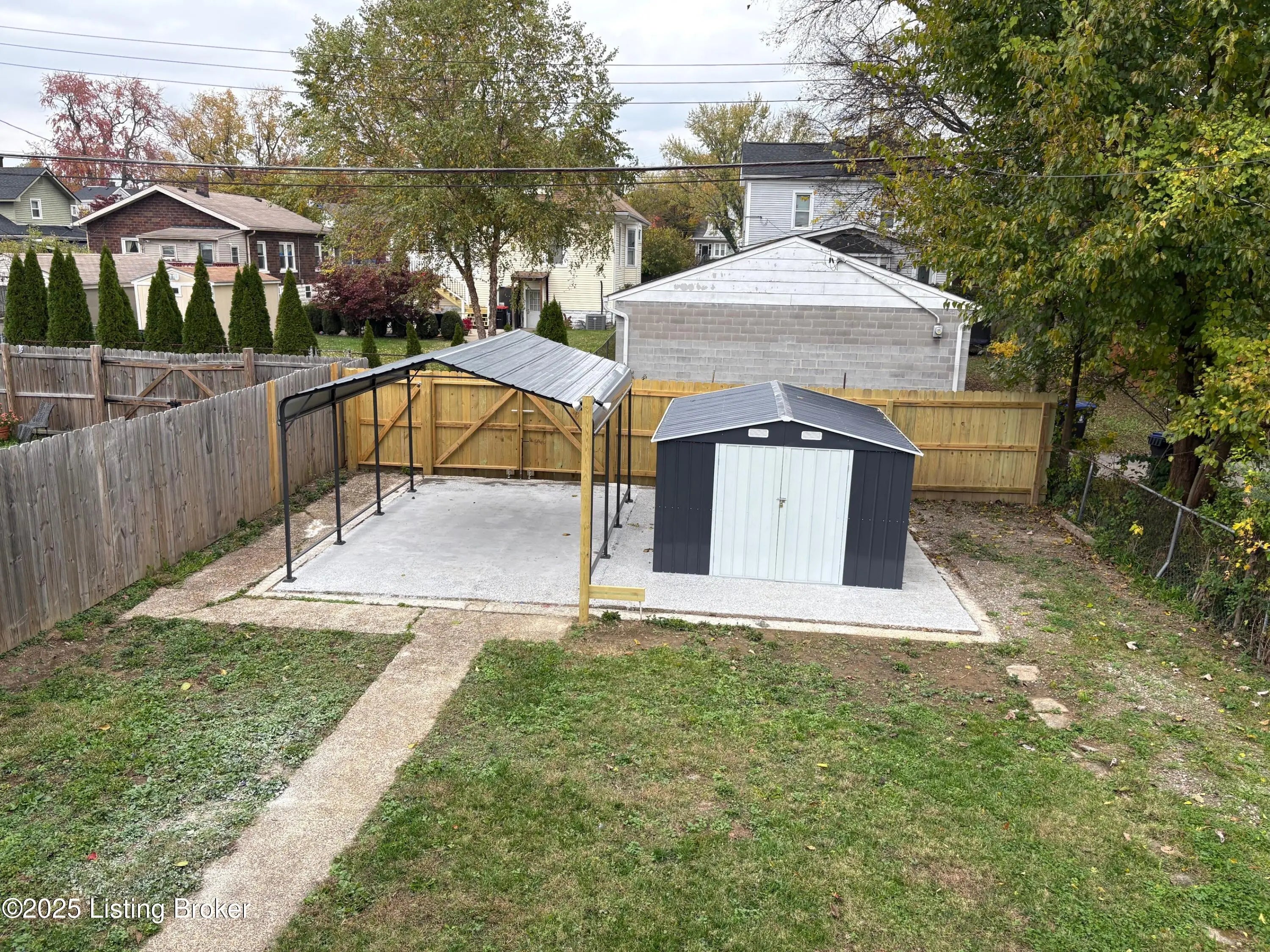This beautifully updated home blends comfort, style, and functionality throughout. The living and dining rooms feature refinished hardwood floors, while the kitchen highlights luxury vinyl plank flooring. The hall and both bedrooms include brand-new carpet for a soft, inviting feel. The kitchen has been completely renovated with new cabinetry, countertops, lighting, fixtures, a tile backsplash, and stainless-steel appliances — including a refrigerator, stove, over-the-range microwave, and stainless-steel sink. The bathroom has also been refreshed with new cabinetry, a double-sink vanity, medicine cabinets, tile flooring and tub surround, and a beautifully reglazed bathtub. Fresh interior paint and new blinds create a bright, clean atmosphere, and new wrapped replacement windows have been installed on the main level (excluding the living room).Outside, the low-maintenance exterior features a new roof, 12'x15' carport with alley access, and 10'x12' storage shed, and a fully fenced backyard. The rebuilt-covered deck and covered front porch offer ideal spaces for outdoor relaxation. The unfinished basement provides ample storage with built-in closets and drawers, along with a new electrical panel. Carpeted stairs lead to the attic, offering even more convenient storage options.